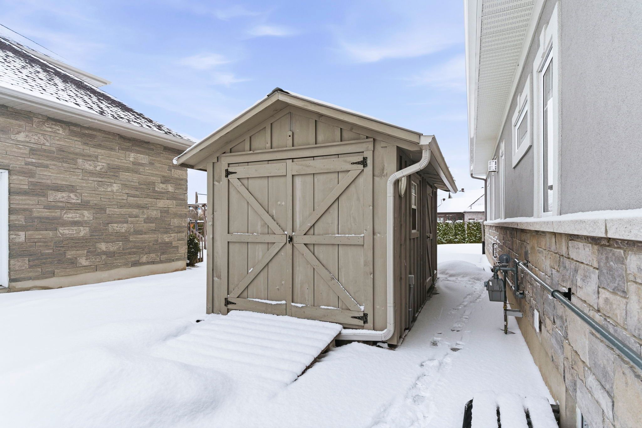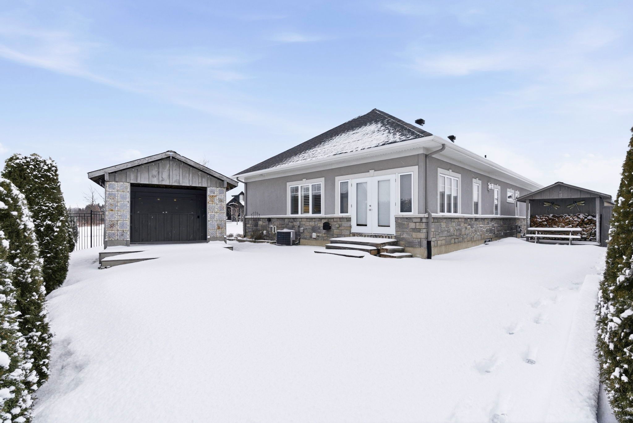 Welcome to refined bungalow living in the prestigious community of Place St. Laurent, where elegance meets sophistication. This beautifully designed 2+1 bedroom bungalow with a triple-car garage delivers both everyday luxury and effortless entertaining. At the heart of the home, the gourmet kitchen shines with a breakfast island, granite countertops, high-end appliances, and quality finishes, flowing seamlessly into the open-concept living space. The living room is anchored by a striking gas fireplace with a porcelain tile surround, creating a warm and inviting atmosphere for relaxing evenings and gatherings alike. Just beyond, a three-season sunroom offers the perfect place to unwind while enjoying peaceful views of the outdoors.The primary suite is a true retreat, featuring a walk in closet with built in shelving, a spa-inspired 4-piece ensuite with tiled shower and double vanity. A second main-floor bedroom and additional full bathroom provide flexibility for guests or home office space.The finished lower level expands your living area with a third bedroom, full 4-piece bathroom, laundry/sitting area, and plenty of storage space. Step outside to your backyard complete with a garden shed and a custom built gazebo, ideal for summer entertaining or quiet mornings with coffee. A black iron fence and privacy panel enclose this outdoor space. Thoughtful upgrades include a whole-home Generac generator and water filtration/treatment system, delivering a year round peace of mind. Residents of Place St. Laurent enjoy exclusive waterfront access and a private dock, adding a rare perk to this already exceptional property. A property of this caliber is not just a place to call home, it's a lifestyle. Golf course, marina, recreation and other amenities nearby. As per Seller direction allow 24 hour irrevocable on offers.
