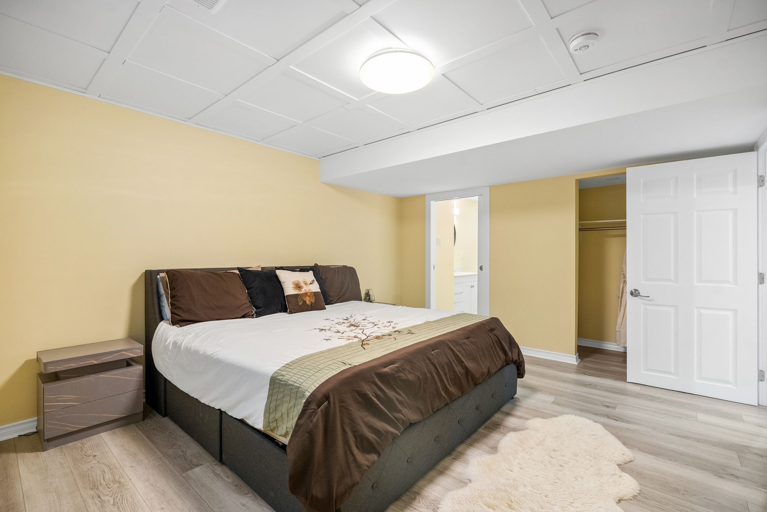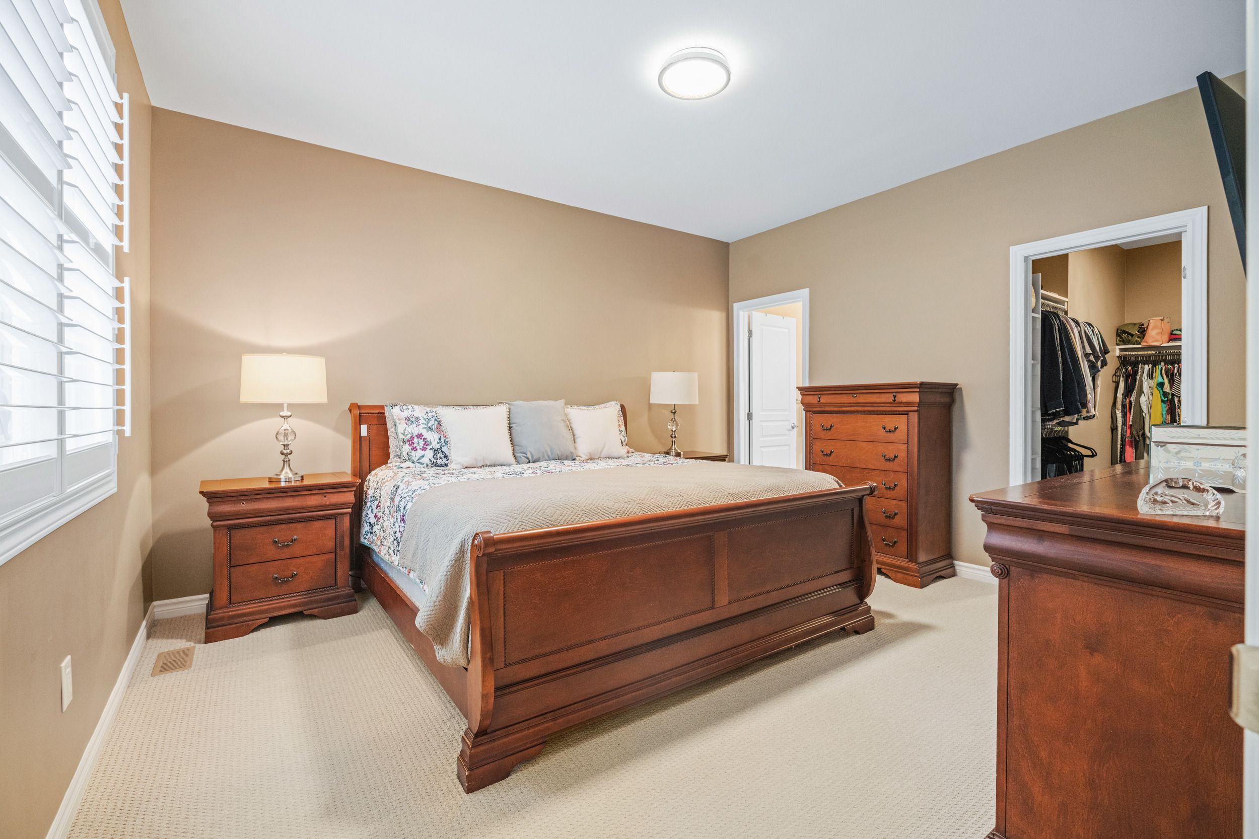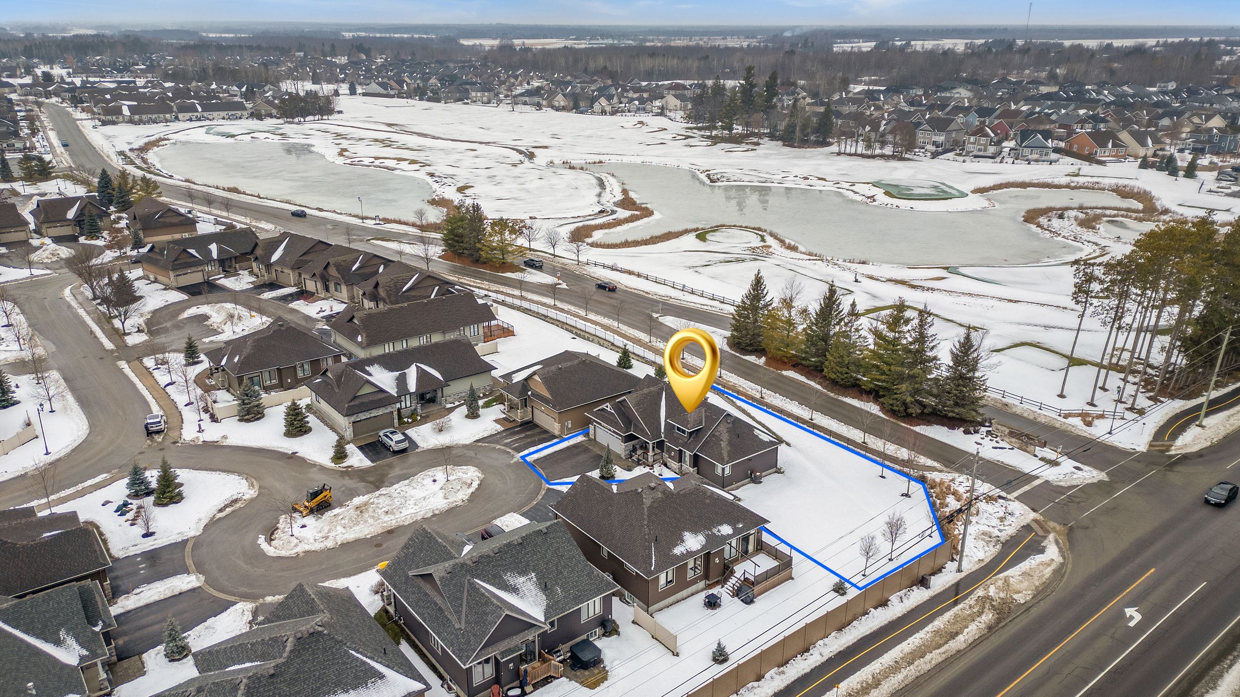 Discover refined living in this beautifully built Stafford model from the Legends Series, located on a quiet street in the highly sought-after eQuinelle community. A spacious foyer welcomes you into a bright, open layout ideal for both comfort and entertaining. The open-concept living and dining area features soaring cathedral ceilings, creating an airy atmosphere. The gourmet kitchen offers granite countertops and breakfast bar, pull-out drawers, a large French-door pantry, and patio doors leading to the outdoor space-perfect for everyday living and hosting guests. A desirable split-bedroom layout provides privacy, with the primary suite showcasing a walk-in closet and spa-inspired walk-in shower. The opposite wing includes a spacious second bedroom, full bath with tub/shower combination, convenient laundry access, and mudroom entry from the garage. Upgraded lighting, high-end finishes, abundant natural light, and classic white shutters enhance the home throughout. The fully finished lower level expands the living space with a large recreation room ideal for movie nights or a home gym, plus a third bedroom with ensuite-style shower-perfect for guests or multigenerational living. Additional features include central air, rough-in for central vacuum, security system, generator, oversized double garage with electric vehicle charger, and a premium oversized lot. The $225/month maintenance fee ($2,700 annually) covers lawn care, driveway and walkway snow removal, and window cleaning. Steps from the renowned eQuinelle Golf Course, residents enjoy discounted golf rates through the Residents Club, which also features fitness rooms, library, games and hobby spaces, billiards, lounge, Fireside Grill, banquet facilities, and an outdoor pool-offering an exceptional lifestyle of comfort and convenience.