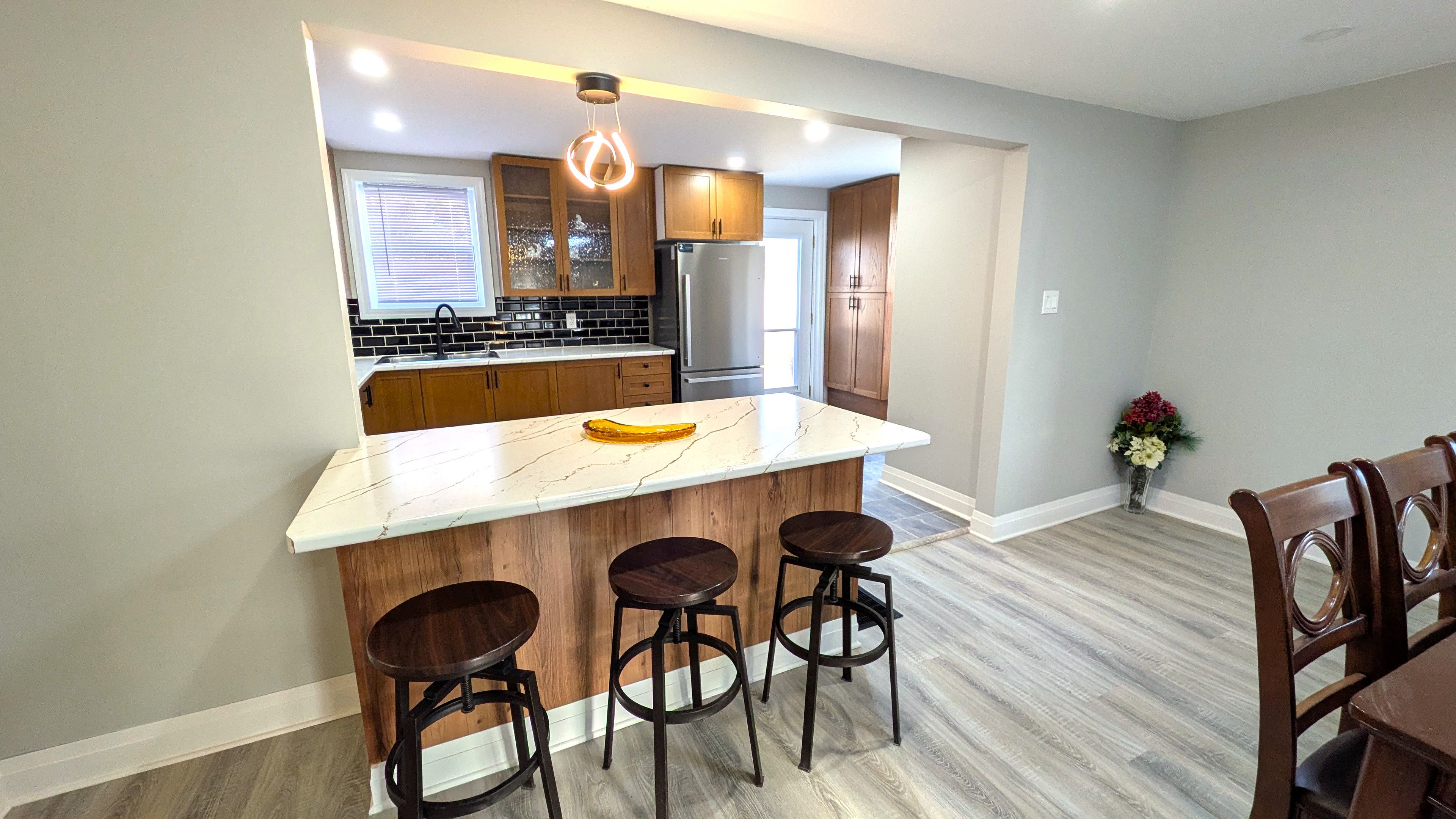 Look no further, this beautifully renovated home is priced to sell! Every box is checked with this fully updated 4 bedroom property, meticulously renovated from top to bottom. The modern kitchen boasts a stylish island, newly purchased appliances, and an open-concept layout flowing seamlessly into the spacious dining area and enclosed laundry nook with a stackable washer and dryer. A bright, fully enclosed sunroom offers the perfect bonus space, ideal as a cozy family room or an additional bedroom. Upstairs, you'll find three inviting bedrooms and a 4-piece bath featuring a stunning installed mirrored vanity. The elevated main floor includes a generously sized primary bedroom, a convenient 2-piece bath, and a large living room with walk-out access to the deck, perfect for relaxing or entertaining. Both the home and single detached garage have been upgraded with tasteful vinyl siding and a metal roof for low-maintenance living. Ideally located just steps from shopping, schools, restaurants, the water park, and scenic walking trails along the Crowe River. Mag's Landing, only 1 km away, provides easy boat access to Crowe Lake, a haven for boating and fishing enthusiasts. Immediate possession is available. Staging items may be included in the purchase price with a viable Offer.