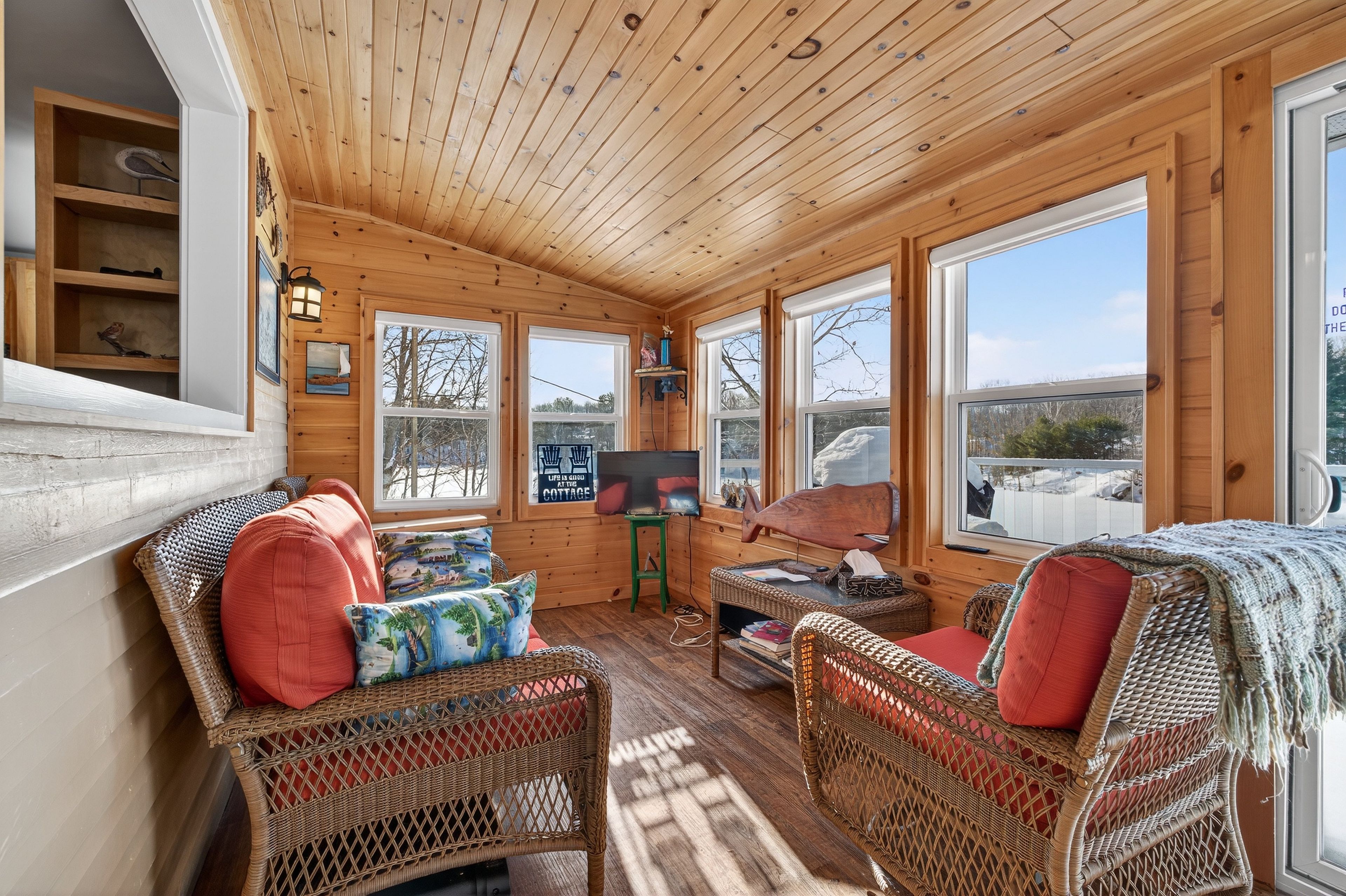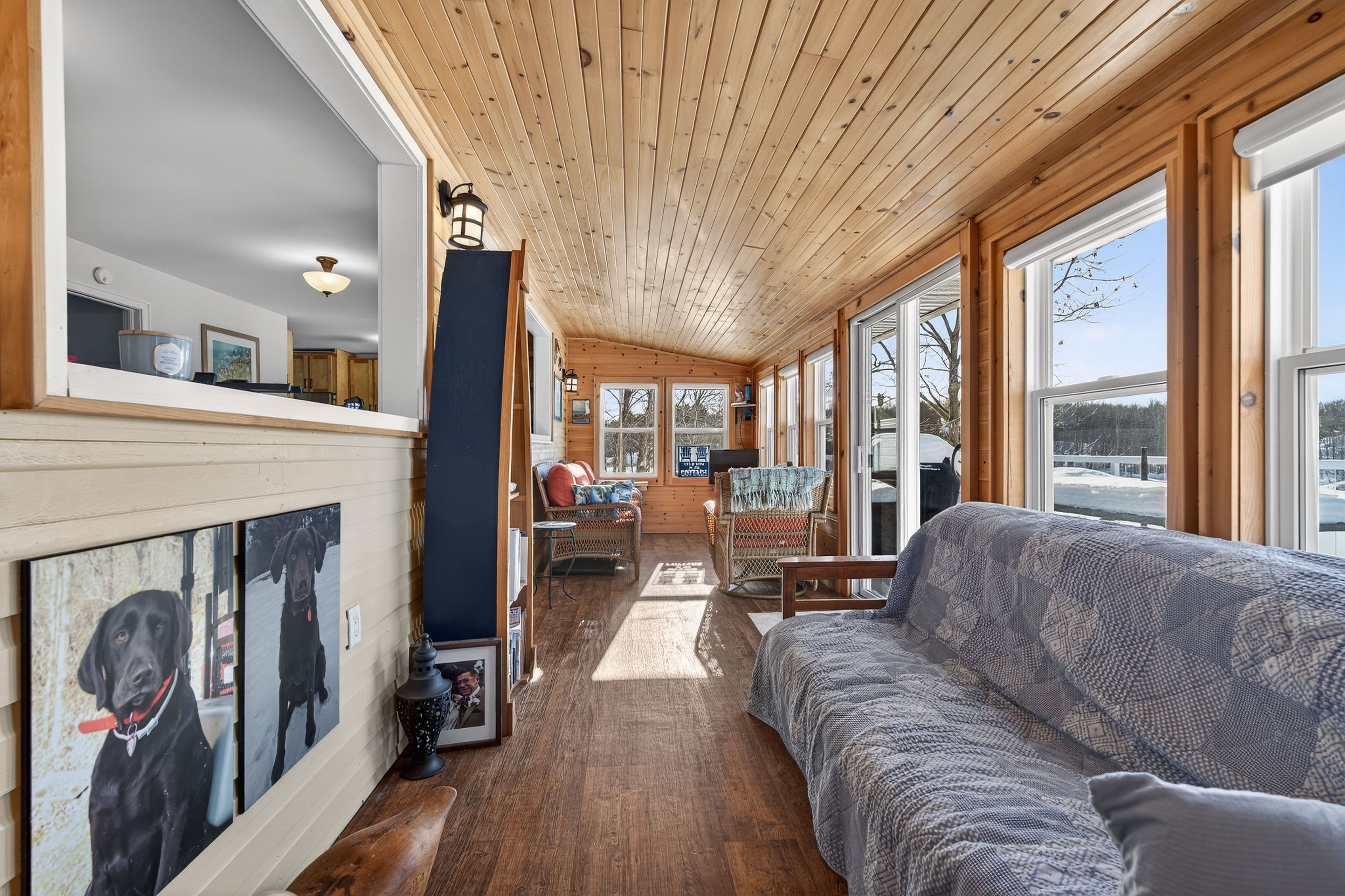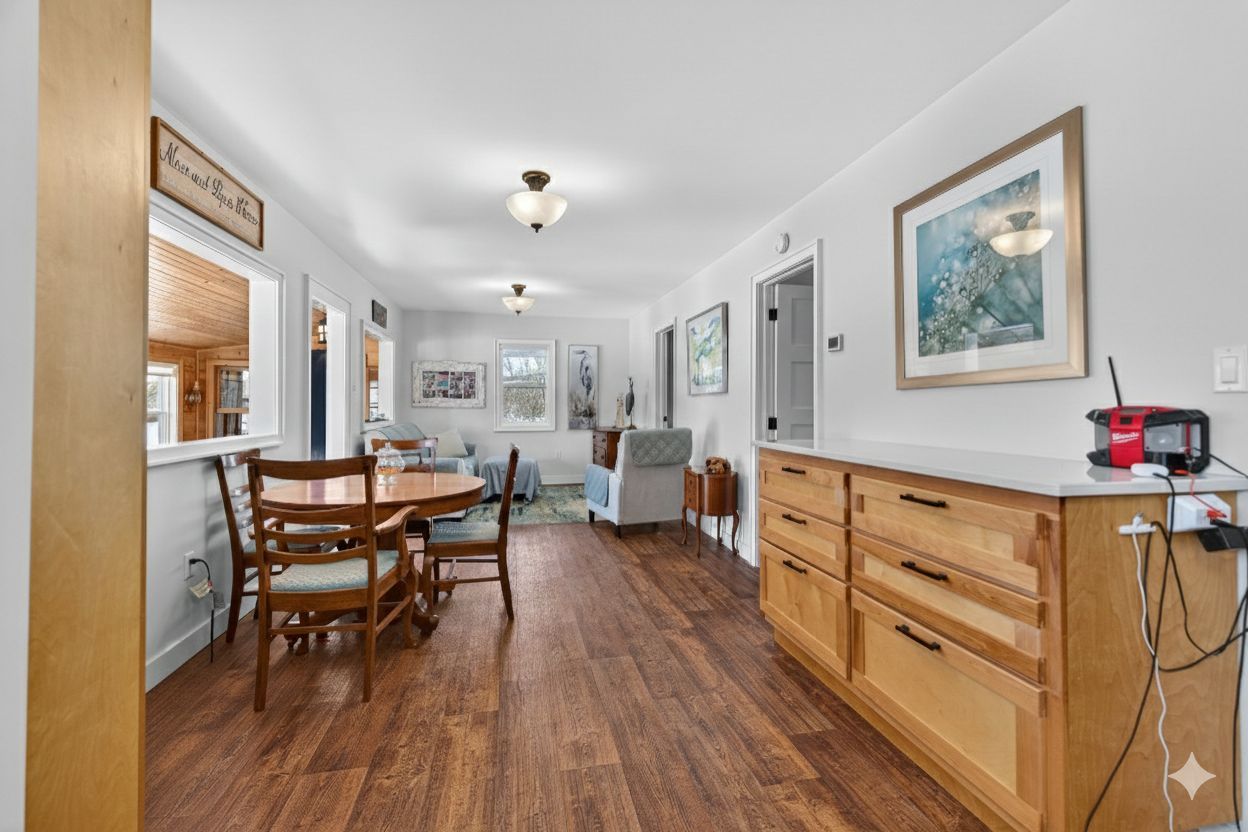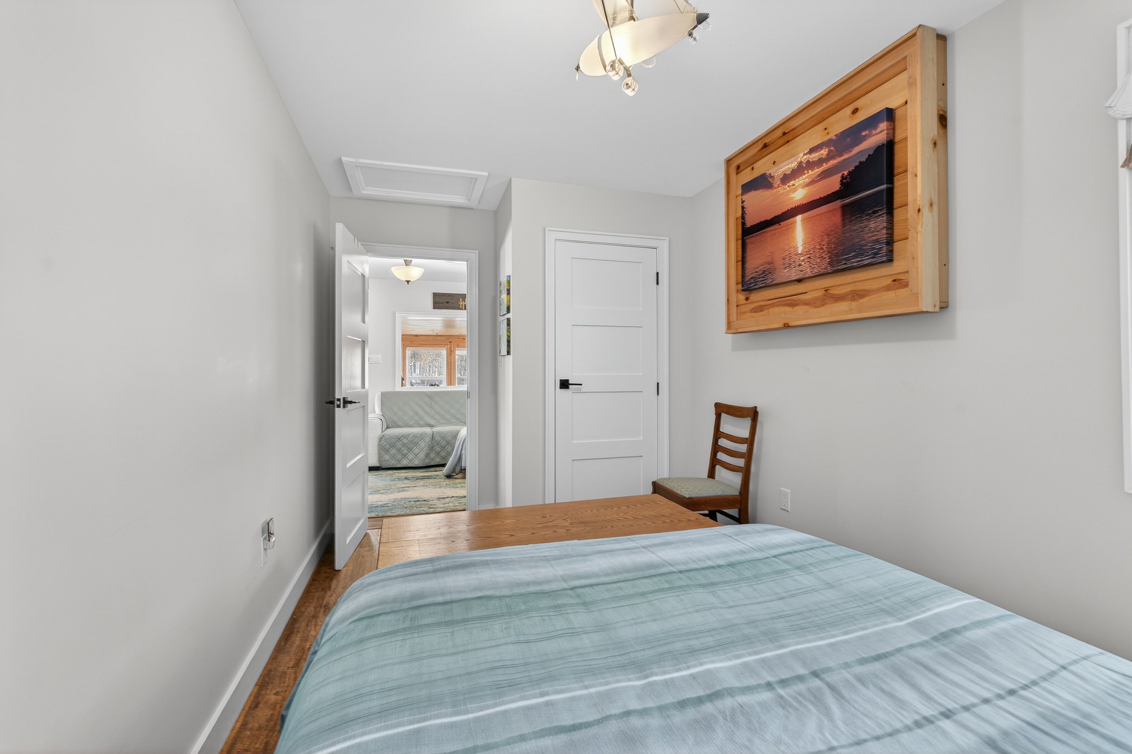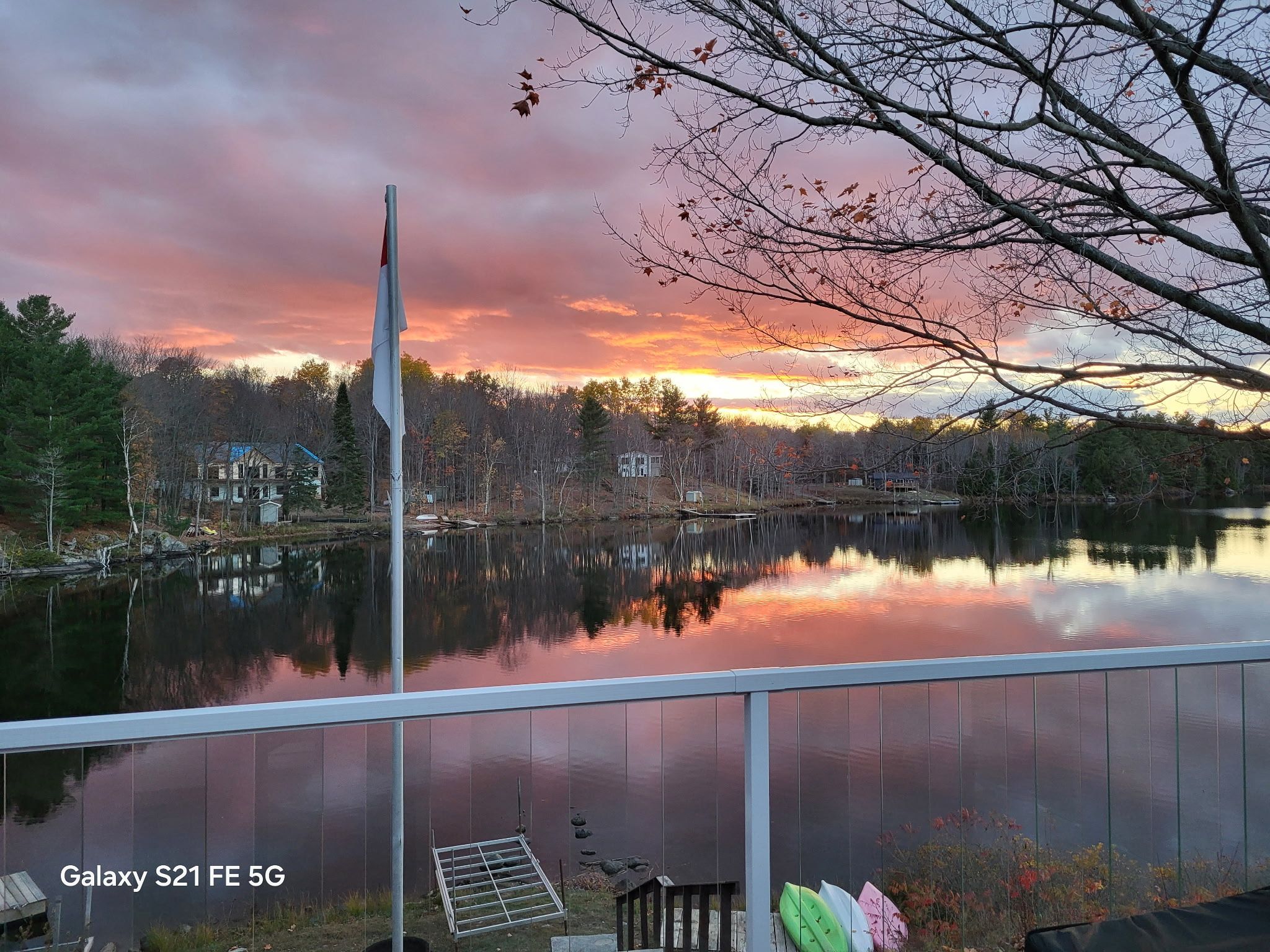 Welcome to year-round lake living on the tranquil shores of Elbow Lake, offering just over 180 feet of pristine waterfront with no public access-ensuring exceptional privacy, peaceful surroundings, outstanding fishing right off the dock, and unforgettable sunset views. This beautifully renovated bungalow is completely move-in ready and is complemented by an oversized detached two-car garage with an upper loft awaiting your finishing touches, plus an updated boathouse. Step inside to a generously sized mudroom, perfect for all seasons, which flows into a stunning sunroom featuring wraparound windows and patio doors that lead to a deck overlooking the water. The open-concept living and dining area is ideal for entertaining and seamlessly connects to a modern kitchen with elegant quartz countertops. The home offers a spacious Primary bedroom with a walk-in closet and 2-piece ensuite, a comfortable second bedroom, and a stylish 4-piece main bathroom. Conveniently located close to amenities, schools, and the popular K&P Trail, this exceptional property offers the perfect blend of comfort, convenience, and natural beauty-ready for you to settle in and start enjoying the very best of lakefront living.