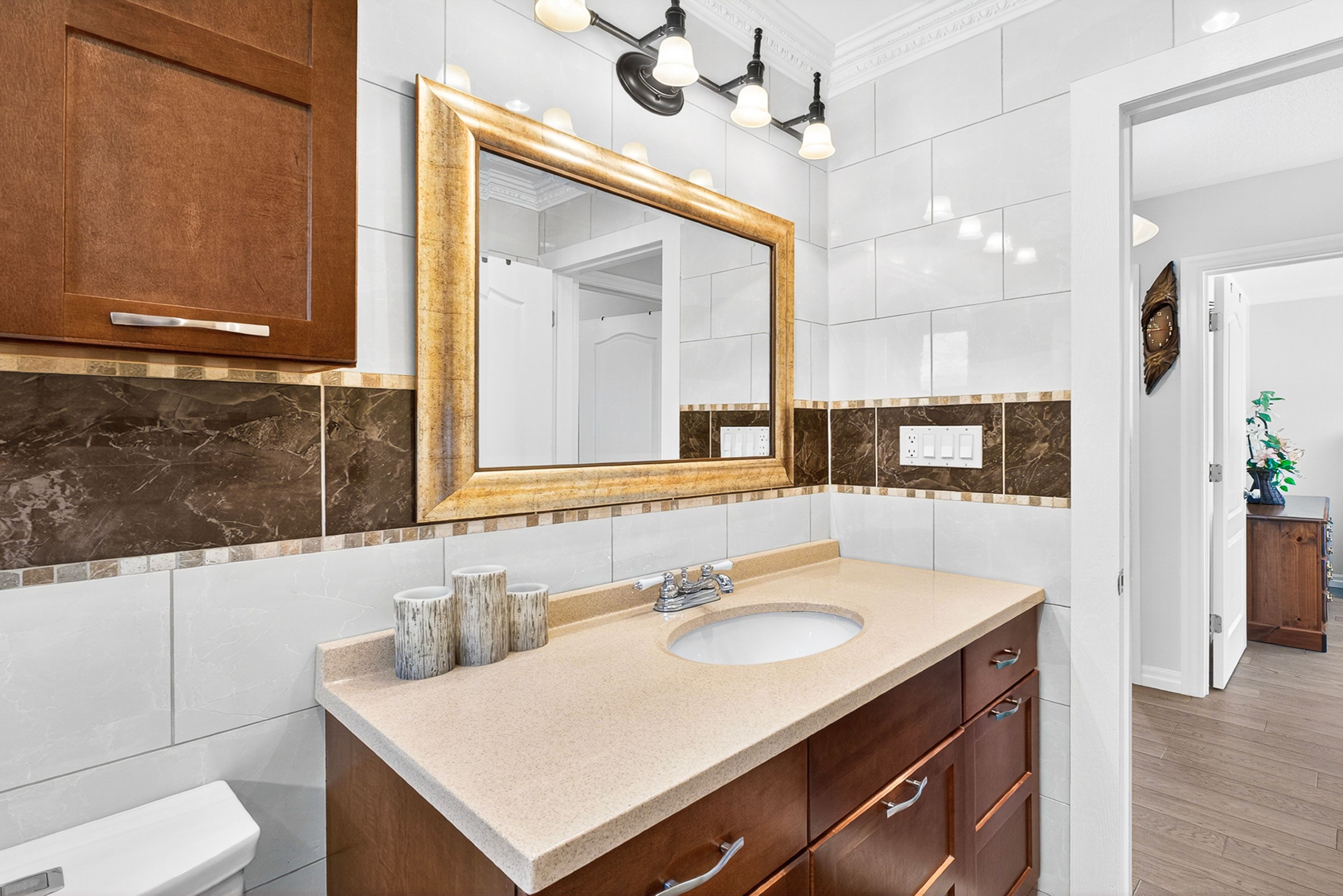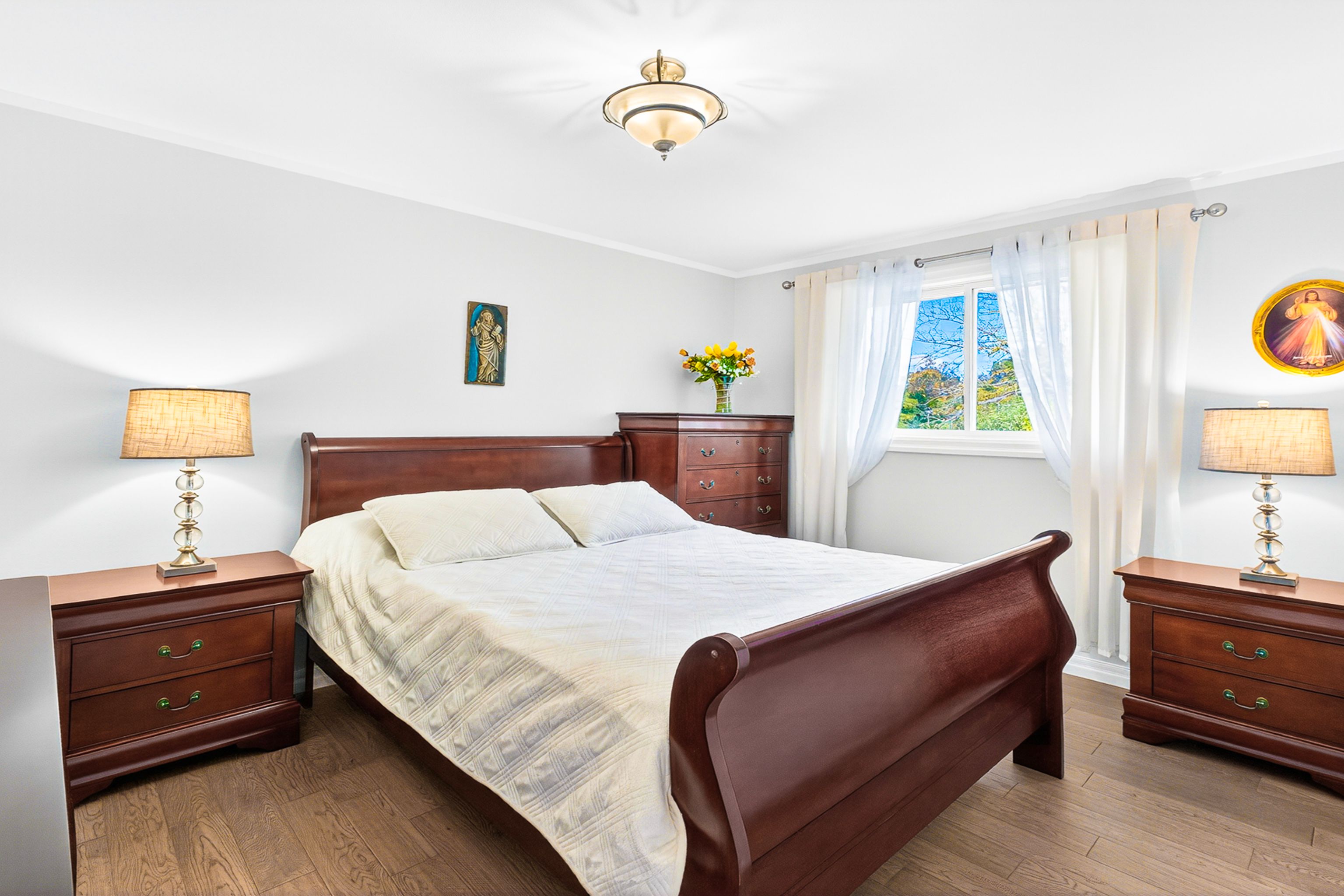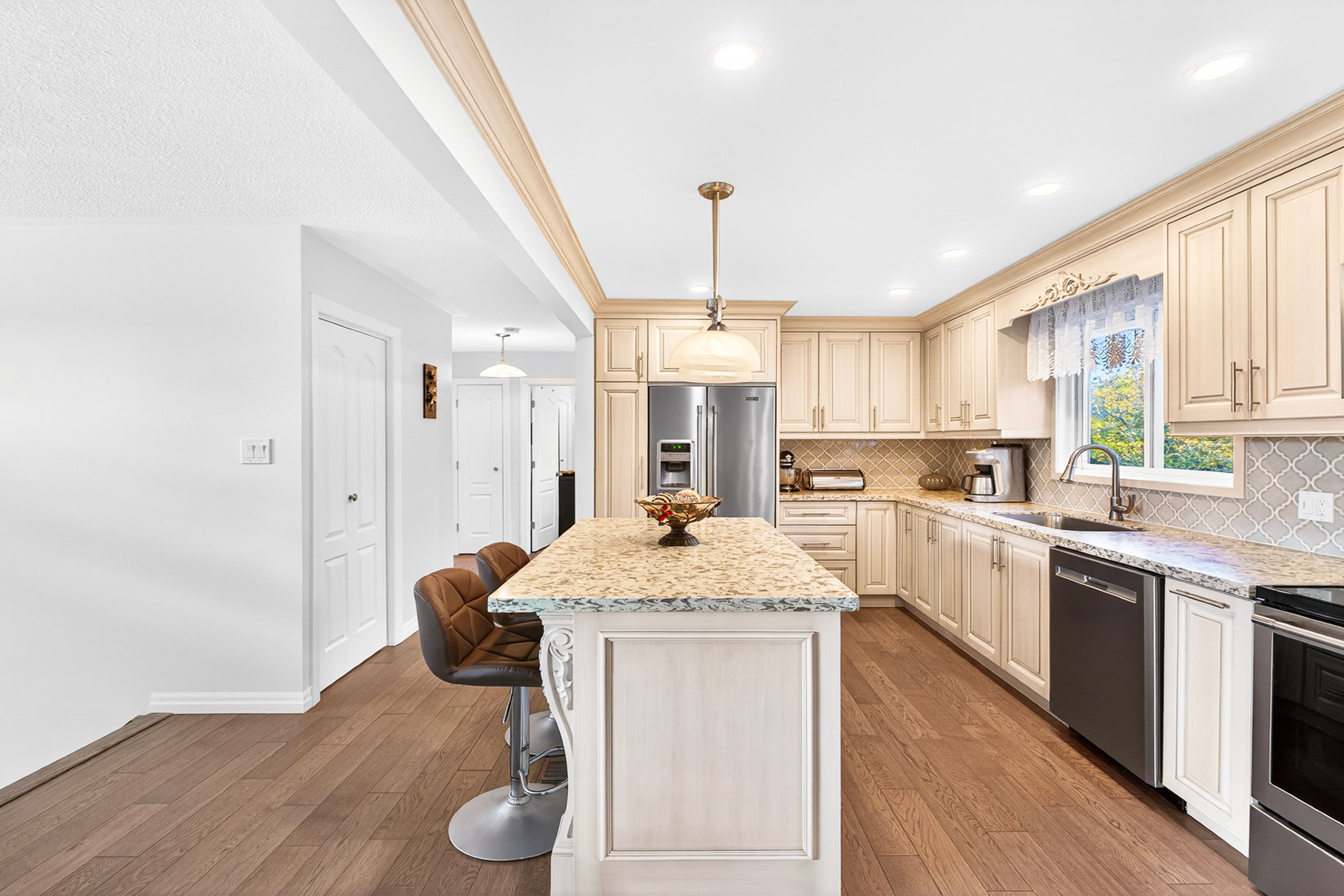 Once in a lifetime to own a stunning, fully renovated raised bungalow that perfectly blends timeless elegance with modern sophistication on an oversized lot backing onto a park. This exquisite bungalow has been completely transformed with premium-quality craftsmanship, thoughtful design, and meticulous attention to detail throughout. Step inside to a bright, open-concept layout with soaring ceilings, custom millwork, and designer finishes. The custom kitchen is an entertainer's dream, featuring full-height cabinetry, premium quartz countertops, a large island and stainless-steel appliances. The spacious living and dining areas flow seamlessly with a walk-out onto a covered deck, enhanced by large windows that fill the home with natural light. The primary bedroom is a serene retreat with a large window overlooking the park and a large closet. The spa-inspired bathroom features luxurious finishes. Additional bedrooms offer comfort and versatility for family, guests, or a home office. The beautifully finished lower level boasts a large recreation area with a fireplace, a bedroom and full bathroom - ideal for entertaining or relaxing in style. Situated on a premium pie-shaped lot that widens to 70 feet at the back, the property offers a private backyard oasis with a stone patio, and mature trees - perfect for gatherings or quiet evenings under the stars. Located in one of Stoney Creek's most desirable neighbourhoods, minutes from scenic trails, Lake Ontario, waterfront parks, top-rated schools, and highway access, this home truly has it all. A rare opportunity to own a turnkey luxury raised bungalow on a premium lot - every inch of this property has been thoughtfully crafted to impress.