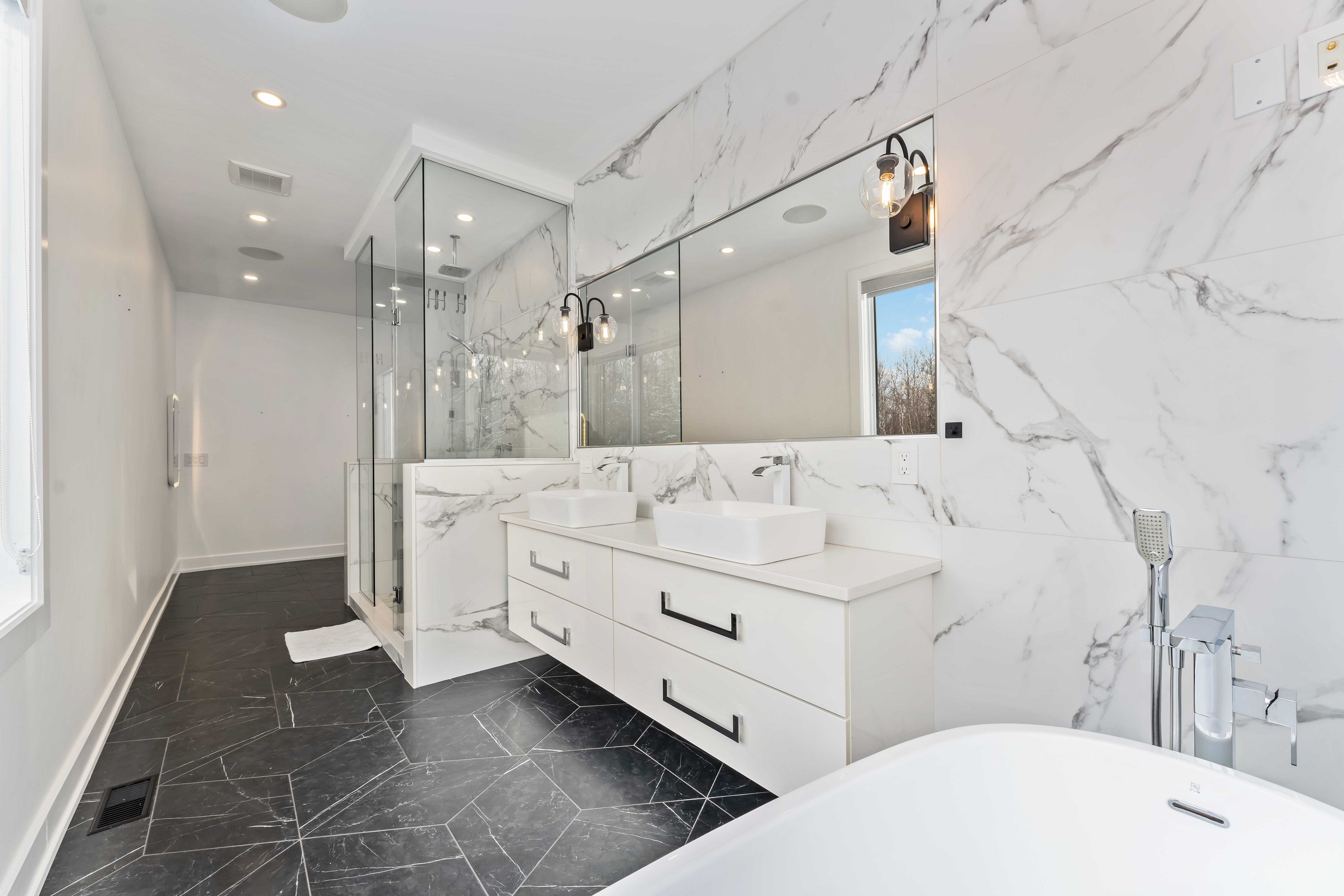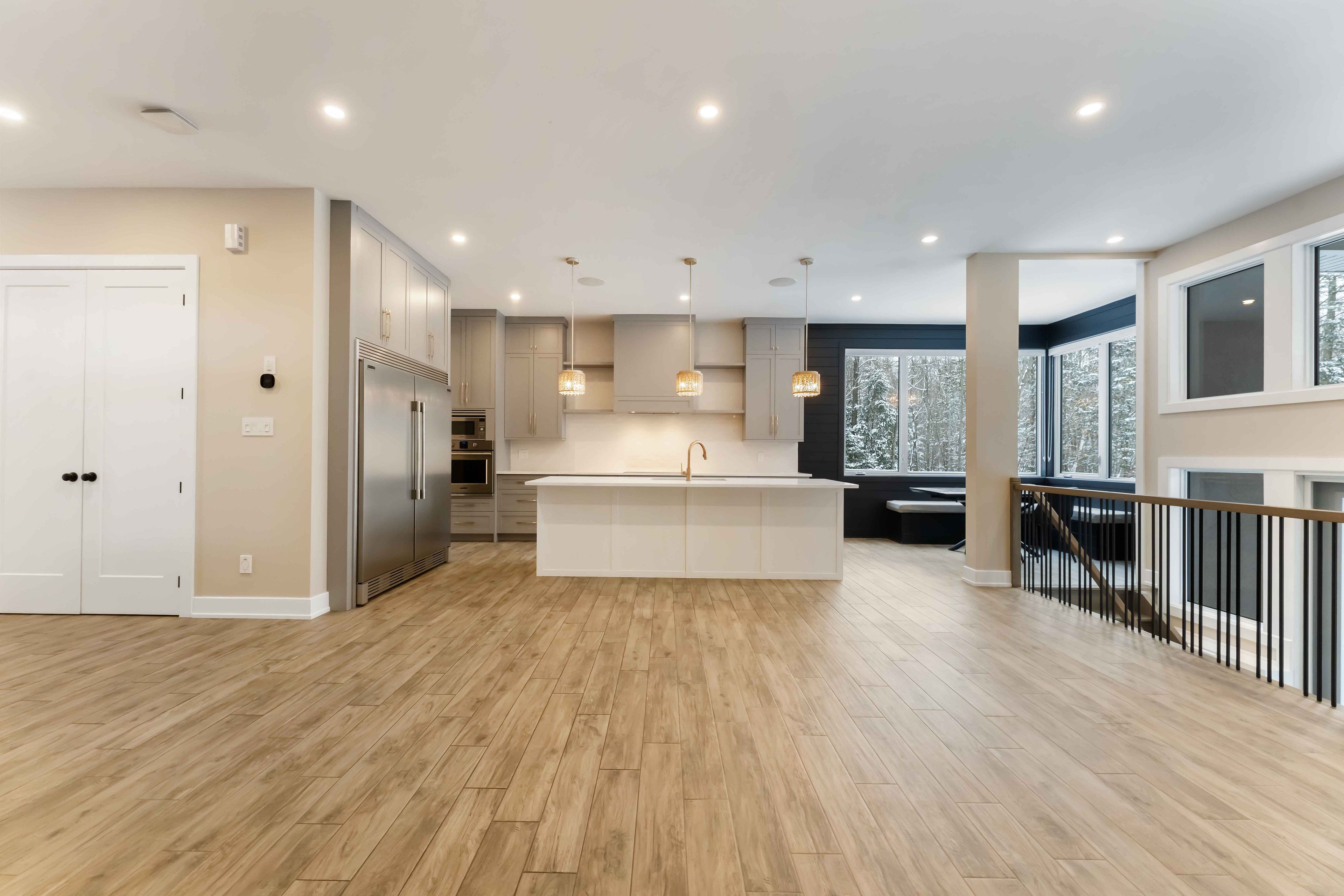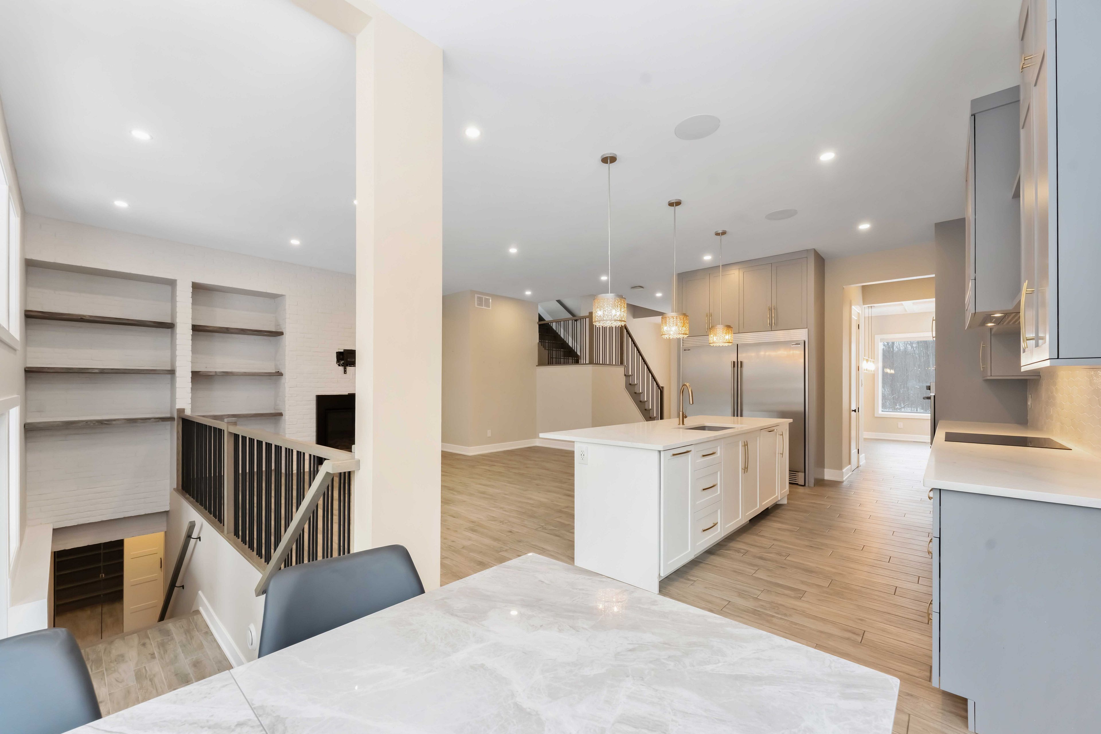 Experience refined living in this impressive 4-bedroom, 5-bath home, ideally located on a quiet cul-de-sac. The main level offers a thoughtfully designed layout perfect for both everyday living and entertaining. The contemporary kitchen features a stylish breakfast bar, sun-filled eating area, and flows seamlessly into the inviting living room anchored by a striking fireplace. A formal dining area provides ample space for hosting, while a dedicated office offers the perfect work-from-home setup. Upstairs, the spacious primary suite serves as a private retreat with a walk-in closet and well-appointed ensuite. Three additional generously sized bedrooms provide comfort and flexibility, including a Jack-and-Jill bathroom with double sinks and an additional full ensuite bath with quartz countertops. The fully finished basement expands your living space and includes a full bathroom-ideal for a recreation room, home gym, or guest accommodations. Step outside to your own private outdoor retreat featuring a covered patio, expansive deck, inground pool, and hot tub, perfect for relaxing or entertaining. Completing the home is an impressive 1,365 sq ft garage with 12-foot ceilings, offering exceptional space for vehicles, storage, or hobbies. Association fees cover common element maintenance and provide access to the lake. A rare opportunity in a sought-after setting-this home is a must-see.