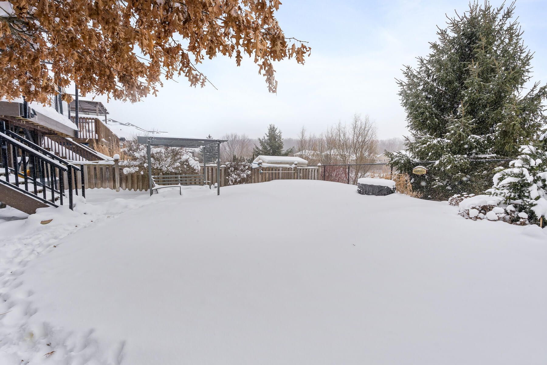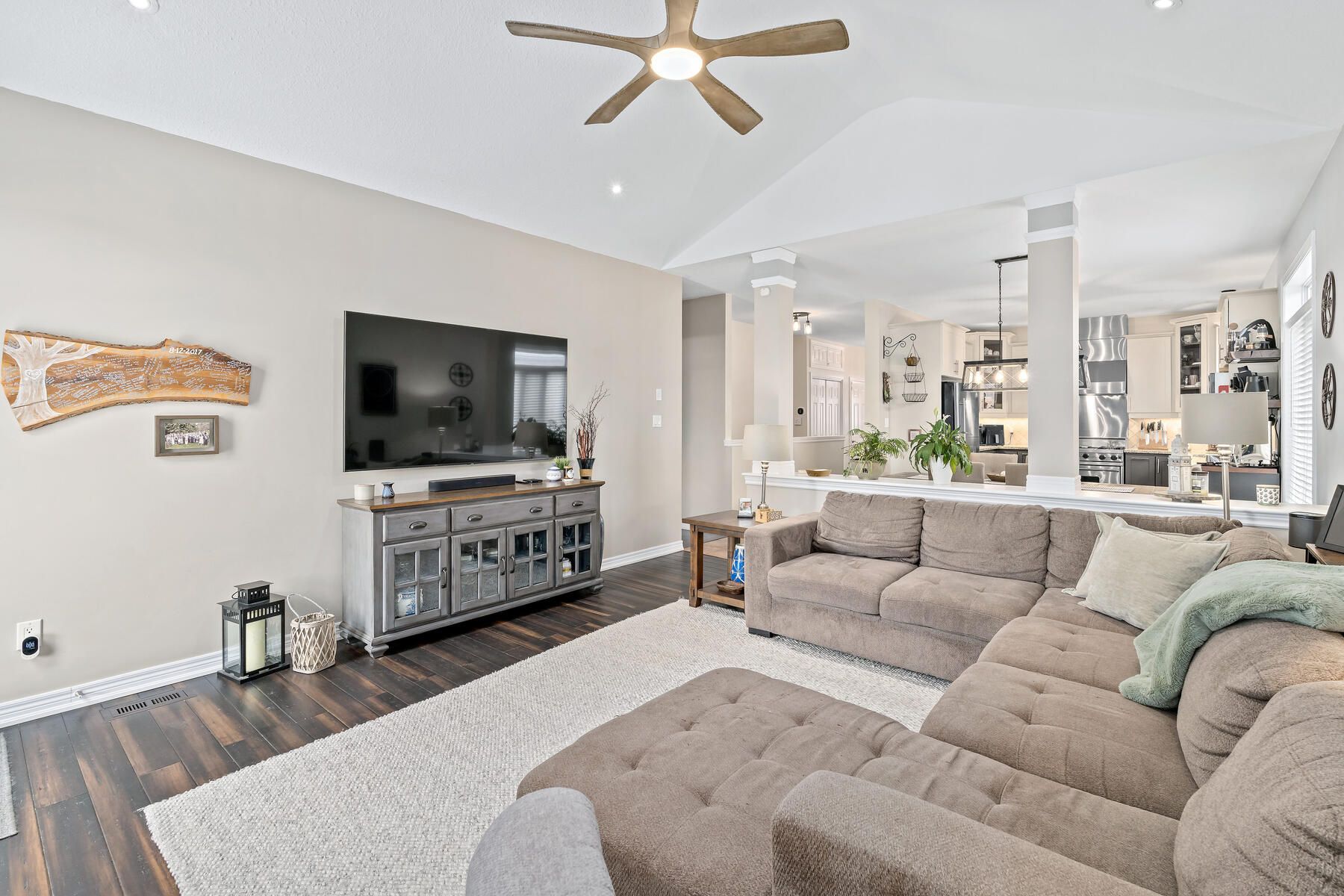 Welcome to this beautifully maintained bungalow located on one of Rockwood's most desirable courts, offering privacy, tranquility, and exceptional outdoor living. This stunning home features 9' ceilings on the main level, an upgraded kitchen with high-end appliances including a Viking gas stove, taller upper cabinetry with crown moulding, and granite countertops-perfect for both everyday living and entertaining.The spacious great room boasts vaulted ceilings with recessed lighting, creating a bright and open atmosphere. The primary bedroom suite offers peaceful pond views and includes a luxurious 5-piece ensuite. A convenient main-floor laundry rough-in adds flexibility for future use.The fully finished walk-out basement provides excellent additional living space, featuring two generously sized bedrooms, a 3-piece bathroom, and abundant storage-ideal for guests, extended family, or a home office setup.Step outside to your private backyard retreat, complete with an inground pool (2019), Trex deck with stairs, and hot tub, creating a true resort-style oasis-perfect for summer entertaining and year-round enjoyment.Located in a quiet, family-friendly neighbourhood close to parks, conservation areas, trails, schools, and amenities, this home offers an outstanding lifestyle opportunity in the heart of Rockwood, Ontario.
