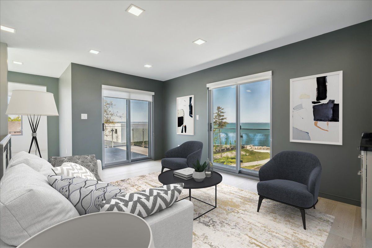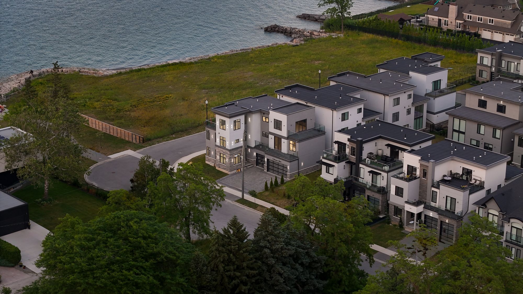 A rare opportunity to lease an exceptional waterfront home just steps from the lake and marina. This impressive three-storey residence offers over 5,000 sq. ft. of bright, well-designed living space with beautiful lake views from multiple levels. Ideal for family living, the home features 6 bedrooms, 7 bathrooms, and two full kitchens, making it perfect for a larger or multigenerational household. The main level includes a welcoming foyer, formal dining area, private office, and a spacious family room filled with natural light and lake views. Hardwood and porcelain tile flooring run throughout the home-no carpet-making it easy to maintain. The kitchen is thoughtfully designed with custom cabinetry, quartz countertops, and stainless steel appliances, offering both function and style. Upstairs, generously sized bedrooms each include private ensuites and balconies overlooking the water. The primary suite offers a spa-like five-piece ensuite and a large terrace, ideal for enjoying lake sunsets. The third level provides additional bedrooms, a loft with wet bar, and flexible space for work or relaxation. The finished lower level includes a second kitchen, recreation room, full bathroom, and bedroom-ideal for extended family or guests. Professionally landscaped grounds feature a stone interlock driveway and a three-car garage. Walking distance to the waterfront, marina, schools, and shops. All utilities to be paid by the tenant. Ideally suited for a responsible family seeking a long-term lease in a premium lakeside setting.