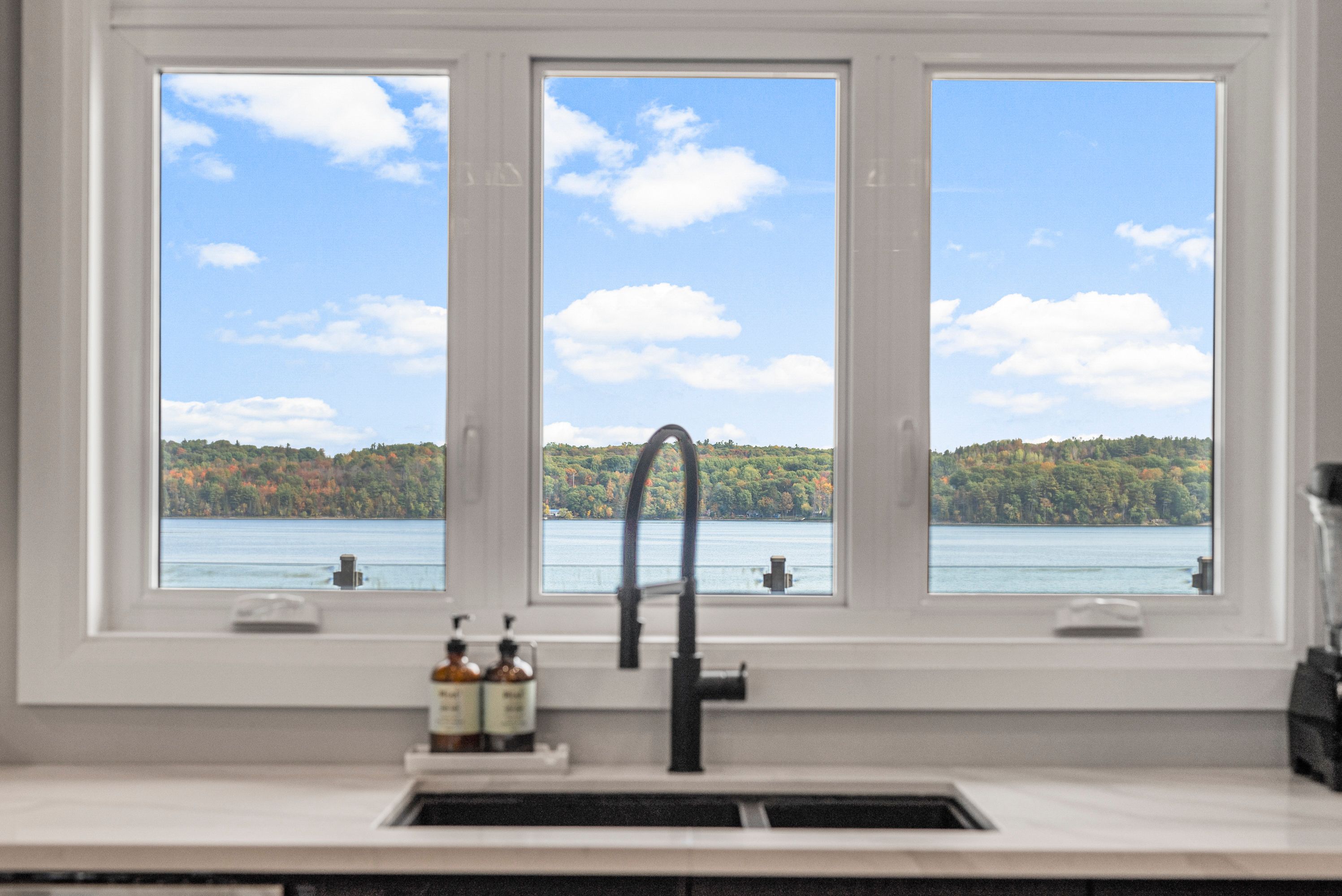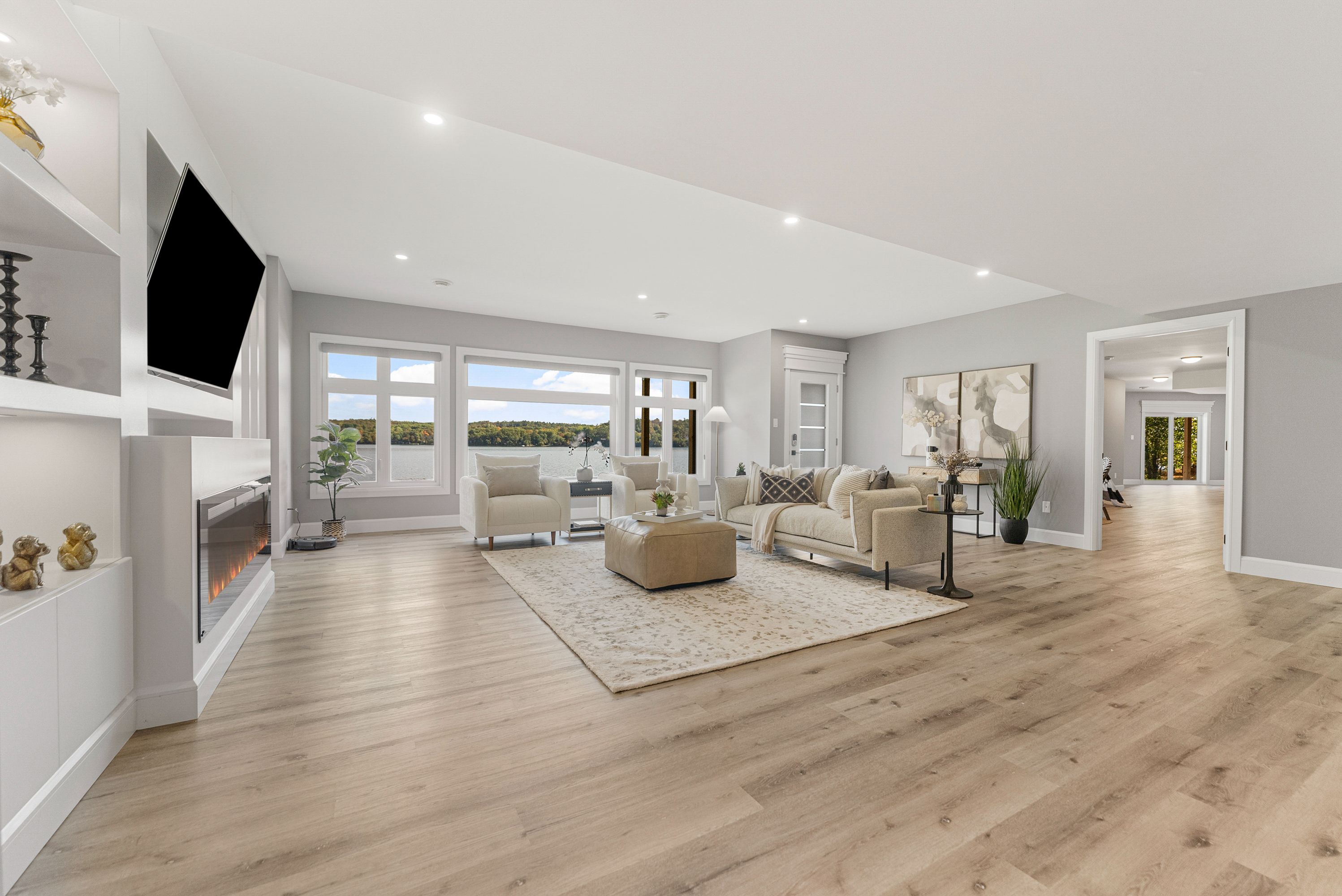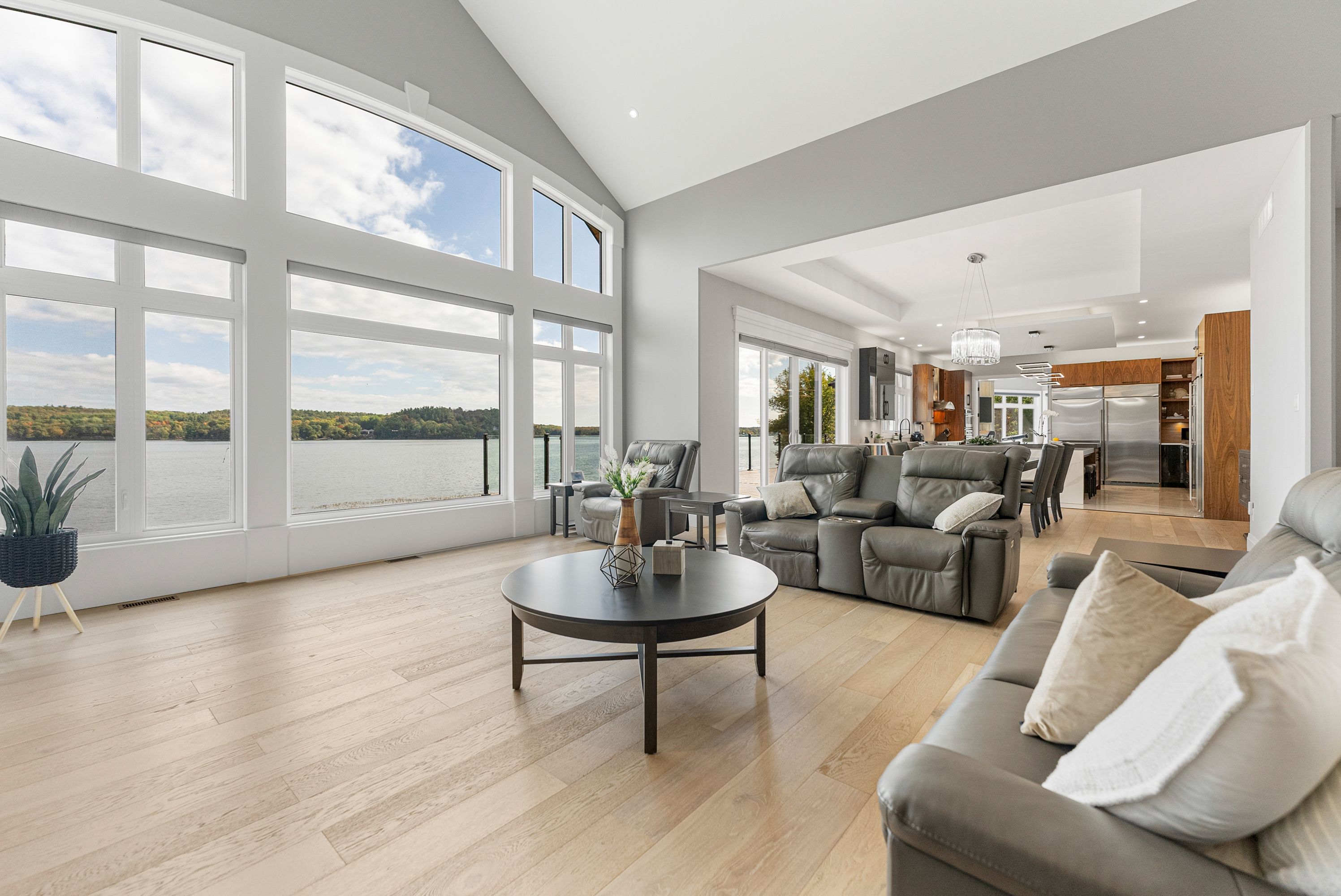Substantial custom waterfront home offering exceptional scale, privacy, and quality. Approximately 2,900 sq ft per level with impressive volume throughout, complemented by a 1,300 sq ft triple-bay garage. Recently installed Glow Getters exterior lighting enhances curb appeal and creates a striking nighttime presence. Set on west-facing direct waterfront with tranquil water views at the rear and open fields at the front, this property is located on a private road shared with six residences, offering a mature and private setting. The thoughtfully designed kitchen offers a highly functional dual-sink layout and a complete suite of premium integrated appliances, including dual refrigeration and a Bosch built-in coffee station. Interior finishes include oversized porcelain tile, engineered hardwood throughout, and triple-pane windows, selected for quality, comfort, and timeless design. A Generac generator provides peace of mind. Ideally positioned approximately one hour from Ottawa's West End, with convenient access via Hwy 17, 25 minutes to Renfrew Hospital, and 20 minutes to Pembroke Regional Hospital and major shopping. Close to Whitewater Brewing Co., Oaks of Cobden Golf Club, beaches, Algonquin Trail access, and quality local schools. A rare offering combining scale, privacy, and lifestyle.