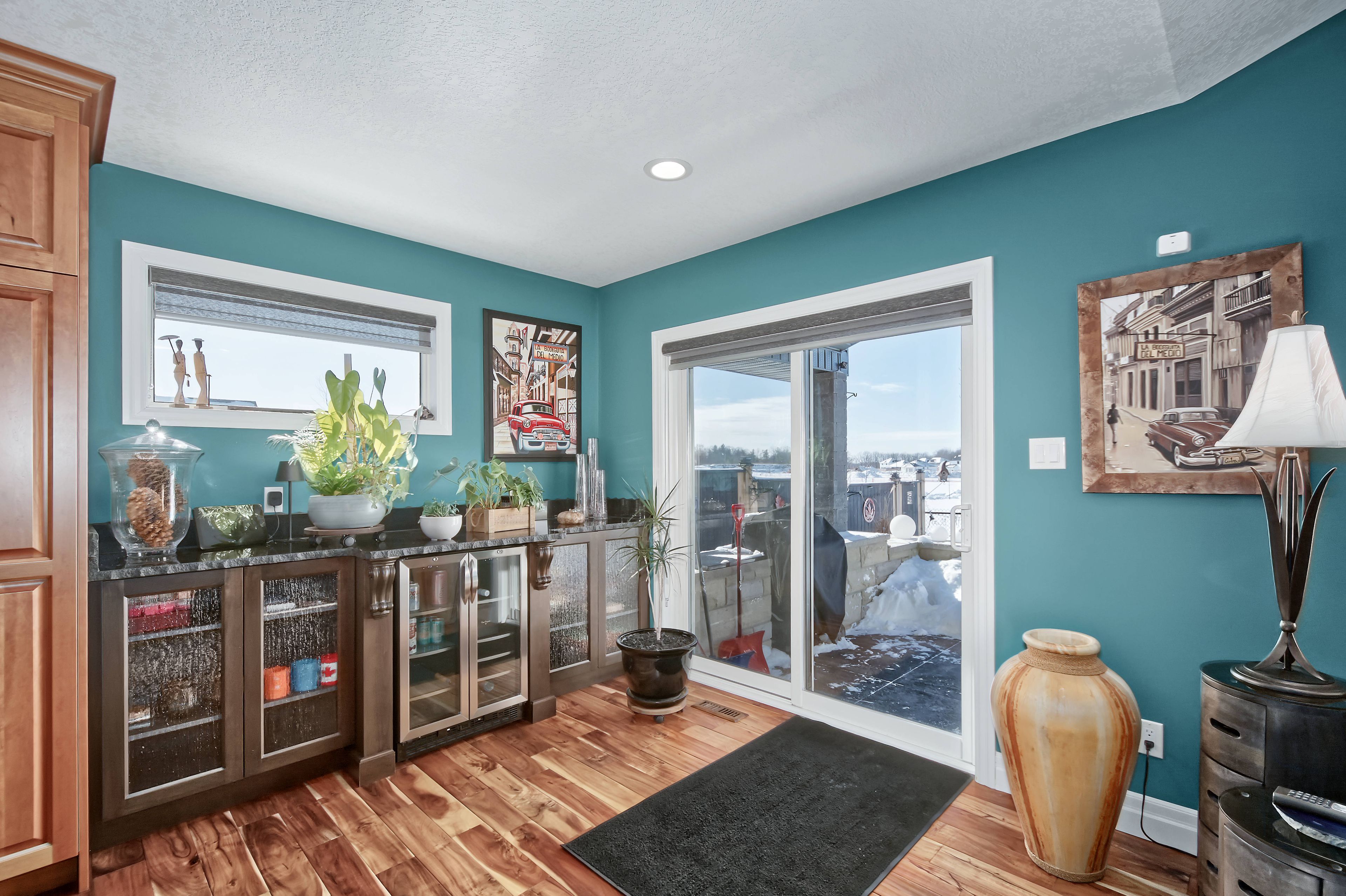- Interior Features: Carpet Free, Central Vacuum, Primary Bedroom - Main Floor, Bar Fridge