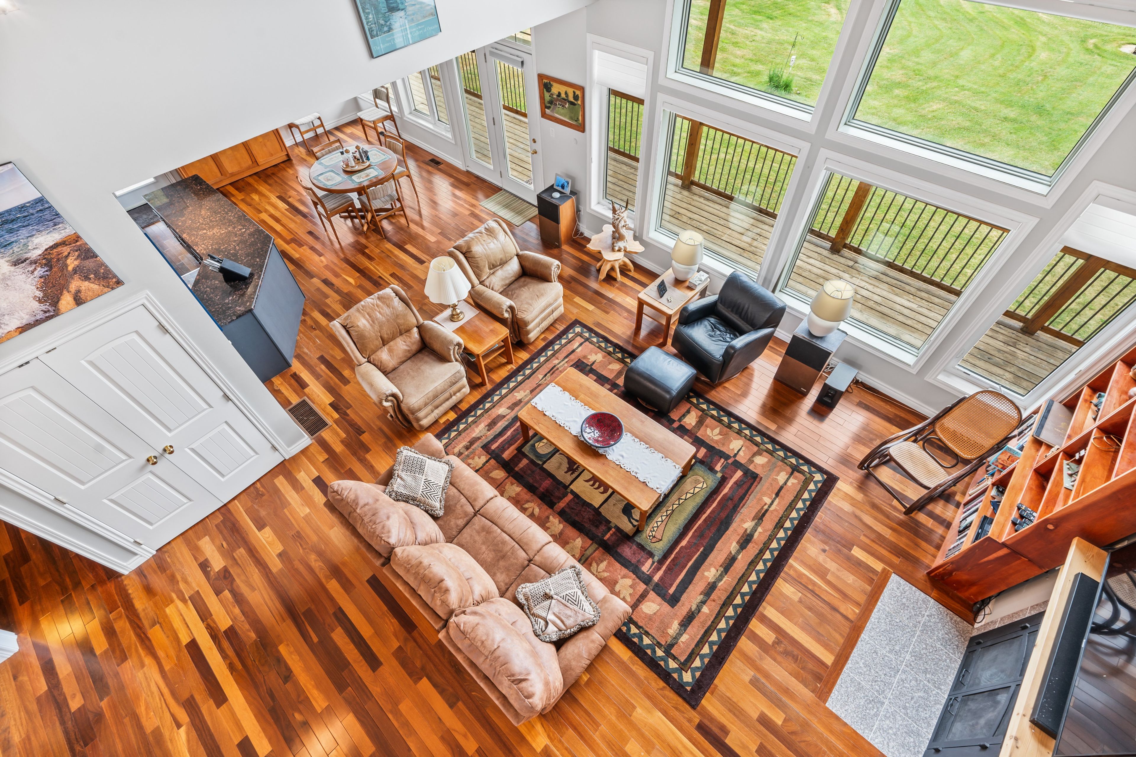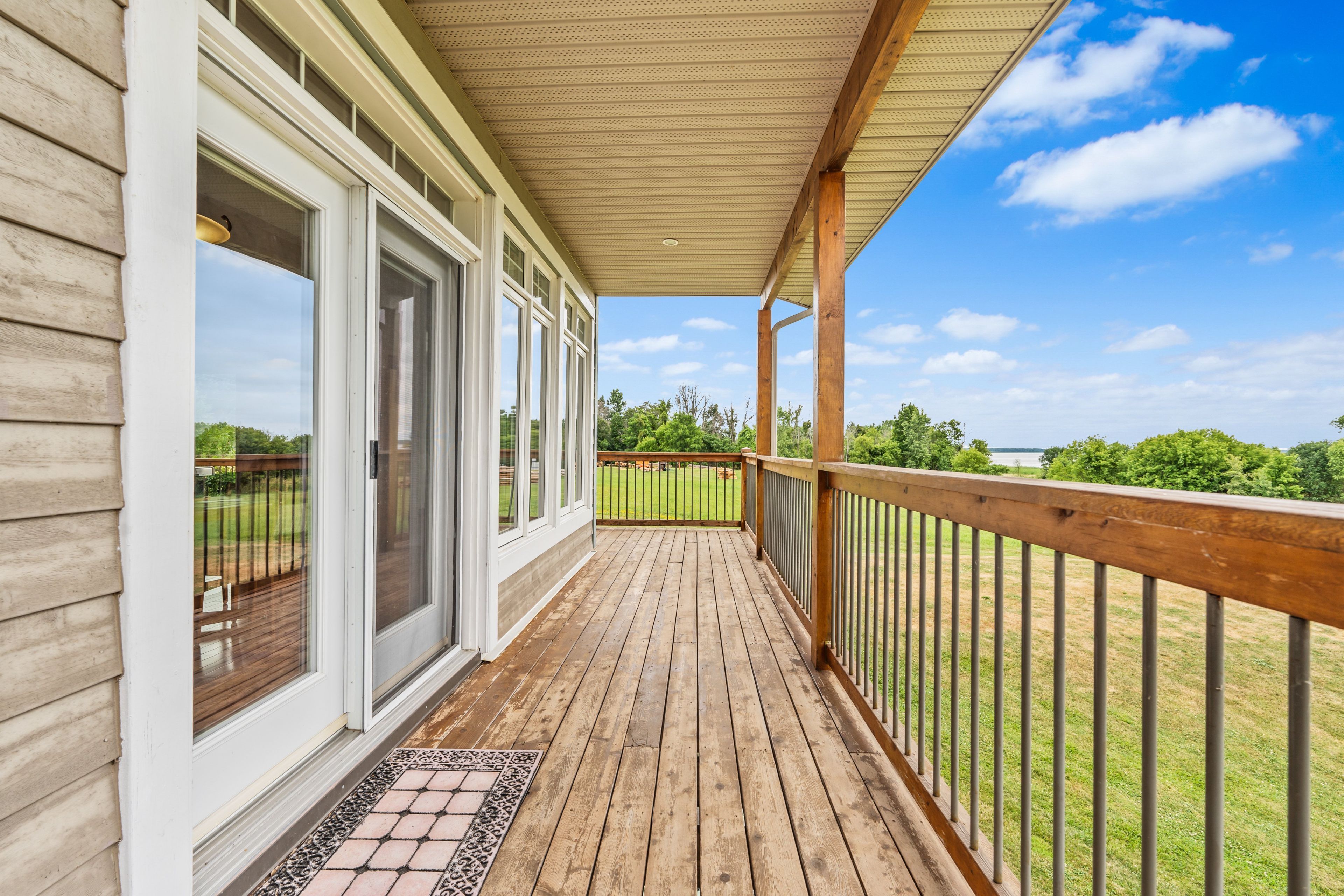 Welcome to your dream home on the shores of Hay Bay! This custom-built two-story masterpiece, constructed in 2012, blends luxury, comfort, and scenic beauty. Set on a 1.72-acre lot with 202 ft of waterfront, it offers unparalleled living. As you arrive, a double wide paved driveway leads to an attached 2-car garage and a distinctive detached 40' x 58' garage, complete with hydro and oversized doors (12'x14' & 12'x12'), ideal for boats, RVs, or a workshop. Inside, the main level impresses with 28 ft high cathedral ceilings adorned with BC Fir wood beams. Expansive windows illuminate interiors and offer picturesque views of the landscaped backyard and sparkling waters. This level includes a cozy living room with a gas fireplace, an office/den, and a gourmet kitchen with granite countertops, oak cabinetry, and a breakfast bar. The dining room and easy deck access enhance indoor-outdoor living, as well as entrances from the laundry room, and connections to the garage. Two spacious bedrooms, one with deck access, plus a 3 pc and a 4 pc bath, complete this level. Ascend the beautiful wooden staircase to discover the private sanctuary of the Primary suite. Here, you'll find a spacious bedroom complemented by two walk-in closets and a 4 pc ensuite, providing the ultimate retreat. The finished lower level enhances the home's entertainment and storage capabilities. The rec room features a wet bar, 2 pc bath, cold cellar, substantial storage room, and a utility room. Additionally, a semi-finished bedroom with walk-out offers flexibility for your needs. The outdoor space is nothing short of spectacular, with meticulously designed flower gardens and a 10'x24' floating dock invites you to embrace the waterfront lifestyle. Located just minutes from downtown Napanee, this home provides the perfect combination of convenient access to amenities and the privacy and tranquility of waterfront living.
