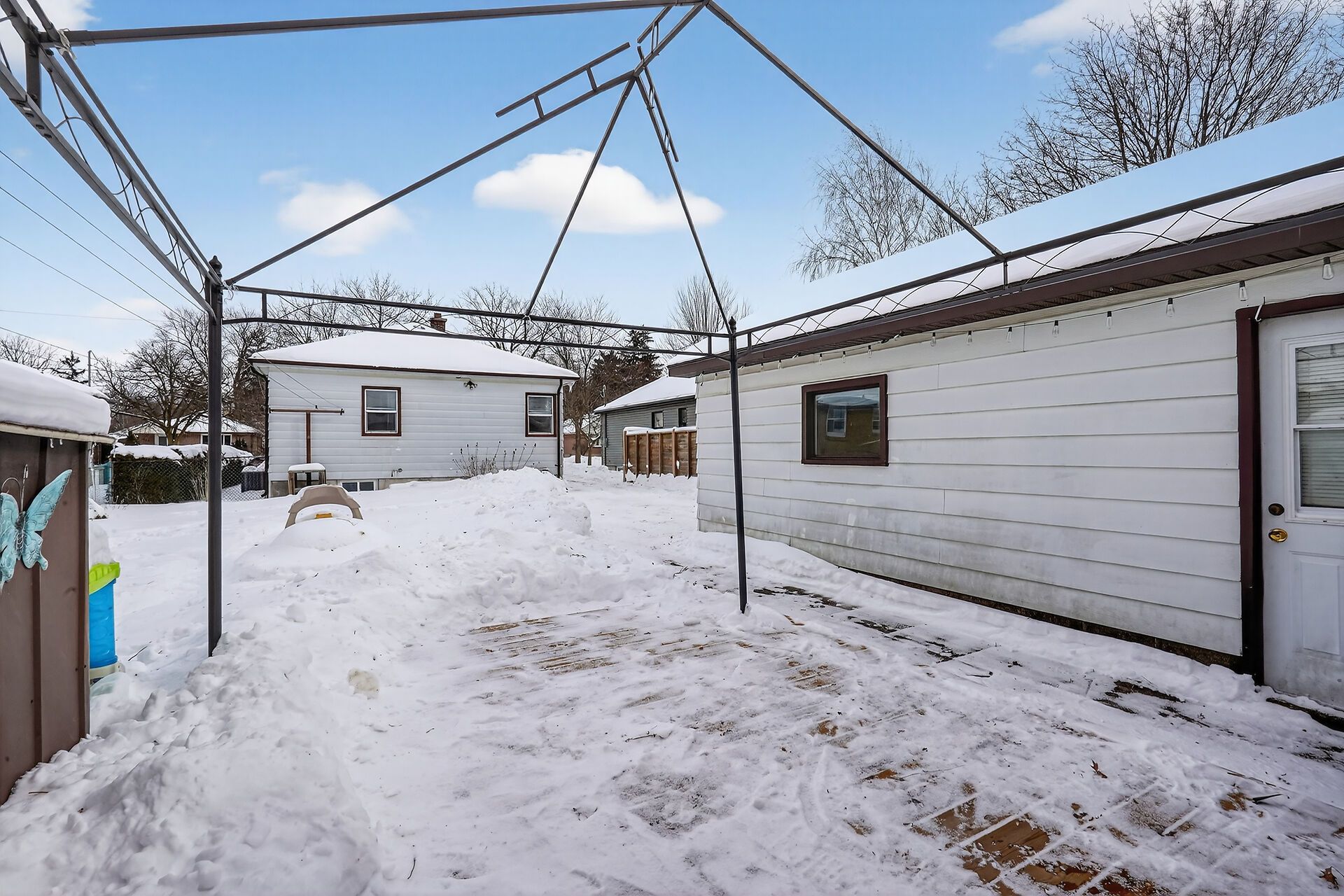 Welcome to 225 Sterling Street located in North East London Ontario! This well-maintained and thoughtfully updated home offers a perfect blend of comfort, and functionality. Featuring 2 main-floor bedrooms and 2 full bathrooms, this move-in ready home has also been freshly painted throughout.The main level offers updated laminate flooring (2020) and a bright, refreshed upstairs bathroom with tile flooring, BathFitter tub/shower, pot lights, exhaust fan, and new vanity and toilet.The lower level provides excellent additional living space with vinyl flooring throughout (2021) and a renovated basement bathroom (2022) complete with vinyl flooring, new vanity, and toilet. Laundry updates include a newer washer, dryer, and laundry sink (2021).The kitchen was enhanced with new vinyl flooring in 2025 and a new dishwasher in 2024, while major mechanical peace of mind comes with a new air conditioner installed in 2024. Sewer pipe from house to road replaced in 2019. Step outside to enjoy the backyard deck featuring a soft-top gazebo and privacy lattice-ideal for relaxing or entertaining. Convenient detached garage. This home is perfect for first-time buyers, downsizers, or investors looking for a solid property in a convenient location close to amenities, schools, and transit. Book your showing today!