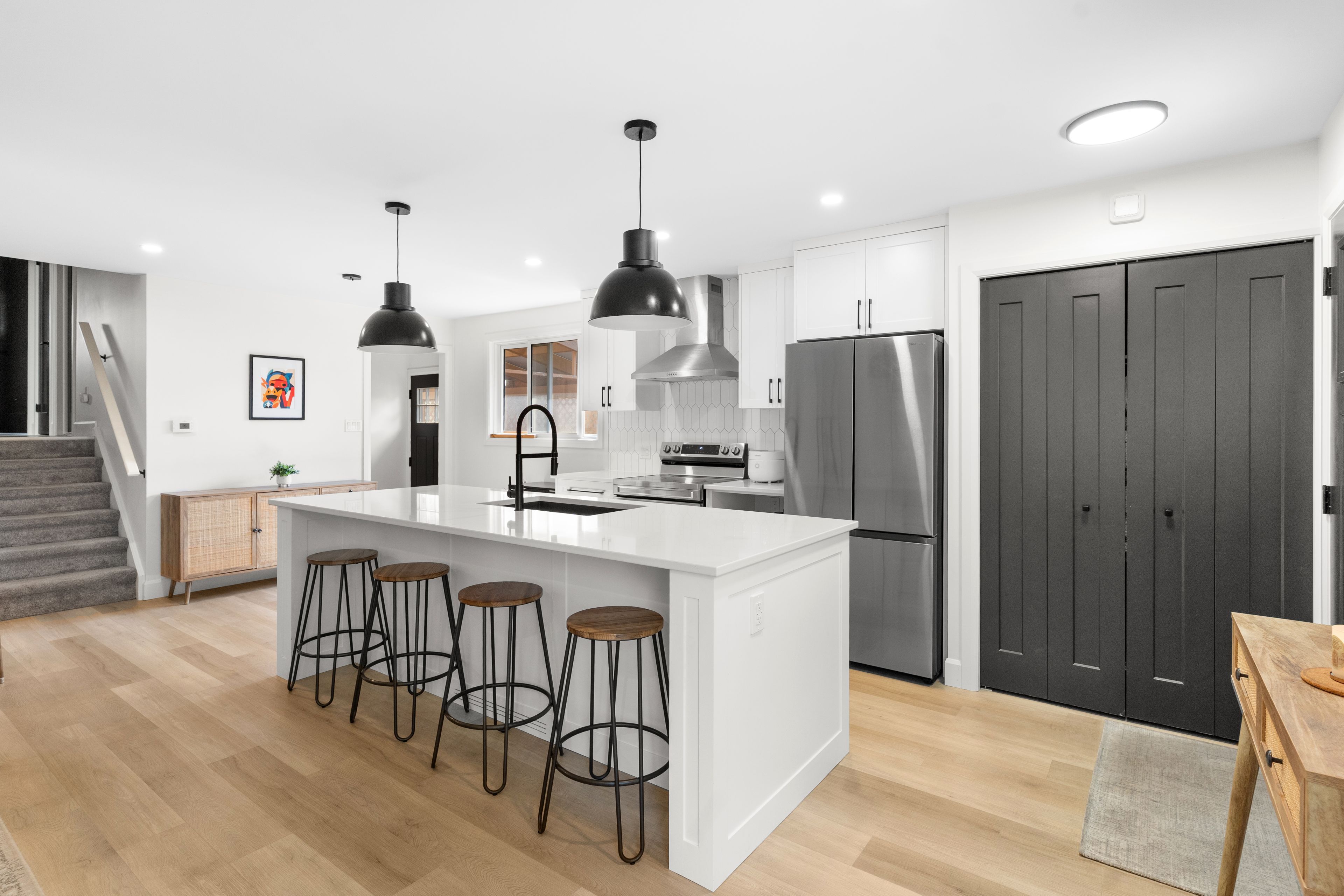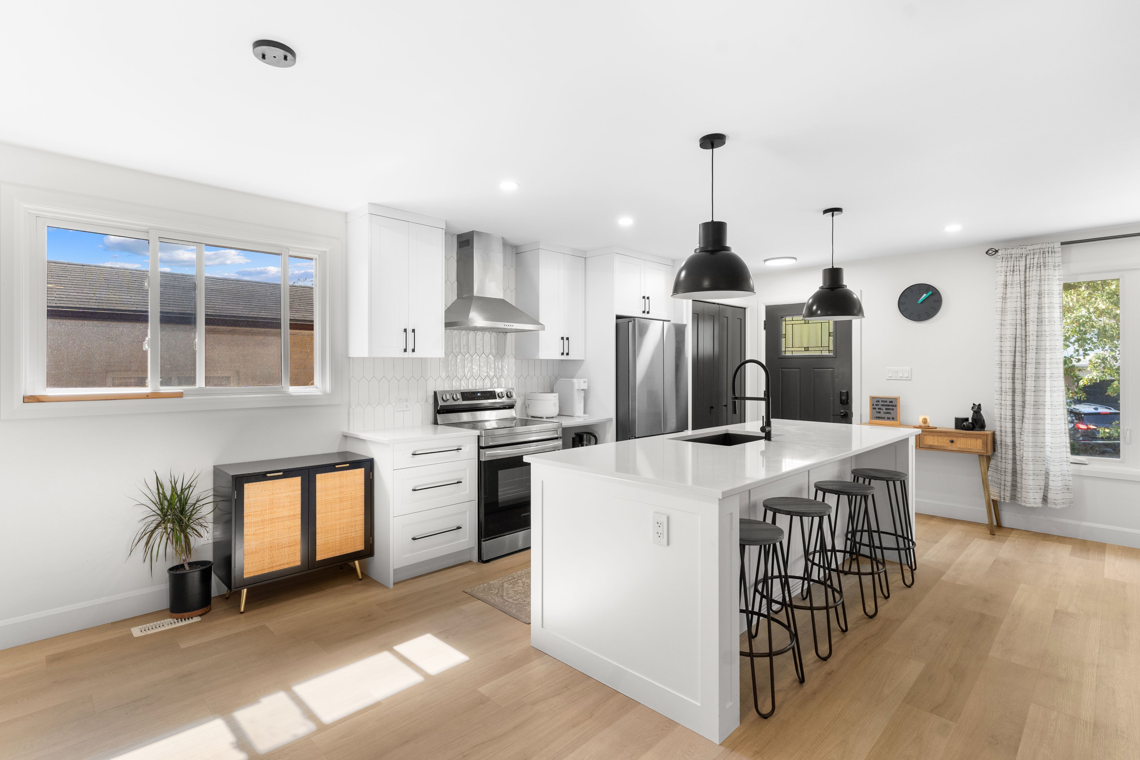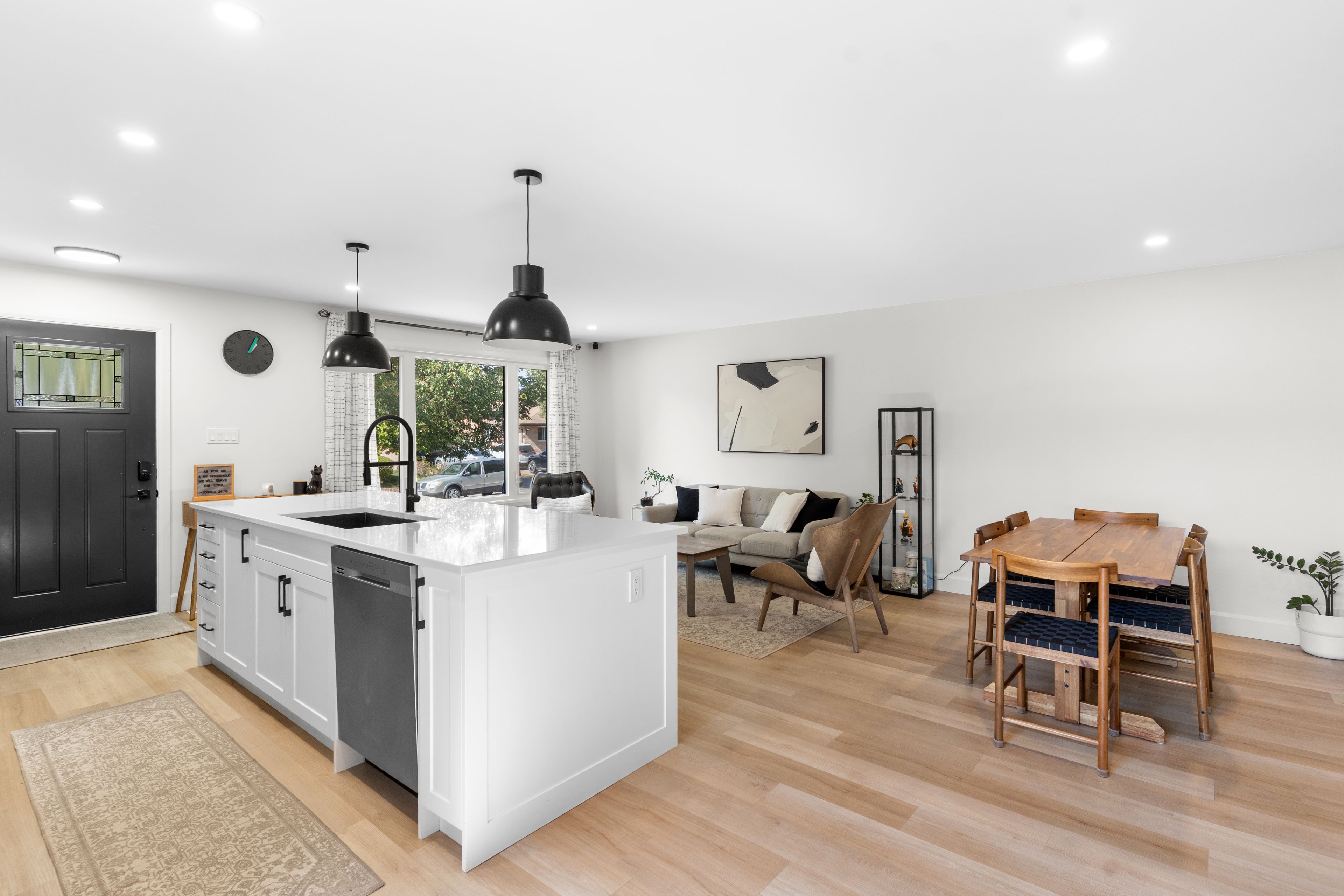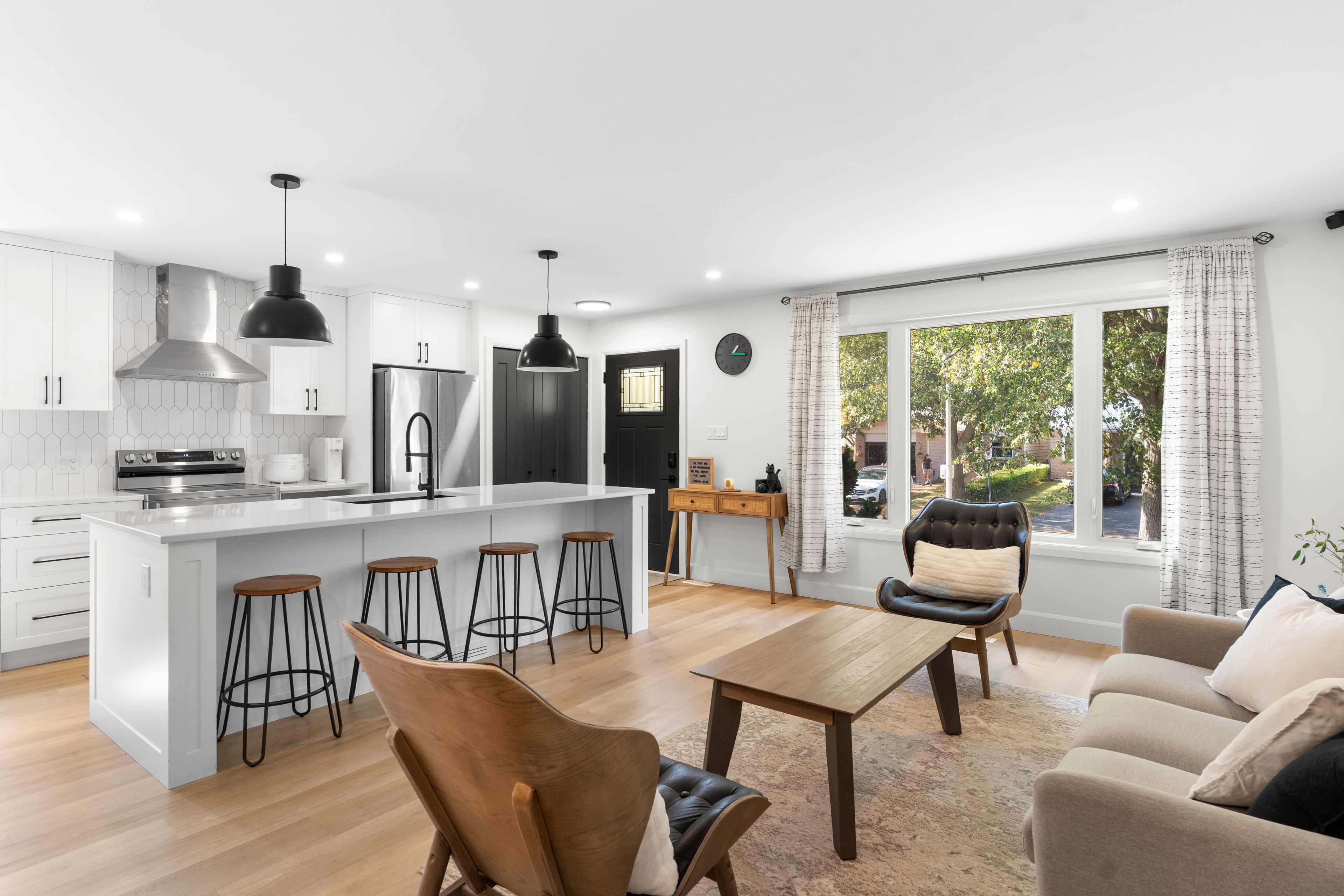 Welcome to 779 Monsarrat Avenue, a fully renovated 3 bedroom, 2 bath, four level back split in sought after North Carling. This home blends modern design with everyday functionality. The open concept kitchen features a large quartz island, sleek black fixtures, and new stainless steel appliances. Luxury vinyl plank flooring runs throughout, and both bathrooms showcase stylish tile and bold black finishes. The lower level offers a bright family room perfect for movie nights, while the basement includes a finished flex area and private office ideal for working from home or a home gym. A side walk up provides potential for an in law or income suite. Outside, enjoy a covered composite deck, landscaped yard, and two sheds for storage. Parking for two on the asphalt driveway. Close to Fanshawe College, schools, parks, and community amenities, this home is move in ready and designed for modern living.