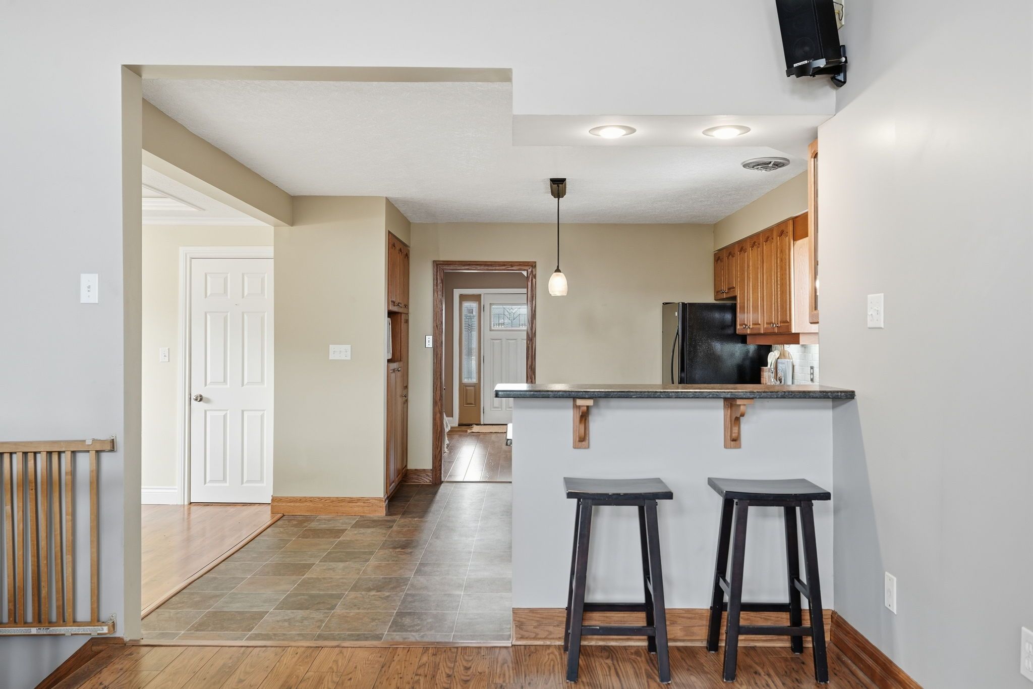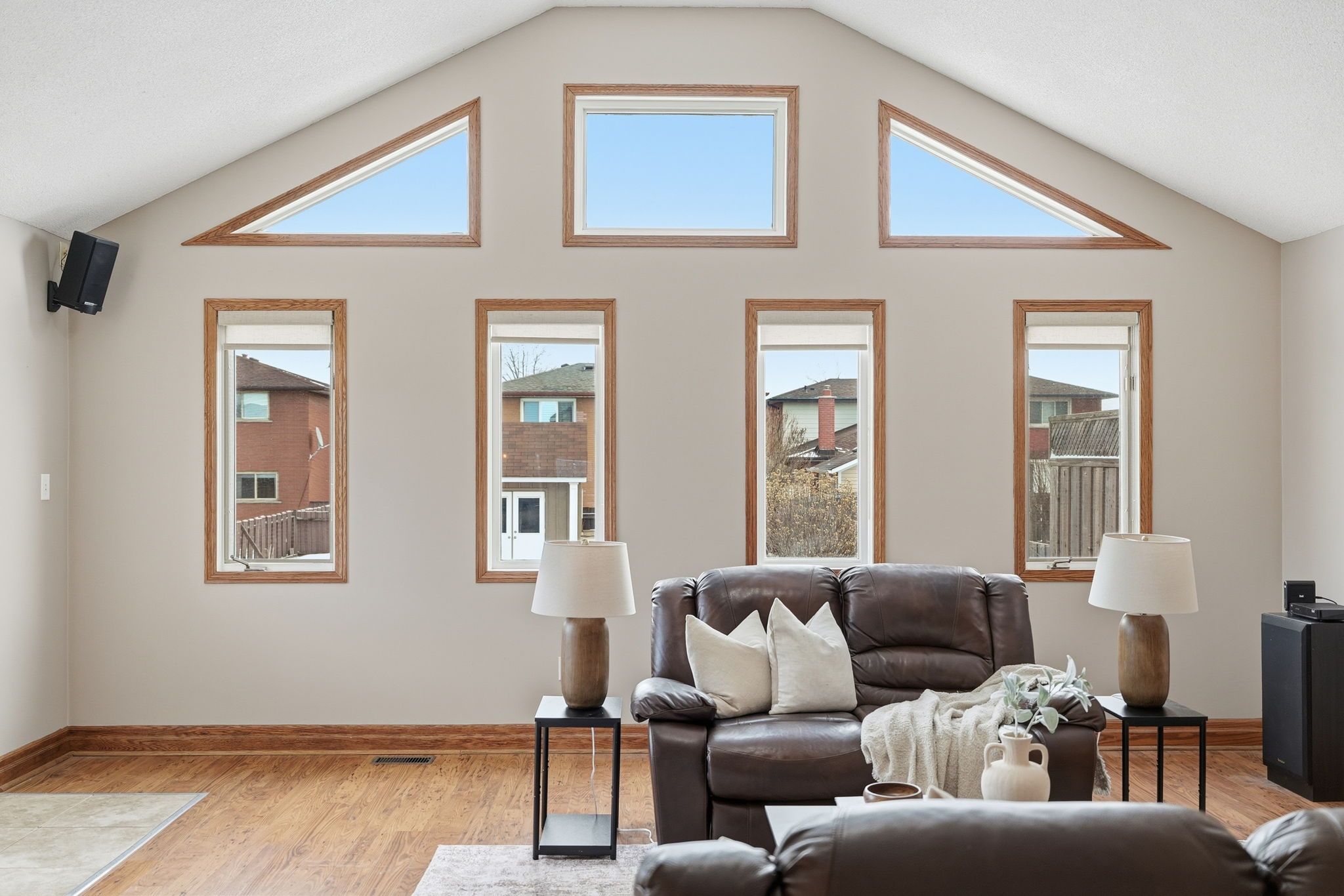 This spacious Stoney Creek home offers exceptional versatility for modern family living, thoughtfully designed with comfort, flexibility, and future possibilities in mind. Situated on an oversized lot in a sought-after neighbourhood, the property delivers generous living space both inside and out. The main level is designed for everyday ease and memorable gatherings. This level is open concept with a dining room and a wood kitchen looking onto the impressive family room with natural light soaring through the many windows and high vaulted ceiling that creates a striking sense of openness. A rare main-floor bedroom paired with a convenient 3-piece bathroom provides an ideal solution for anyone seeking accessible one-level living, guests and extended family. Upstairs, three well proportioned bedrooms offer comfortable private retreats filled with natural light, along with a full bathroom to serve the upper level. The lower level provides incredible flexibility for evolving family needs.Featuring a large recreation room, 2-piece bathroom, spacious den, and an additional room, this level offers exceptional space to customize to your lifestyle. With its separate exterior entrance, it presents exciting potential for multi-generational living, an in-law setup, a private retreat for teenagers or older children, or expanded living space for the family - a versatile area ready to be shaped by your vision. Step outside to a private backyard designed for relaxation and entertaining, set on an impressive 200-foot deep lot. Alongside the above-ground pool seamlessly integrated into a custom deck, there is abundant green space with plenty of room for family gatherings, lawn games, and outdoor fun - the perfect setting for making lasting memories. Located close to schools, parks, shopping, and major highway access, this home combines convenience with long-term living flexibility in a desirable Stoney Creek location - ideal for families seeking space that grows with them.