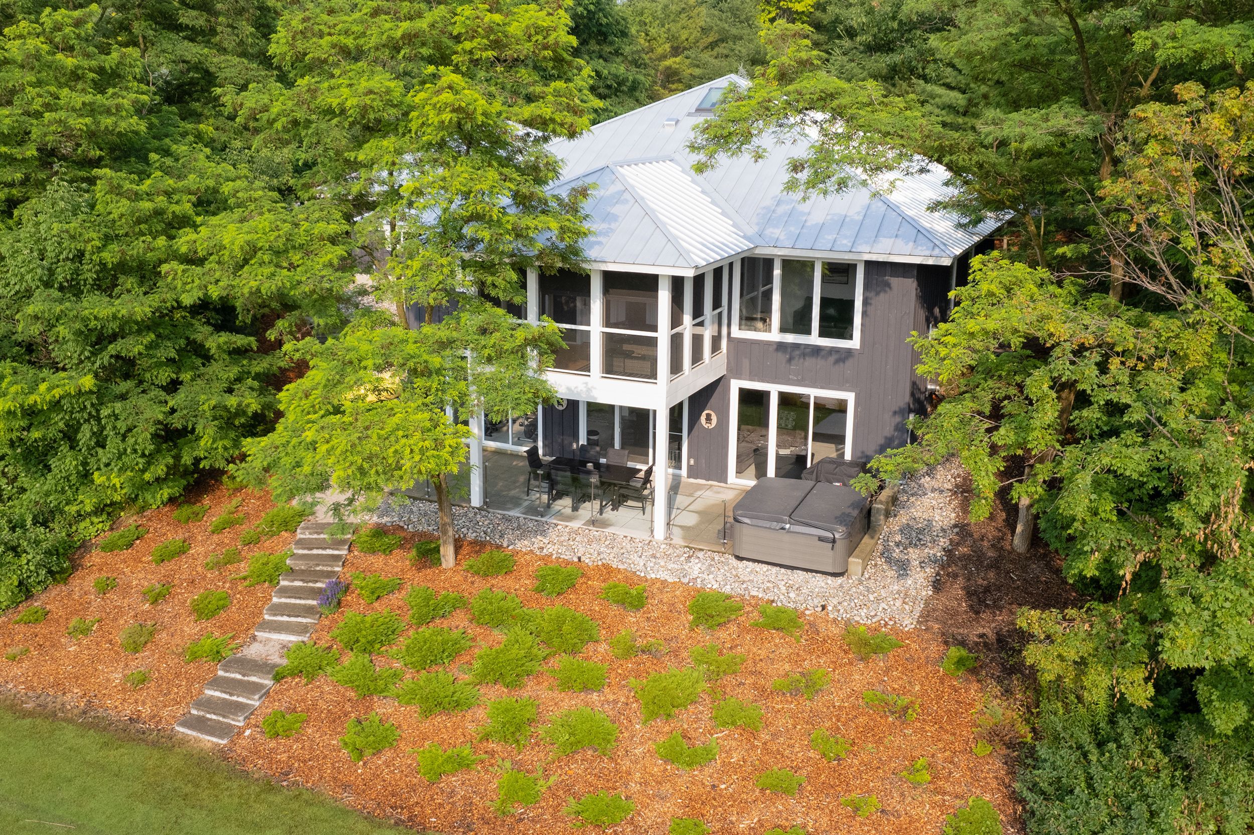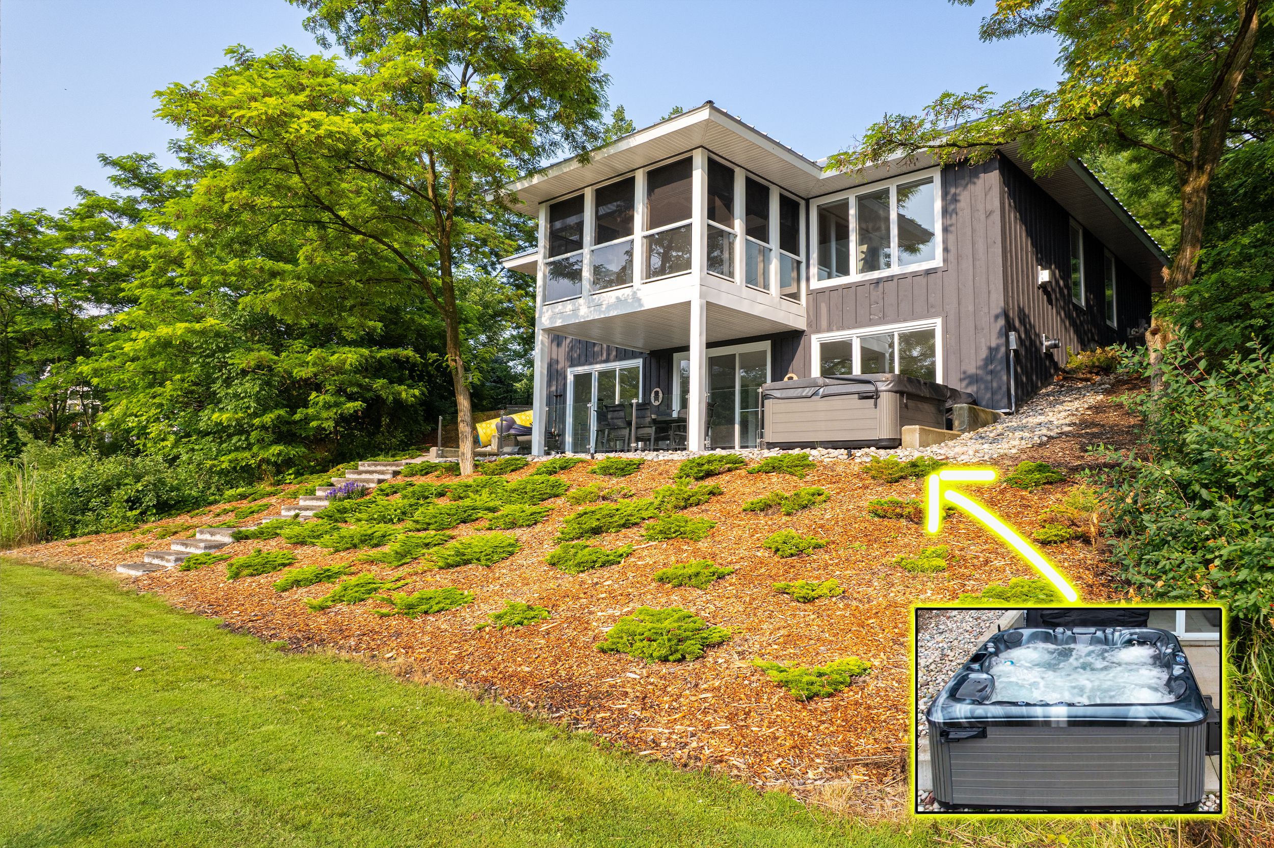 - Exterior Features: Hot Tub, Lawn Sprinkler System, Lighting, Porch, Privacy, Seasonal Living, Year Round Living