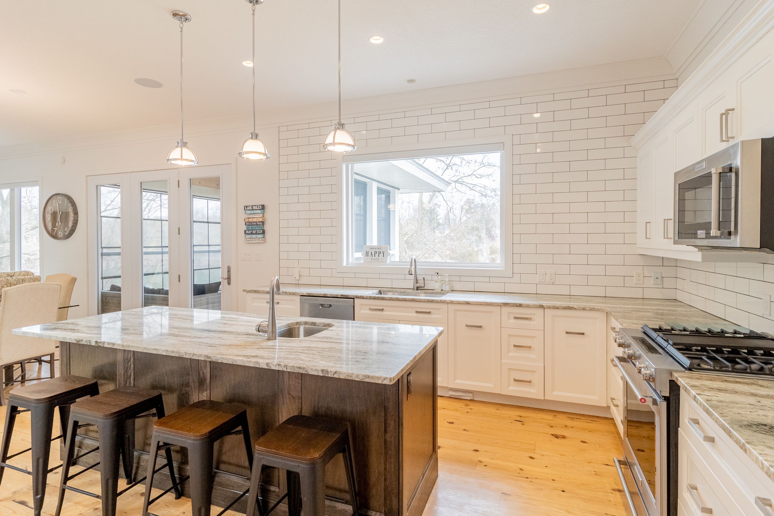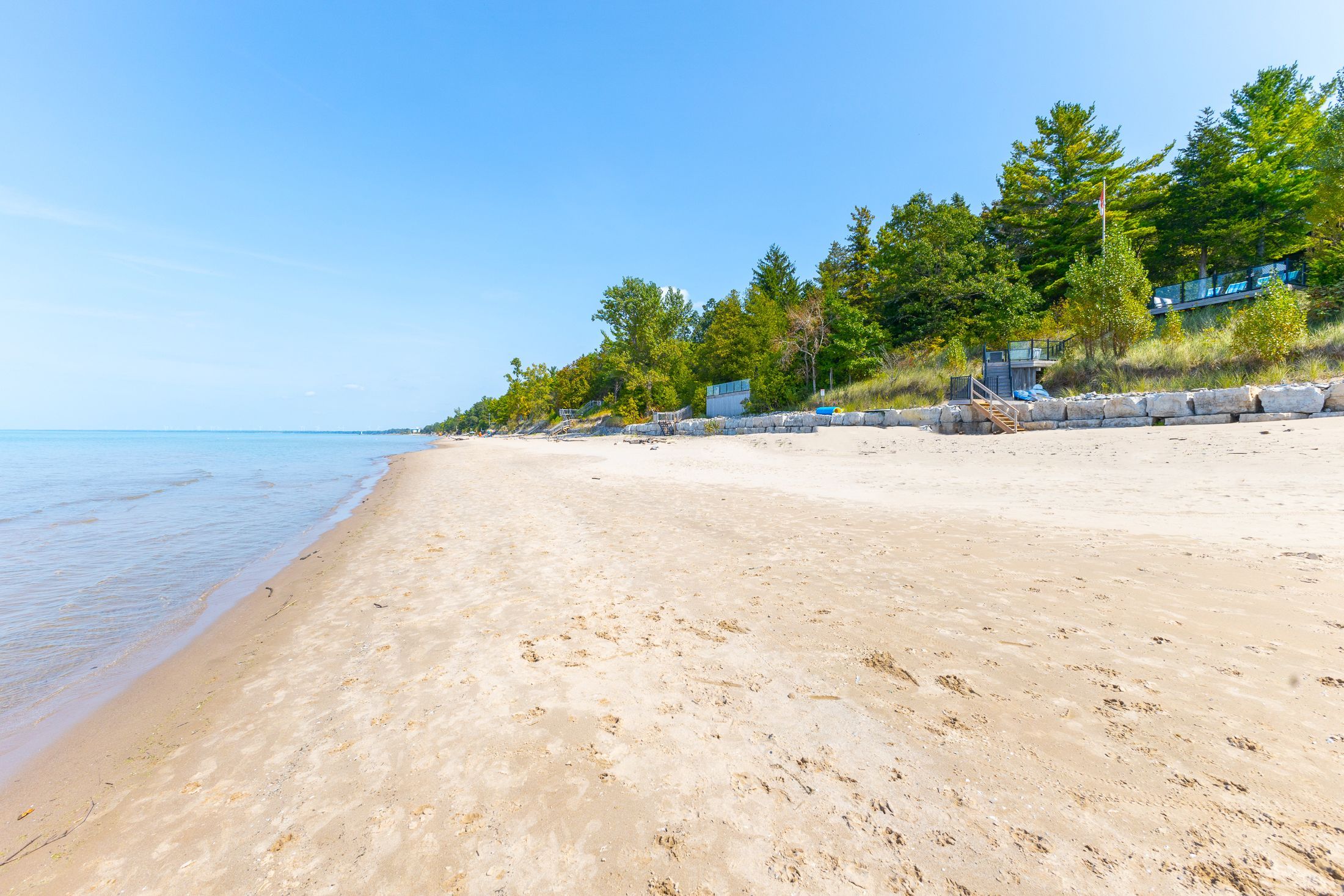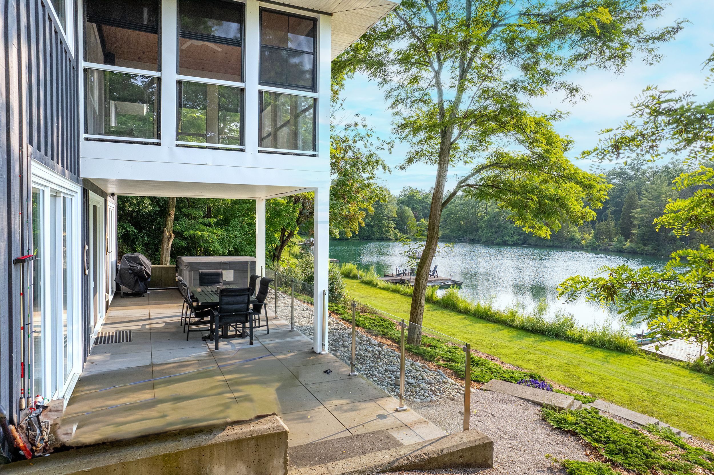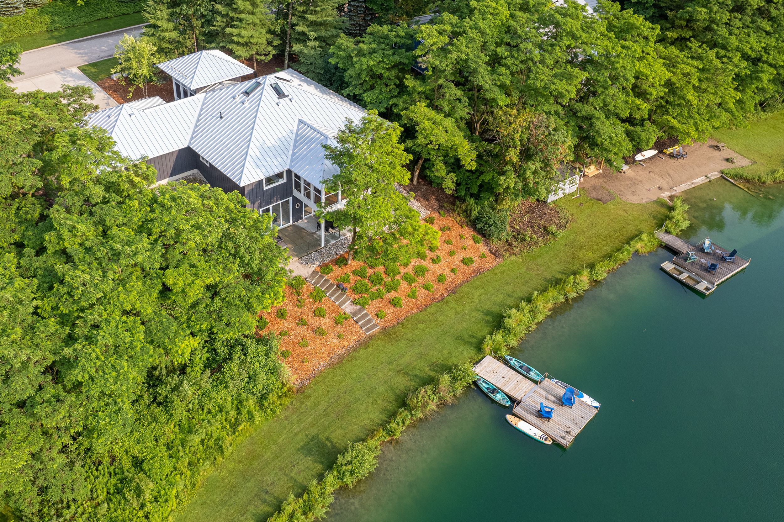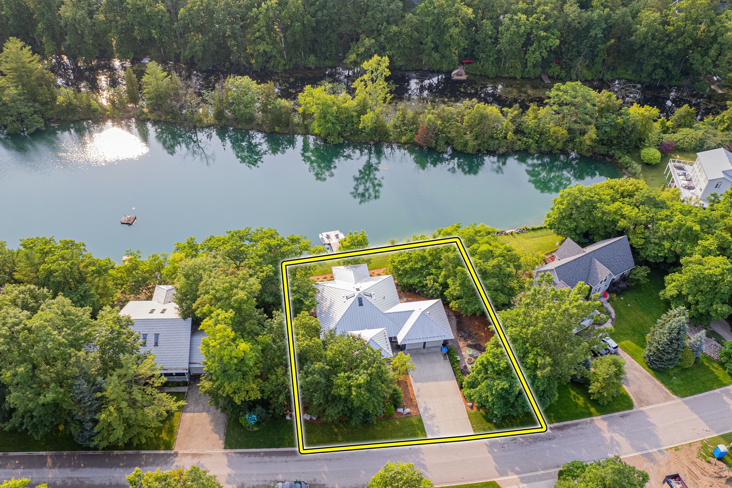 MUSKOKA IN GRAND BEND | WATERFRONT ON PRIVATE LAKE w/ SPECTACULAR VIEWS | STEPS TO SANDY BEACH ACCESS: Welcome to Wee Lake, Grand Bend's best kept secret featuring a crystal clear sparkling blue spring fed private lake for swimming, paddle boarding, fishing & kayaking + stellar skating & family hockey in the winter + access to the Ausable River for even better fishing! Fall in love with this young custom 4 bed/4bath walk-out bungalow, one of only 5 lakefront properties nestled into this secluded subdivision, which is a small & quiet single cul de sac community on the beachside of the HWY. With only 36 parcels total & lake access limited to Wee Lake residents (sharing 1/36 ownership of lake), this tranquil & peaceful naturally fed sparkling phenomenon is barely used. This stunning architecturally designed custom masterpiece fronts the lake w/ 134' of priceless linear water frontage. Providing exceptional main floor living framing-in nonstop lake views + a sprawling lower level walking out to your included hot tub & swimming/fishing dock just 50 ft from your poured concrete patio, this is a 10+! The layout is brilliant, w/ soaring main level ceilings inc. an impressive 20+ ft vault & 10 ft ceilings throughout rest of main, a stellar master suite w/ ensuite/walk-in, laundry w/ sink + 2nd laundry in lower, 2 more main level bedrooms (one w/ a 1/2 bath ensuite/ ideal for home office), 2 sunrooms (guest sleepers), 2 gas fireplaces, lower level walk-out w/ bed & full bath + wall to wall windows - simply perfect. Imagine sipping your morning coffee while the kids or grandkids swim off your private dock w/ the dogs enjoying their fenced in side-yard / dog run. As an ideal family get away, short term rental money maker, or yr round principal residence in the booming beach town of Grand Bend, this is a winner, just to steps to one of our most secluded area beach access points, the Pinedale Rd beach path. Furnished turnkey package may be available (WITH THE RIGHT OFFER)!