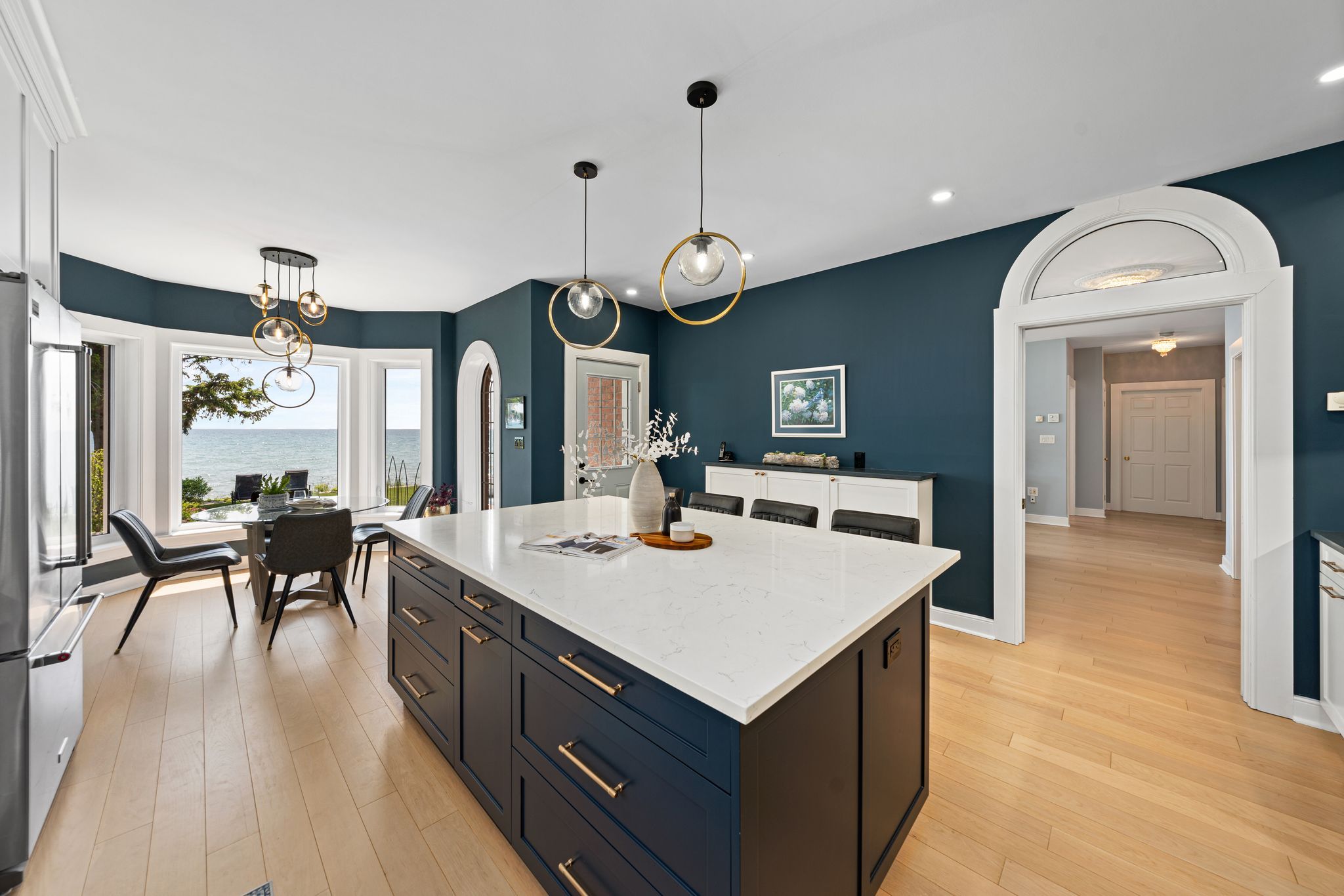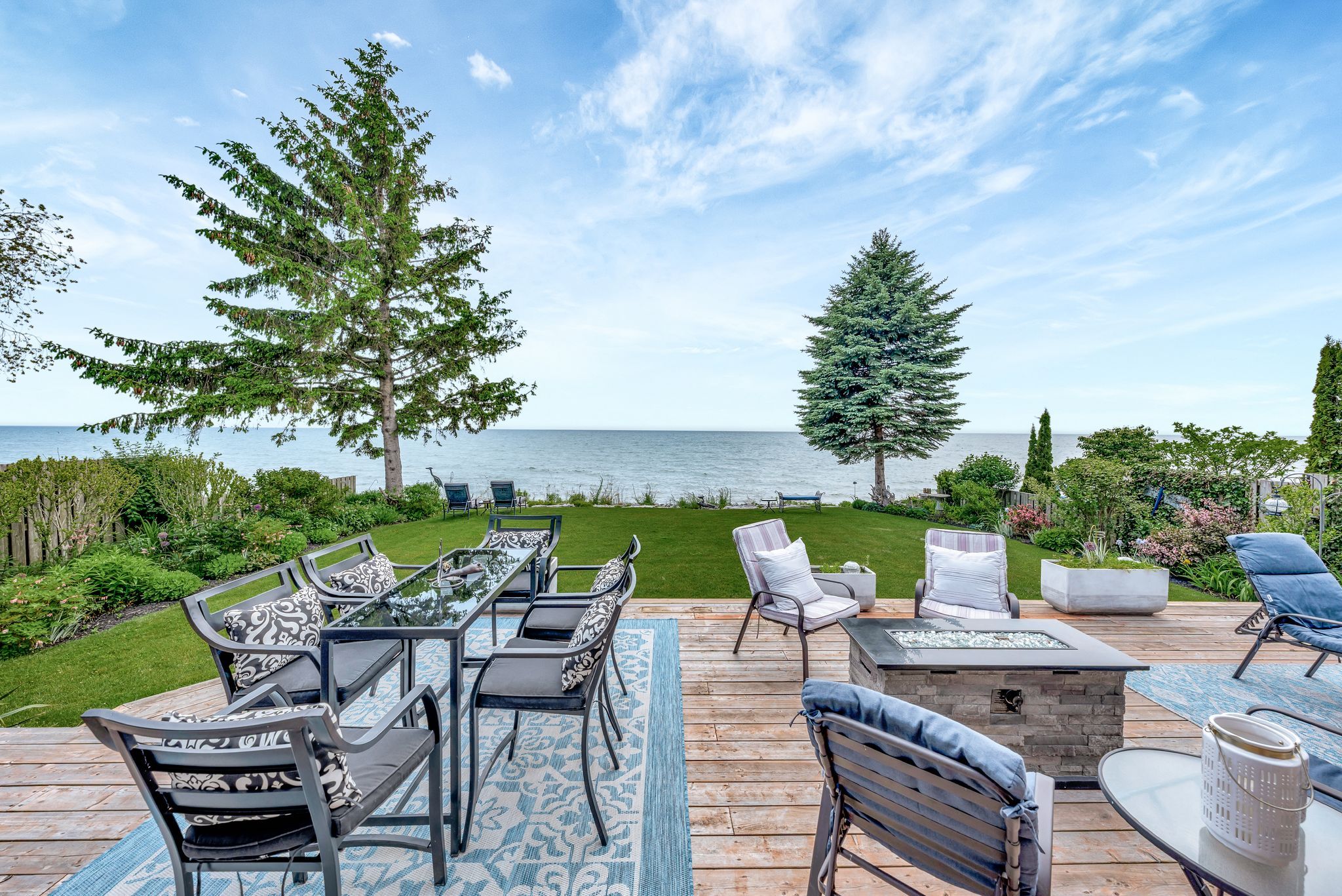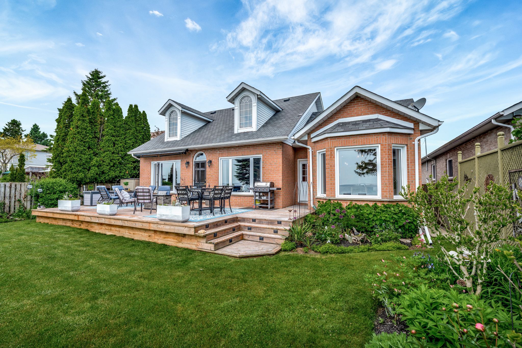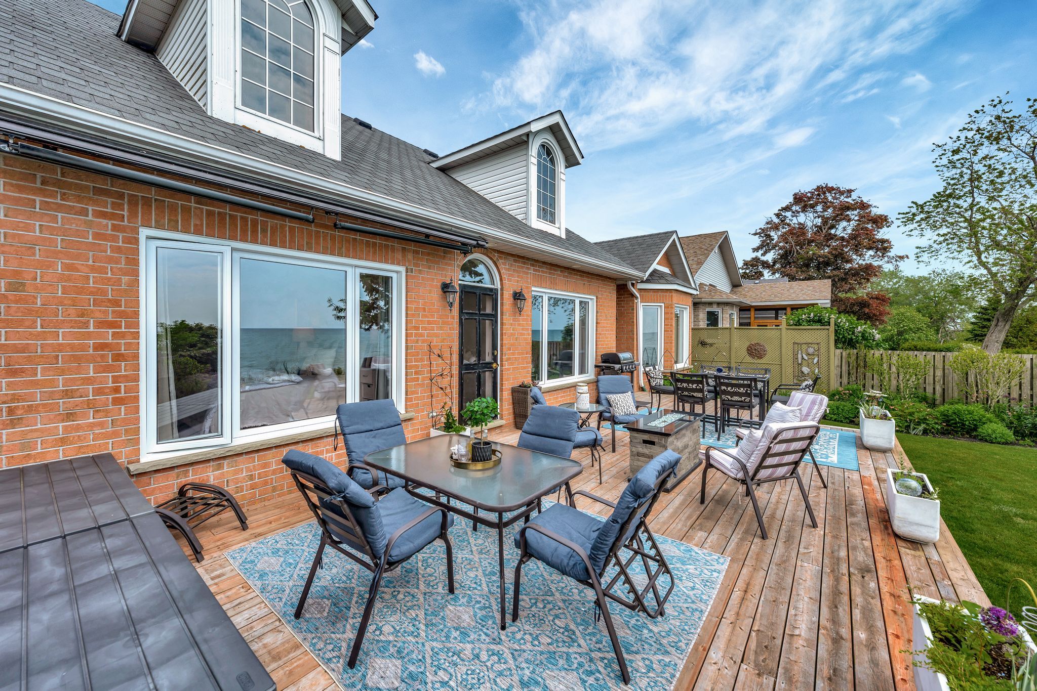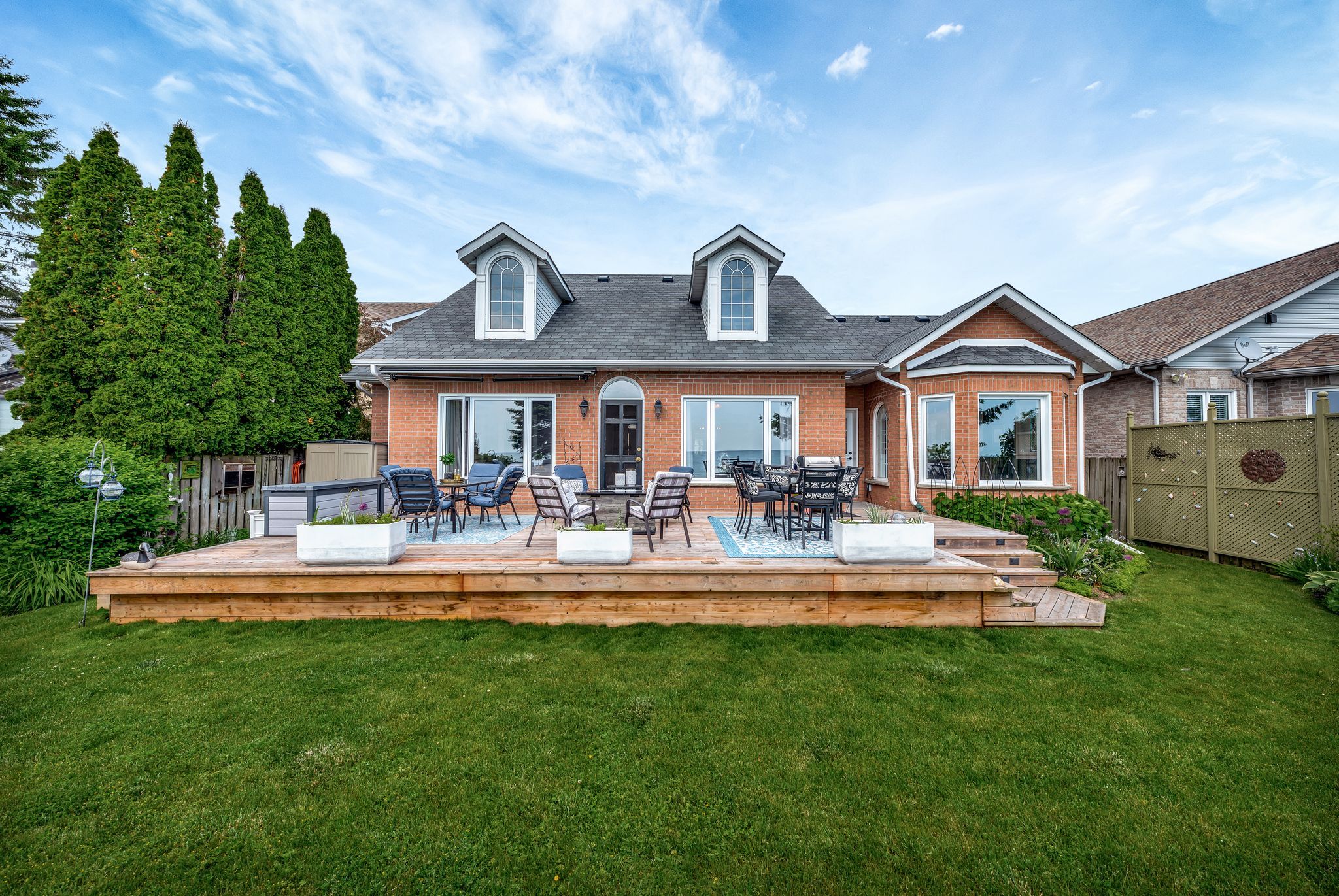 Discover refined waterfront living nestled on an exclusive street, with lake access for swimming just steps away! This modernized, all-brick 2 + 1 bed, 3 bath bungalow is set in one of Cobourg's most coveted neighbourhoods & blends thoughtful renovations with executive functionality. From the stunning curb appeal to breathtaking views, prepare to be impressed. Inside, the expansive floor plan feats. 9ft ceilings on both levels, grand entry foyer with sight lines to the sun-filled family room & formal dining room, while a fully renovated kitchen w/ glass pocket doors feat. sleek quartz countertops modern appliances, including a b/i bar fridge, fridge, stove, microwave & dishwasher provides plenty of room to gather. Complete w/ a large centre island, servery, lakeside breakfast nook & access to the deck. Engineered hardwood floors run throughout creating a sophisticated flow. The primary bed overlooks the lake w/ ensuite privileges to the updated bath, while the 2nd bed overlooks the garden. Appreciate main floor laundry, w/i pantry & mudroom. The finished basement includes a spacious family room, 3rd bed, full bath in addition to a games area, storage & workshop under the stairs. An efficient ICF foundation provides year-round comfort with in-floor heating on both levels. Outside, find a stamped concrete driveway, and professional landscaping throughout. The backyard is a private oasis complete with a retractable awning over the updated deck perfect for entertaining, relaxing, or enjoying the evening lake breeze. Every inch of this home has been thoughtfully maintained and stylishly upgraded, offering a rare opportunity to enjoy an exceptional lifestyle near the water, in the heart of Cobourg. Enjoy morning sunrise & evening sunsets, a short stroll to Cobourg's Peace Park, the West Beach, marina, and downtown Cobourg -- truly the best of small-town living w/ quick access to the 401 & proximity to Northumberland Hills Hospital.
