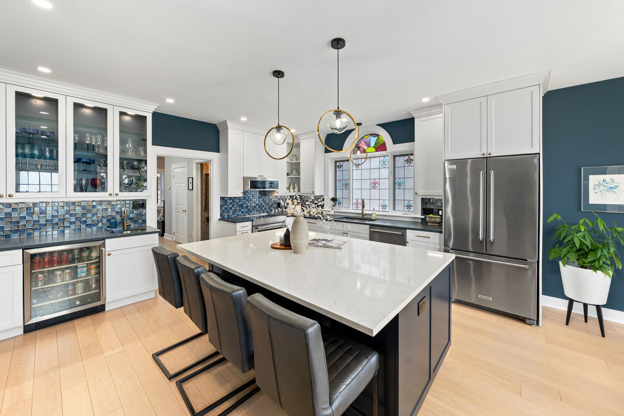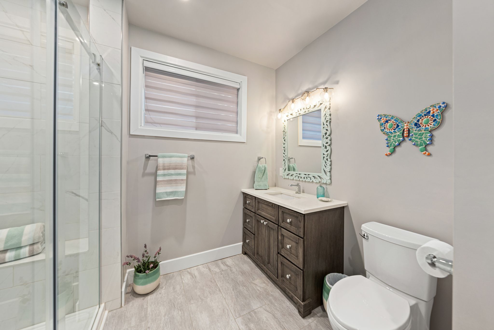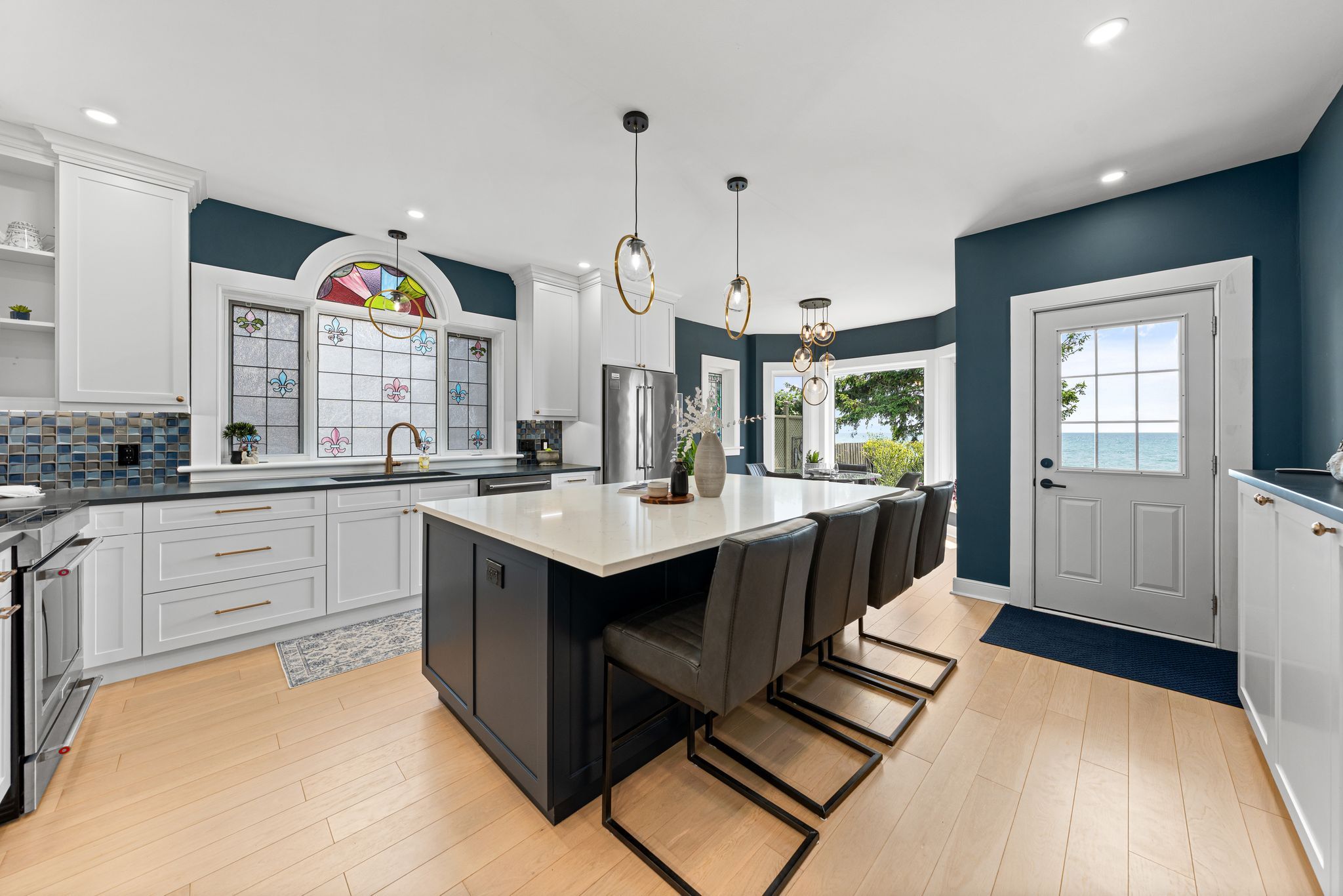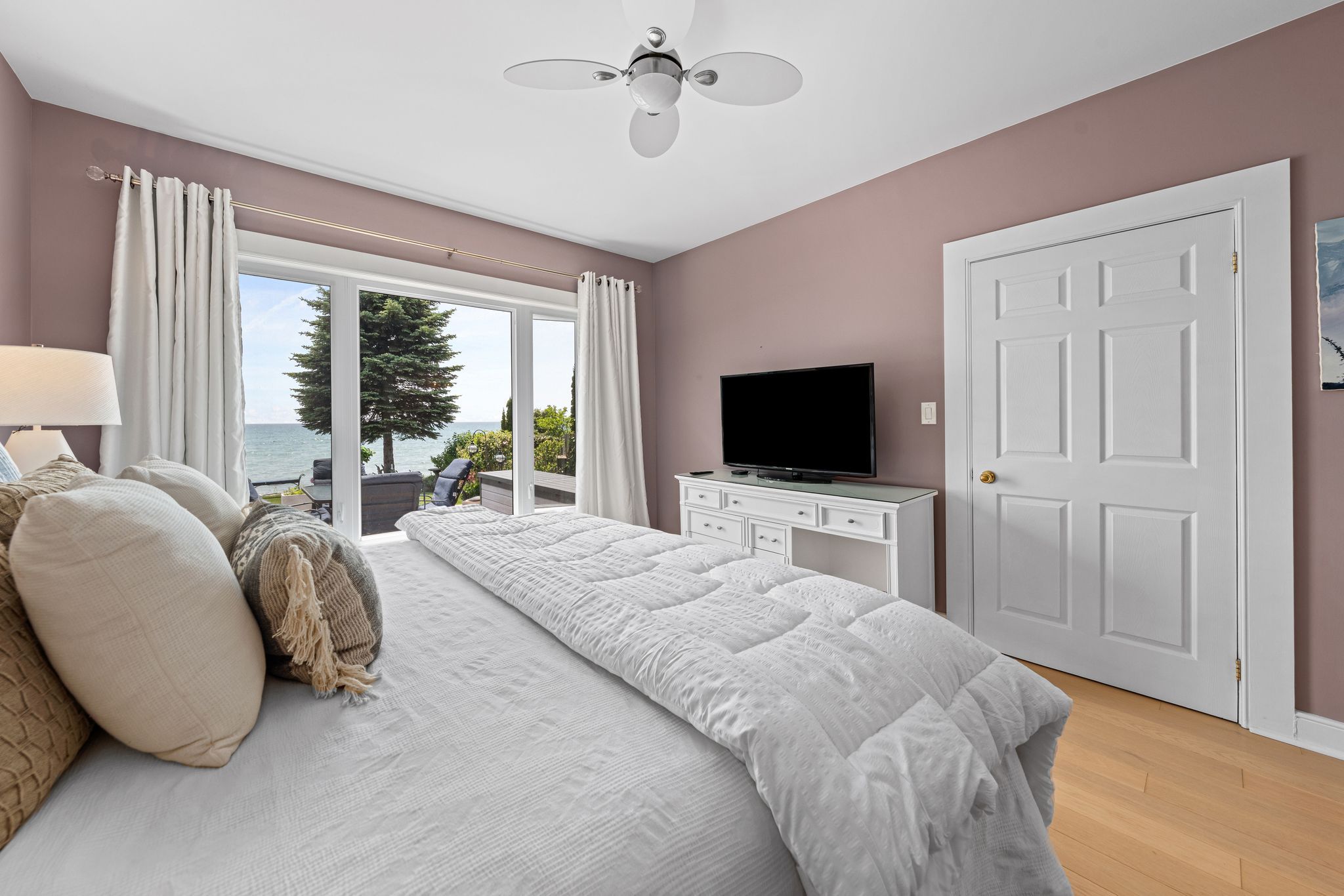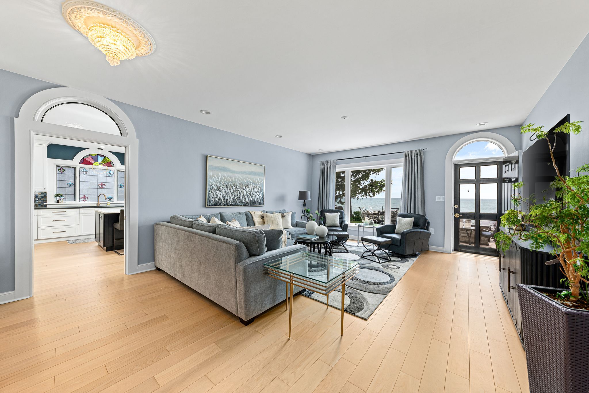 Discover refined waterfront living nestled on an exclusive street, with lake access for swimming just steps away! This modernized, all-brick 2 + 1 bed, 3 bath bungalow is set in one of Cobourg's most coveted neighbourhoods & blends thoughtful renovations with executive functionality. From the stunning curb appeal to breathtaking views, prepare to be impressed. Inside, the expansive floor plan feats. 9ft ceilings on both levels, grand entry foyer with sight lines to the sun-filled family room & formal dining room, while a fully renovated kitchen w/ glass pocket doors feat. sleek quartz countertops modern appliances, including a b/i bar fridge, fridge, stove, microwave & dishwasher provides plenty of room to gather. Complete w/ a large centre island, servery, lakeside breakfast nook & access to the deck. Engineered hardwood floors run throughout creating a sophisticated flow. The primary bed overlooks the lake w/ ensuite privileges to the updated bath, while the 2nd bed overlooks the garden. Appreciate main floor laundry, w/i pantry & mudroom. The finished basement includes a spacious family room, 3rd bed, full bath in addition to a games area, storage & workshop under the stairs. An efficient ICF foundation provides year-round comfort with in-floor heating on both levels. Outside, find a stamped concrete driveway, and professional landscaping throughout. The backyard is a private oasis complete with a retractable awning over the updated deck perfect for entertaining, relaxing, or enjoying the evening lake breeze. Every inch of this home has been thoughtfully maintained and stylishly upgraded, offering a rare opportunity to enjoy an exceptional lifestyle near the water, in the heart of Cobourg. Enjoy morning sunrise & evening sunsets, a short stroll to Cobourg's Peace Park, the West Beach, marina, and downtown Cobourg -- truly the best of small-town living w/ quick access to the 401 & proximity to Northumberland Hills Hospital.