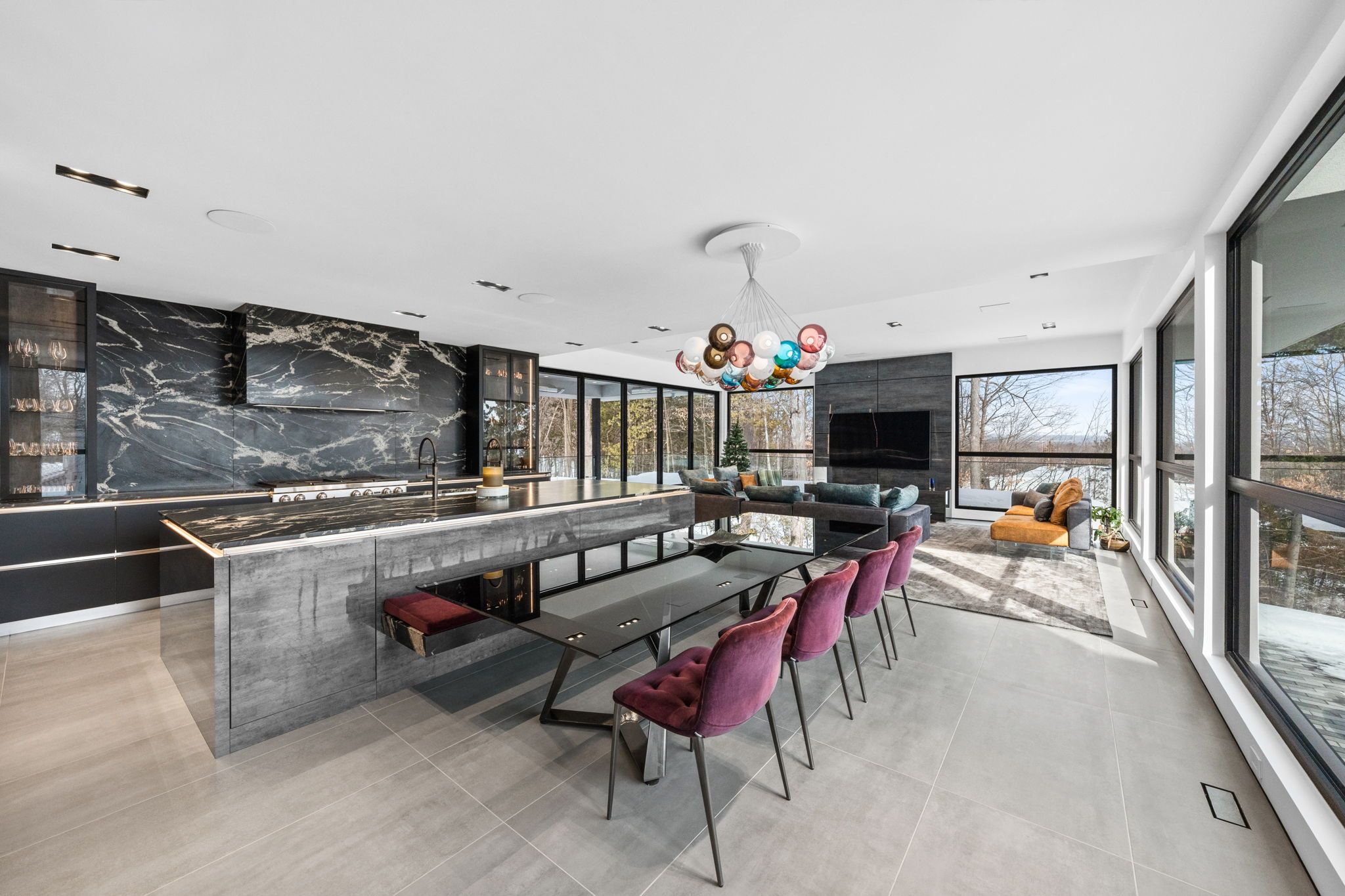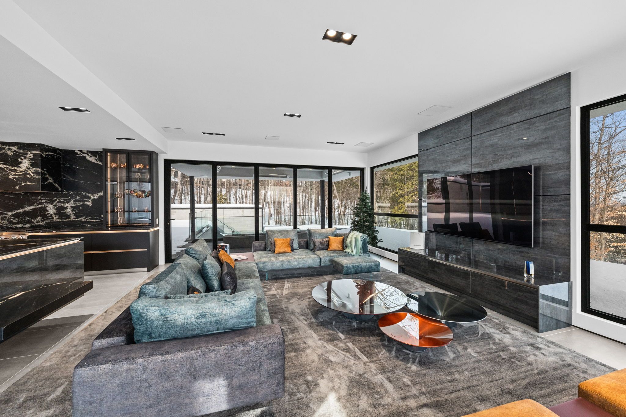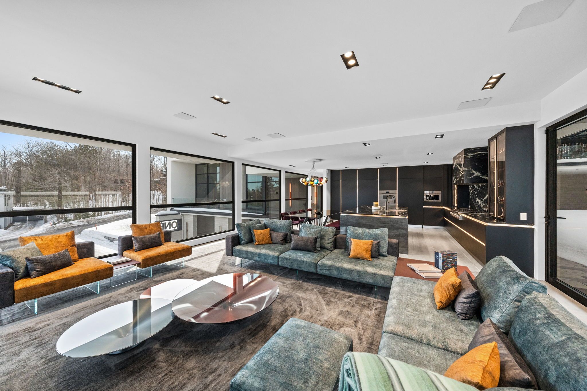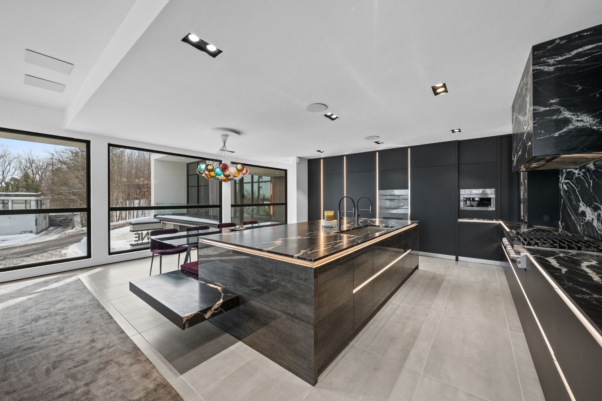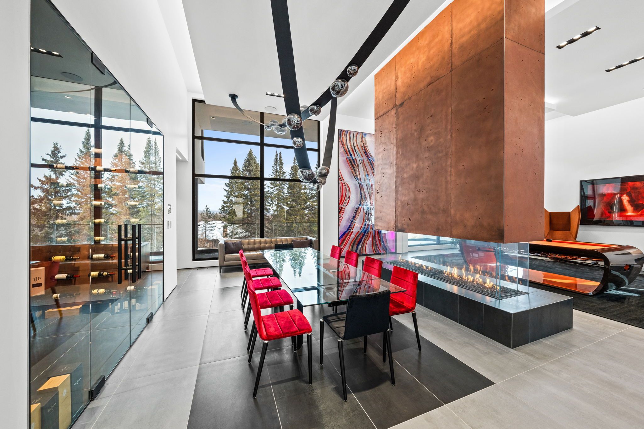 This extraordinary custom-built residence is a statement in modern design and uncompromising craftsmanship. Starting with its massive front door as you enter with a concrete and steel feature wall and open riser, floating stairs complimented by a 3-level custom built chandelier. A copper fireplace and wine cellar surround the dining room with custom artwork and light fixtures. At the heart of the home is a spectacular chef's kitchen designed for both everyday living and grand entertaining. Featuring premium appliances, custom cabinetry and exquisite stone surfaces. The space is complemented by a fully equipped, hidden pantry that allows preparation and hosting to remain seamless while maintaining the refined aesthetic of the main kitchen. The home offers generously proportioned bedrooms designed as private retreats, paired with beautifully appointed bathrooms showcasing high-end fixtures, custom vanities and spa-inspired finishes. The primary suite is particularly exceptional, featuring stunning views of the Gatineau hills, custom walk-in closet, built-in Miele coffee machine, humidor and a luxurious ensuite reminiscent of the world's finest hotels. An integrated elevator provides effortless access to every level of the home. Designed for both relaxation and entertainment, the lower level is a true lifestyle destination. Enjoy a private wellness experience with a dedicated sauna and professionally designed fitness room, along with a cinema-quality home theatre. For recreation and leisure, the home also features a state-of-the-art golf simulator and a covered exterior hot tub accessible by all bedrooms creating a private retreat to unwind while overlooking an enclosed sports court. Every detail of this exceptional residence reflects a commitment to modern sophistication, architectural beauty and the highest standard of luxury living. An extraordinary opportunity for those seeking a truly elevated lifestyle.