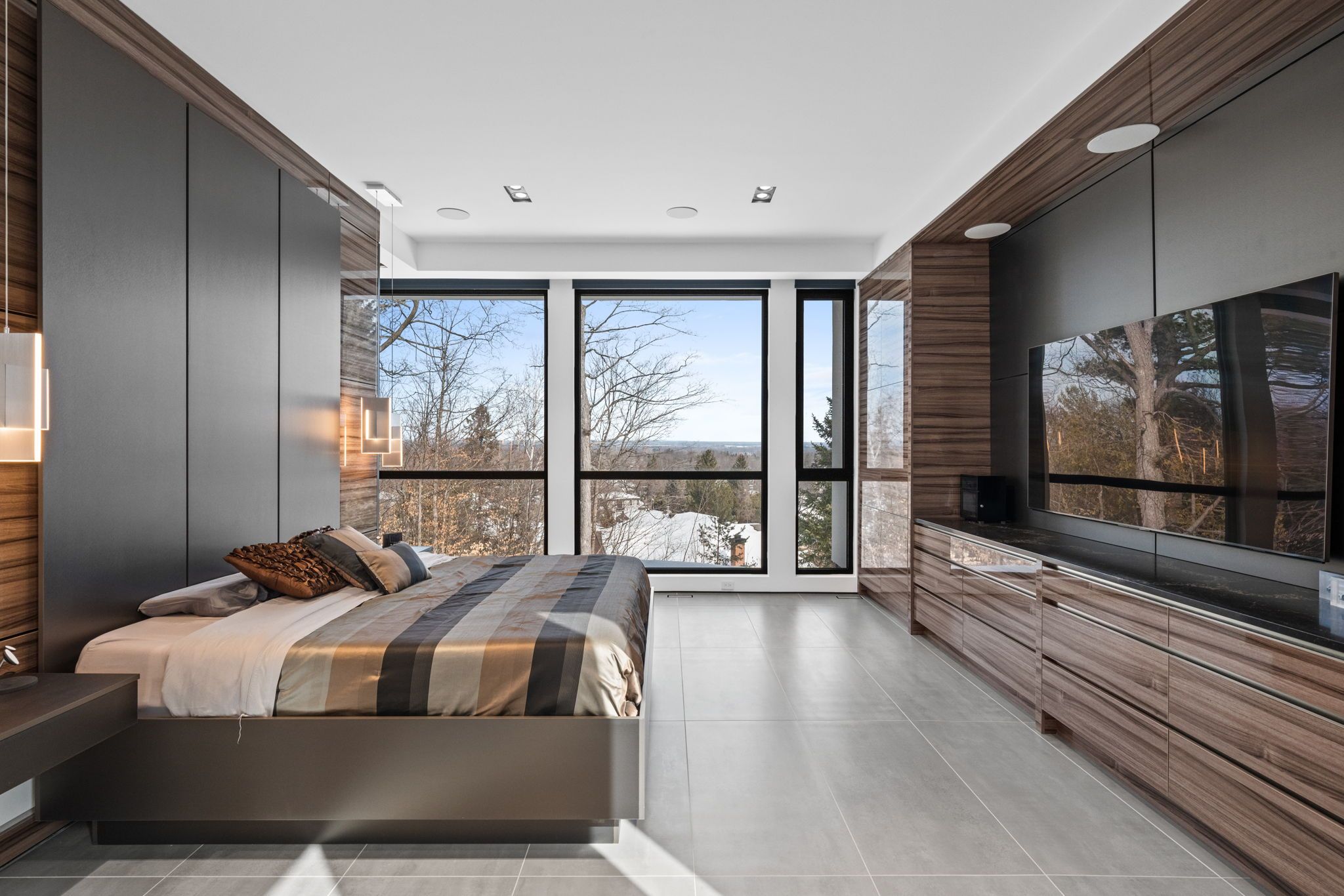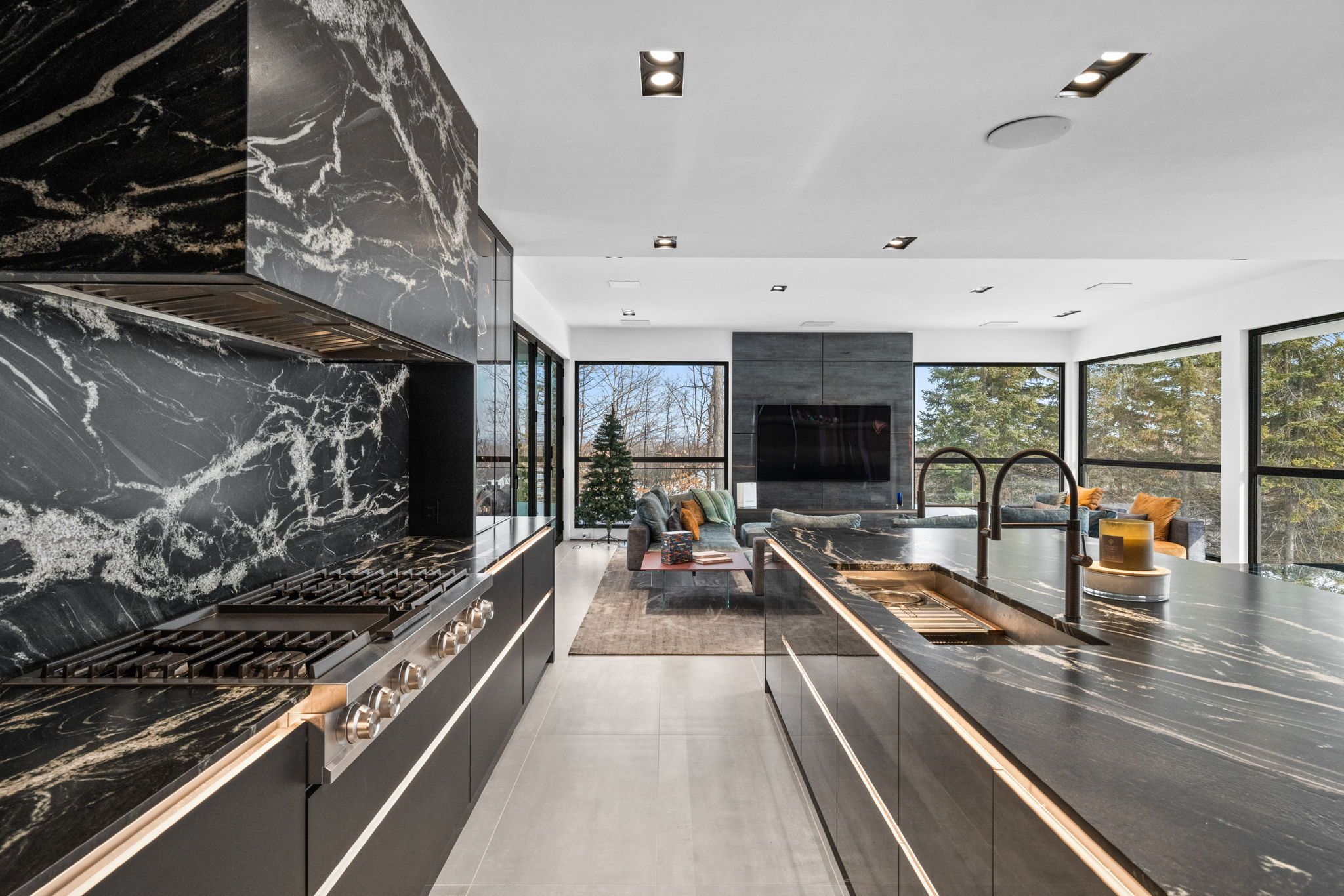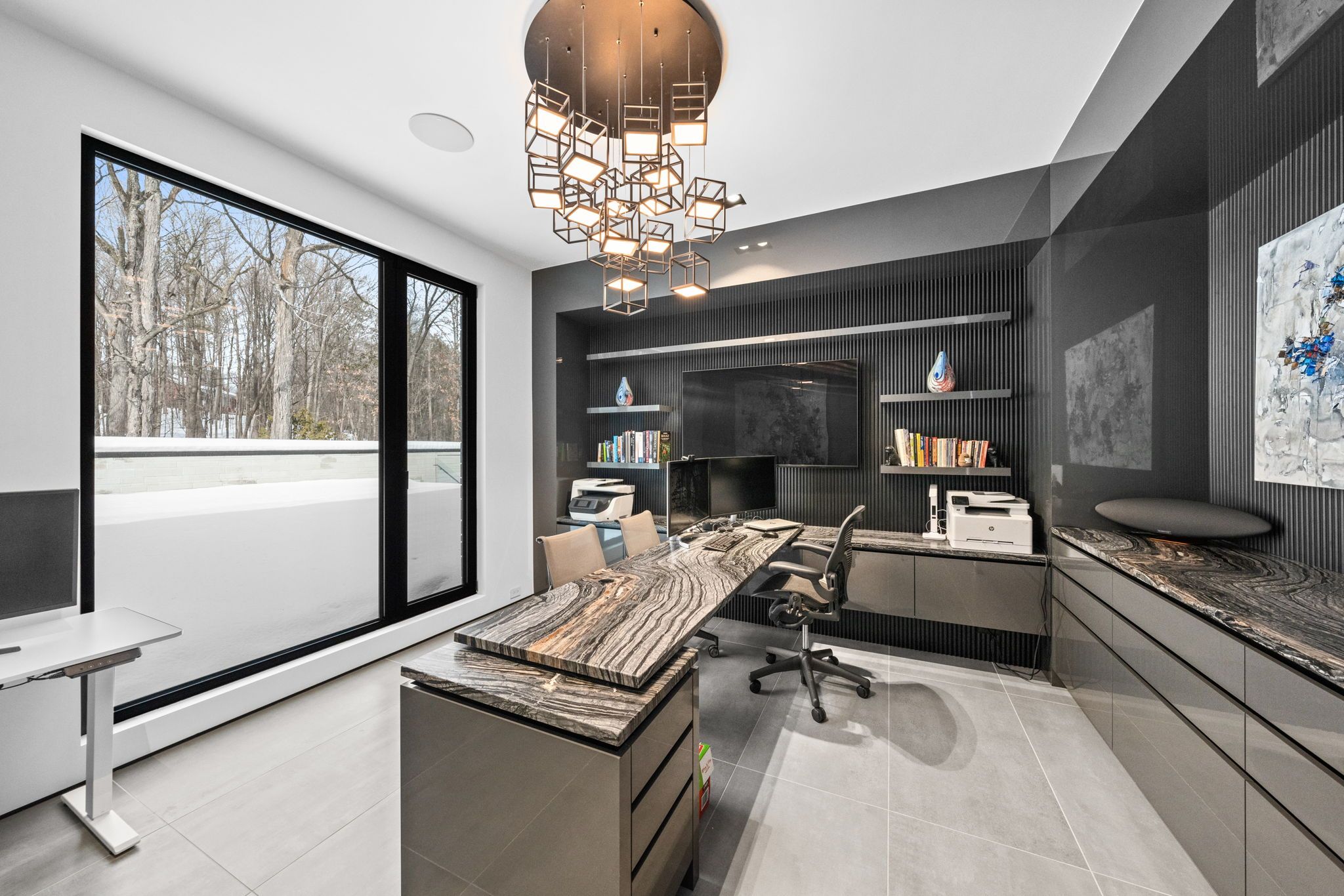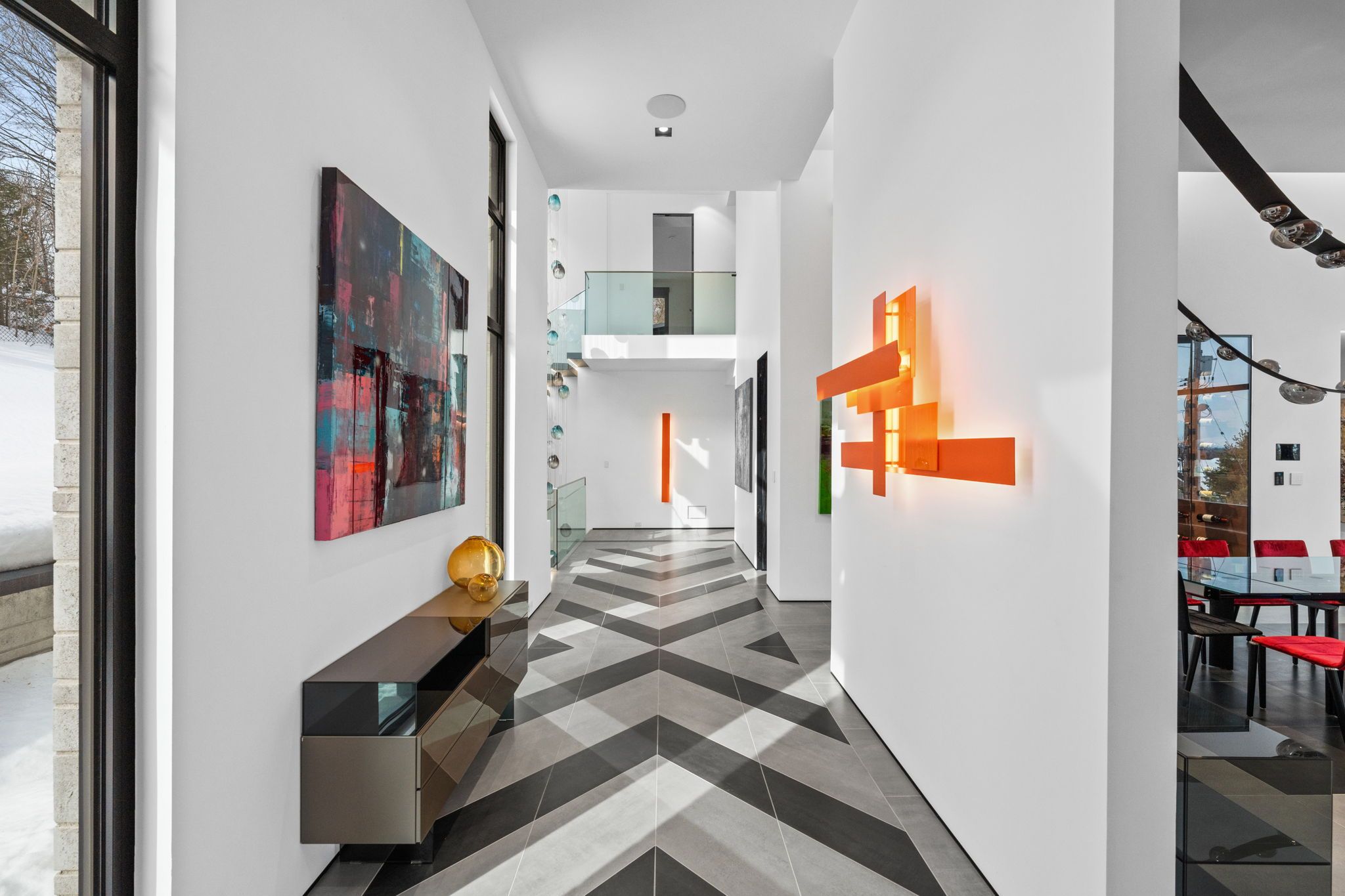 This extraordinary custom-built residence is a statement in modern design and uncompromising craftsmanship. Starting with its massive front door as you enter with a concrete and steel feature wall and open riser, floating stairs complimented by a 3-level custom built chandelier. A copper fireplace and wine cellar surround the dining room with custom artwork and light fixtures. At the heart of the home is a spectacular chef's kitchen designed for both everyday living and grand entertaining. Featuring premium appliances, custom cabinetry and exquisite stone surfaces. The space is complemented by a fully equipped, hidden pantry that allows preparation and hosting to remain seamless while maintaining the refined aesthetic of the main kitchen. The home offers generously proportioned bedrooms designed as private retreats, paired with beautifully appointed bathrooms showcasing high-end fixtures, custom vanities and spa-inspired finishes. The primary suite is particularly exceptional, featuring stunning views of the Gatineau hills, custom walk-in closet, built-in Miele coffee machine, humidor and a luxurious ensuite reminiscent of the world's finest hotels. An integrated elevator provides effortless access to every level of the home. Designed for both relaxation and entertainment, the lower level is a true lifestyle destination. Enjoy a private wellness experience with a dedicated sauna and professionally designed fitness room, along with a cinema-quality home theatre. For recreation and leisure, the home also features a state-of-the-art golf simulator and a covered exterior hot tub accessible by all bedrooms creating a private retreat to unwind while overlooking an enclosed sports court. Every detail of this exceptional residence reflects a commitment to modern sophistication, architectural beauty and the highest standard of luxury living. An extraordinary opportunity for those seeking a truly elevated lifestyle.