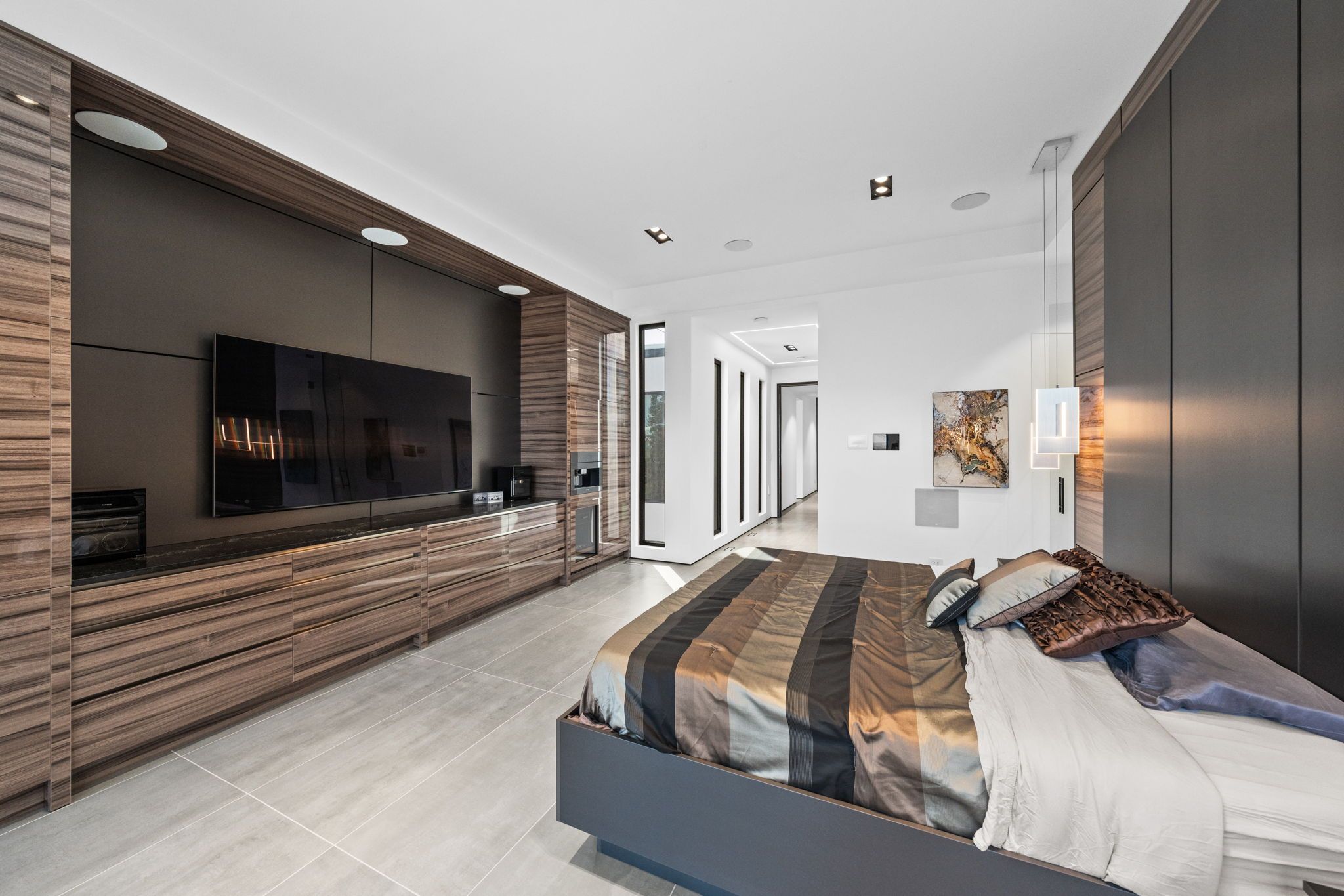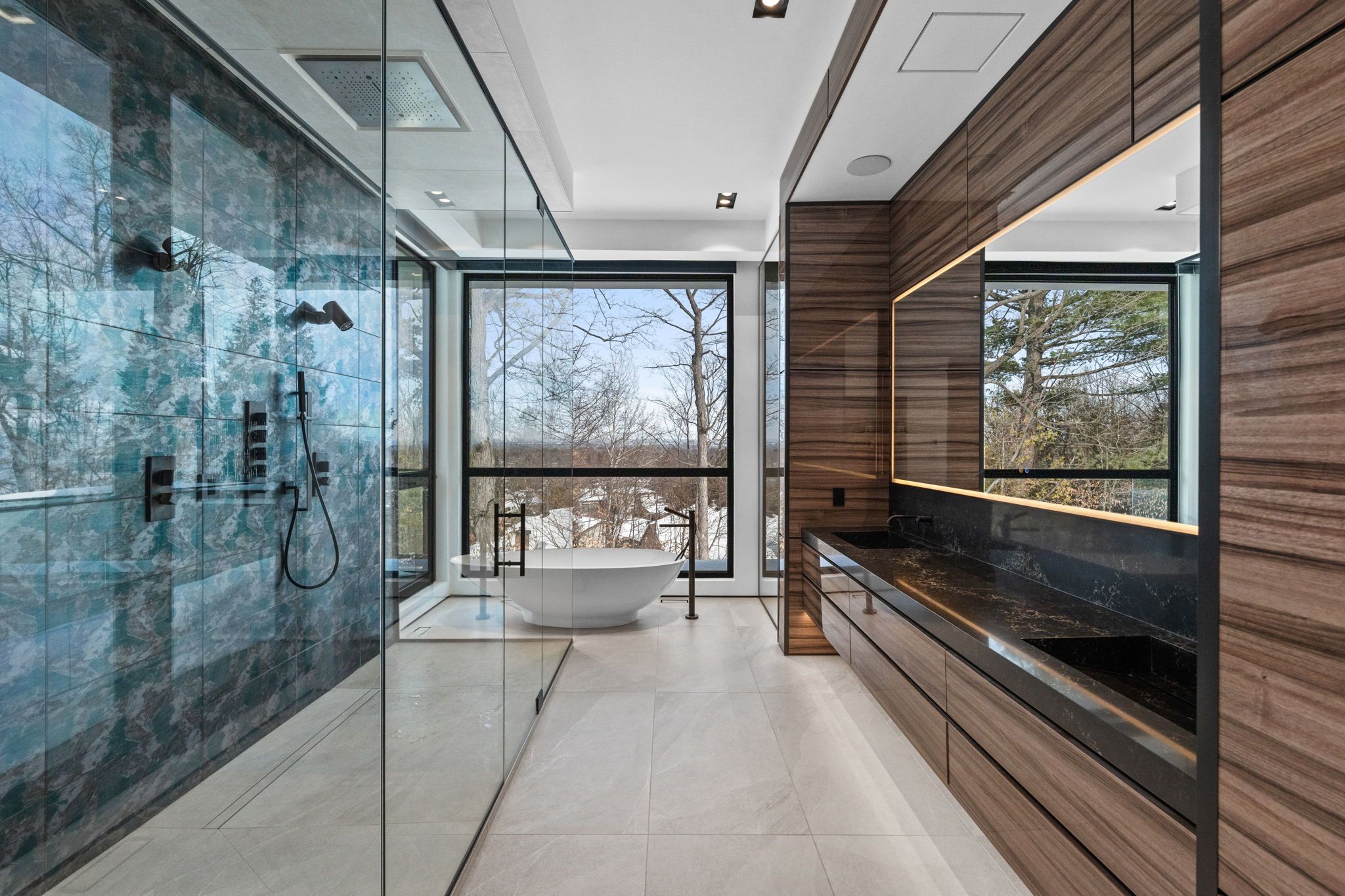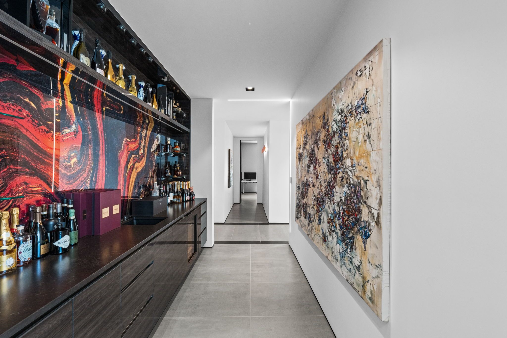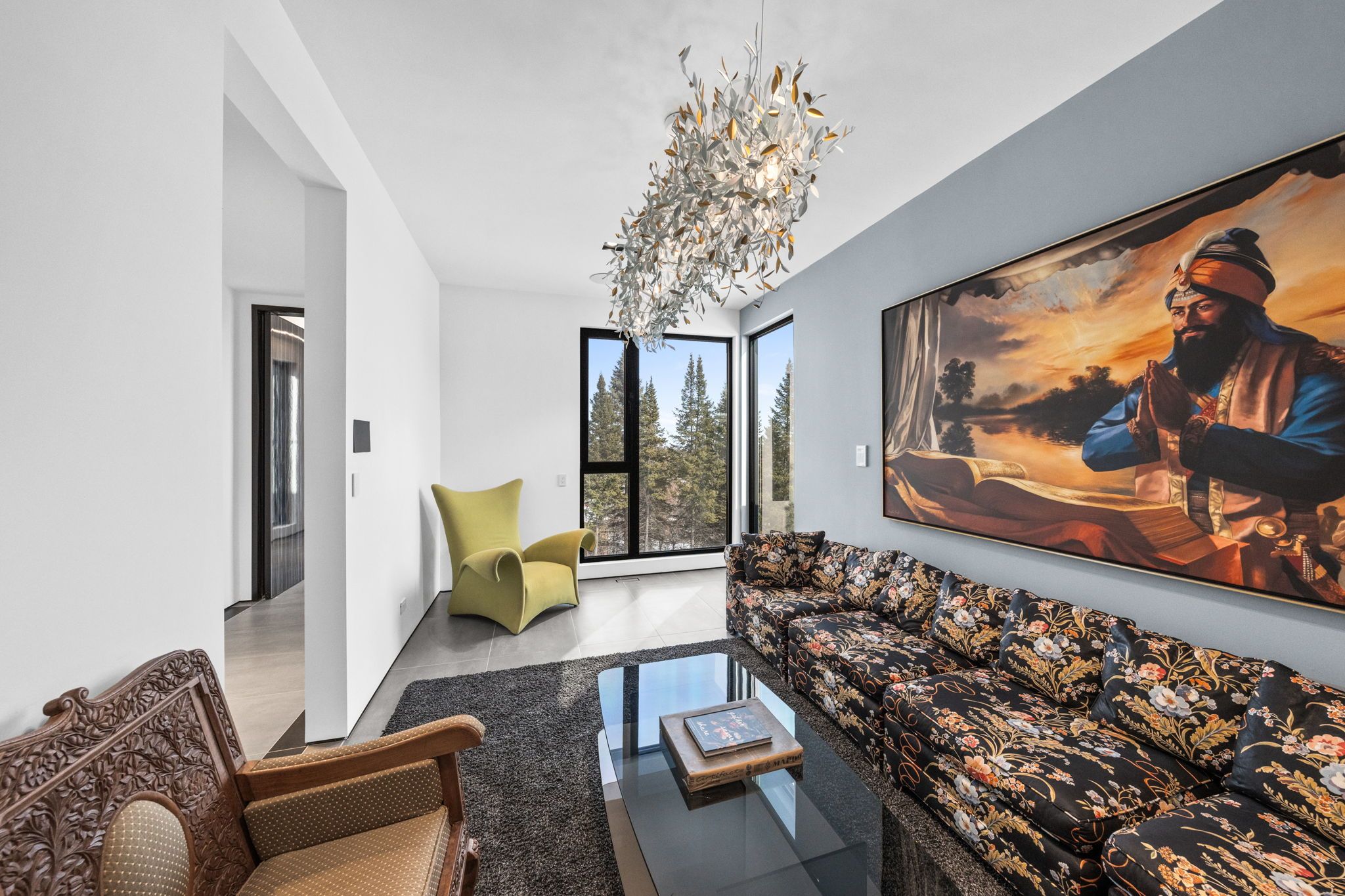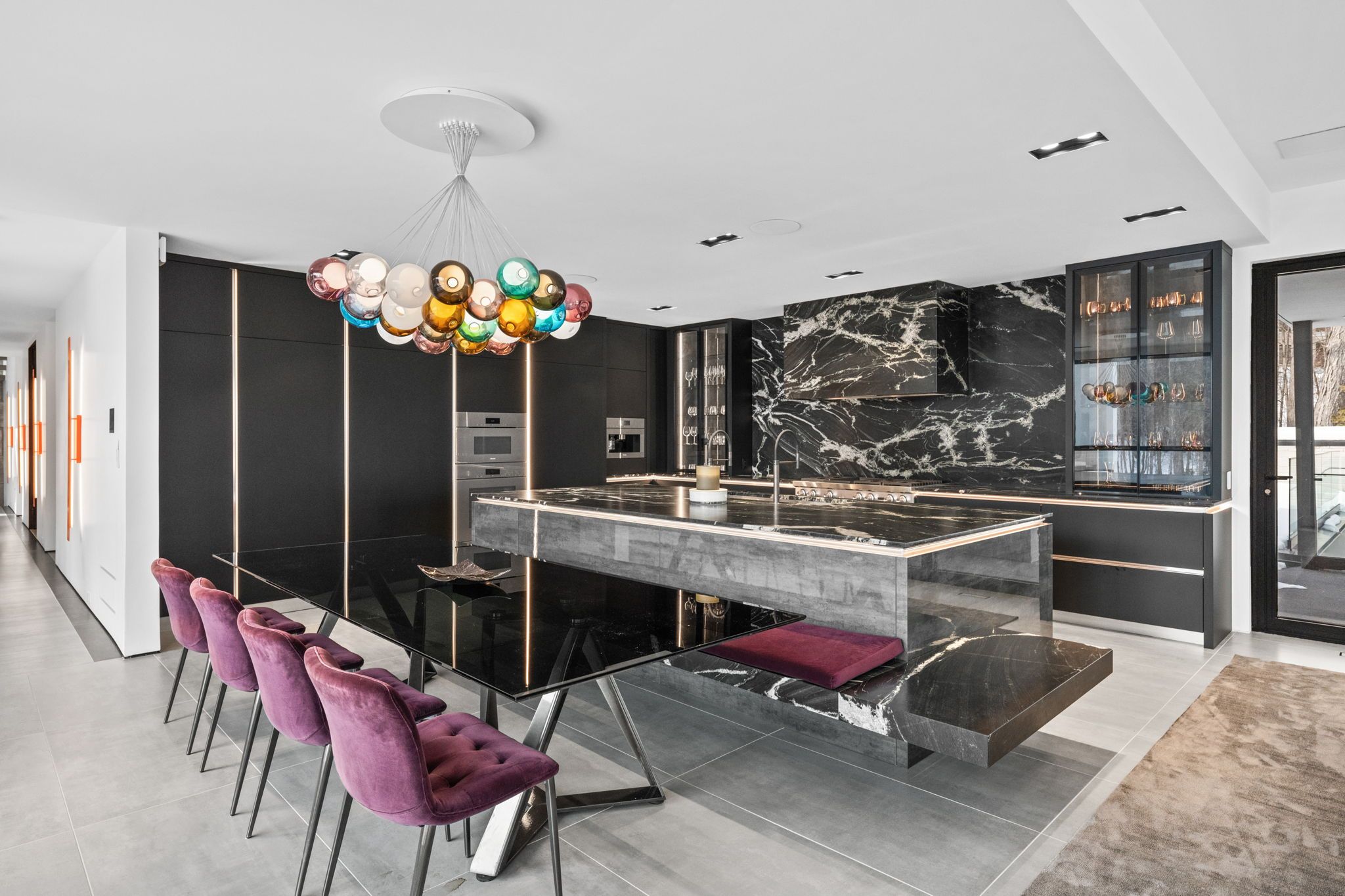 This extraordinary custom-built residence is a statement in modern design and uncompromising craftsmanship. Starting with its massive front door as you enter with a concrete and steel feature wall and open riser, floating stairs complimented by a 3-level custom built chandelier. A copper fireplace and wine cellar surround the dining room with custom artwork and light fixtures. At the heart of the home is a spectacular chef's kitchen designed for both everyday living and grand entertaining. Featuring premium appliances, custom cabinetry and exquisite stone surfaces. The space is complemented by a fully equipped, hidden pantry that allows preparation and hosting to remain seamless while maintaining the refined aesthetic of the main kitchen. The home offers generously proportioned bedrooms designed as private retreats, paired with beautifully appointed bathrooms showcasing high-end fixtures, custom vanities and spa-inspired finishes. The primary suite is particularly exceptional, featuring stunning views of the Gatineau hills, custom walk-in closet, built-in Miele coffee machine, humidor and a luxurious ensuite reminiscent of the world's finest hotels. An integrated elevator provides effortless access to every level of the home. Designed for both relaxation and entertainment, the lower level is a true lifestyle destination. Enjoy a private wellness experience with a dedicated sauna and professionally designed fitness room, along with a cinema-quality home theatre. For recreation and leisure, the home also features a state-of-the-art golf simulator and a covered exterior hot tub accessible by all bedrooms creating a private retreat to unwind while overlooking an enclosed sports court. Every detail of this exceptional residence reflects a commitment to modern sophistication, architectural beauty and the highest standard of luxury living. An extraordinary opportunity for those seeking a truly elevated lifestyle.