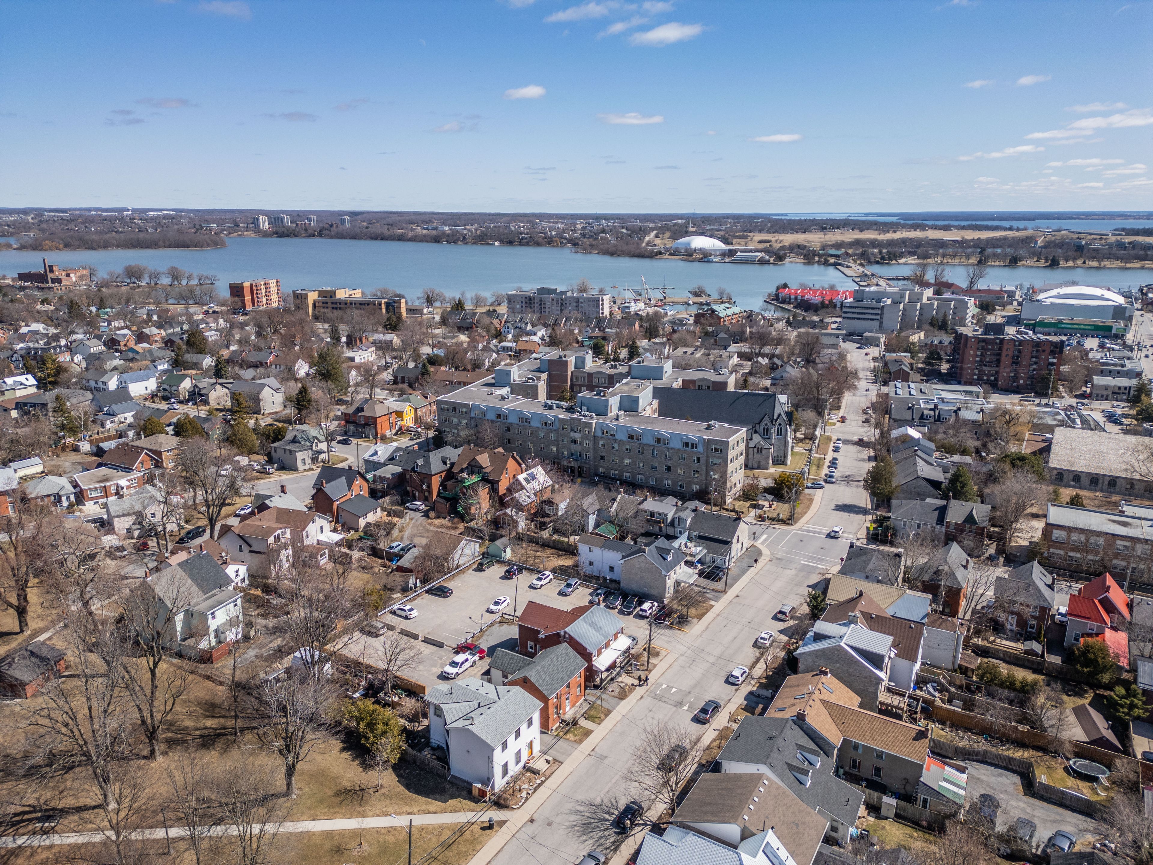 Well-maintained 2-storey fourplex located in Kingston's Inner Harbour, within walking distance to Queen's University and just steps to downtown amenities, restaurants, and waterfront events. The property features four 1-bedroom units, three of which are currently leased, with one unit becoming vacant May 1st. This provides flexibility for owner occupancy or the opportunity to place a new tenant at market rent. The vacant unit is already being advertised and is expected to lease quickly at approximately $1,495/month. Each unit offers an efficient layout with bright living spaces. Tenants pay their own utilities, with the exception of natural gas heat, helping keep operating costs manageable. Main floor units feature open living and kitchen areas with large south-facing windows, 3-piece bathrooms, and access to private rear decks. Upper units offer front bedrooms, 4-piece bathrooms, and bright living/kitchen areas overlooking the rear of the property. The property includes four dedicated parking spaces plus one additional bonus space, offering potential for extra rental income. A solid opportunity to own a well-located multi-unit property in a high-demand rental area close to Queen's and downtown Kingston.