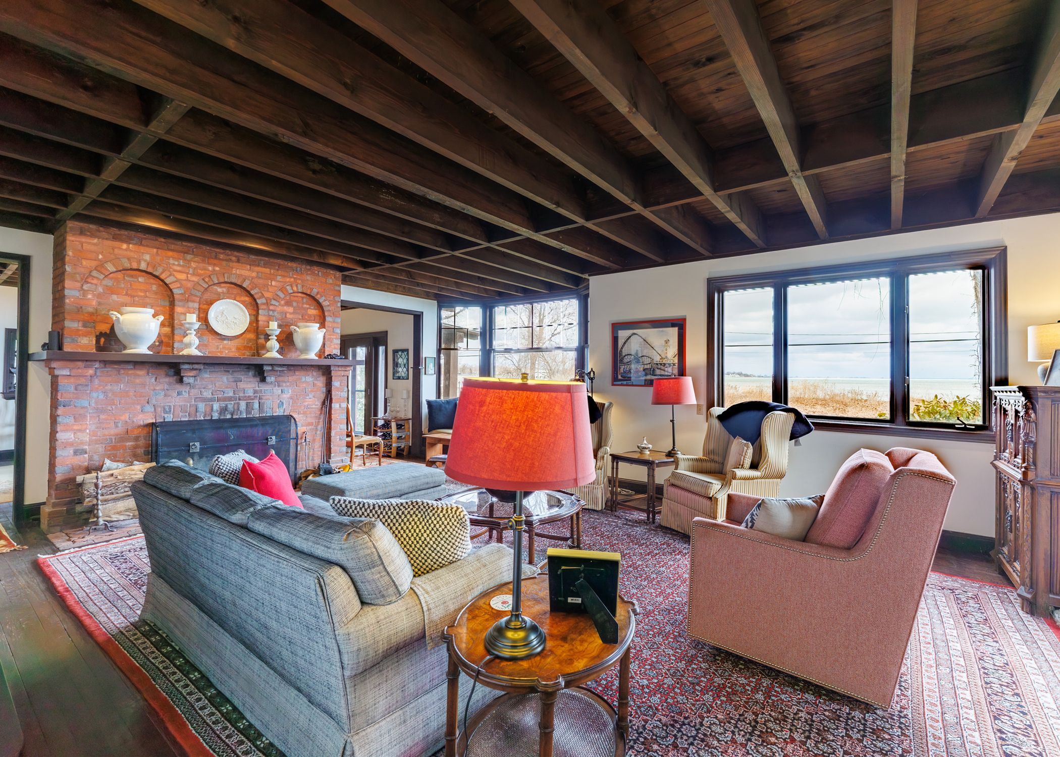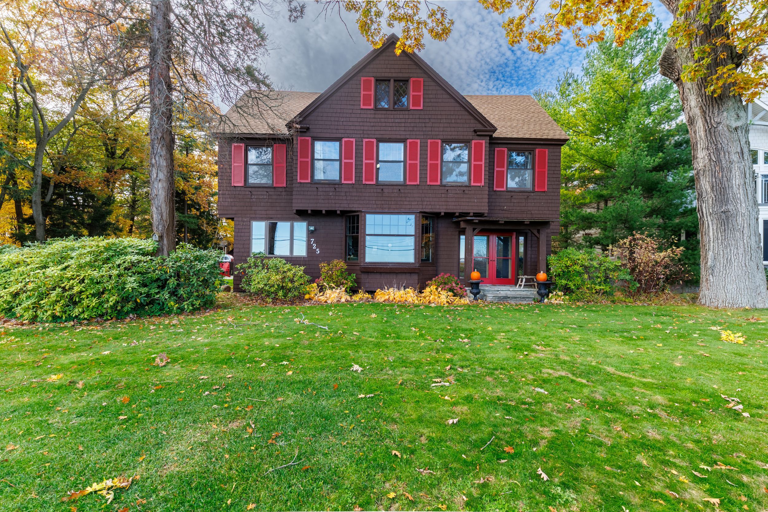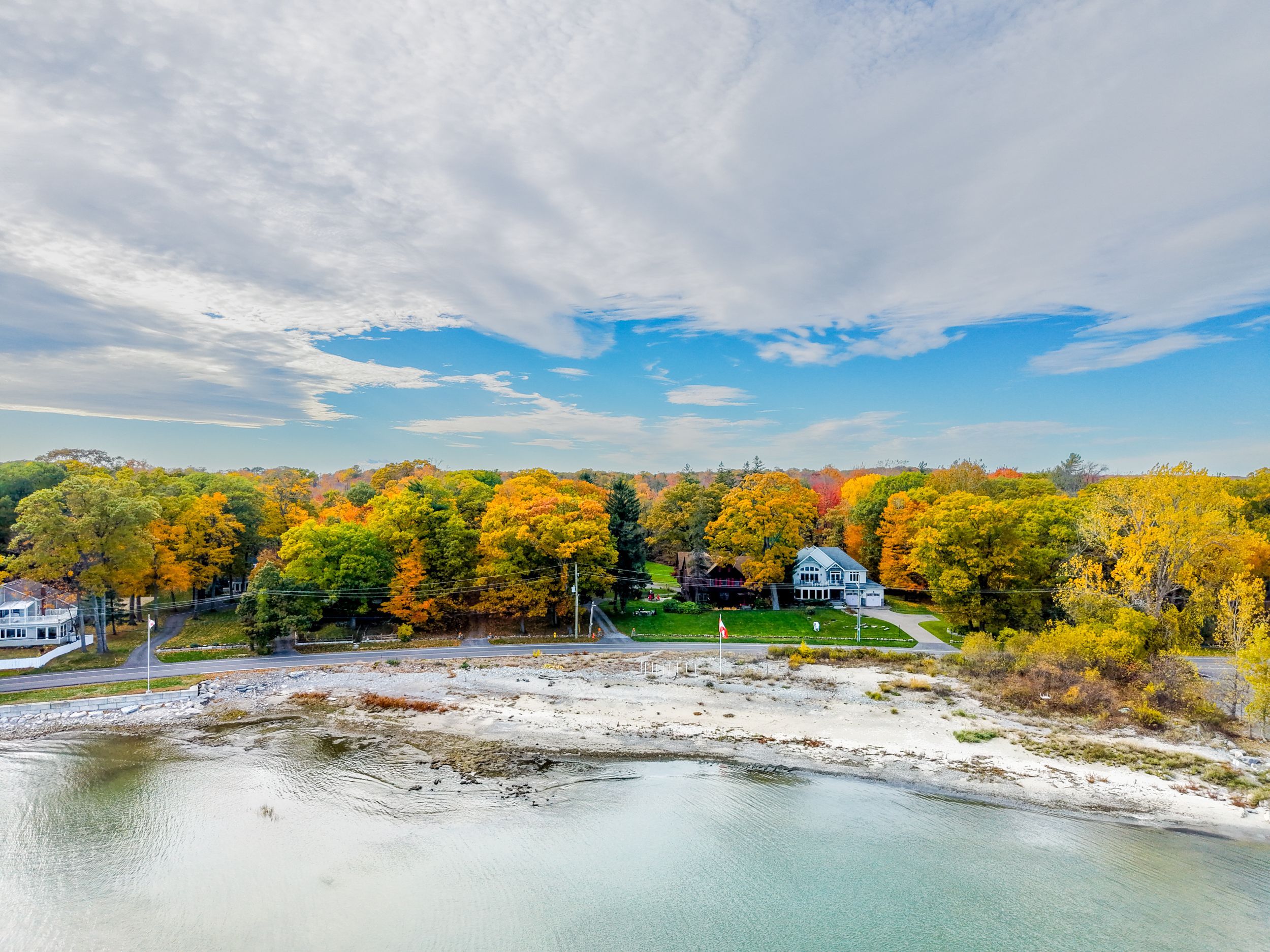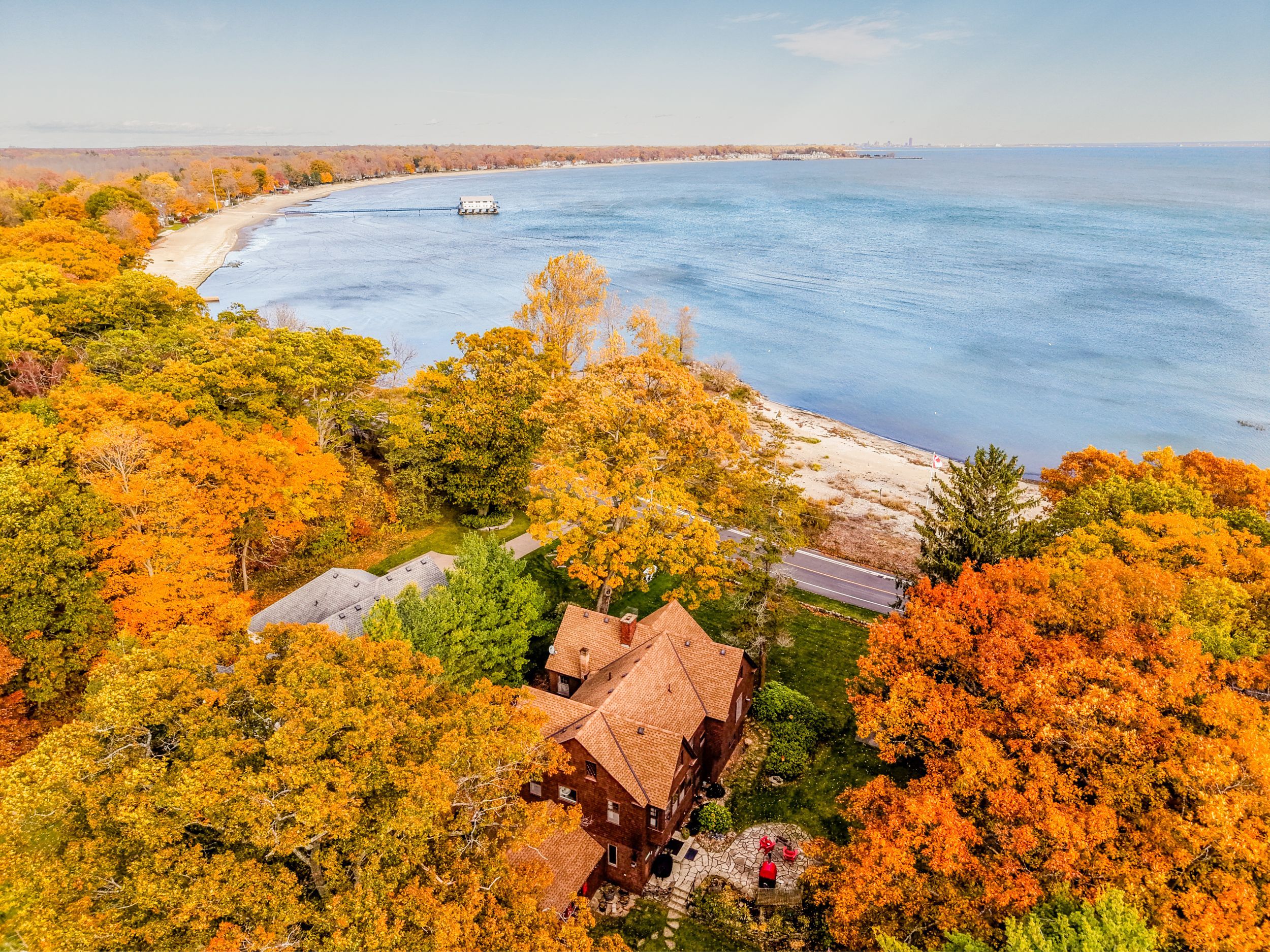 Set on nearly three acres along the prestigious Point Abino shoreline, 725 Point Abino Rd South is a rare waterfront estate offering history, privacy, and beautiful views of Lake Erie. Owned by just three families since the home was built in 1900, this unique property features 121 feet of frontage and over 1,200 feet of depth stretching back into mature forest, creating a peaceful retreat surrounded by nature. The 4-bedroom, 3-bathroom cedar shake home blends timeless character with thoughtful updates. Light-filled living spaces and classic architectural details create a warm, welcoming atmosphere. The updated living room features a gas fireplace and views toward the lake, while the renovated kitchen includes a large centre island with seating for five and connects to a convenient servery / butler's pantry with sink and storage. Designed for both entertaining and everyday living, the home offers several gathering spaces including a family room with wood-burning fireplace and bay window overlooking the water, and a formal dining room with lake views and elegant double doors opening to the front yard and gardens. Hardwood floors and open-beamed ceilings add warmth and character throughout. Upstairs, four spacious bedrooms include two with Lake Erie views and fireplaces, while the primary suite features generous closet space and a walk-in dressing area. Outdoors, the property offers mature trees, expansive lawns and perennial gardens with irrigation, a circular driveway, and a flagstone patio and firepit area, both overlooking the lake. Deeded beach access allows you to enjoy the shoreline just steps away. A detached two-car garage with an apartment above provides flexible space for guests or extended family. Located minutes from Crystal Beach, Ridgeway, boat clubs, golf courses, and the historic Point Abino Lighthouse, this exceptional property offers a rare opportunity to own a piece of Niagara's lakeside history.