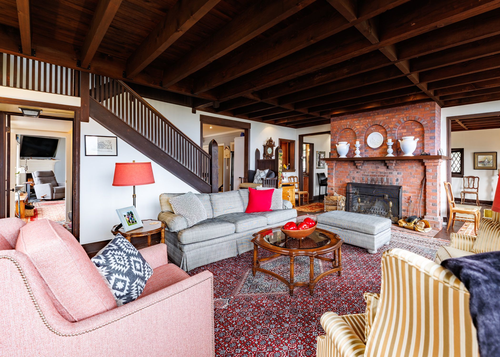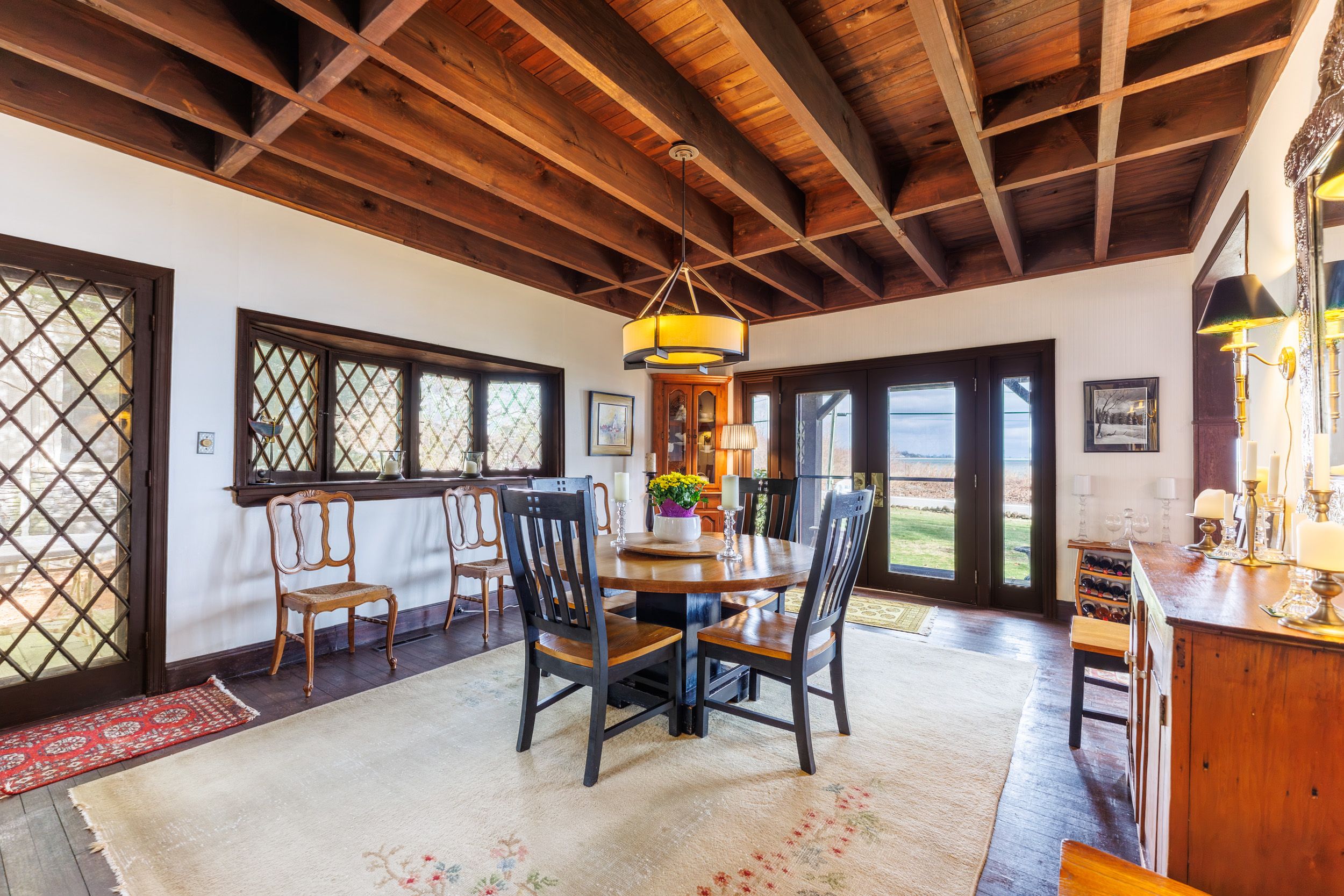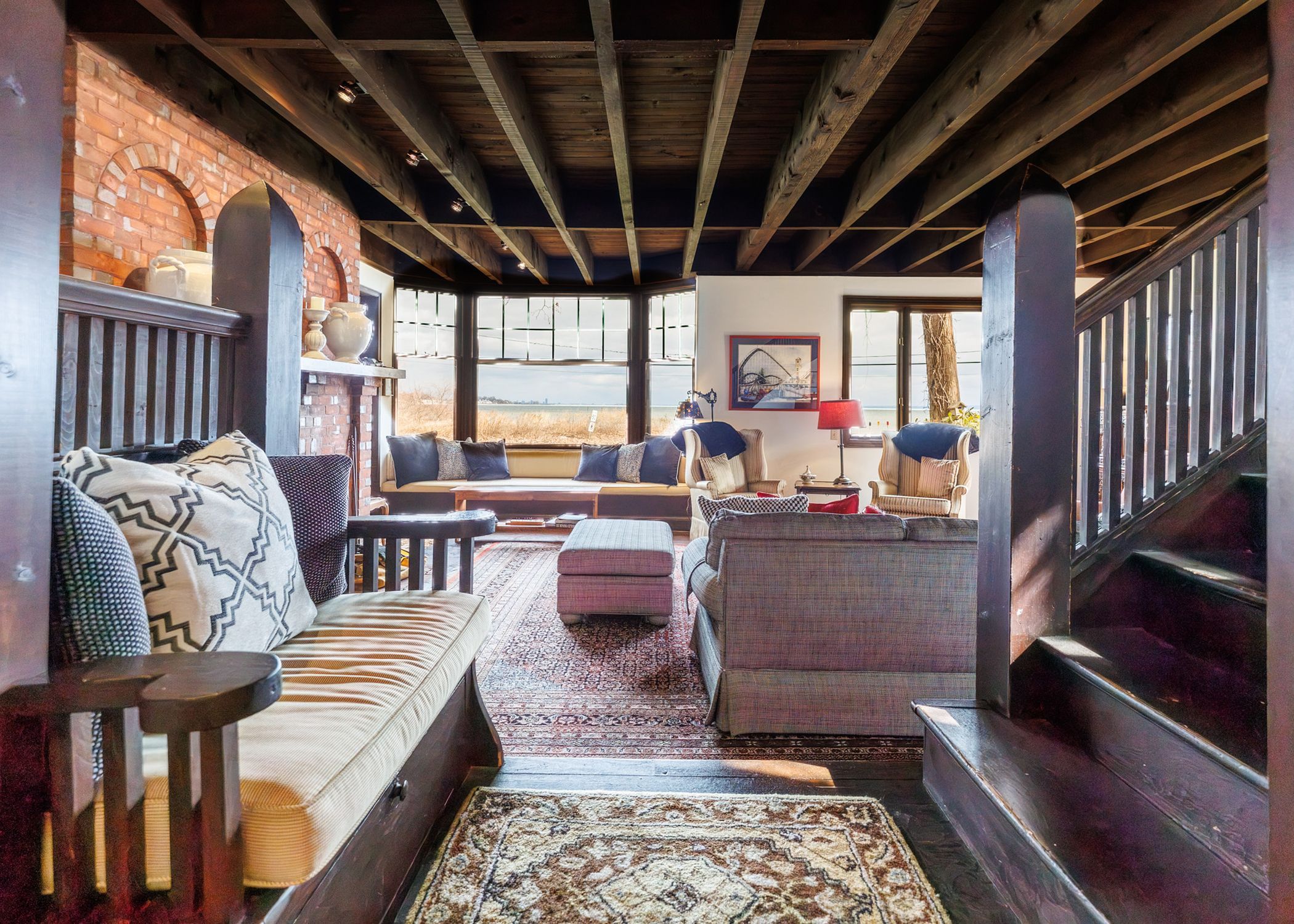 Set on nearly three acres along the prestigious Point Abino shoreline, 725 Point Abino Rd South is a rare waterfront estate offering history, privacy, and beautiful views of Lake Erie. Owned by just three families since the home was built in 1900, this unique property features 121 feet of frontage and over 1,200 feet of depth stretching back into mature forest, creating a peaceful retreat surrounded by nature. The 4-bedroom, 3-bathroom cedar shake home blends timeless character with thoughtful updates. Light-filled living spaces and classic architectural details create a warm, welcoming atmosphere. The updated living room features a gas fireplace and views toward the lake, while the renovated kitchen includes a large centre island with seating for five and connects to a convenient servery / butler's pantry with sink and storage. Designed for both entertaining and everyday living, the home offers several gathering spaces including a family room with wood-burning fireplace and bay window overlooking the water, and a formal dining room with lake views and elegant double doors opening to the front yard and gardens. Hardwood floors and open-beamed ceilings add warmth and character throughout. Upstairs, four spacious bedrooms include two with Lake Erie views and fireplaces, while the primary suite features generous closet space and a walk-in dressing area. Outdoors, the property offers mature trees, expansive lawns and perennial gardens with irrigation, a circular driveway, and a flagstone patio and firepit area, both overlooking the lake. Deeded beach access allows you to enjoy the shoreline just steps away. A detached two-car garage with an apartment above provides flexible space for guests or extended family. Located minutes from Crystal Beach, Ridgeway, boat clubs, golf courses, and the historic Point Abino Lighthouse, this exceptional property offers a rare opportunity to own a piece of Niagara's lakeside history.