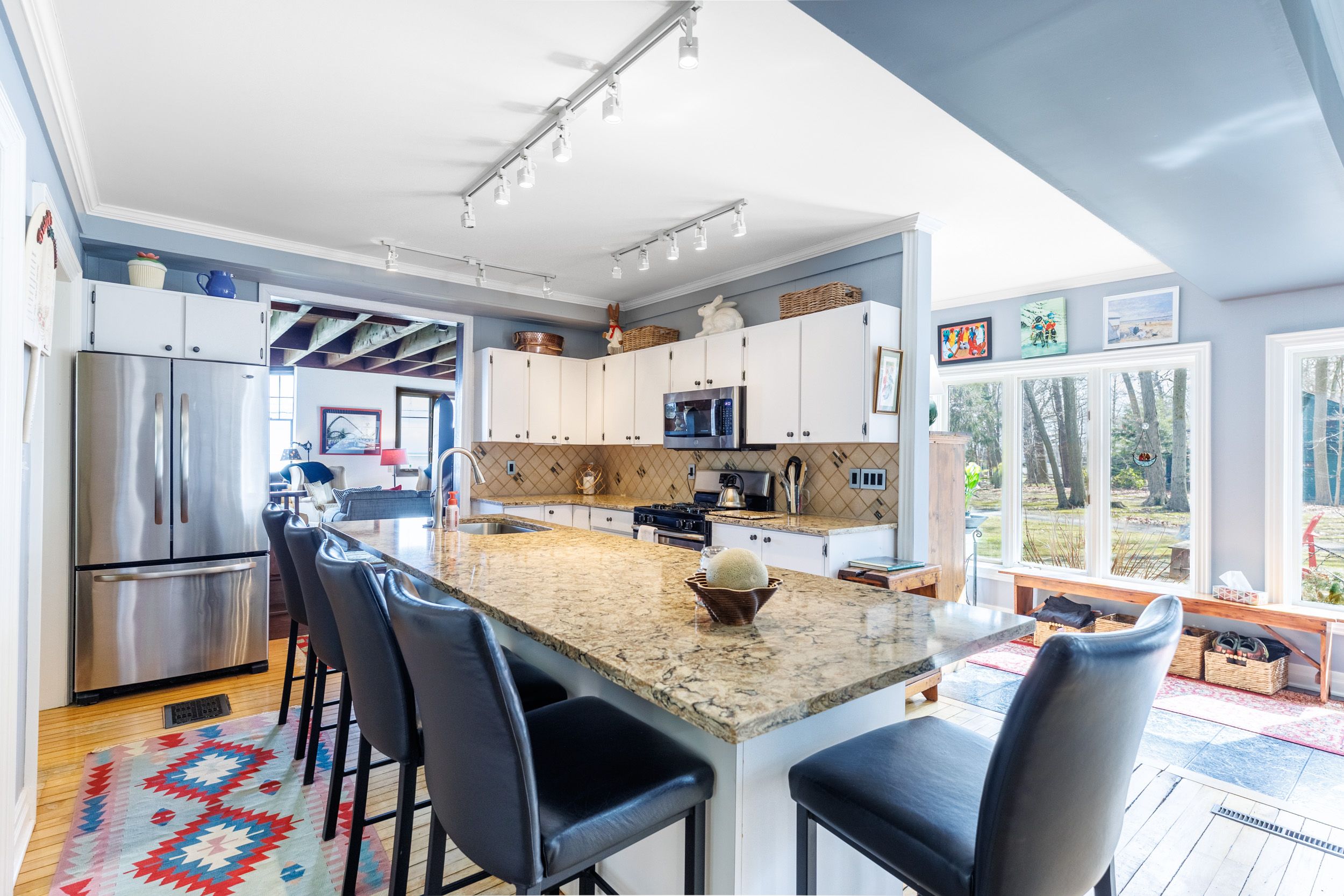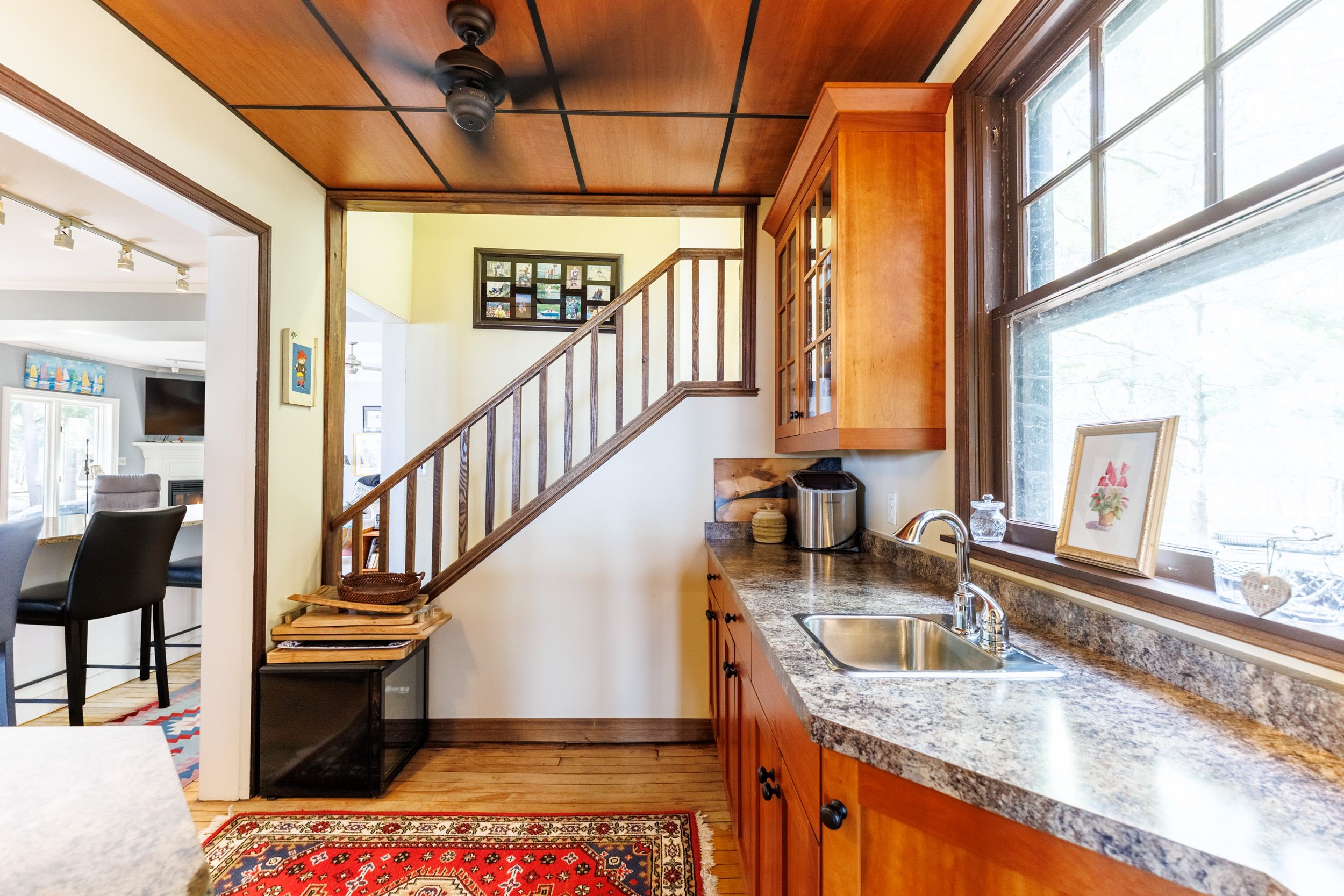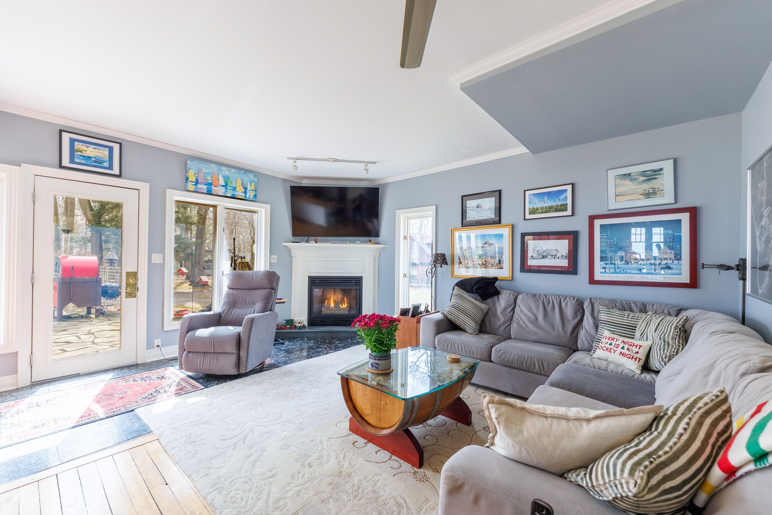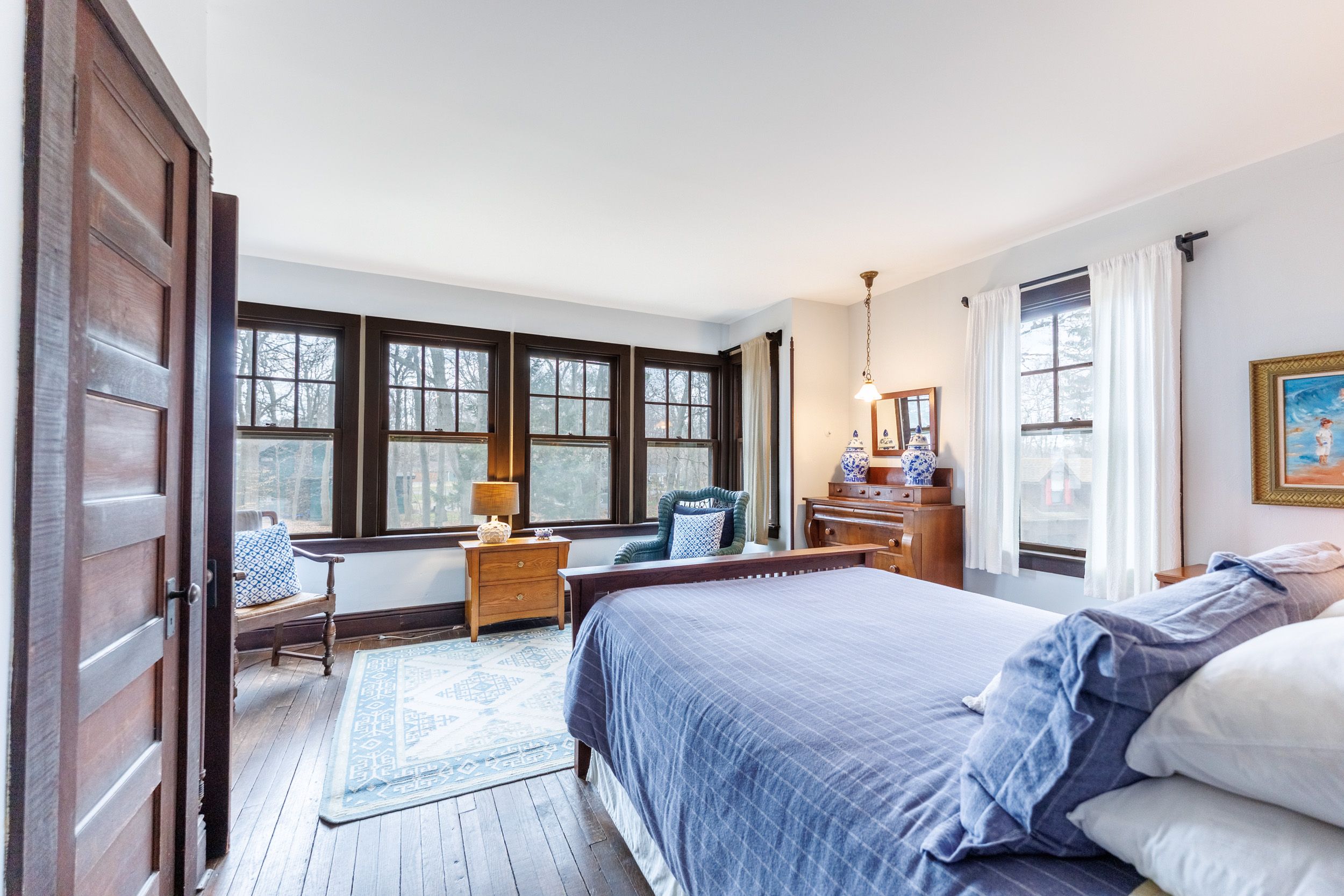 Set on nearly three acres along the prestigious Point Abino shoreline, 725 Point Abino Rd South is a rare waterfront estate offering history, privacy, and beautiful views of Lake Erie. Owned by just three families since the home was built in 1900, this unique property features 121 feet of frontage and over 1,200 feet of depth stretching back into mature forest, creating a peaceful retreat surrounded by nature. The 4-bedroom, 3-bathroom cedar shake home blends timeless character with thoughtful updates. Light-filled living spaces and classic architectural details create a warm, welcoming atmosphere. The updated living room features a gas fireplace and views toward the lake, while the renovated kitchen includes a large centre island with seating for five and connects to a convenient servery / butler's pantry with sink and storage. Designed for both entertaining and everyday living, the home offers several gathering spaces including a family room with wood-burning fireplace and bay window overlooking the water, and a formal dining room with lake views and elegant double doors opening to the front yard and gardens. Hardwood floors and open-beamed ceilings add warmth and character throughout. Upstairs, four spacious bedrooms include two with Lake Erie views and fireplaces, while the primary suite features generous closet space and a walk-in dressing area. Outdoors, the property offers mature trees, expansive lawns and perennial gardens with irrigation, a circular driveway, and a flagstone patio and firepit area, both overlooking the lake. Deeded beach access allows you to enjoy the shoreline just steps away. A detached two-car garage with an apartment above provides flexible space for guests or extended family. Located minutes from Crystal Beach, Ridgeway, boat clubs, golf courses, and the historic Point Abino Lighthouse, this exceptional property offers a rare opportunity to own a piece of Niagara's lakeside history.