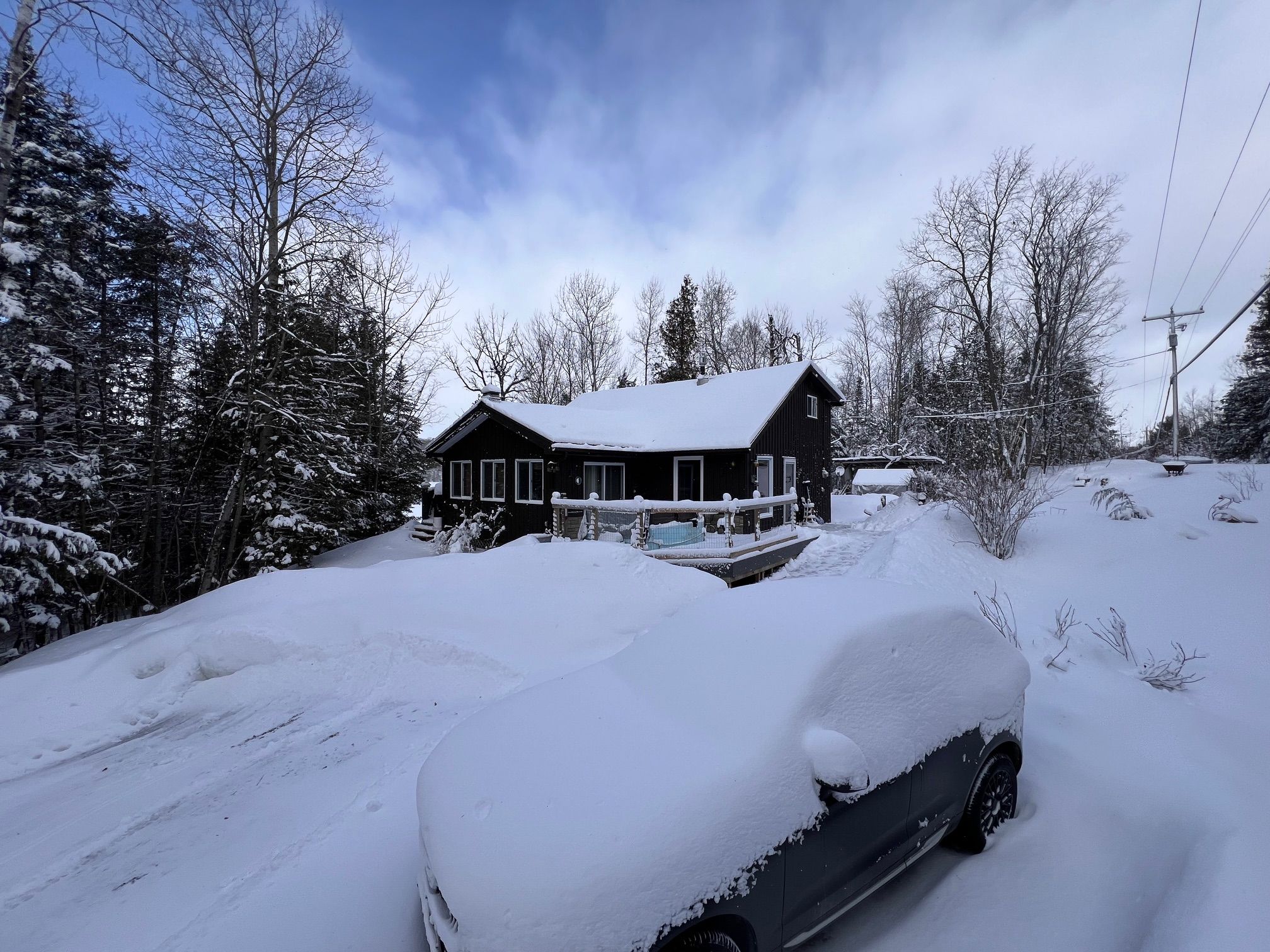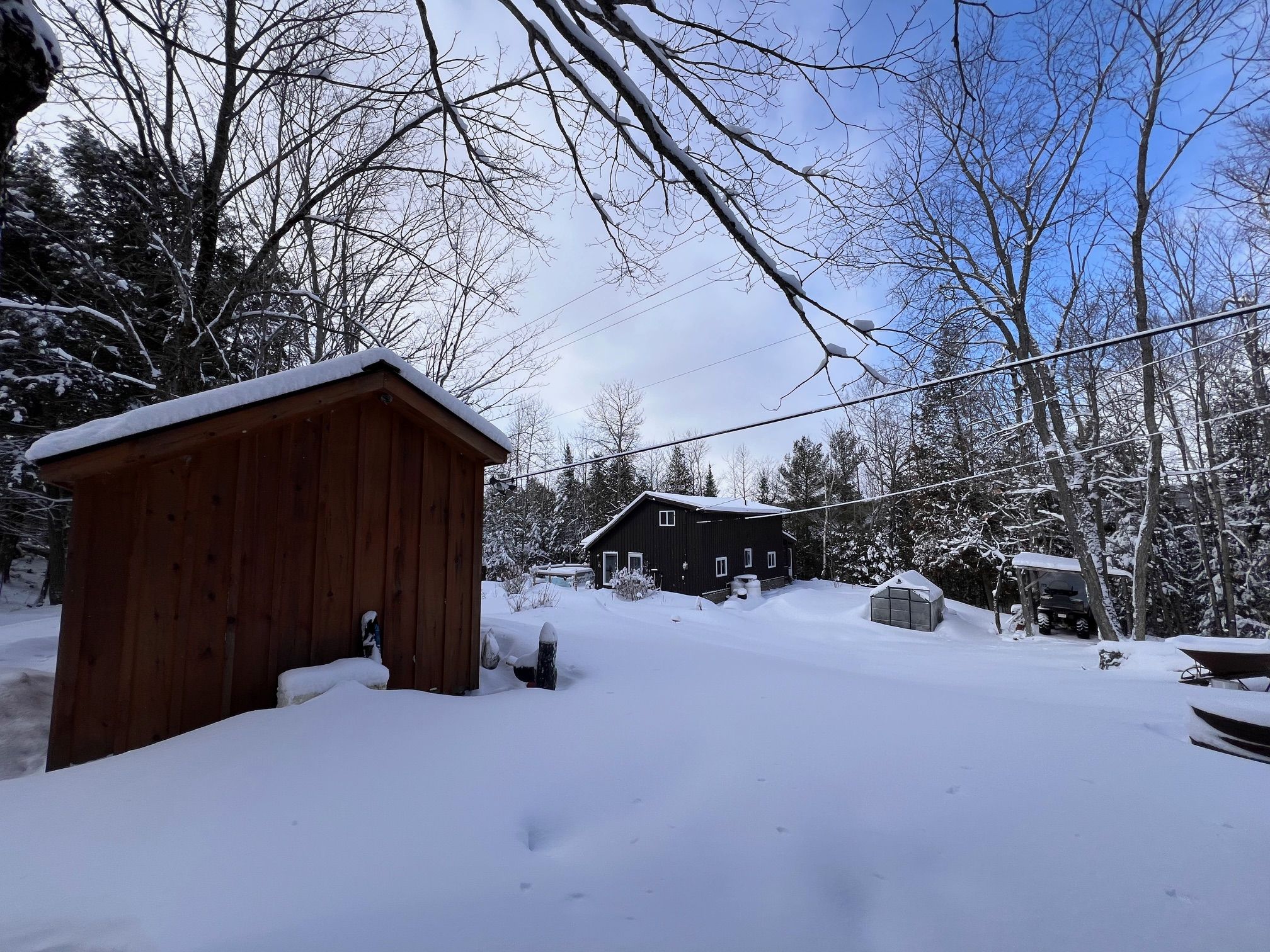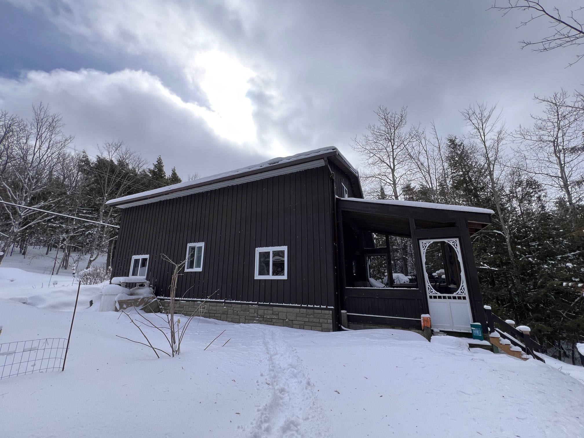 Bancroft area - This is a perfect spot to enjoy the view of Wadsworth Lake without paying waterfront taxes. This 3 bedroom home is situated on 1.74 acres on a year round road and features many outbuildings. Adorable bunkie for guests, garden shed, greenhouse and drive shed are on a well treed lot. Very cozy 3 bedroom home has a front deck, a nice screen porch facing the lake, and a composite back deck featuring a hot tub with easy access from the living room patio doors. Main floor has both a living room and family room, a 3 piece bathroom with stackable washer and dryer, kitchen, dining room and main floor bedroom.. Upper floor has 2 bedrooms with fir flooring and lots of storage. House is heated with a propane stove in the family room and electric baseboard heaters. It also has a generator wired in. Hydro averages $110 per month and propane is $1800 per year. New metal roof was installed in 2018 with added insulation and house is insulated under the living room. Crawl space in the basement is insulated and heated. Drilled artesian well produces 40 GPM. Most furnishings are included. This home is suitable for a cottage or a year round home!