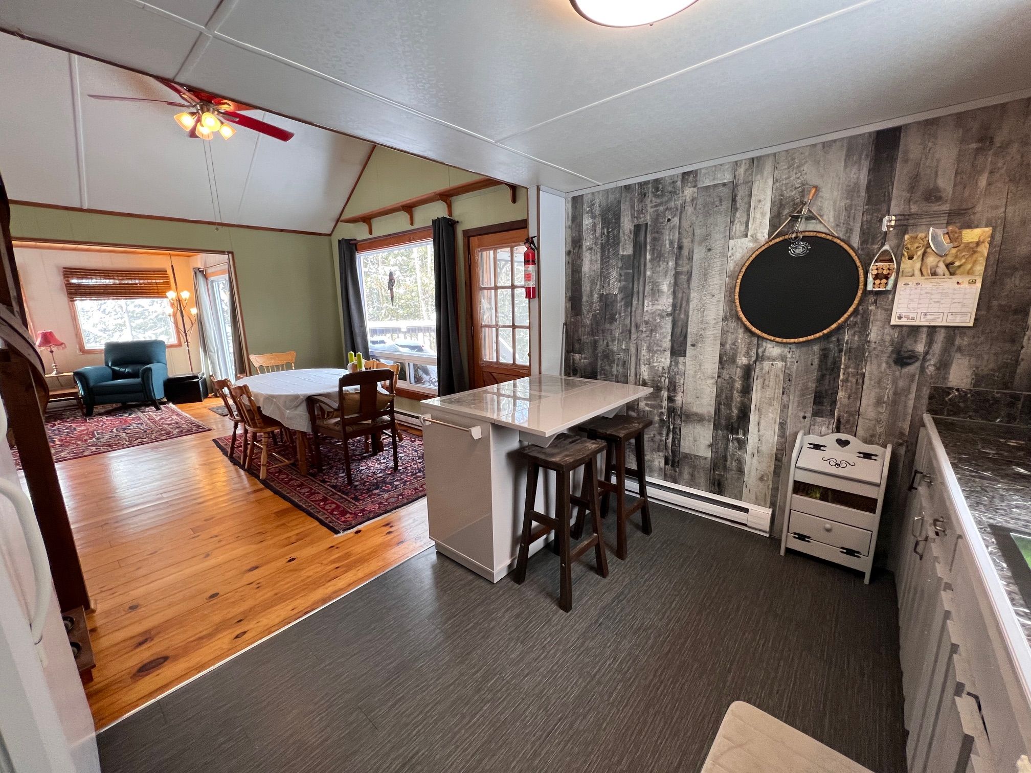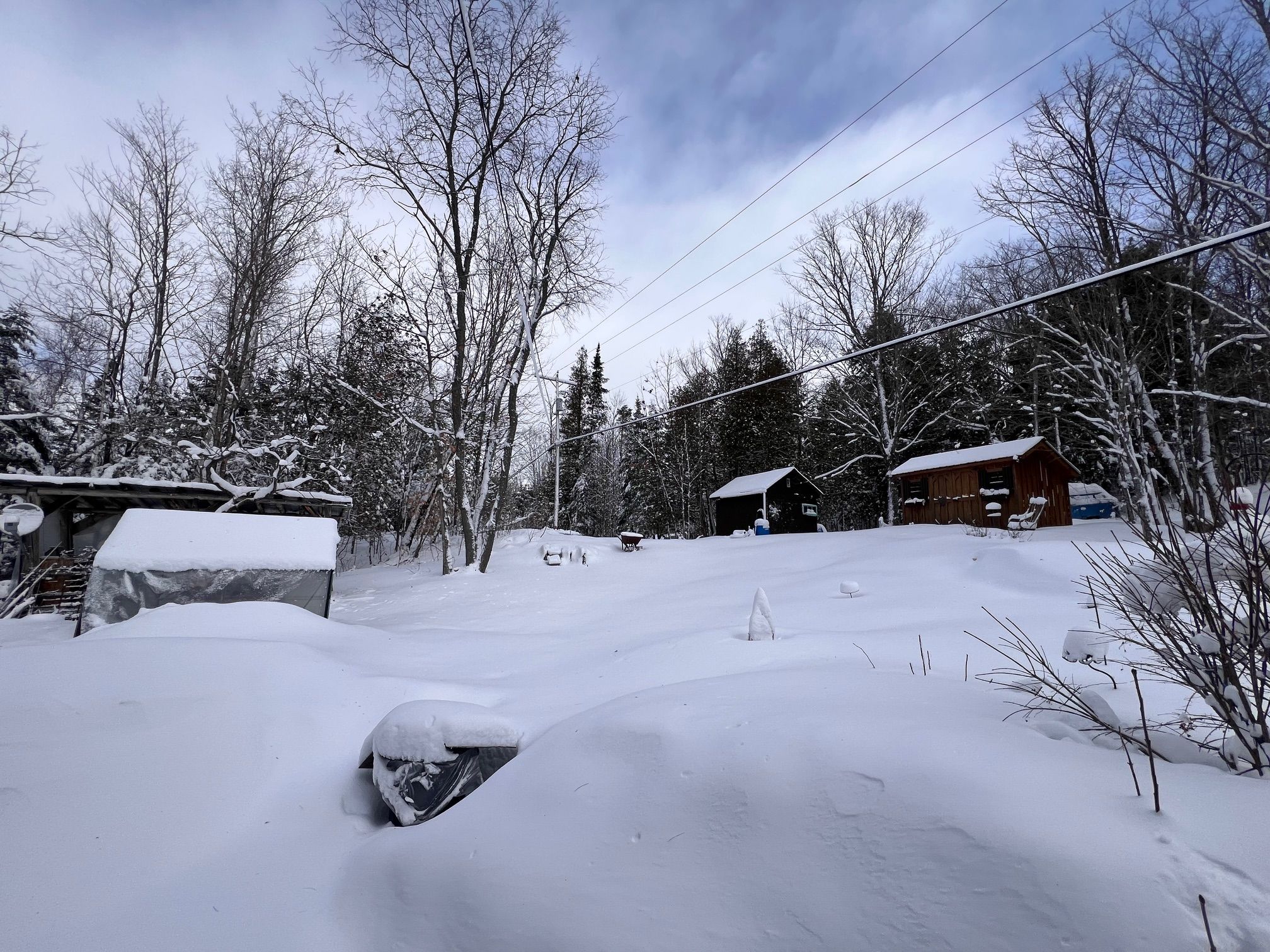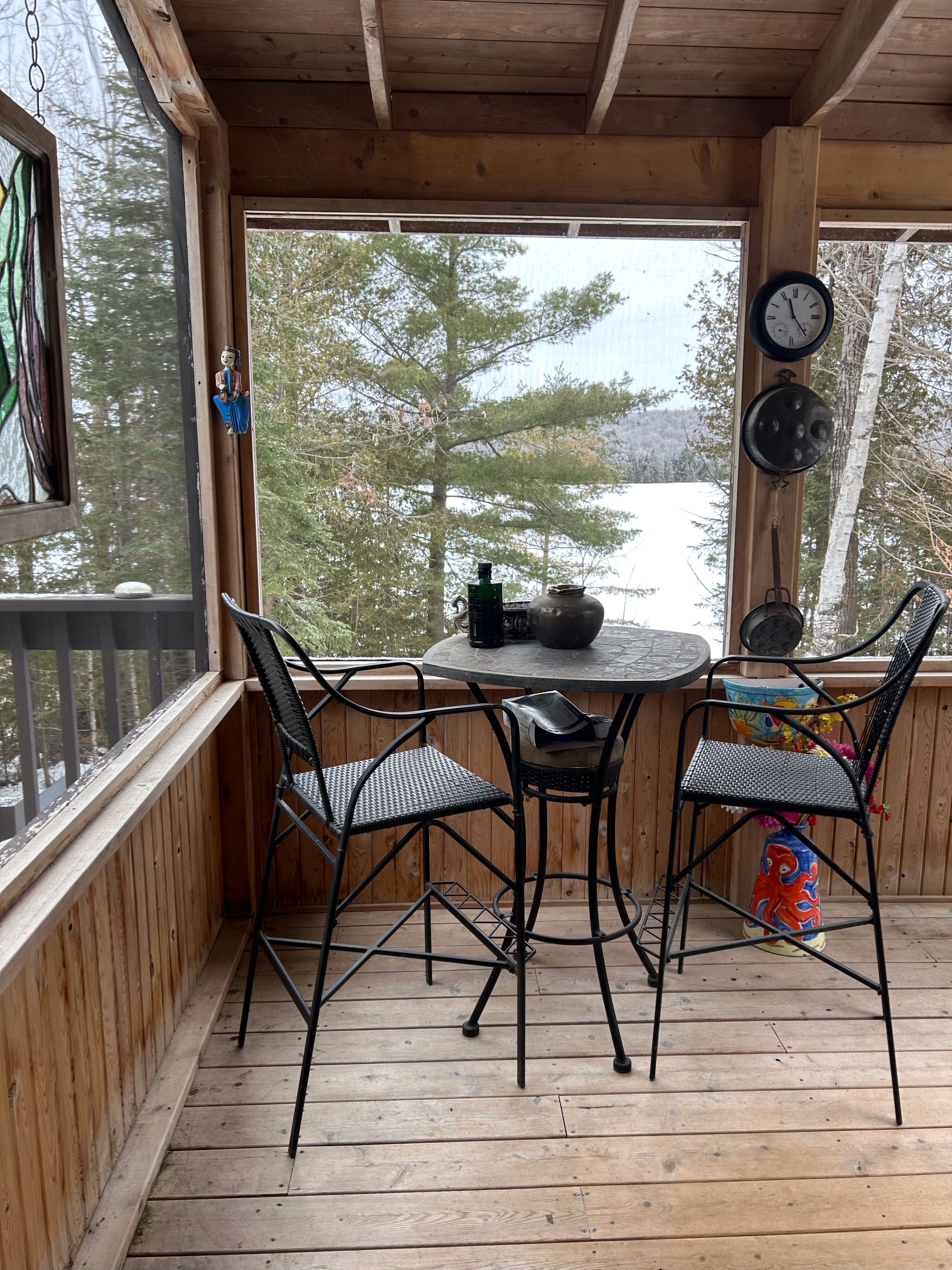 Bancroft area - This is a perfect spot to enjoy the view of Wadsworth Lake without paying waterfront taxes. This 3 bedroom home is situated on 1.74 acres on a year round road and features many outbuildings. Adorable bunkie for guests, garden shed, greenhouse and drive shed are on a well treed lot. Very cozy 3 bedroom home has a front deck, a nice screen porch facing the lake, and a composite back deck featuring a hot tub with easy access from the living room patio doors. Main floor has both a living room and family room, a 3 piece bathroom with stackable washer and dryer, kitchen, dining room and main floor bedroom.. Upper floor has 2 bedrooms with fir flooring and lots of storage. House is heated with a propane stove in the family room and electric baseboard heaters. It also has a generator wired in. Hydro averages $110 per month and propane is $1800 per year. New metal roof was installed in 2018 with added insulation and house is insulated under the living room. Crawl space in the basement is insulated and heated. Drilled artesian well produces 40 GPM. Most furnishings are included. This home is suitable for a cottage or a year round home!