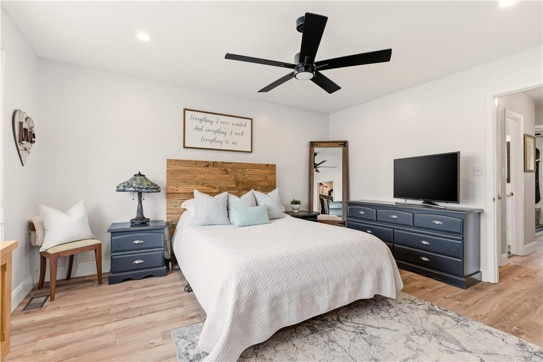 Welcome to 113 Edward Court, a beautiful 5 bedroom, 3 bath family retreat on a quiet Smithville court. This farmhouse chic home radiates warmth with custom millwork accent walls and upgraded flooring. The front great room boasts cathedral ceilings perfect for a massive sectional and is flooded with natural light. Enjoy an eat in kitchen with stainless appliances and a dining nook for eight overlooking a private backyard oasis featuring an above ground pool and hot tub. Steps down a cozy family room with a gas fireplace leads to a functional mudroom with laundry and a three piece bath. Upstairs the primary suite features a private ensuite while two more bedrooms share an updated white and grey 4pc bath. The lower level offers two additional bedrooms and a den for the ultimate teen hangout plus massive storage. Minutes from schools and the charm of a small town, this meticulously maintained home offers the lifestyle your family deserves. Double car garage and move in ready.