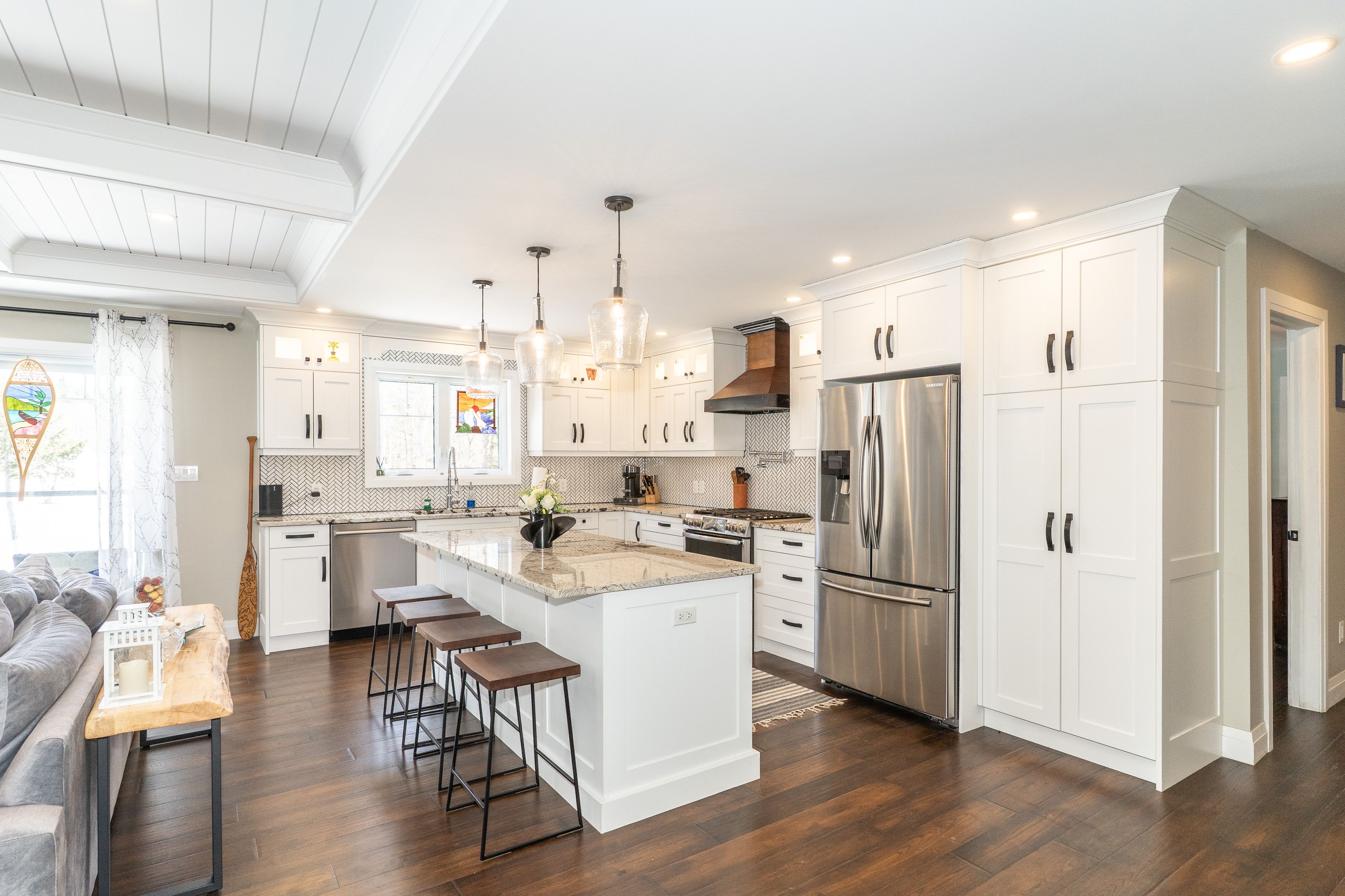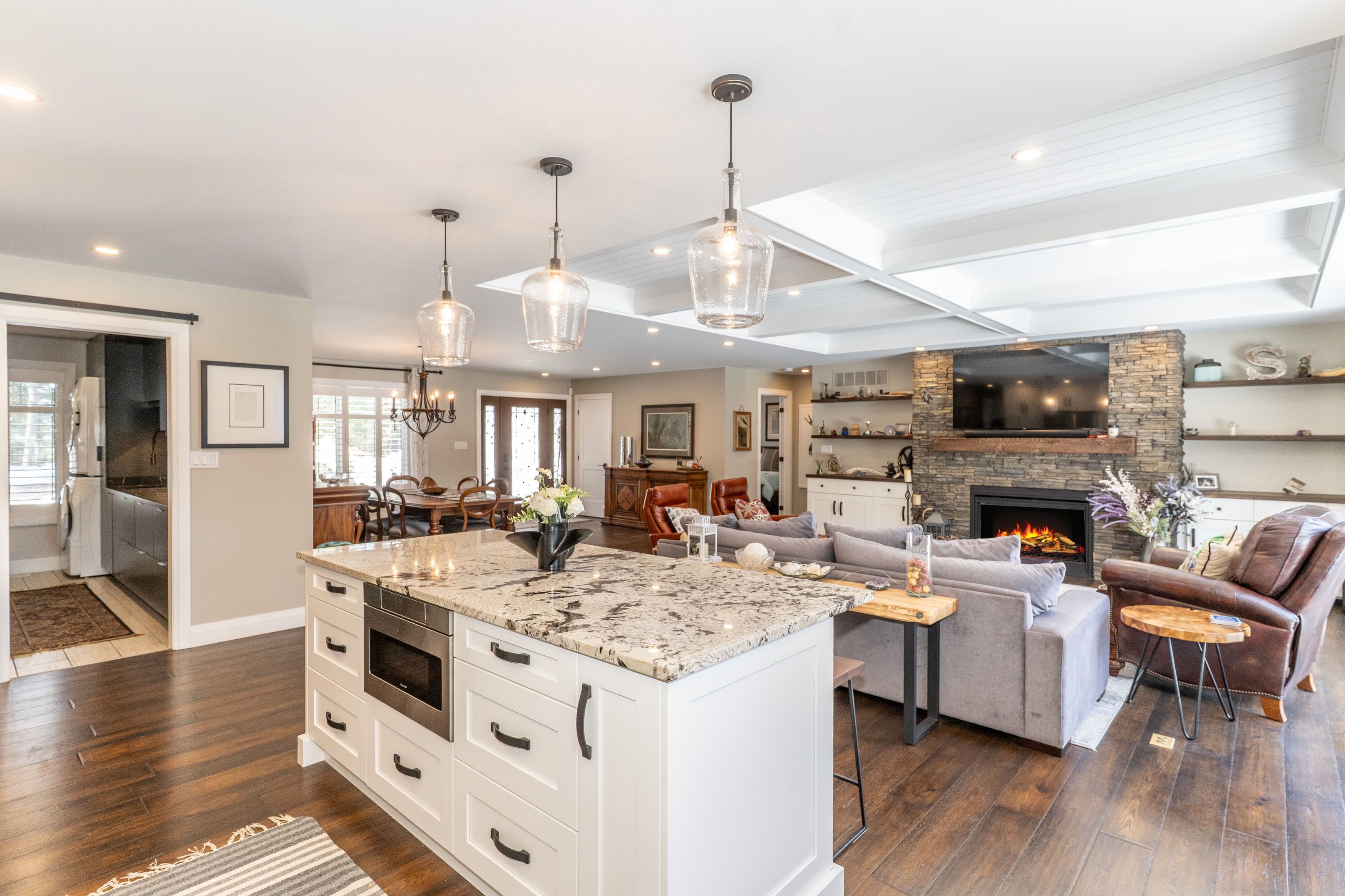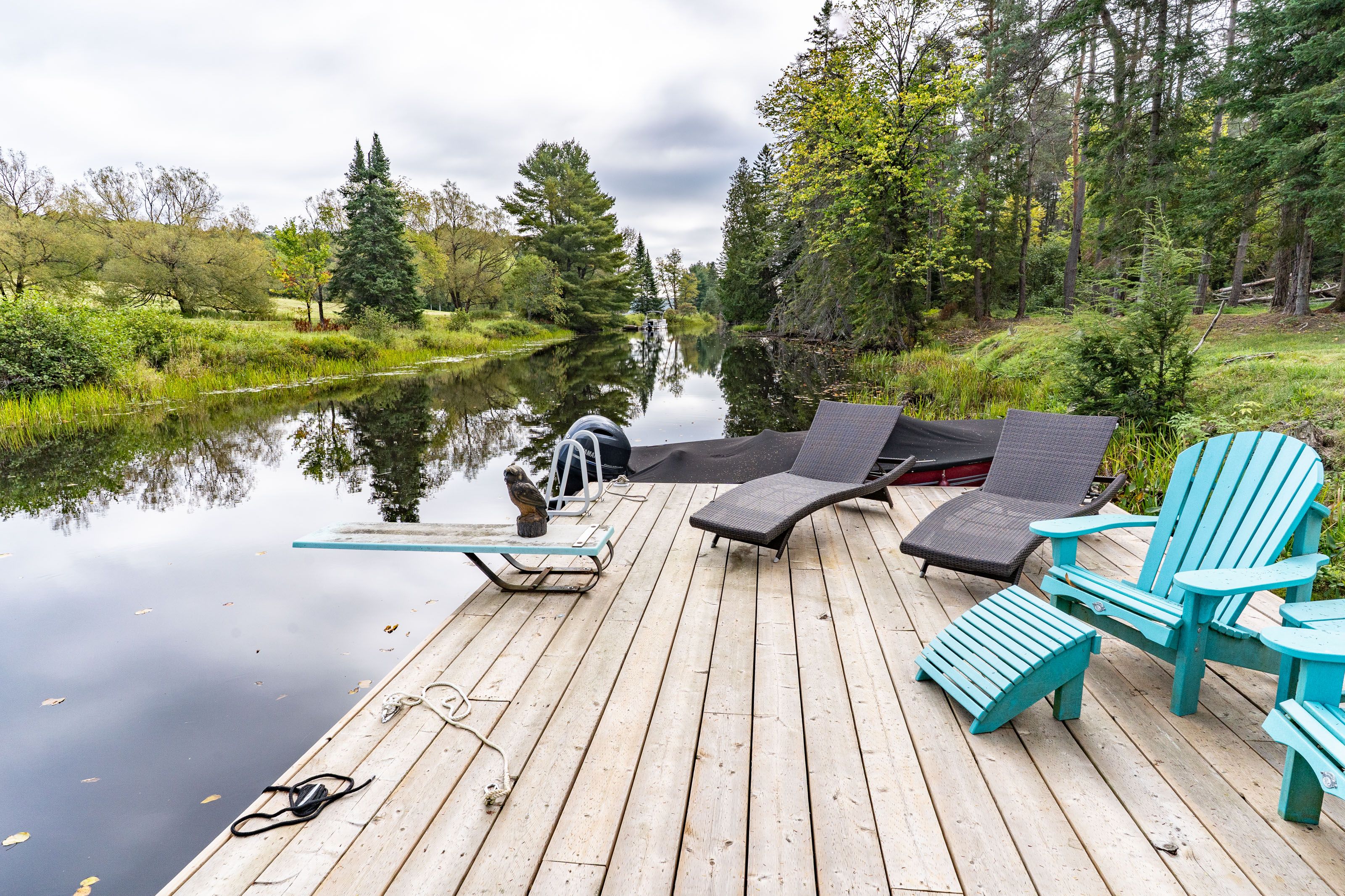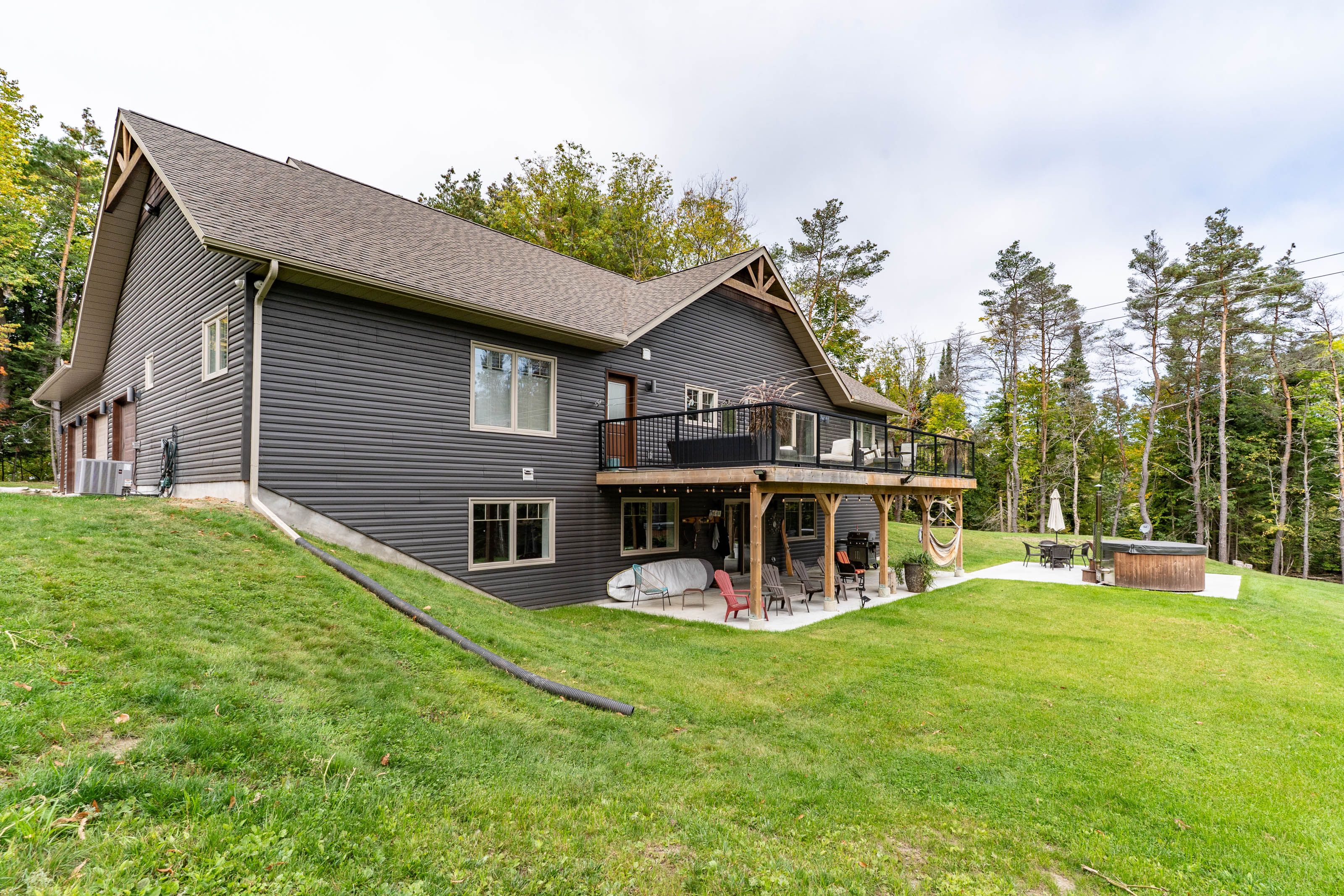 This is it! The complete package, sitting on about 4.5 acres just minutes from Hwy 11 this large custom home has a triple attached garage, walkout basement and around 400' of waterfront just a stones throw from Mary Lake. Offering direct access to beautiful Mary lake and the 4 lake chain, this unique property has quiet and private dockage in the river with no neighbours across spoiling the serene view. The home was custom built in 2019 with quality finishes and a smart layout, it features a main floor primary suite, main floor laundry, a huge deck overlooking the expansive yard and river, and a walkout basement. The triple attached garage has a large loft currently used for storage but could be finished to suit your families needs. The large steel pile dock is great for lounging at the waters edge while the poured concrete patio is perfect for a campfire or to enjoy a soak in the wood fired hot tub under the stars. Extremely private, well thought out and the best of all worlds, this four season home or vacation property ticks so many boxes. Call for your private tour.