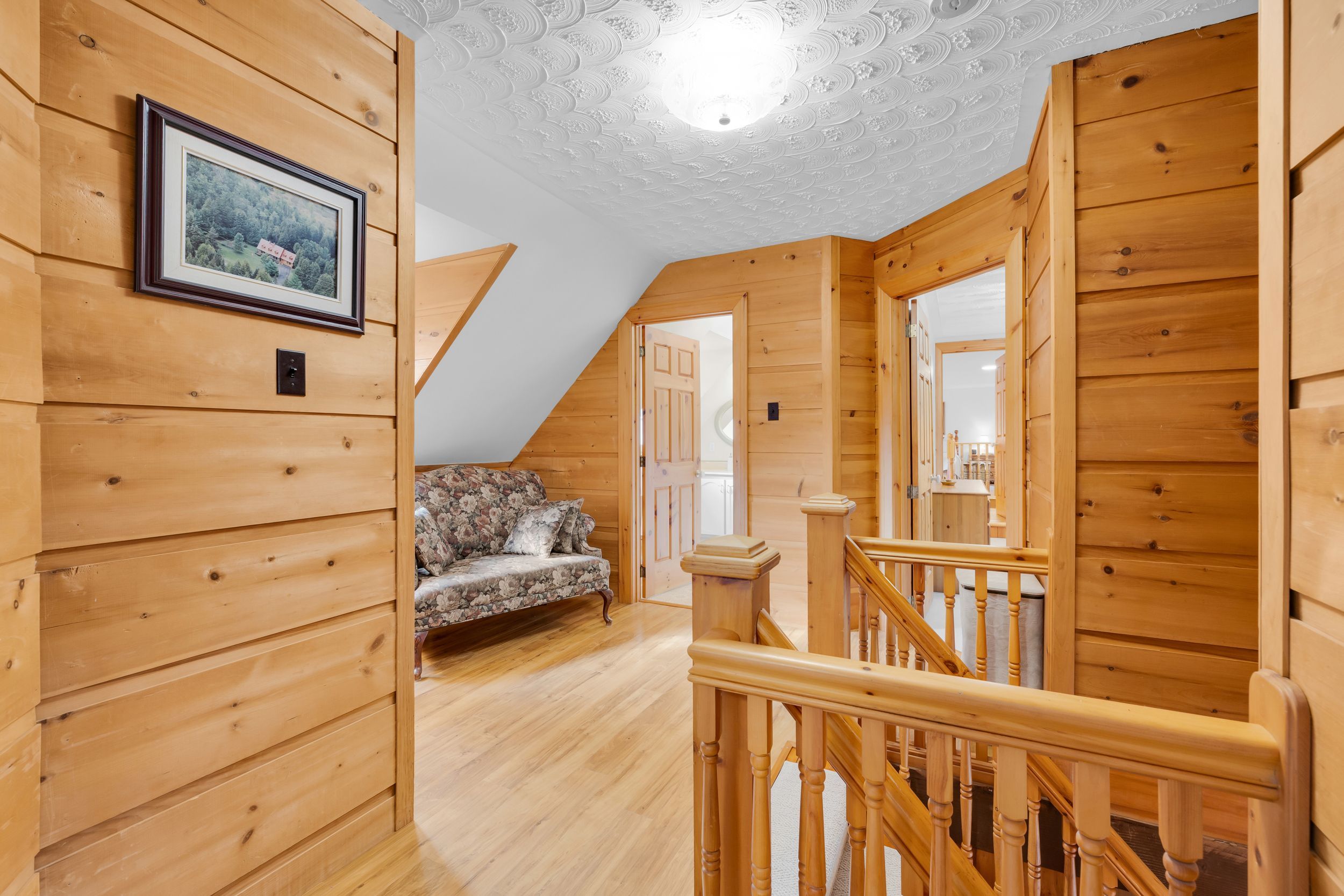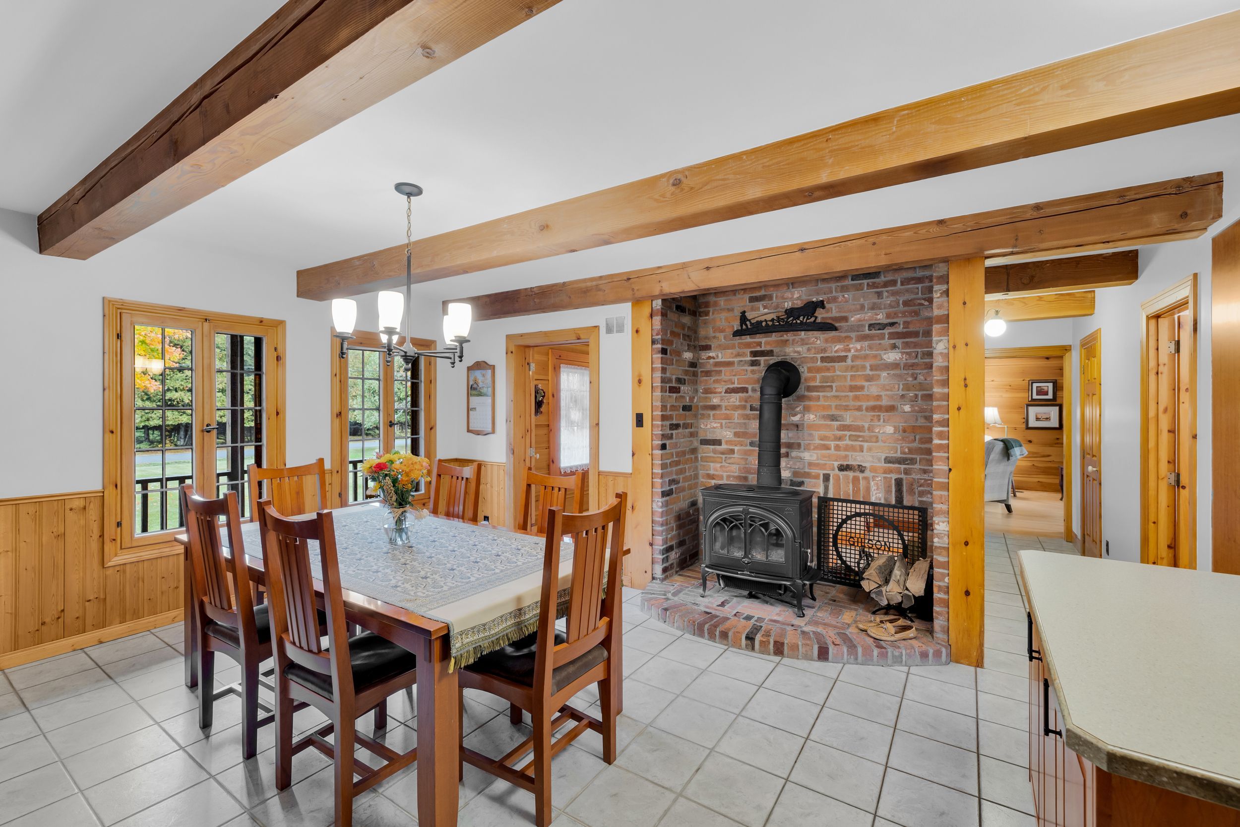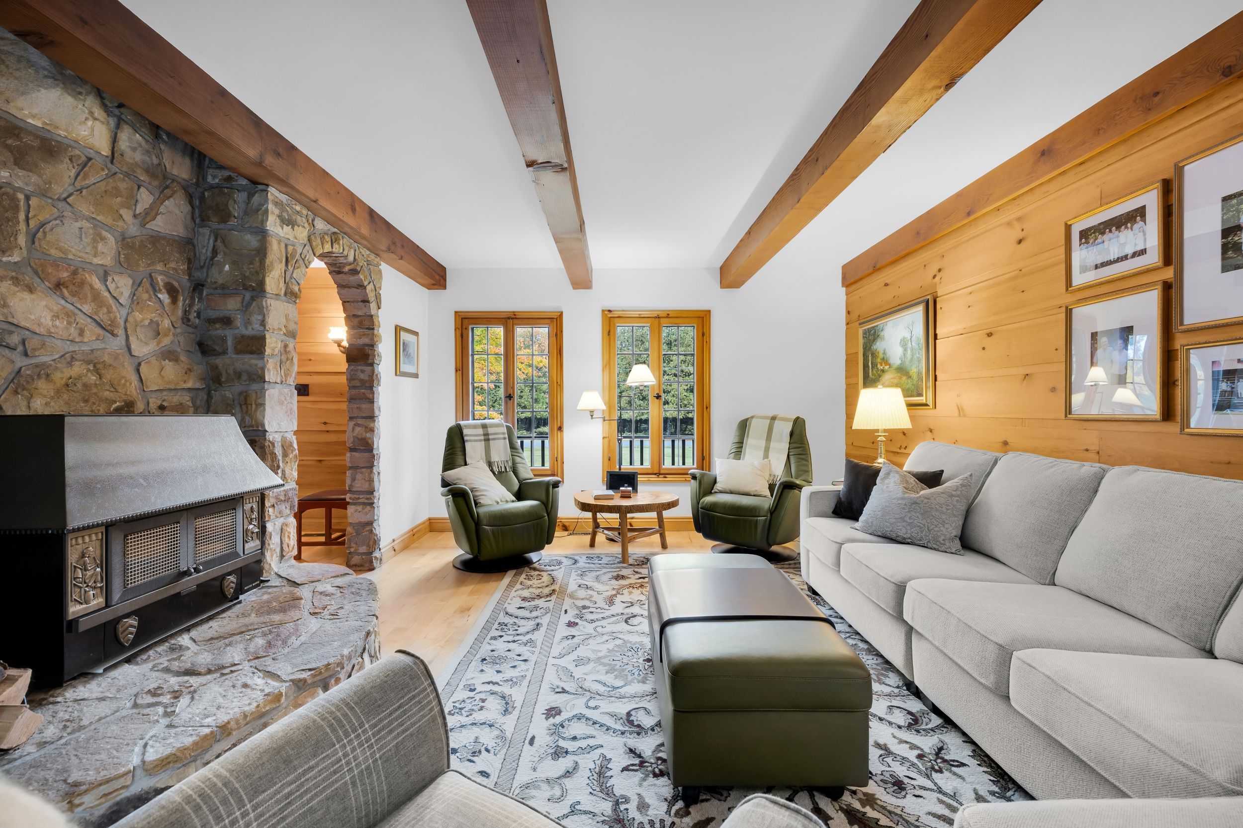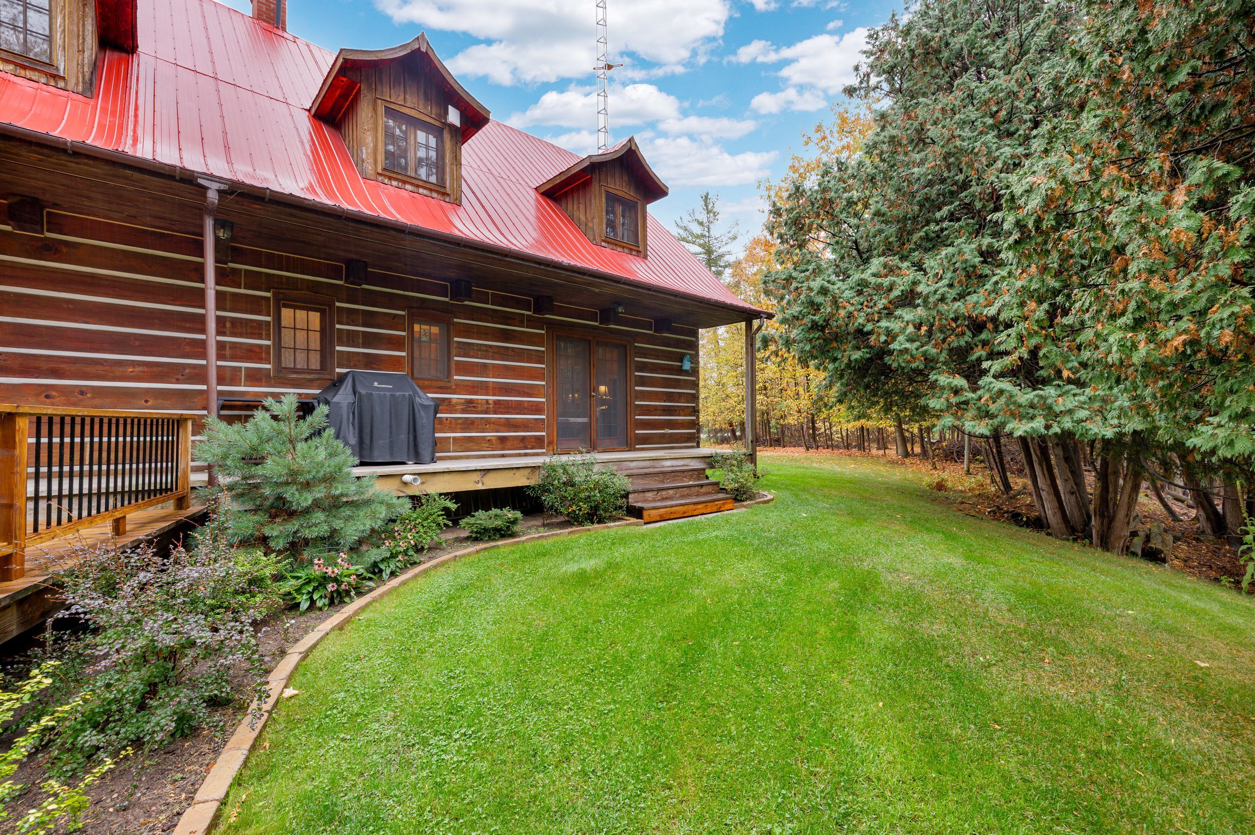 Set in the waterfront community of Dunrobin, on a private 4.3-acre lot surrounded by trees, this beautiful and spacious log home offers the perfect blend of rustic charm, privacy, and thoughtful design. Crafted for efficiency and low maintenance, this home is surrounded by nature and exudes warmth at every turn. The main level welcomes you w/ a cozy living room featuring a stone-masonry wood-burning stove, ideal for relaxing evenings with family and friends. Patio doors lead you to a large, private backyard, where nature surrounds you; an ideal space for summer barbecues, kids at play, or simply unwinding in peace. A family room provides even more space to unwind, ideal for movie nights, games, or a quiet reading corner. The kitchen is a delight, with custom wood cabinetry, hidden storage, exposed beams, and a warm eating area w/ another wood-burning stove. A powder room, mud room, and a laundry room complete the main floor. Upstairs, you'll find four comfortable bedrooms w/ large closets and two bathrooms, offering plenty of room for family and guests. The huge two-car garage, currently used as a woodworking shop with a woodstove to keep warm in the winter months, also features a loft that can be transformed into an apartment, music studio, lounge, or creative space, whatever suits your lifestyle. Outdoors, a large cedar deck is perfect for entertaining, while a play structure & anwooden shed add convenience and fun for the family. Throughout the home, the woodwork is exquisite from the staircase to the exposed ceiling beams, giving this log home its unique charm. Backing onto 16 acre of park land and located just minutes from the Ottawa River, where you can enjoy paddling, boating, or relaxing along the shore, local snowshoeing, cross-country skiing, walking, biking paths, tobogganing, as well as shopping and amenities in Kanata North, and the Eagle Creek Golf Course, this home has been lovingly cared for by its original owners, reflecting true pride of ownership.