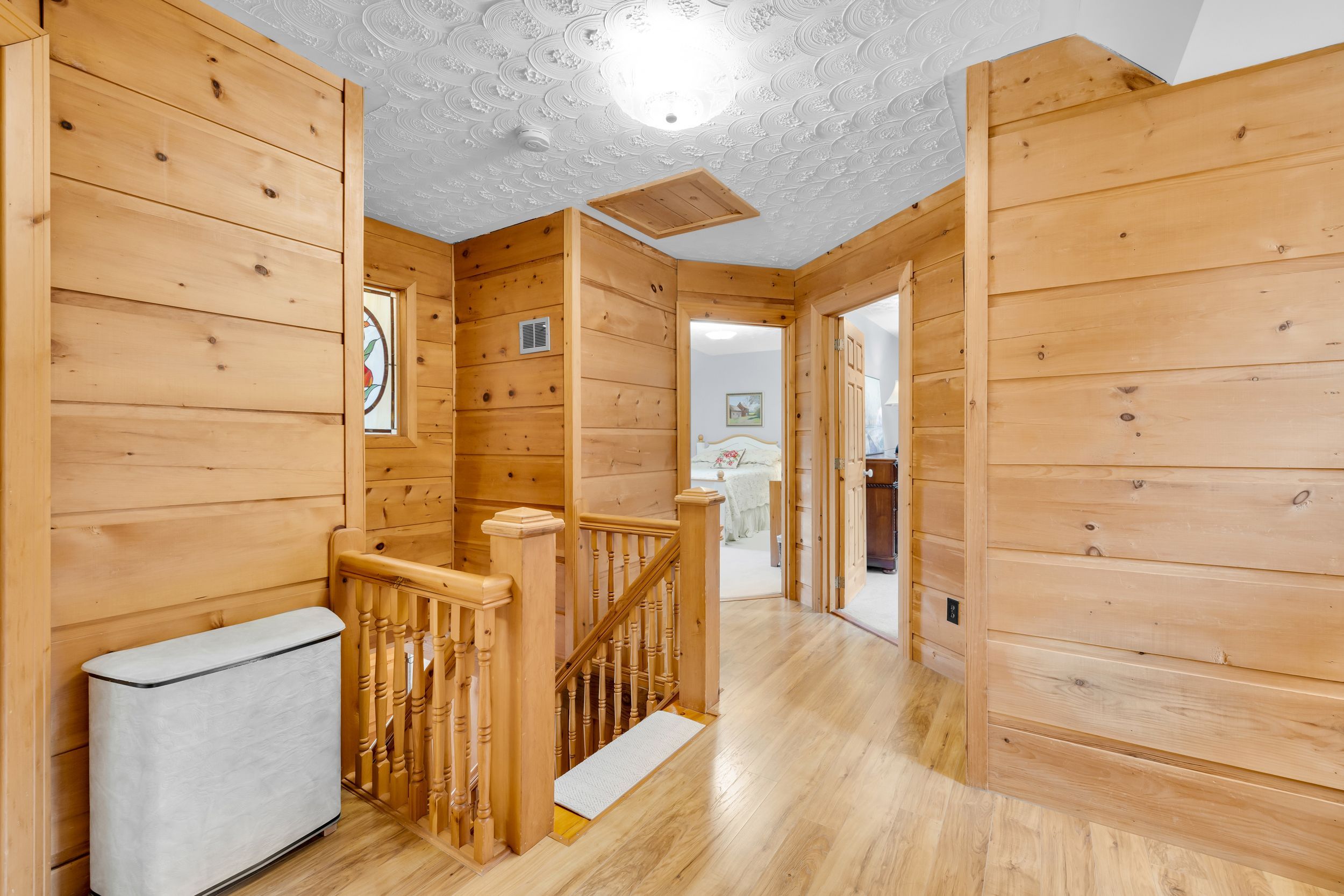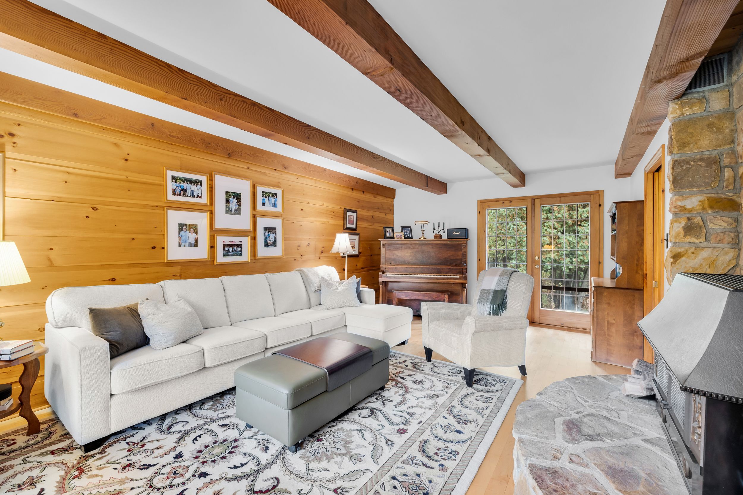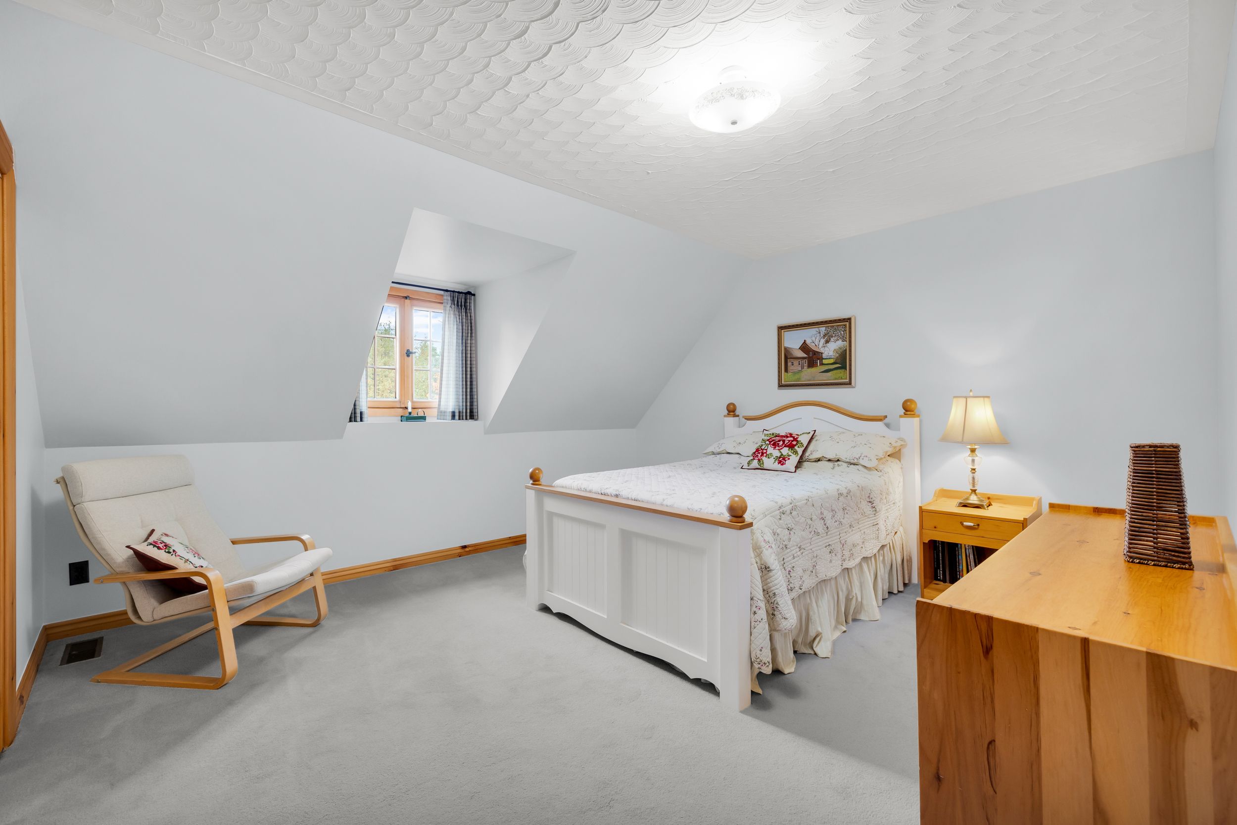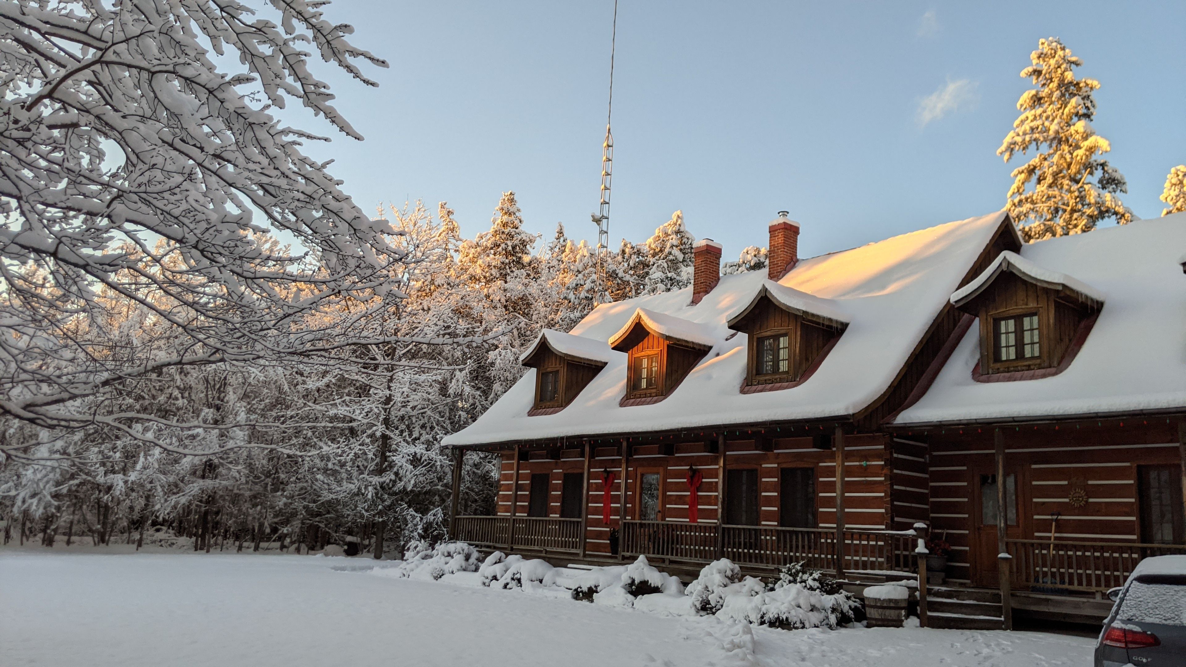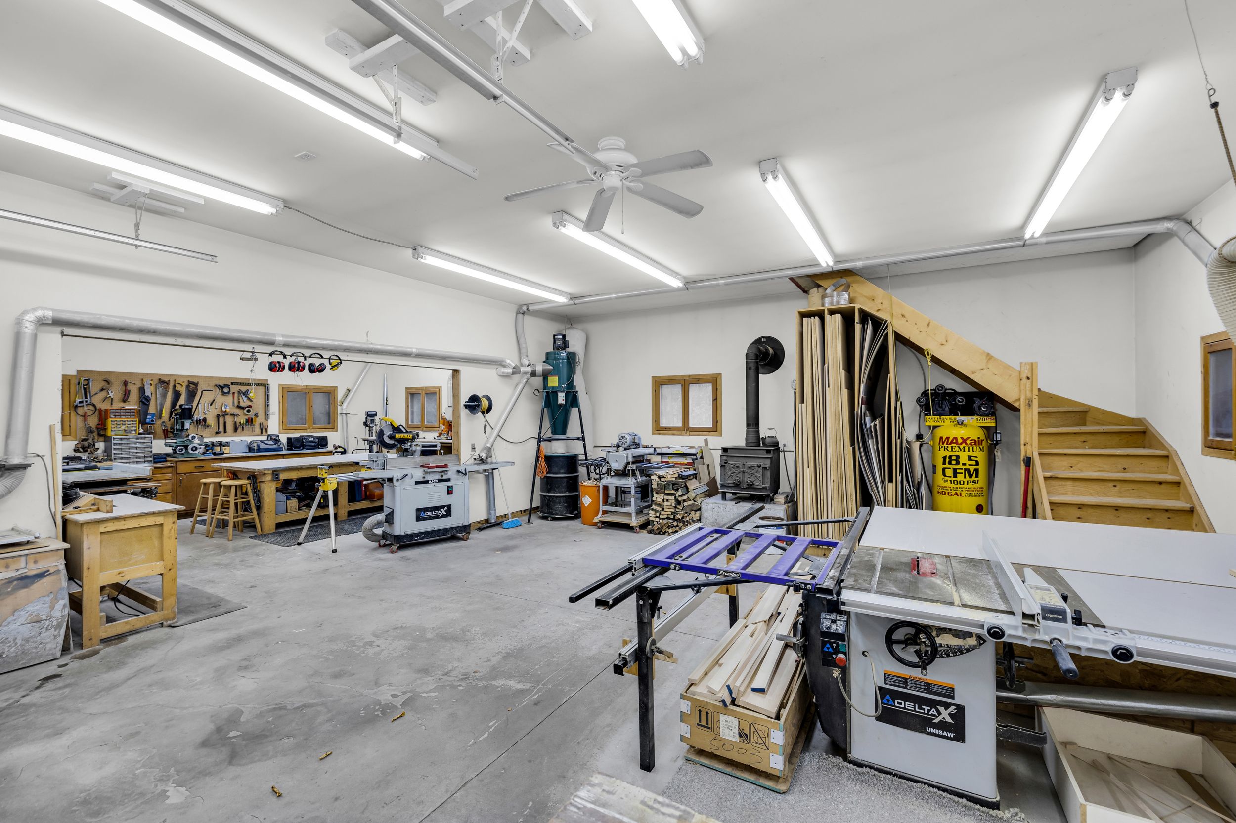 Set in the waterfront community of Dunrobin, on a private 4.3-acre lot surrounded by trees, this beautiful and spacious log home offers the perfect blend of rustic charm, privacy, and thoughtful design. Crafted for efficiency and low maintenance, this home is surrounded by nature and exudes warmth at every turn. The main level welcomes you w/ a cozy living room featuring a stone-masonry wood-burning stove, ideal for relaxing evenings with family and friends. Patio doors lead you to a large, private backyard, where nature surrounds you; an ideal space for summer barbecues, kids at play, or simply unwinding in peace. A family room provides even more space to unwind, ideal for movie nights, games, or a quiet reading corner. The kitchen is a delight, with custom wood cabinetry, hidden storage, exposed beams, and a warm eating area w/ another wood-burning stove. A powder room, mud room, and a laundry room complete the main floor. Upstairs, you'll find four comfortable bedrooms w/ large closets and two bathrooms, offering plenty of room for family and guests. The huge two-car garage, currently used as a woodworking shop with a woodstove to keep warm in the winter months, also features a loft that can be transformed into an apartment, music studio, lounge, or creative space, whatever suits your lifestyle. Outdoors, a large cedar deck is perfect for entertaining, while a play structure & anwooden shed add convenience and fun for the family. Throughout the home, the woodwork is exquisite from the staircase to the exposed ceiling beams, giving this log home its unique charm. Backing onto 16 acre of park land and located just minutes from the Ottawa River, where you can enjoy paddling, boating, or relaxing along the shore, local snowshoeing, cross-country skiing, walking, biking paths, tobogganing, as well as shopping and amenities in Kanata North, and the Eagle Creek Golf Course, this home has been lovingly cared for by its original owners, reflecting true pride of ownership.