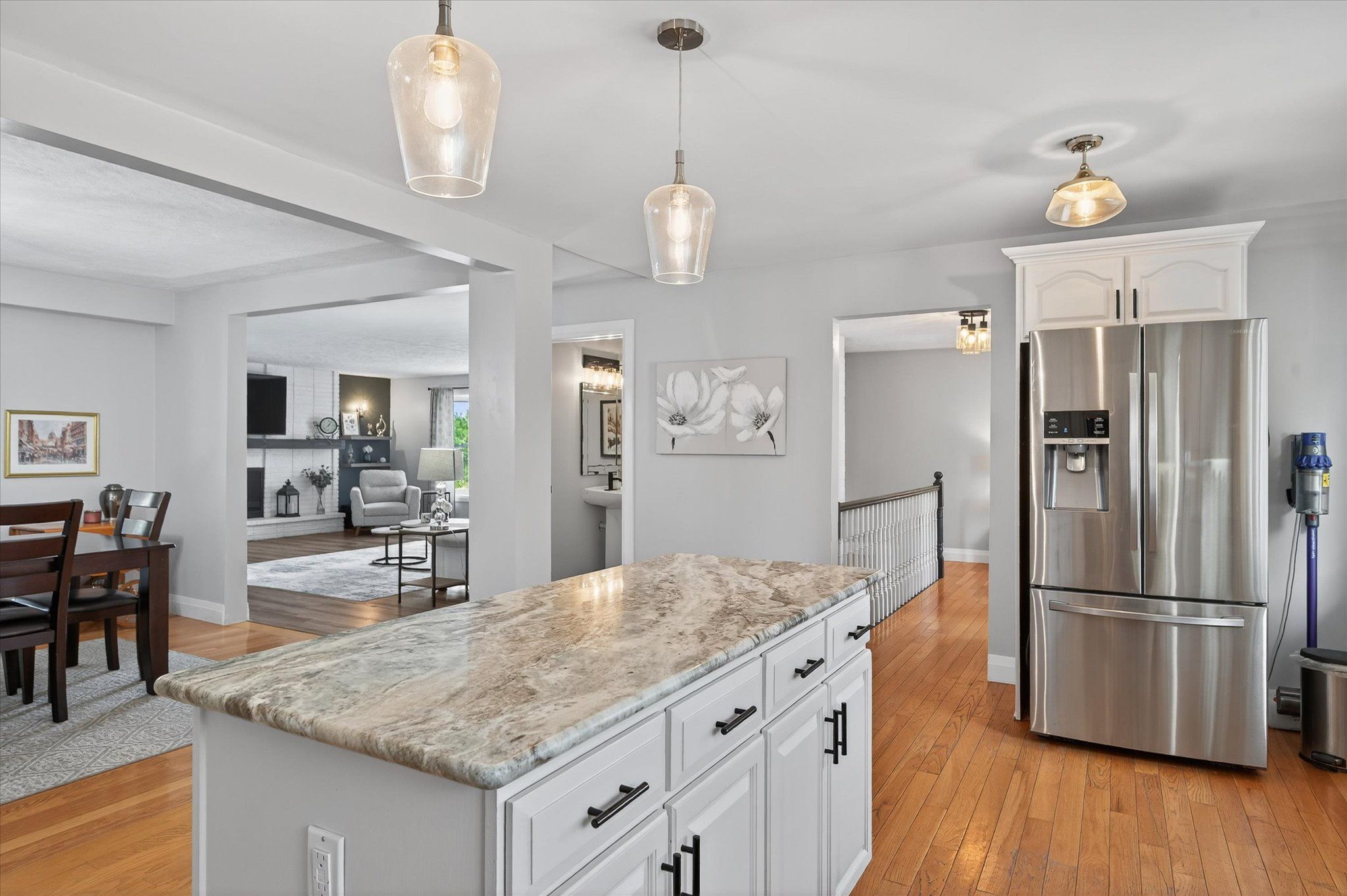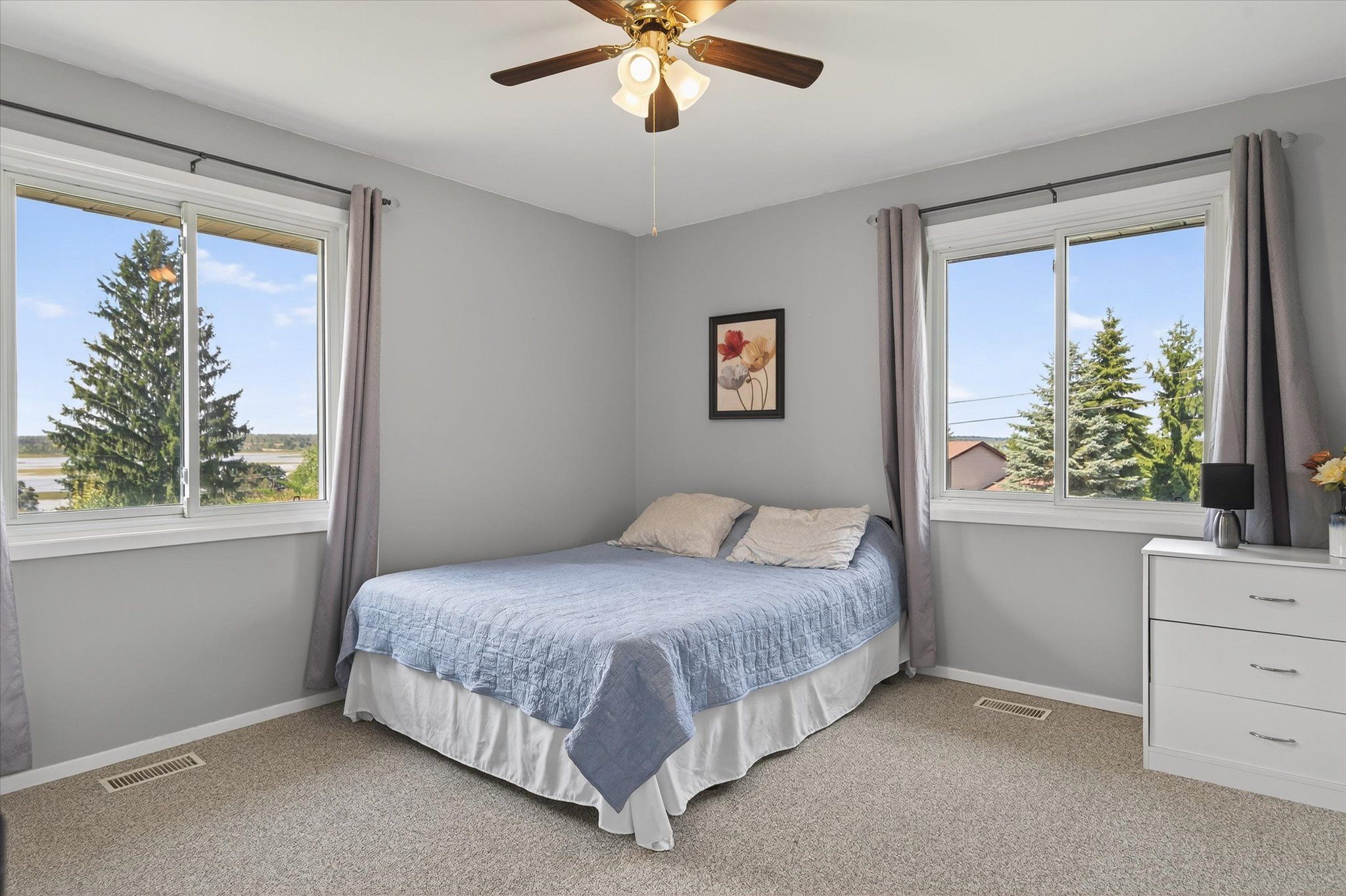 Nestled on a desirable corner lot in the sought-after Windward Sands waterfront community, this spacious 3+1 bedroom, 3-bathroom bungalow offers the perfect blend of country living and lakeside lifestyle-just steps to beautiful Pigeon Lake and only 30 minutes to downtown Peterborough. Set on just under half an acre, the property provides space, privacy, and a true sense of escape. The nearly 2,000 sq. ft. main floor features a bright, functional layout with three generous bedrooms, a 4-piece bathroom, a convenient 2-piece powder room, and a welcoming living room complete with a natural gas fireplace. A formal dining room, well-appointed kitchen, and cozy sunroom-perfect for morning coffee or evening relaxation-round out the main level. The fully finished lower level adds incredible versatility, offering an additional bedroom, a 4-piece bathroom, laundry room, and a large rec room with a second natural gas fireplace. Entertain with ease at the built-in bar, while multiple utility rooms provide ample storage. An attached double garage adds everyday convenience, while the peaceful surroundings offer the best of country living with easy access to city amenities. Notable Updates & Community Perks: Furnace (2020) New well pump (2020)Septic pumped (2025) New sump pump 2026. New flooring in sunroom 2025 Air conditioner 2021. Annual fees OPTIONAL: $350 (Dock $250 + Association $100). Enjoy exclusive access to a private boat launch, two waterfront parks, a beach, and shared paddle boards. The community also hosts fantastic events including a Canada Day celebration with fireworks, annual corn roast, potlucks, and even a shared library-creating a true sense of community.