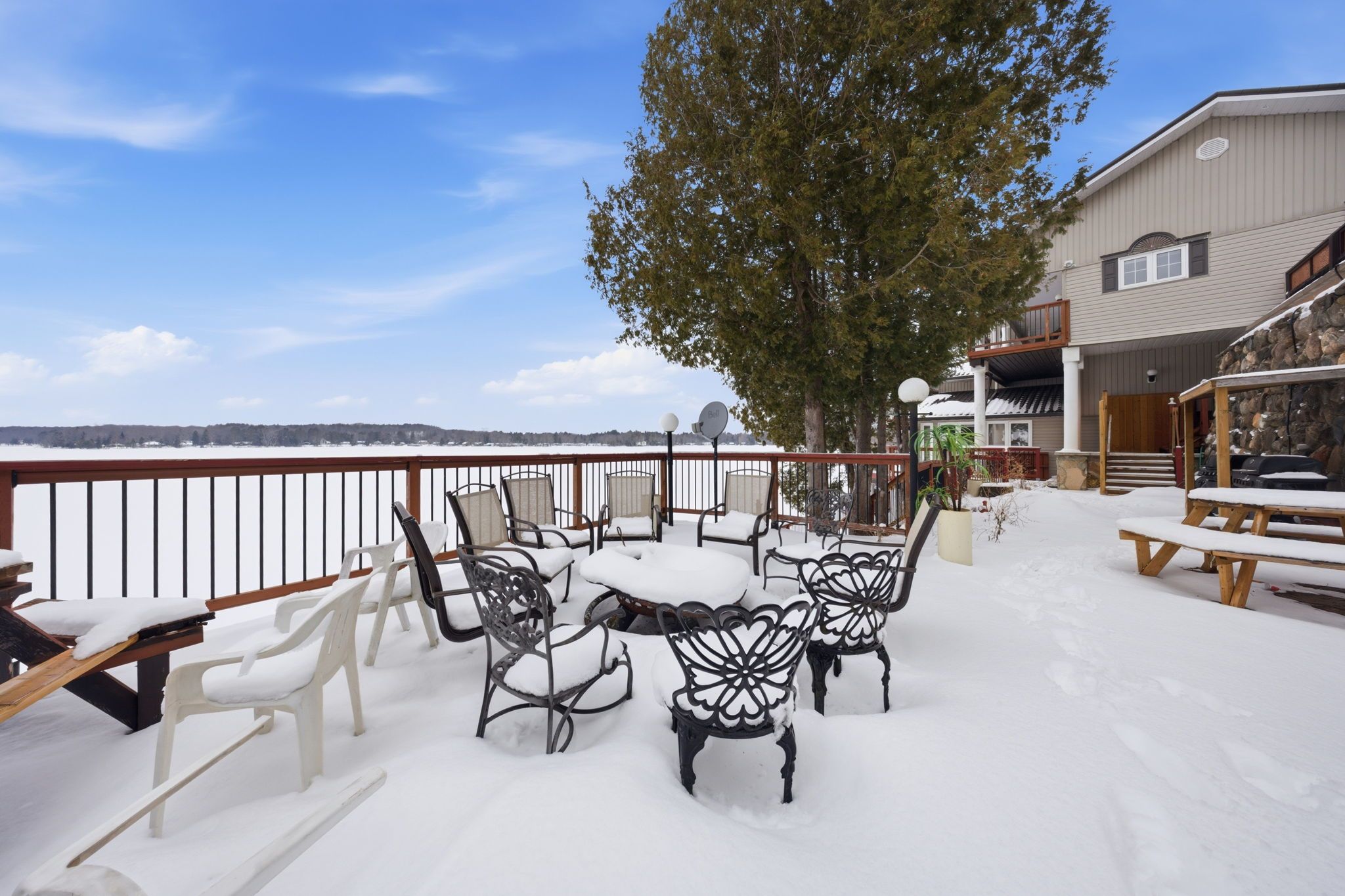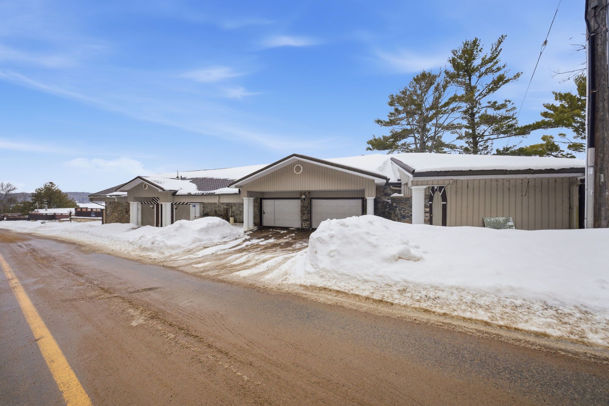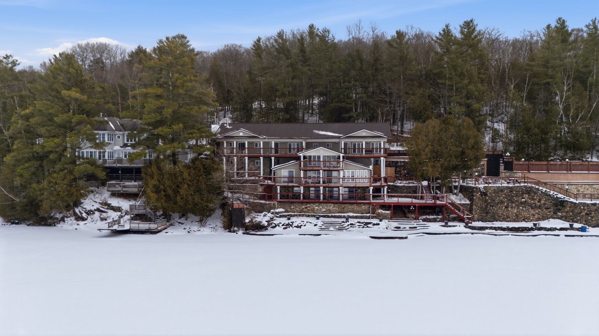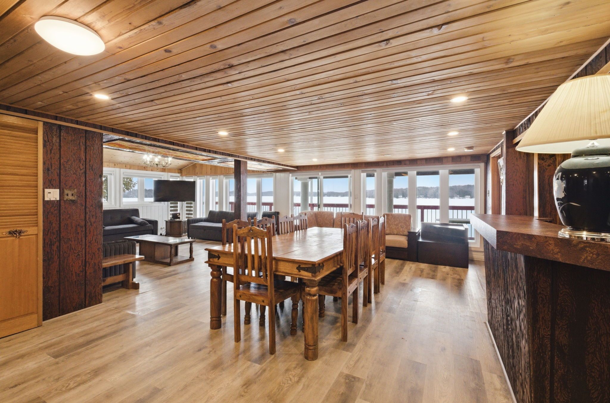 Rare waterfront compound on Wollaston Lake featuring approx. 530 ft of pristine shoreline and stunning west-facing sunset views. Set on a spacious lot, this unique property offers a large main residence with multiple self-contained units accommodating up to 25 guests-ideal for short-term rental income or multi-family use. Includes a separate 2-bedroom cottage with private shoreline and a standout 2-storey double boathouse with wet slips and upper-level flex space. Numerous recent upgrades throughout provide a turnkey opportunity. Additional land across the road offers future development potential. A versatile investment and lifestyle property within reach of the GTA and Ottawa.