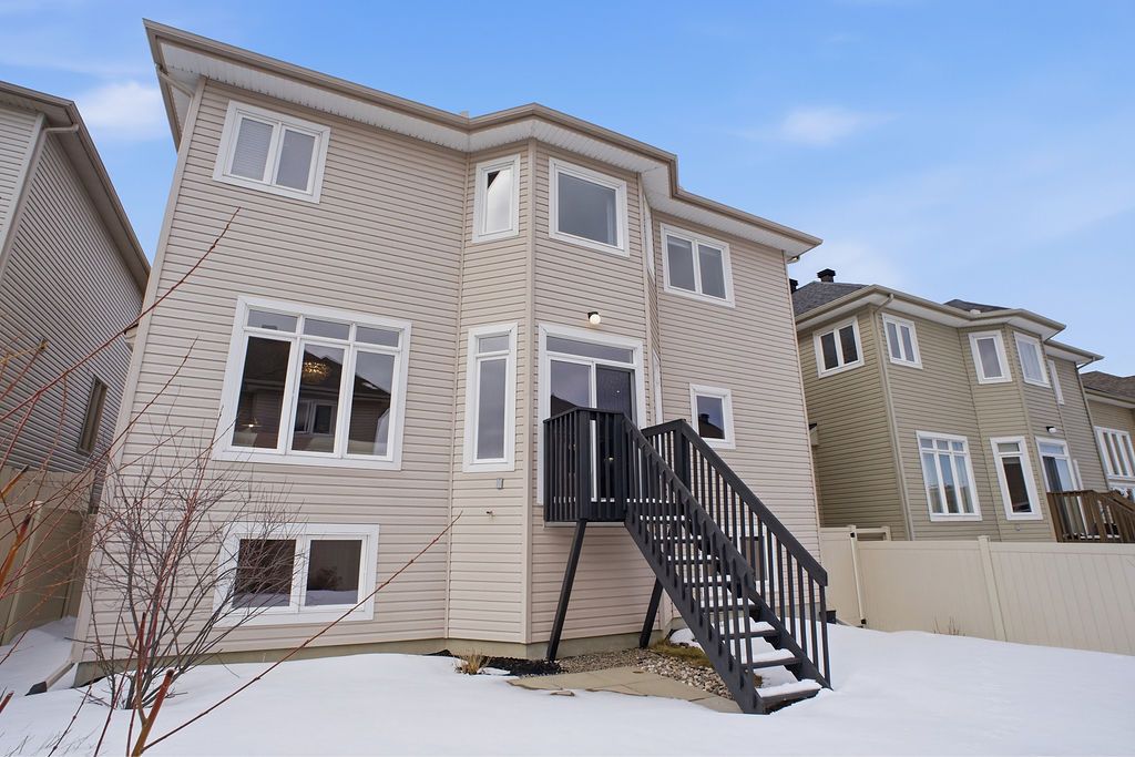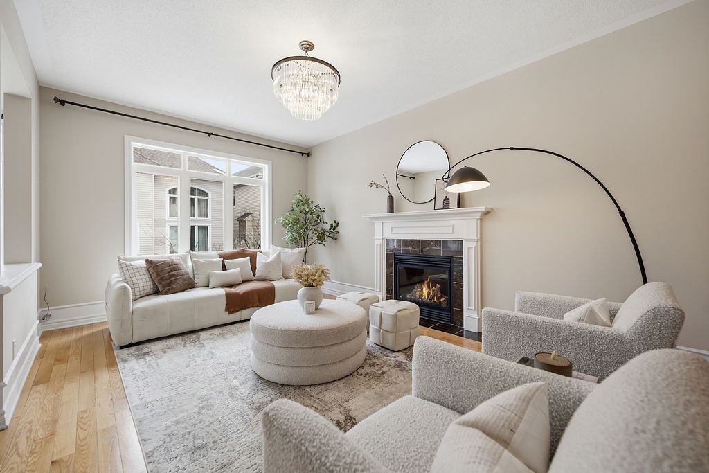 EXCEPTIONAL LUXURY IN KANATA ESTATES. An Energy Star Qualified home built by Urbandale and meticulously maintained by its original owners, this exquisite residence offer over 3,800 SQFT curated living space with 4+1 bdrms, 4 baths, Office & LOFT, it seamlessly blends elegance with modern comfort. Upon entry, you are greeted by soaring 9-foot ceilings, the brilliant glow of new lighting and stunning Oak Solid HW floors that span the entire main level. The formal living and dining rooms provide a spectacular setting for unforgettable entertaining, while a secluded Home Office offers ultimate remote-work experiences. The open-concept chef's kitchen boasts expansive quartz counter-tops, a premium central island, and high-end cabinetry, it flows into a gorgeous nook and a sun-drenched family room, where a classic gas fireplace radiates warmth and charm. Ascend the grand Curved Hardwood Staircase to the second level to find 4 bdrms, 2 full baths and a sun-soaked LOFT - perfect as a relaxing zone/Open Den. The primary ensuite features a private reading area, a magnificent boutique-style Dressing Room, and a spa-like 5-pc ensuite adorned with sleek new quartz counter-tops. The excellence continues in the BRAND-NEW, Professionally finished huge LOOK-OUT basement, bathing in natural light with massive windows, this level includes a spacious 5th bdrm, a 3-piece FULL bathroom, an expansive recreation hall, a gym, and a playroom that can easily convert into 6th bdrm. With HRV & Radon Mitigation System, this versatile level is the ultimate setup for multi-generational living or guest retreat. Outside, the cozy porch, the private setting and fully fenced backyard offer a serene, low-maintenance paradise. Situated in a Top-Tier School Zone, within walking distance to St. Gabriel Elementary, All Saints HS and upscale Shopping, short drive to WEJ and EOM and Kanata Tech Hubs, steps to nature trails and parks. This home delivers an unparalleled lifestyle for the discerning buyer.