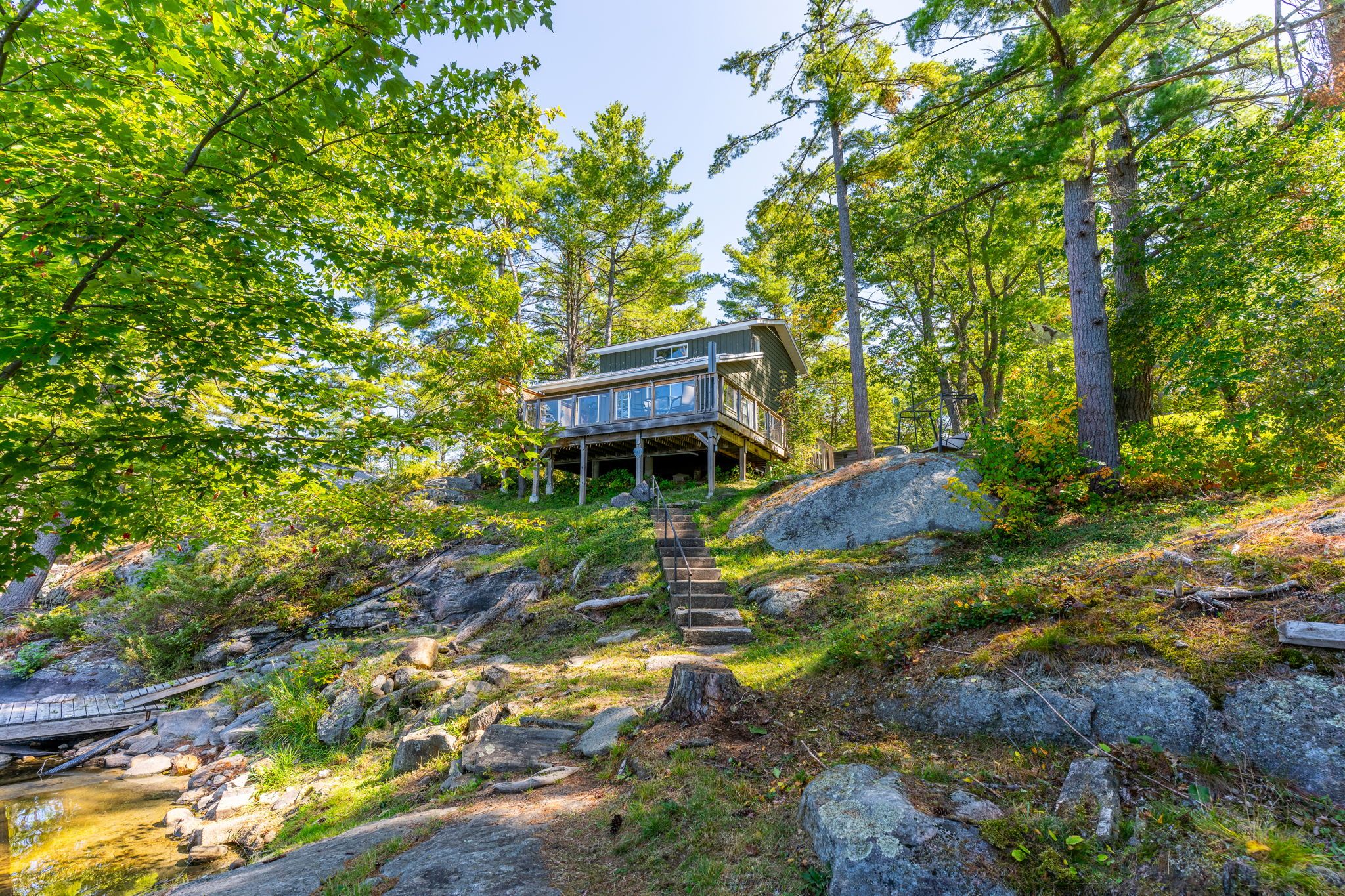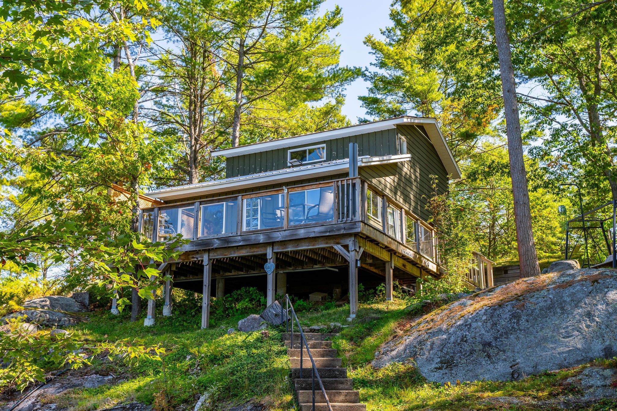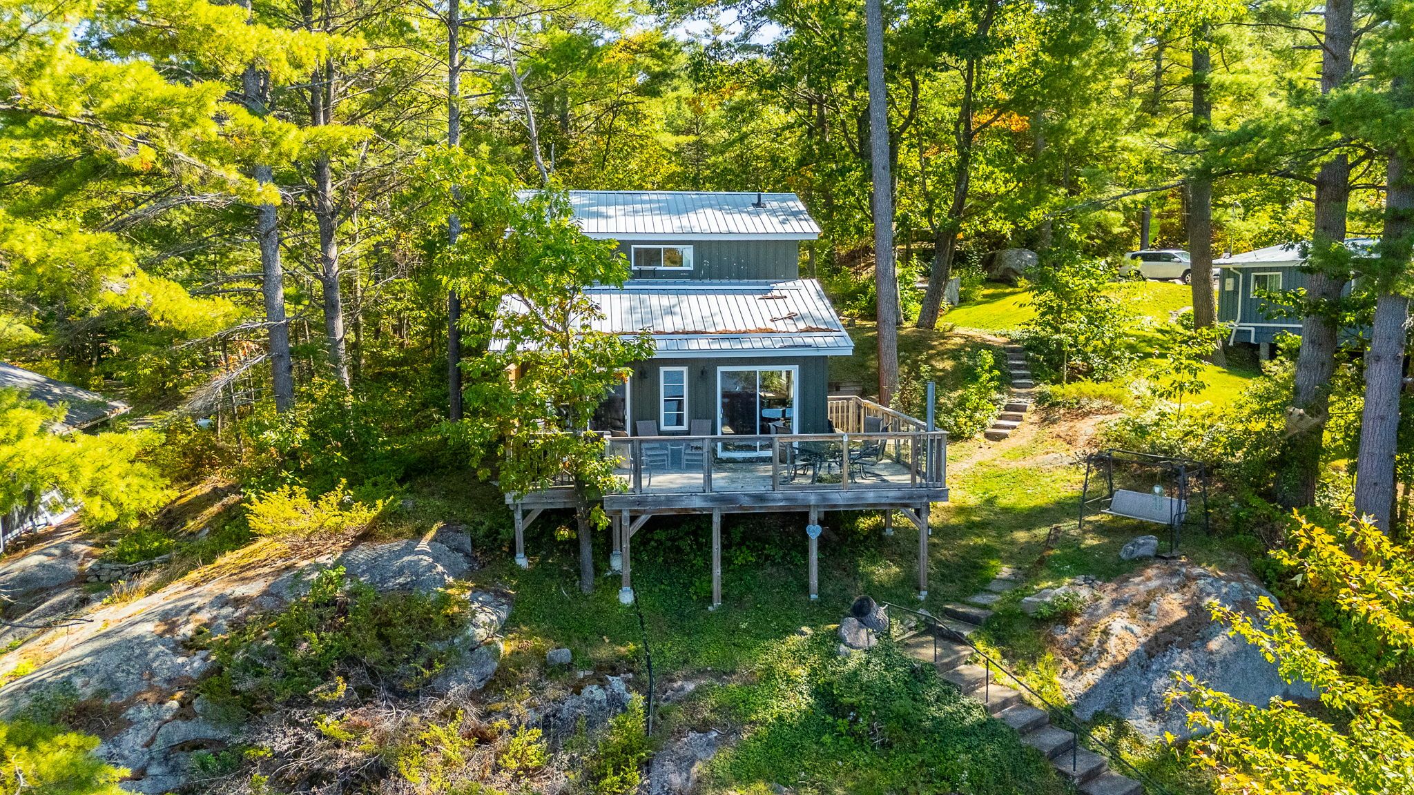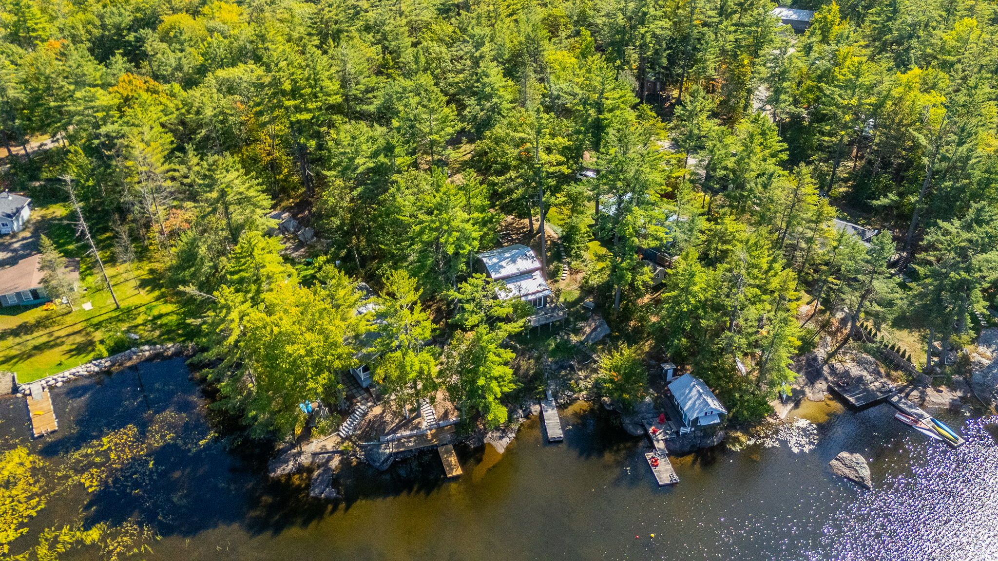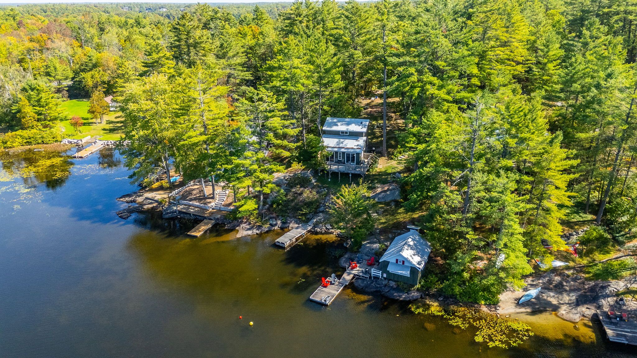 First time offered on Pine Lake! Two bedroom cottage with 3pc bath, open concept kitchen and living space plus a wrap around deck with breathtaking lake view. At the waters edge sits the original cottage, now used as a charming bunkie for overflow guests or a lakeside hangout. Due west exposure makes for amazing sunsets.... each one is different and photograph worthy. Large built in storage space with ICF foundation at the back of cottage. Parking for multiple vehicles. Cottage is only a 5 minute drive to the town of Gravenhurst, home of the Segwun, Wednesday Farmer's Market and shopping. This is an opportunity to get into the Muskoka cottage market on a clean lake with miles of boating with the added bonus of being close to town.