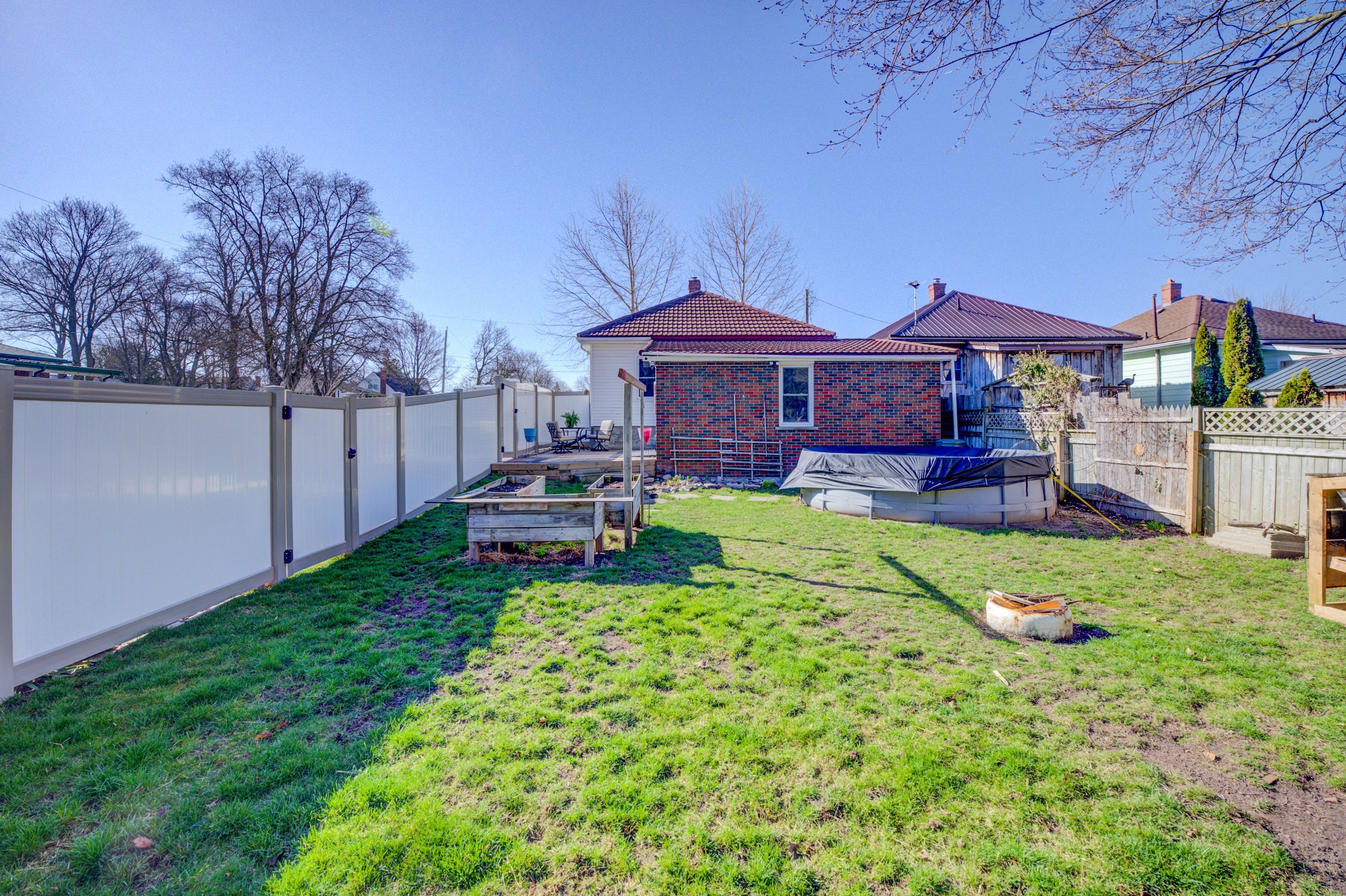 Welcome to this charming move-in-ready, 2-bedroom bungalow located on a quiet street in the heart of Delhi. Situated on a desirable corner lot backing onto the cemetery, this property offers a peaceful and private setting while still being just minutes from parks and downtown amenities. Perfect for first-time home buyers, downsizers, or anyone looking for a well-maintained home in a great location. The front foyer opens into a bright living and dining room, creating a welcoming space for everyday living or entertaining. To the right of the foyer is a good-sized bedroom that would also make an ideal guest room or home office. The living room flows into a functional kitchen with a convenient two-piece bathroom nearby. Just off the kitchen is the primary bedroom featuring its own private updated ensuite. A few steps down from the main living area leads to a spacious and beautiful family room with a cozy electric fireplace and direct access to the backyard, creating a warm and inviting place to relax or gather with family and friends. The home also features updated windows that swing in for easy cleaning, and an unfinished basement offering plenty of storage or potential for future use. Outside, enjoy the fully fenced private yard complete with a small above-ground pool, perfect for summer days. The corner lot offers plenty of outdoor space along with ample parking, and the durable steel Duralock roof provides long-term peace of mind. Delhi is a vibrant town with many local shops and restaurants, as well as an LCBO, Beer Store, Canadian Tire, Tim's, beautiful Quance Park and is just a short drive to Ramblin' Road Brewery Farm where there's something for every member of the family.