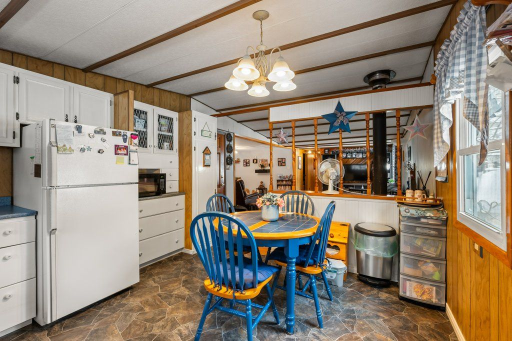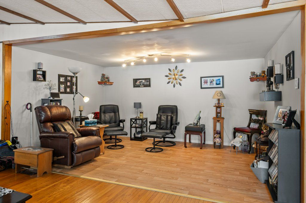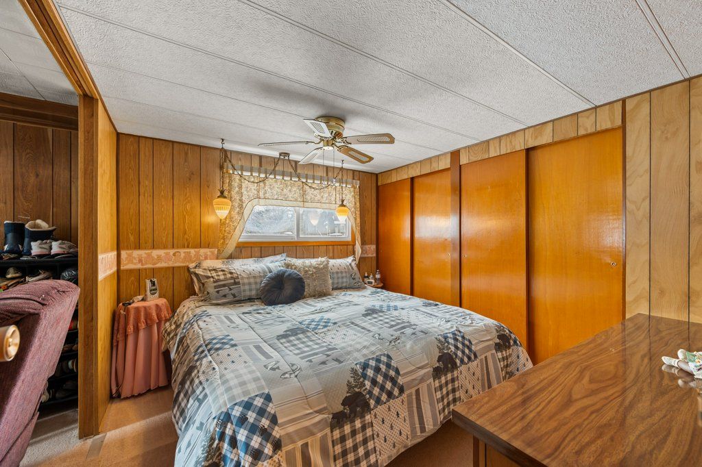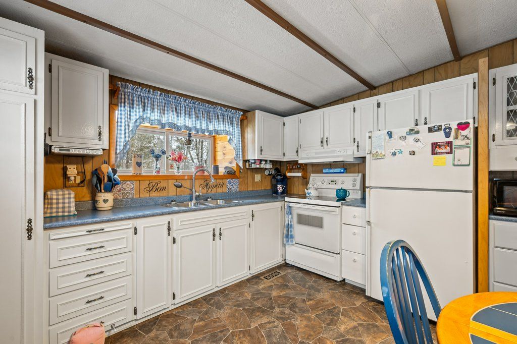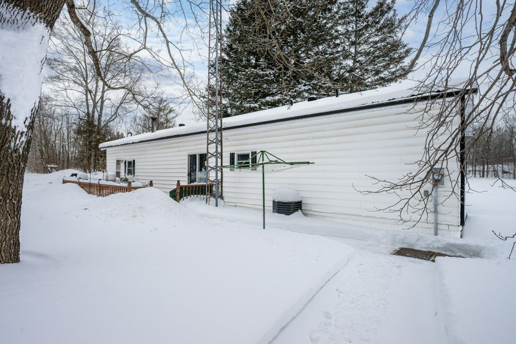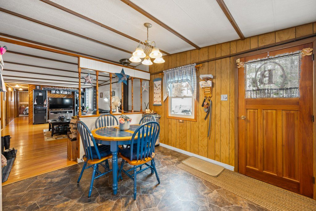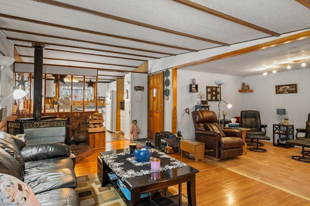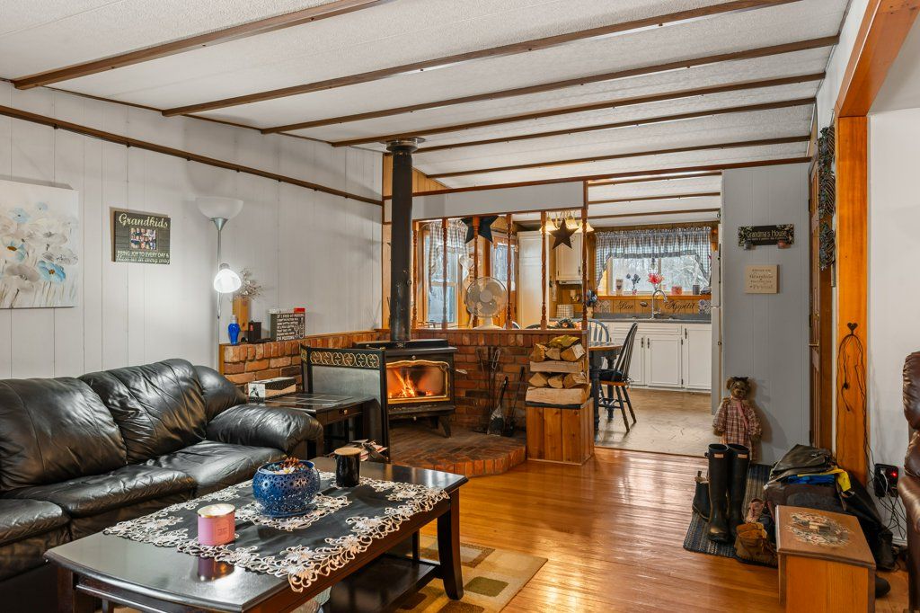 Welcome to this cozy and well-maintained mobile home set on an exceptional 1.52-acre lot. Lovingly cared for by the same family for 53 years, this property radiates pride of ownership and a true sense of home.Enjoy year-round comfort with a charming wood stove and the peace of mind that comes with durable metal roofs on both the home and the oversized detached garage. The garage features a spacious workshop, perfect for hobbyists, mechanics, or extra storage. Outdoors, the expansive lot truly shines-bursting with beautiful flower gardens in the spring and summer, offering a serene and private setting with room to grow, relax, or entertain. A rare opportunity to own a property that blends space, functionality, and timeless care. Hydro meter is hardwired for a generator.