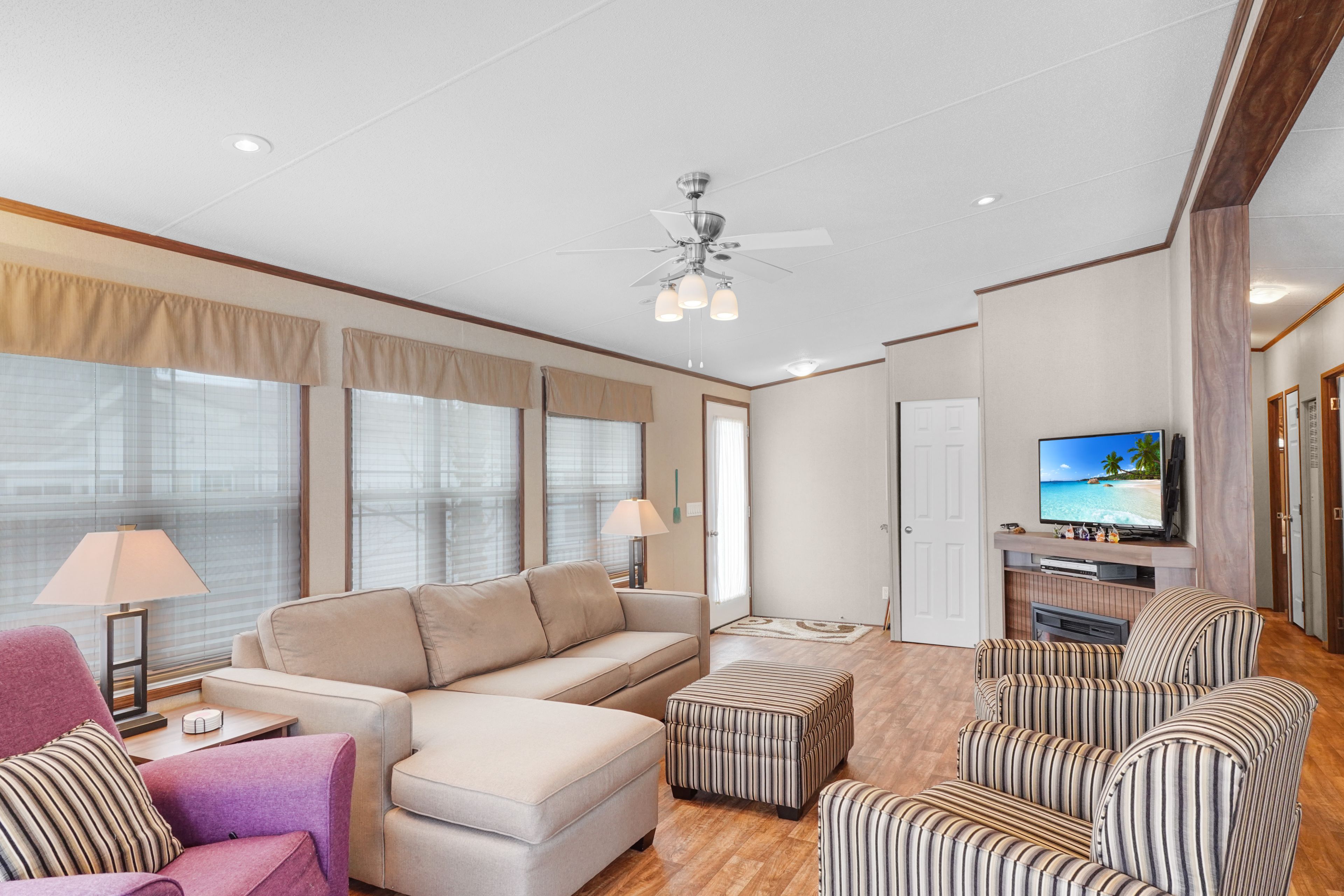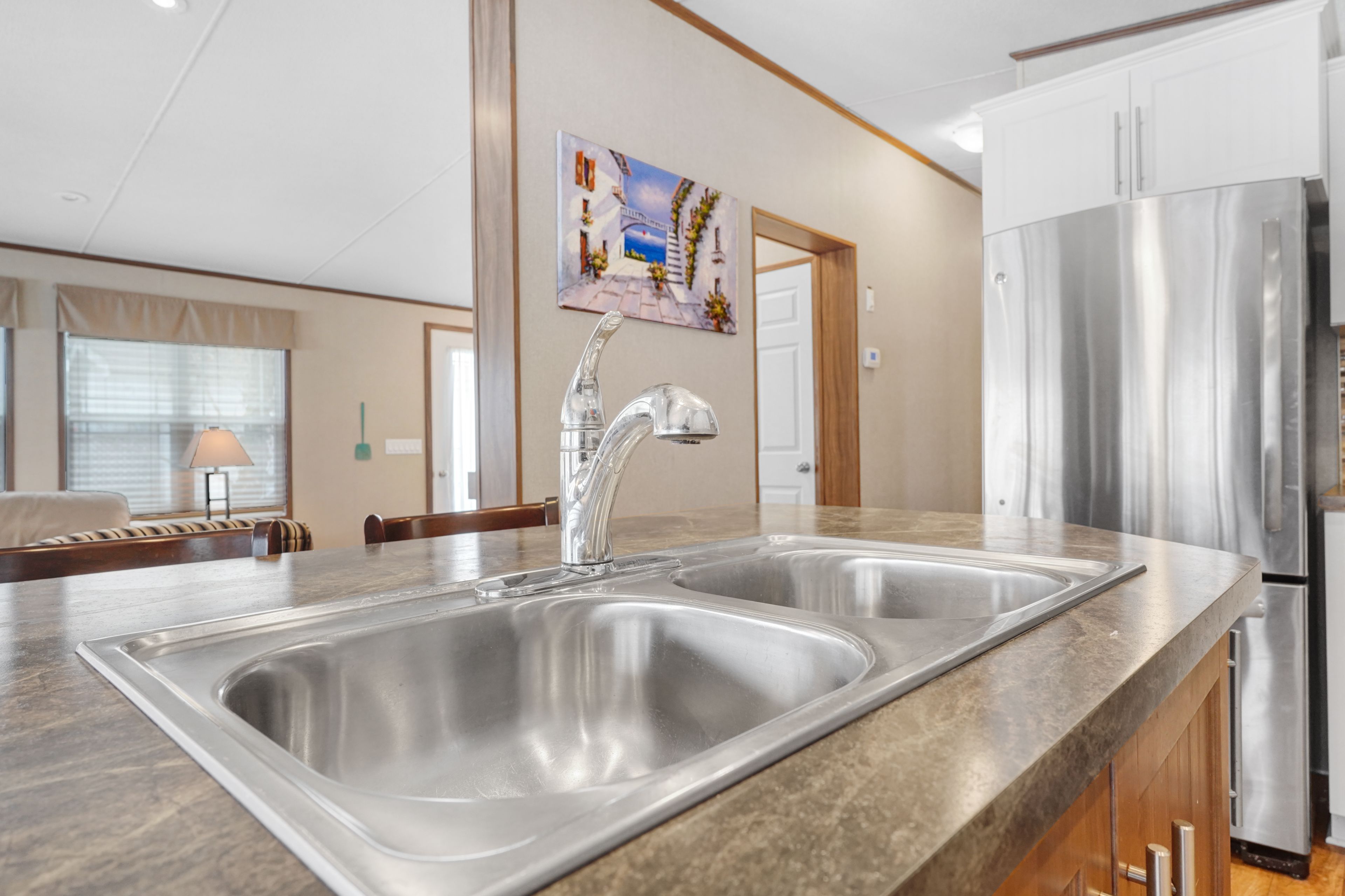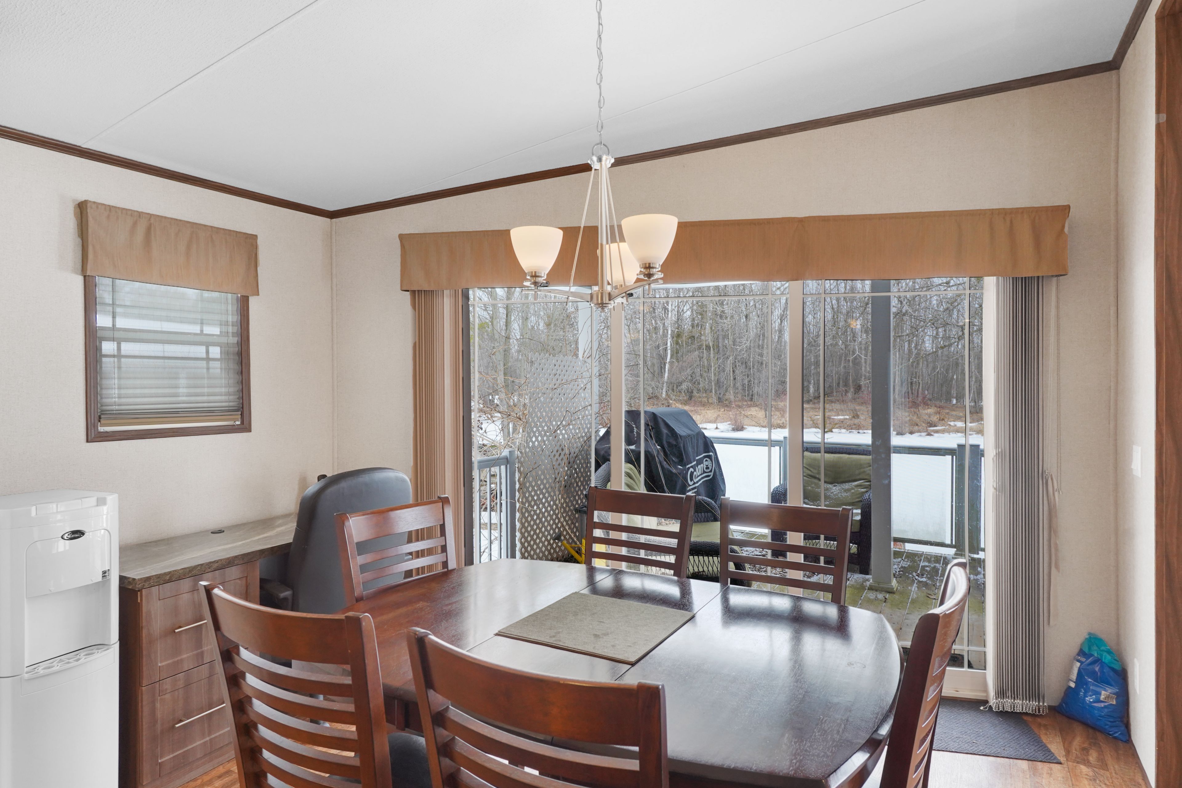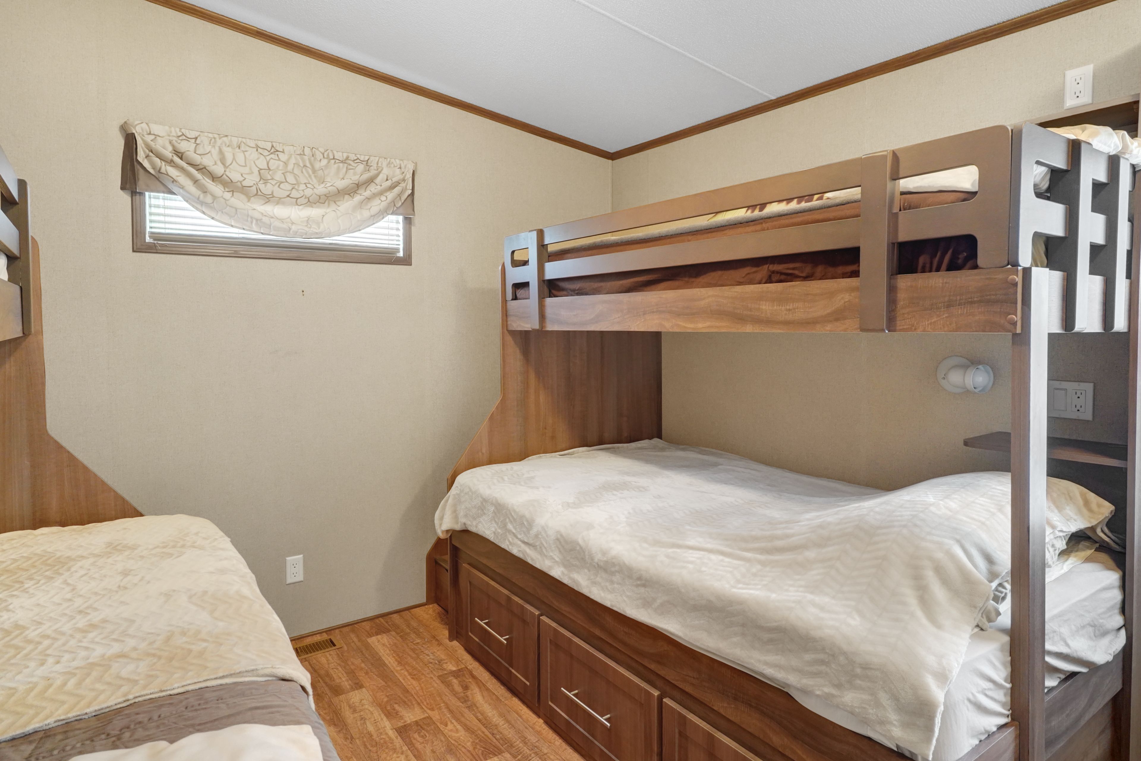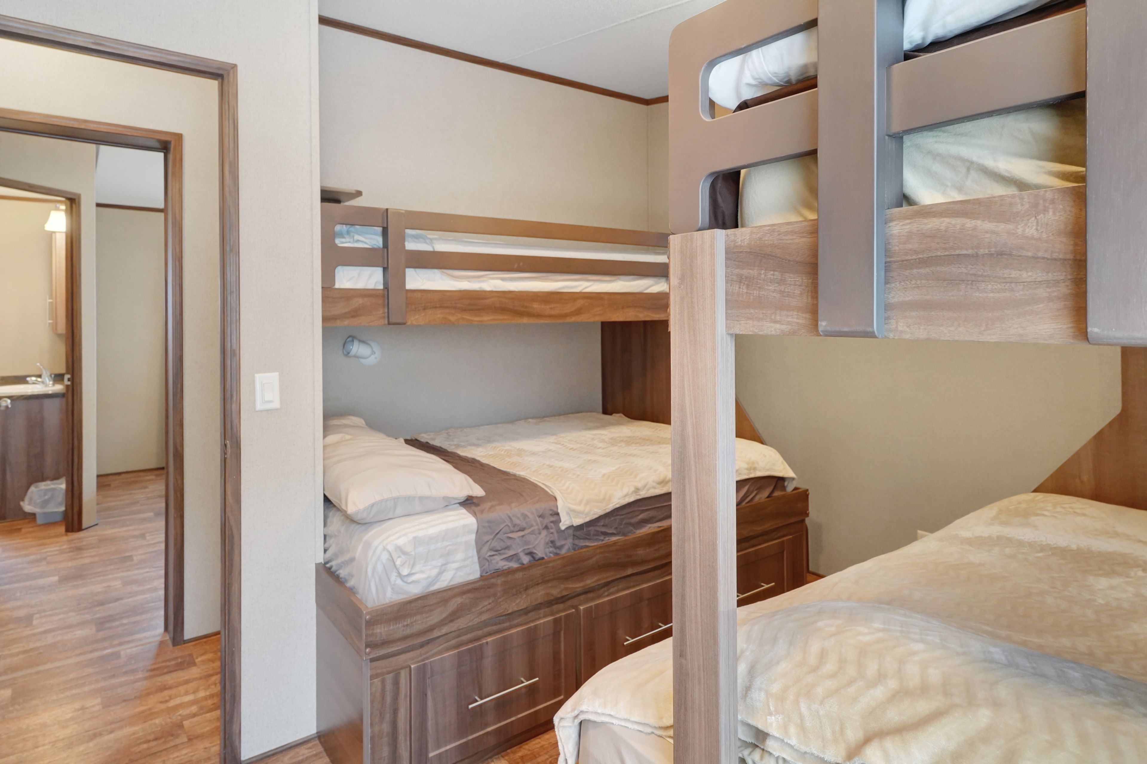 2026 park fees paid! This beautifully maintained 2016 Northlander Classic double wide park model offers exceptional direct waterfront living with a private dock in Fisherman's Cove, just minutes east of Kincardine. Situated on a private spring fed lake, it is only about 30 minutes from Port Elgin and the shores of Lake Huron.The spacious interior features two equal sized bedrooms, each with generous walk in closets. The master bedroom includes a private ensuite bathroom for added convenience. The open concept living and dining area is bright and inviting, highlighted by impressive full width (24') sliding glass doors that provide stunning panoramic water views and seamless access to a matching full width deck perfect for outdoor entertaining or simply relaxing by the water.The well equipped kitchen boasts modern stainless steel appliances, a large island with double sink, and ample counter space. Warm wood cabinetry and neutral tones create a welcoming cottage atmosphere throughout. Additional features include a second full bathroom and practical storage solutions.Ideal as a seasonal family retreat, this turnkey waterfront home combines comfort, style, and unbeatable lake access in a popular resort community with amenities including a beach, pools, and more. A rare opportunity-contact us today to schedule a private viewing!