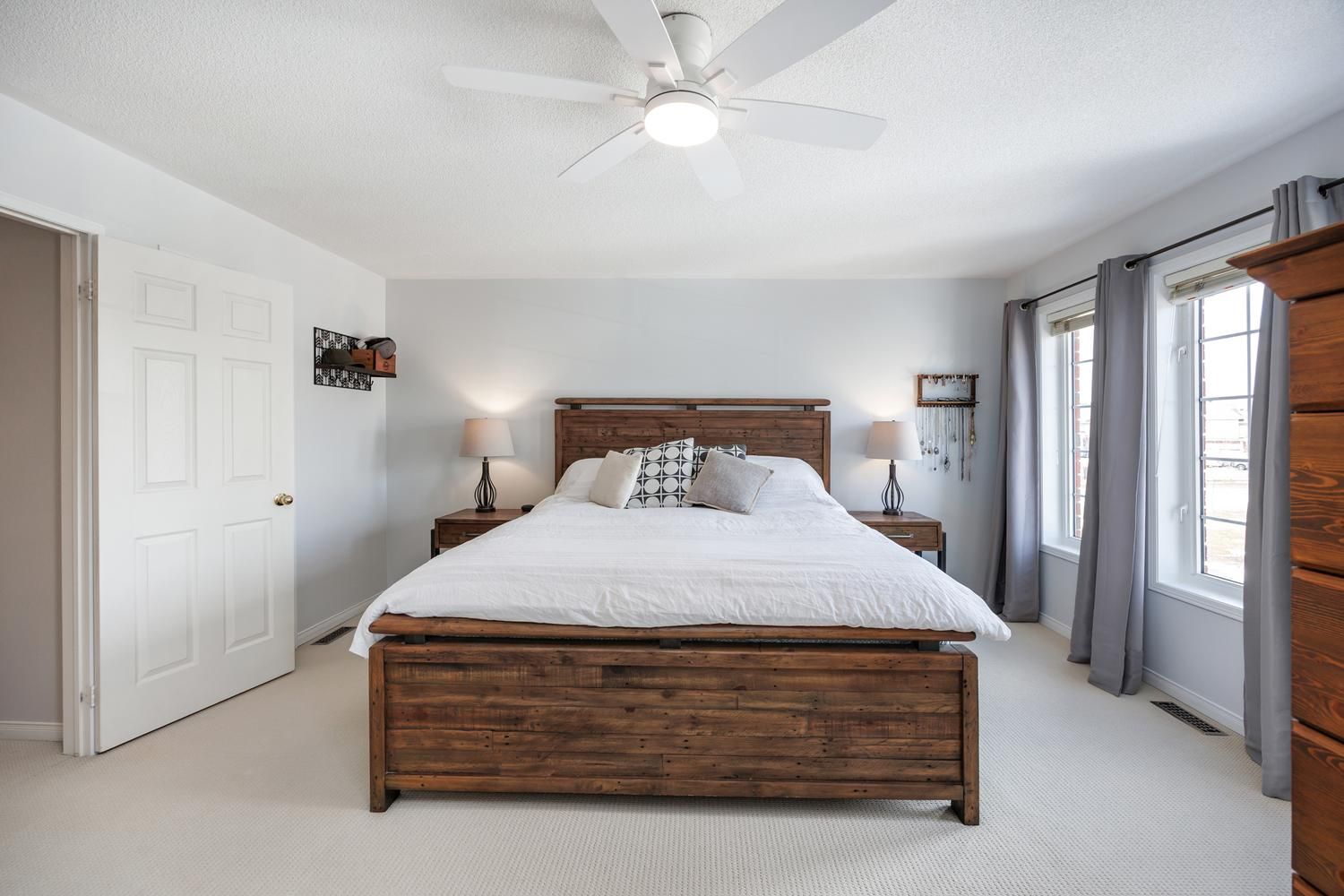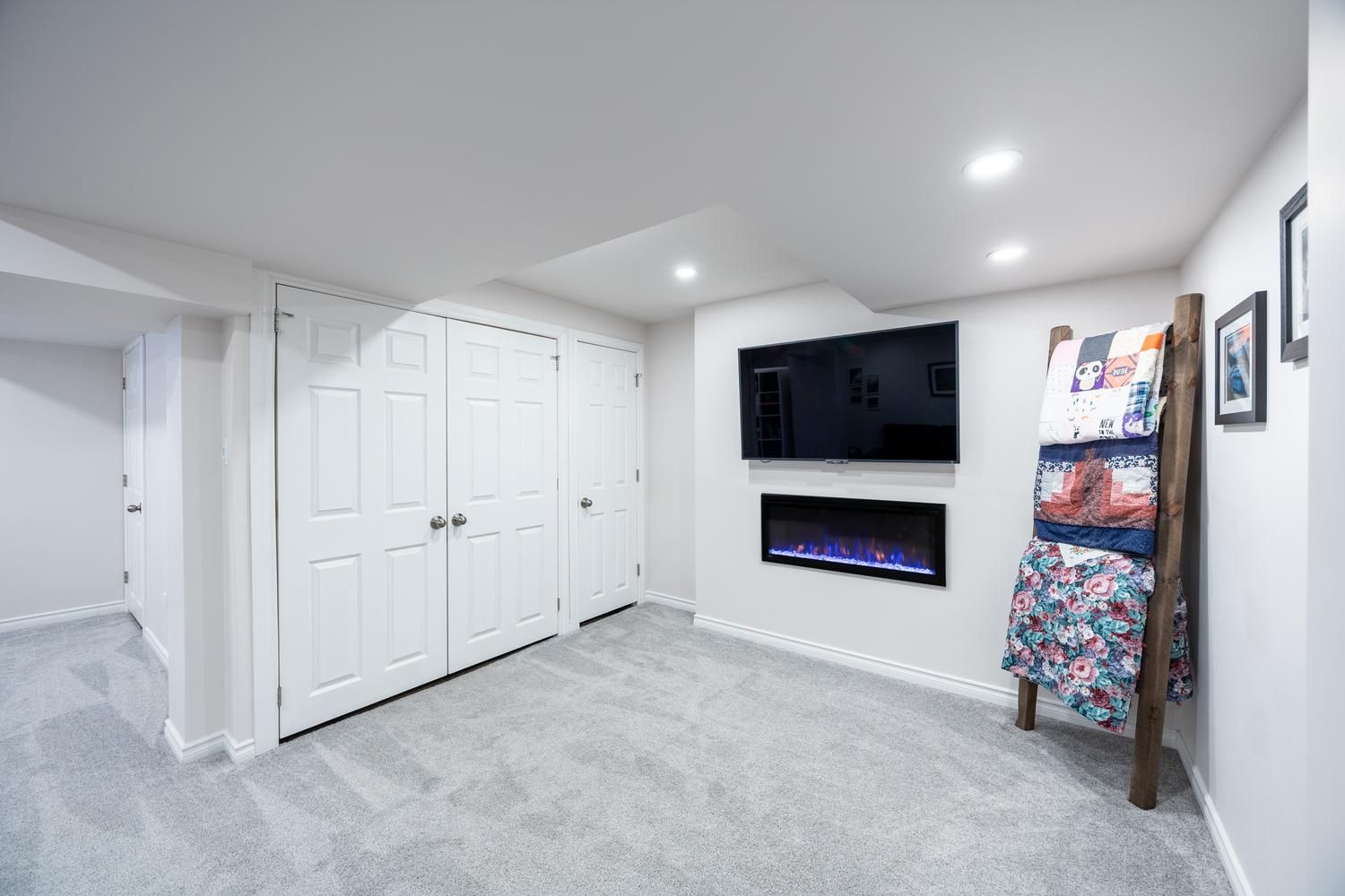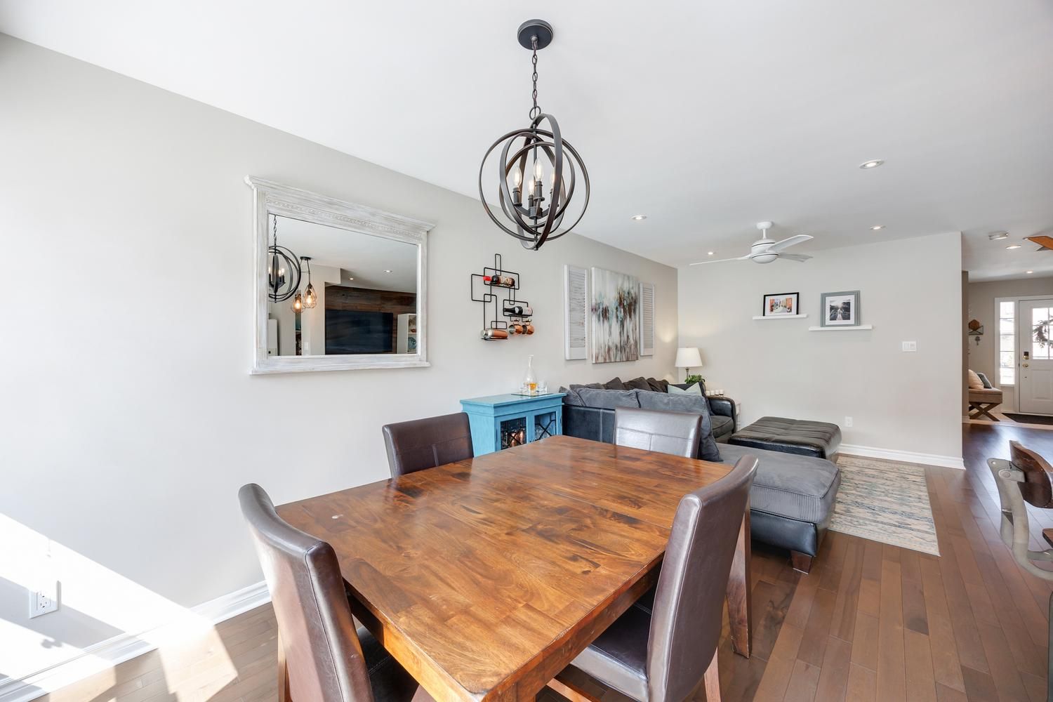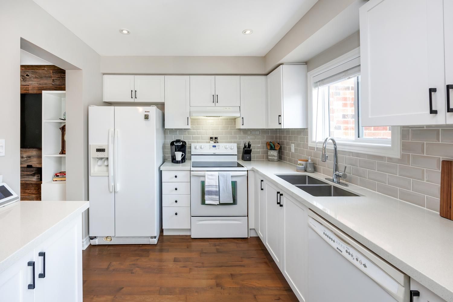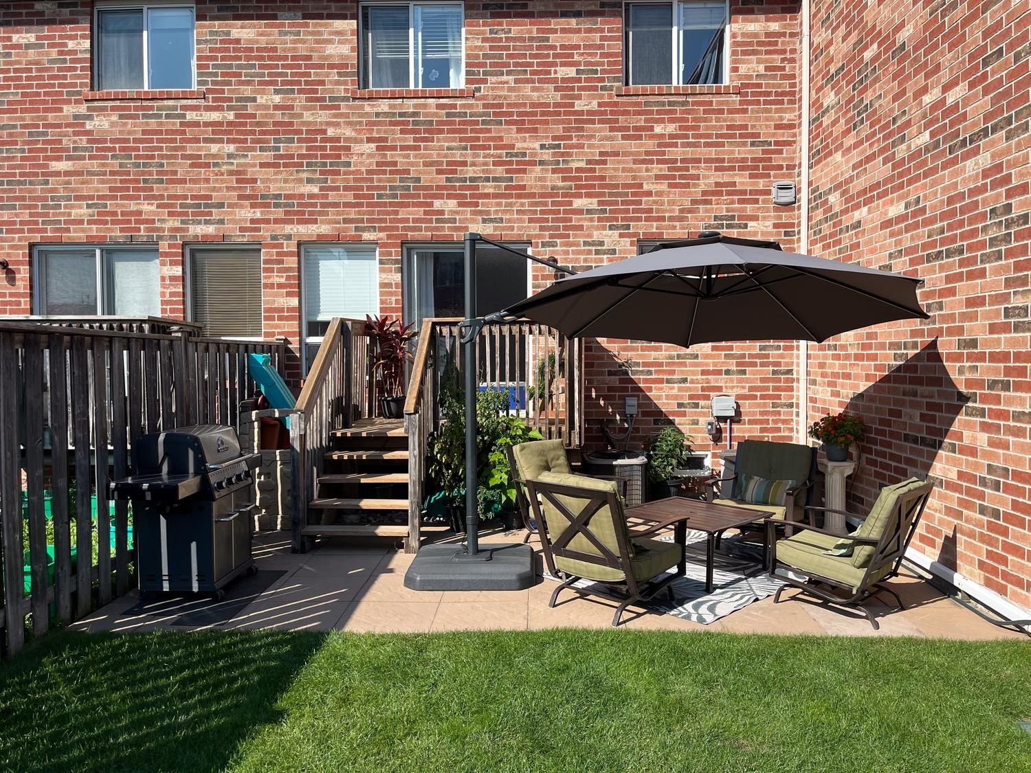 Come and check out this beautiful townhome, with great curb appeal, in a sought-after family-friendly neighbourhood, in south-east Ajax - you won't be disappointed! Convenient to both the 401, the 407, and the GO Train, for your commuting needs. This home exudes pride of ownership at every turn, as it has been tastefully upgraded and lovingly maintained by the current owners. Features include maple hardwood floors throughout the main level, a stylish barnboard feature wall in the living room, pot lights, new white kitchen with shaker style cabinets and classic black hardware, quartz counters, and a convenient sit-up island. Upgraded lighting fixtures throughout. The bright and spacious primary bedroom features a 4 piece ensuite bathroom, roomy his and her closets, 3 oversize windows, and an electric fireplace. Both of the other bedrooms are a generous size, one having a walk-in closet. The sliding glass door walk-out from the dining room opens up to a newer deck and a spacious paver stone patio for those great summer get togethers. Enjoy the additional living space that the professionally finished basement space provides for your family's needs, including pot lights, newer, durable carpet and a cozy electric fireplace! Your nicely fenced backyard will be the envy of the neighbourhood, with its lush green grass, and perennial gardens, thanks to the inground irrigation system. Convenient garden shed for your outdoor storage needs. Walking distance to several schools. Convenient access to most amenities, shopping, restaurants and parks.