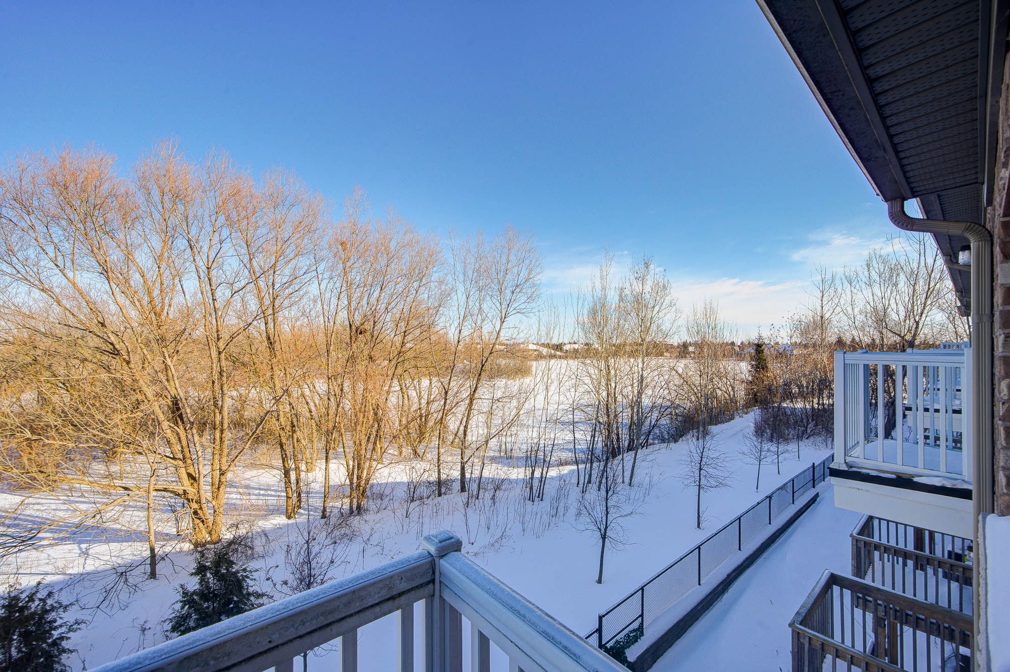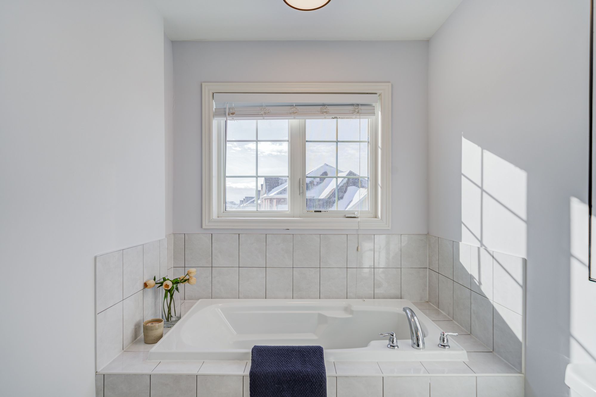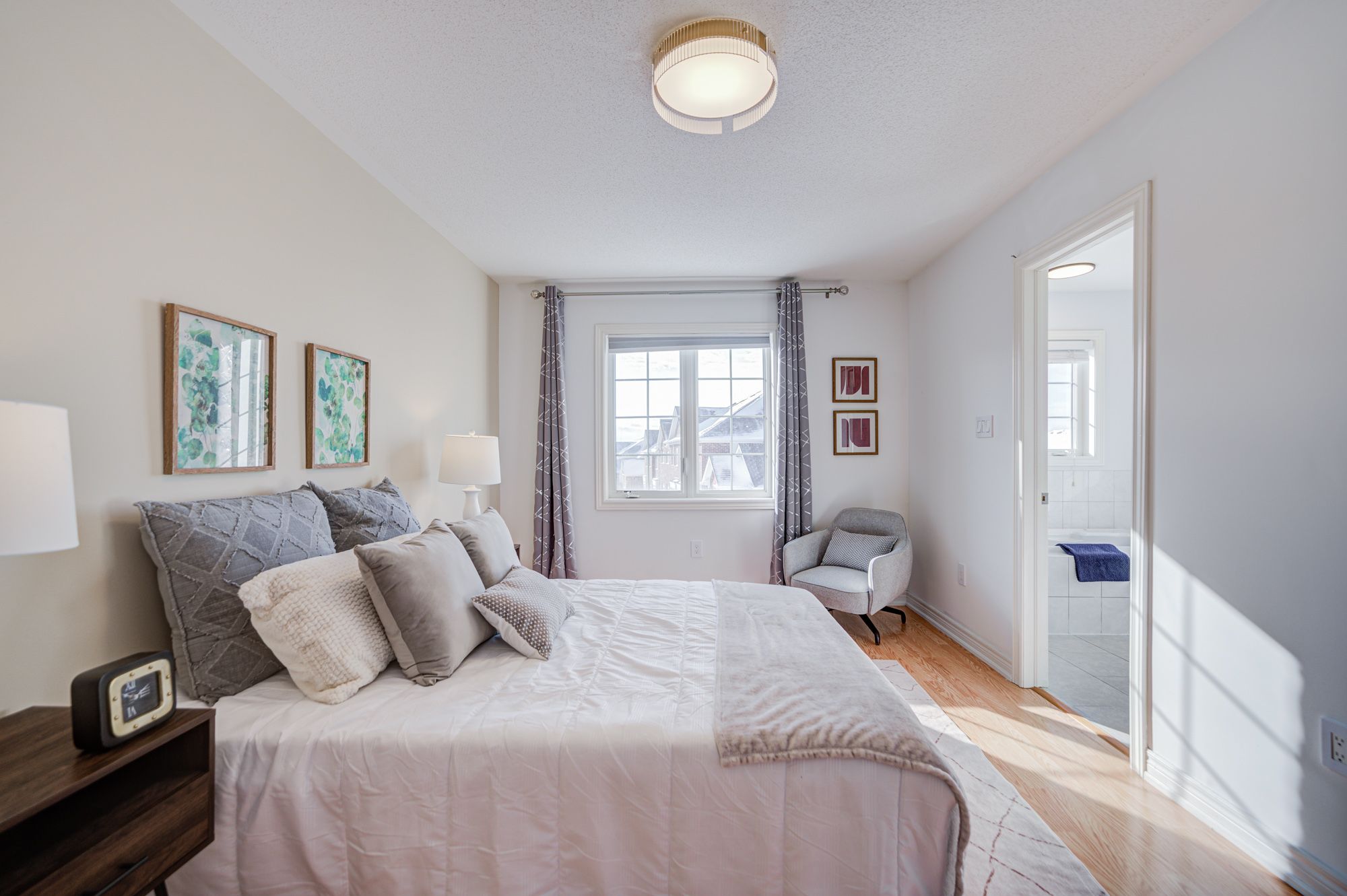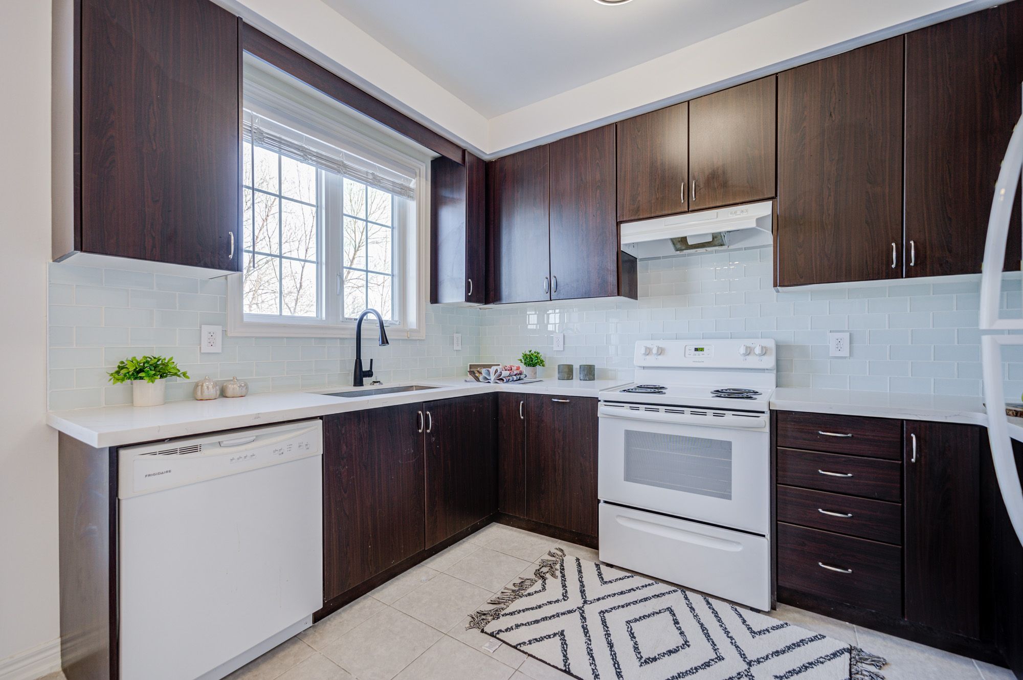 Welcome to 42 Roy Grove Way, a beautifully maintained ~1,900 sq. ft. townhouse located in the highly sought-after Greensborough community. This bright and spacious home features 9' ceilings on the main floor and overlooks a serene, treed backyard, offering both comfort and privacy.The modern eat-in kitchen has been tastefully updated with new quartz countertops, stylish backsplash, new faucets, and contemporary light fixtures. Enjoy the convenience of main-floor laundry, direct access to the garage, and new designer lighting throughout.Ideally situated in an excellent location, within the boundary of top-ranking Bur Oak Secondary School. Just steps to Swan Lake, and minutes to Mount Joy GO Station, public transit, Mount Joy Community Centre, supermarkets, parks, restaurants, Markham Stouffville Hospital, Markham Museum, and Markville Mall. Very low maintenance fee of $170.48/month.
