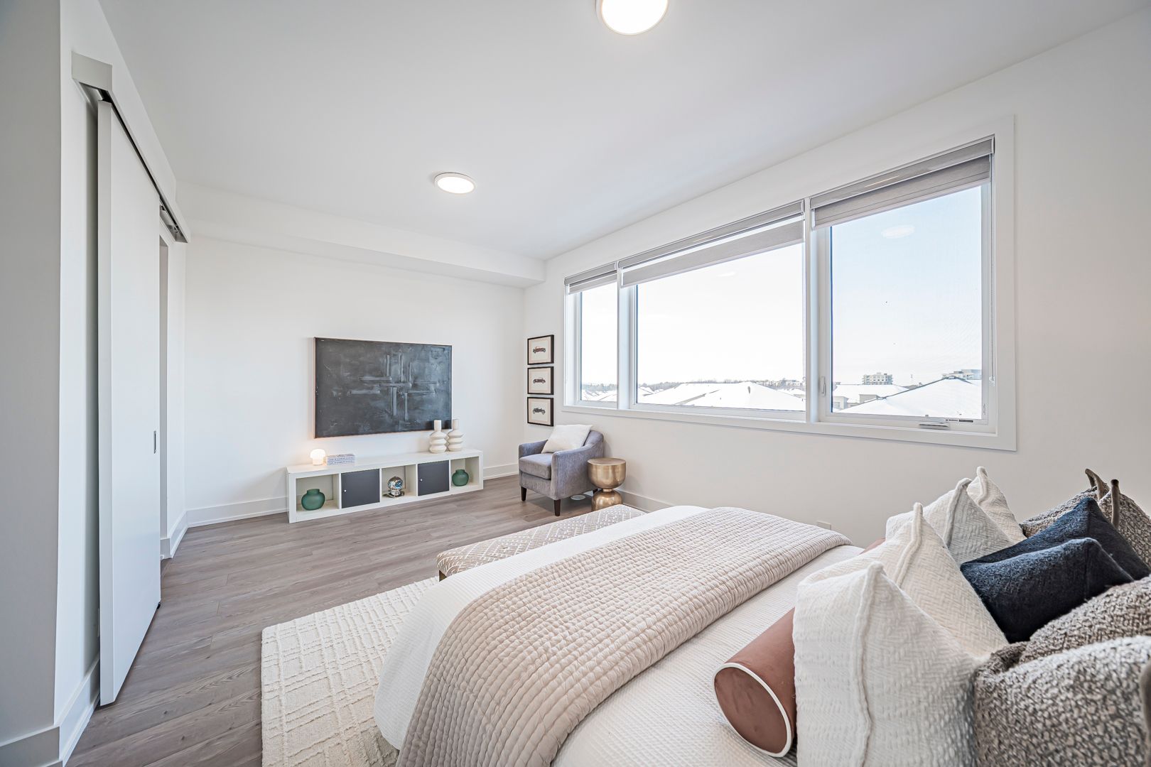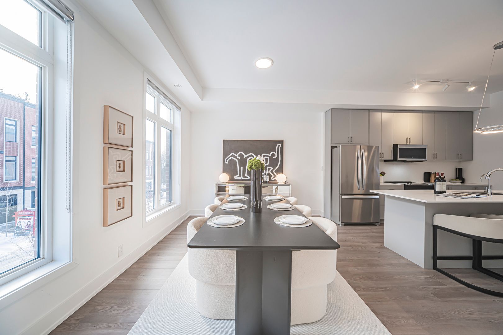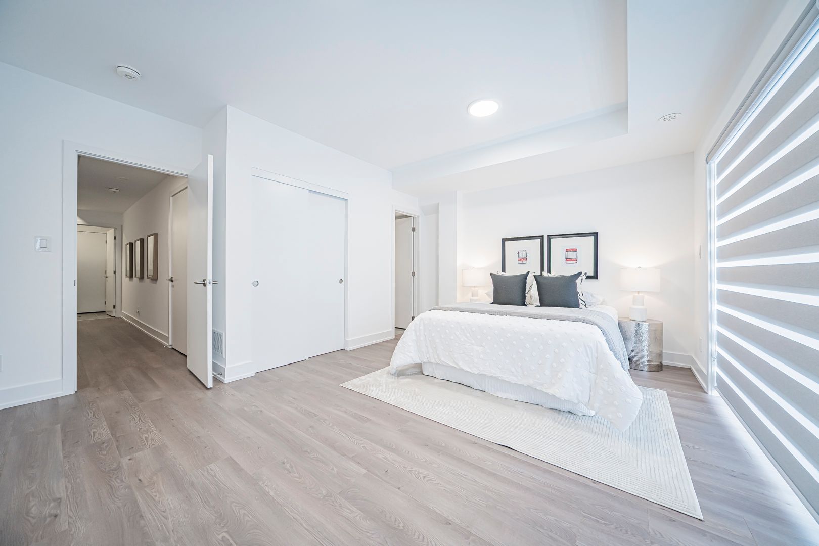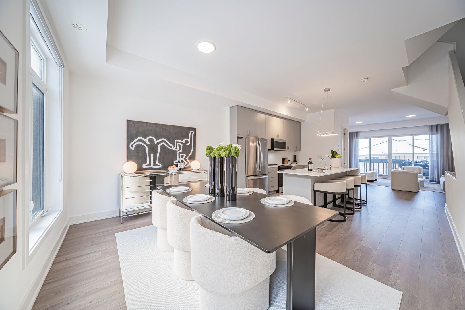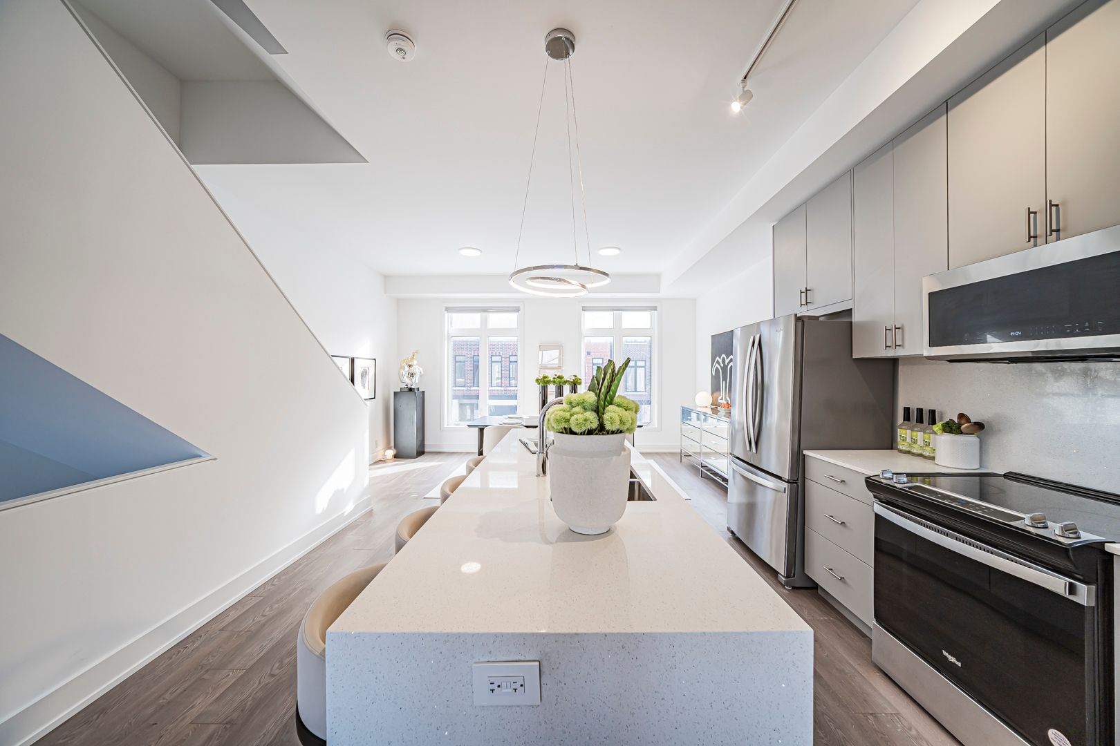 Bright & spacious upgraded t/h offering approx. 2,251+587 sq.ft. of living space, featuring 4 bdrms & 5 w/r. Well-designed layout w/ excellent natural light throughout & generous proportions on all levels. Impressive ceiling heights incl. 10 ft ceilings on 2nd flr, 9 ft on 3rd flr, & approx. 8.6 ft ceilings in fin. W/O bsmt, creating an open & airy feel. Features eng. hdwd flr t/o, private rooftop terrace (627 sq.ft.), & main flr balcony. Rooftop terrace w/ upgraded outdoor faucet for easy maintenance. Approx. $25,000 spent on builder upgrades, plus numerous post-builder improvements. Upgraded kit. w/ waterfall island c/top, ext. backsplash, under-cab. lighting, S/S appl. pkg., built-in garbage & recycle cabinet system, & water filtration system. All appl. incl. All bdrms w/ custom closet organizer systems, incl. upgraded drawers in ground flr closet & prim. W/I closet. Baths & pdr rm upgraded w/ accessories, LED mirrors (exc. bsmt bath), & enhanced shower systems feat. handheld + waterfall shower heads on upper flrs. Add'l highlights incl. fin. W/O bsmt w/ full bath, EV charger (builder-installed), water softener, water purification system, humidifier, zebra blinds t/o, new washer & dryer, new microwave w/ exhaust fan, & 7-yr Tarion new home warranty. A luxurious, comfortable & move-in ready home, thoughtfully designed for family living.