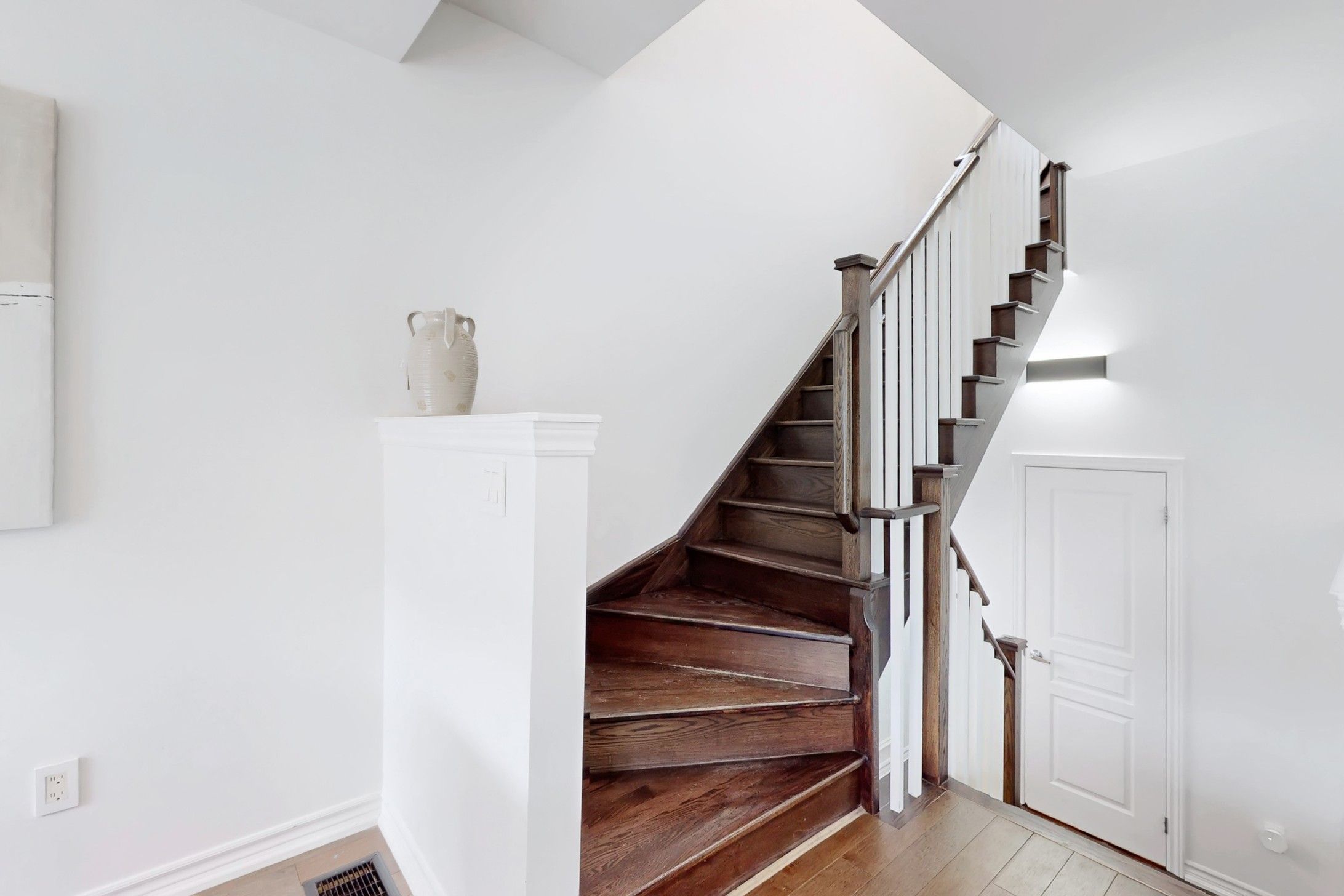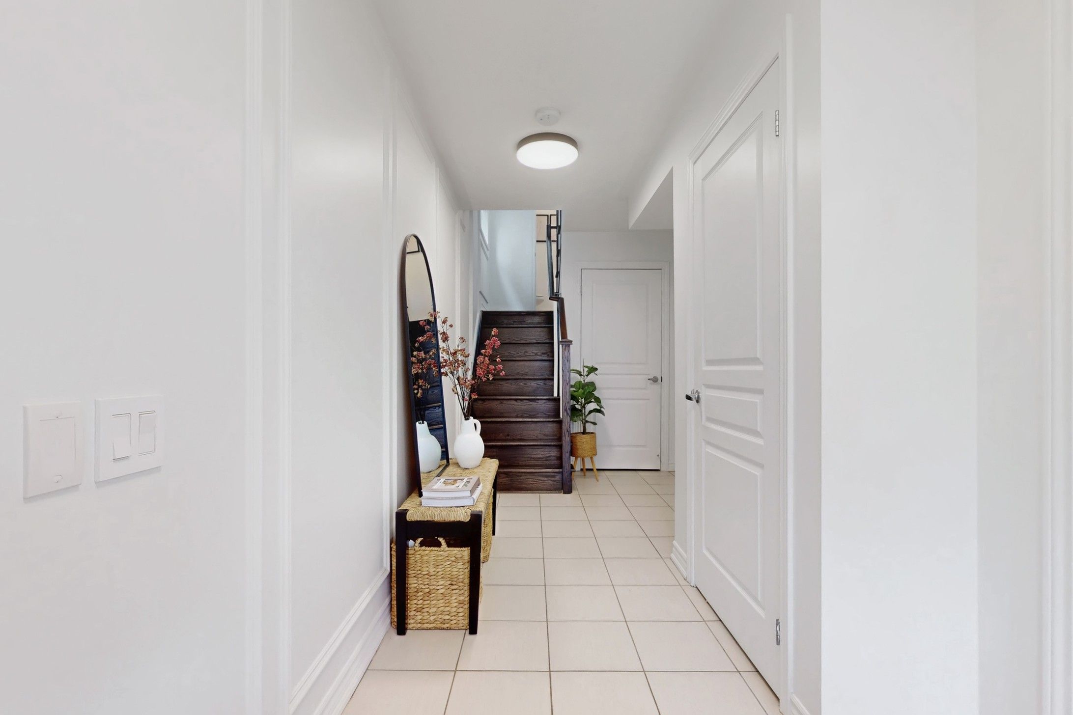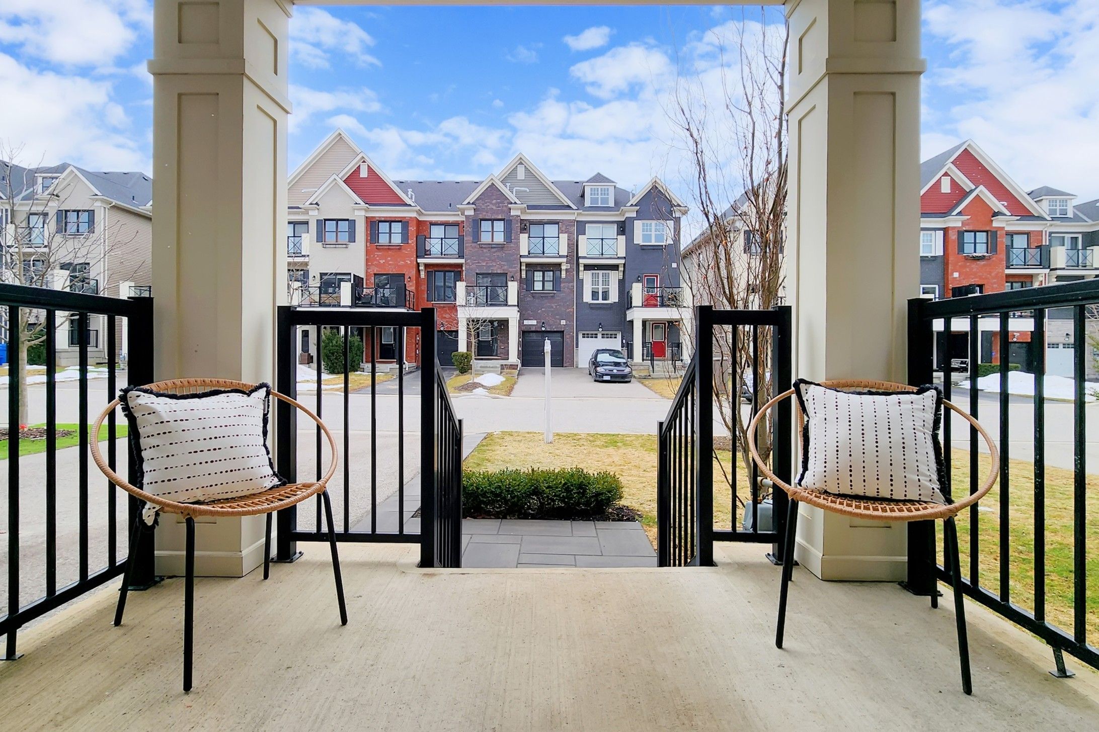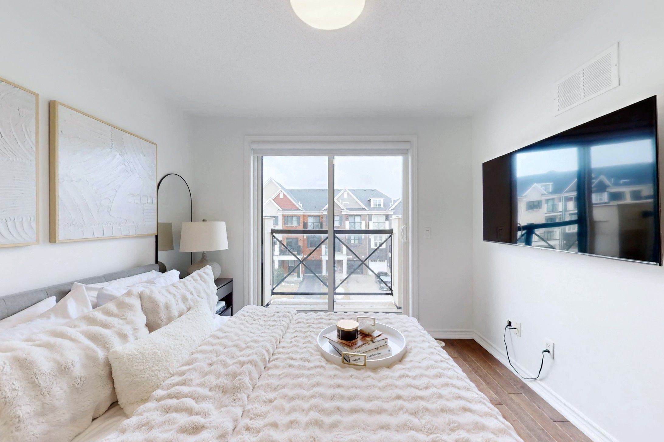 Welcome to 19 Wimshaw Lane. This beautifully upgraded 2-bedroom, 2-bathroom Minto freehold townhouse offers approximately 1,292 sq.ft. of thoughtfully designed, move-in-ready livingspace in the heart of Stouffville. The home features extensive upgrades throughout, beginning in the stunning kitchen. Enjoy a newly updated fluted range hood & matching island detail,quartz countertops w/ a seamless matching backsplash, upgraded S/S appliances including a sleekslide-in stove, added cabinetry w/ B/I microwave, upgraded tile flooring & stylish pendant lighting.The inviting living room is the perfect place to unwind, showcasing a flushwall-mounted electric fireplace ('25)& __"flush TV insert('25) surrounded by elegant built-inshelving for added storage. The dining area comfortably accommodates a six-person table, alongwith additional seating at the kitchen island-ideal for entertaining family andfriends.Upgraded hardwood flooring flows throughout the second and third floors, as well as thestaircase. Both upper-level bathrooms feature upgraded cabinetry, quartz countertops, modern mirrors, lighting, & upgraded fixtures. The primary bedroom offers dual custom closetsw/built-in shelving & a charming Juliette balcony that fills the room w/natural light. The 2nd bedroom features a large window & custom closet organizers. Elegant wainscoting accents thefoyer & second bedroom, adding timeless character. Additional highlights include a newly installed A/C unit ('24) relocated to the side of the home (freeing up valuable balconyspace).Ample storage is available in the crawl space and garage, which also features built-instorage solutions. The exterior boasts beautiful curb appeal w/modern interlock landscaping (2025) & parking for 2 vehicles in the driveway. Located close to the GO Station,shops, restaurants, parks,& more-this exceptional home truly has it all.Don't miss your opportunity to own this stylish, turnkey property w/all the extra touches you've been looking for.