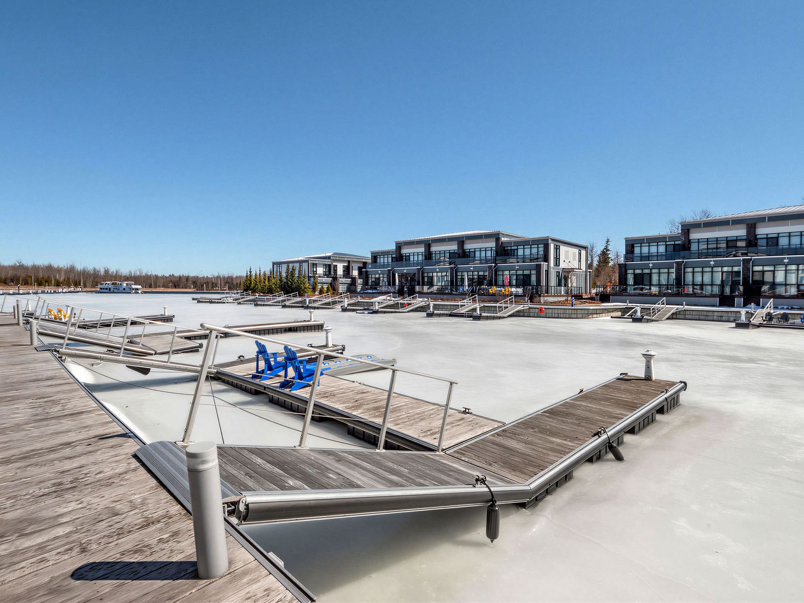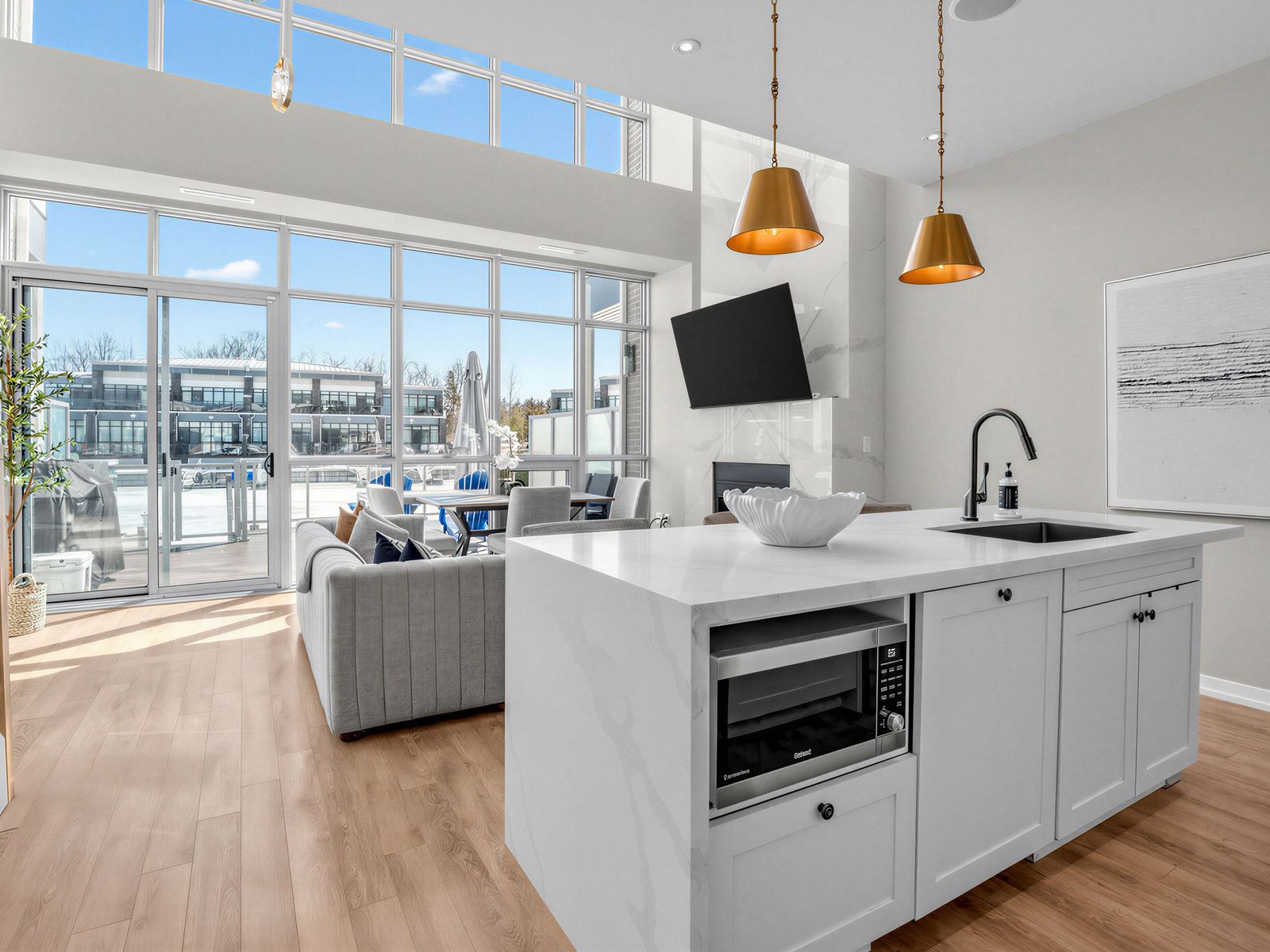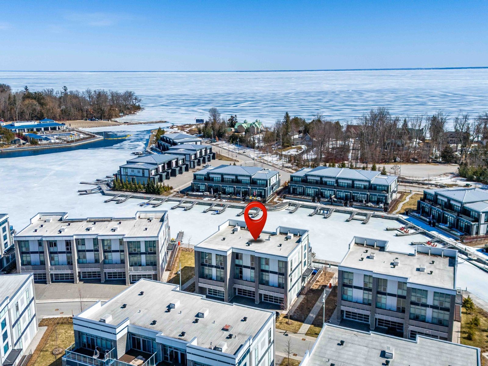 *** Best Southern Exposure near the opening to Lake Simcoe!*** This gated island home offers luxury waterfront living with premium upgrades throughout and an abundance of natural light. The dramatic open-to-above main floor features a striking floor-to-ceiling fireplace wall in the open-concept living, dining, and kitchen area. The custom upgraded kitchen is designed to impress with designer lighting, a waterfall island, enhanced cabinetry, built-in speaker system, and pot lights, all flowing seamlessly to a south-facing terrace. The second floor is thoughtfully designed with upgraded lighting throughout, a spacious family room, and a convenient wet bar complete with wine fridge and sink. The primary bedroom includes a walk-in closet, large window, and a spa-inspired 5-piece ensuite. On the third floor, you'll find another south-facing terrace and two additional bedrooms, including a second bedroom The third bedroom offers a generous closet, making the space ideal for family or guests. Additional highlights include built-in storage, sleek glass railings, and a serene resort-style exterior with your own private boat slip. Located in a premium island setting with access to a pool, this home combines elegance, comfort, and exceptional waterfront lifestyle. **Lifestyle Investment: Monthly Maintenance Fee: $503.96 | Lake Club Fee: $307.46/month + HST | Annual Resort Fee: $4,461.48/year | Buyer to pay 2% + HST to Friday Harbour Resort Association.