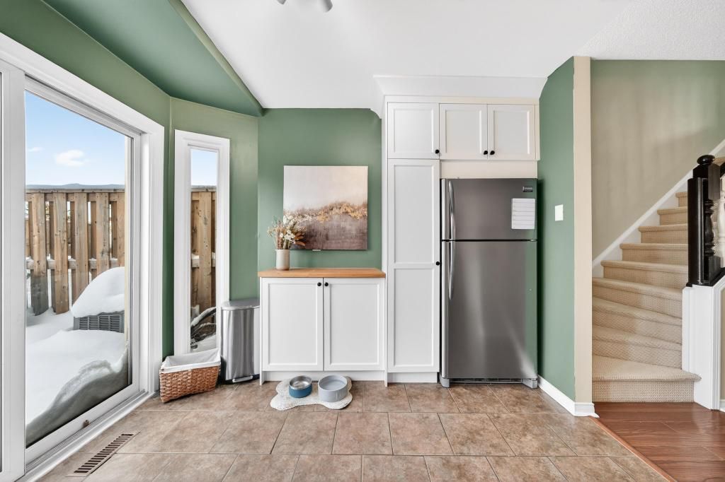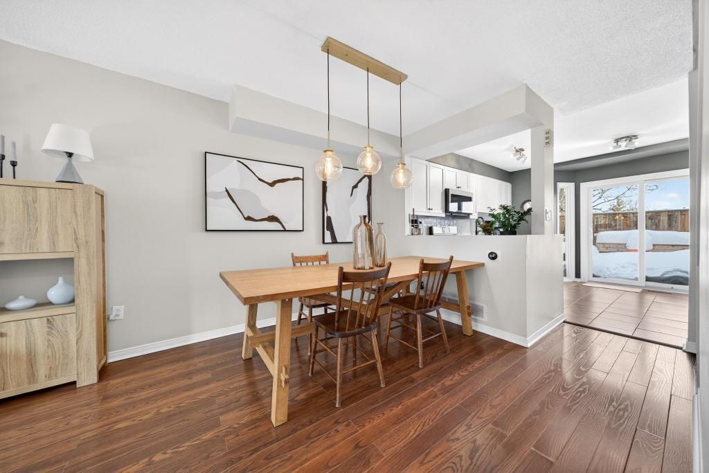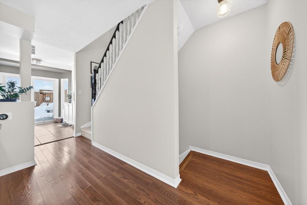 Welcome to The Brownstone's, this bright and well-maintained three-storey townhouse is found in a sought-after downtown location, featuring 2 bedrooms and 1.5 baths. The updated kitchen offers a light, functional space and is perfect for everyday living. With a spacious dining area adjoining the living room this is an ideal area for family living, entertaining or relaxing. The ground level includes an office, closet cubby, two-piece bath and inside entry garage. On the 3rd level you will find 2 spacious bedrooms, renovated main bath and lots of natural light. Enjoy a private backyard backing onto a peaceful diversion canal - a beautiful retreat right at home. Close to shops, restaurants, schools, Spencer Smith Park, Lake, Mapleview Mall and all downtown amenities, this home offers the perfect blend of convenience and tranquility.