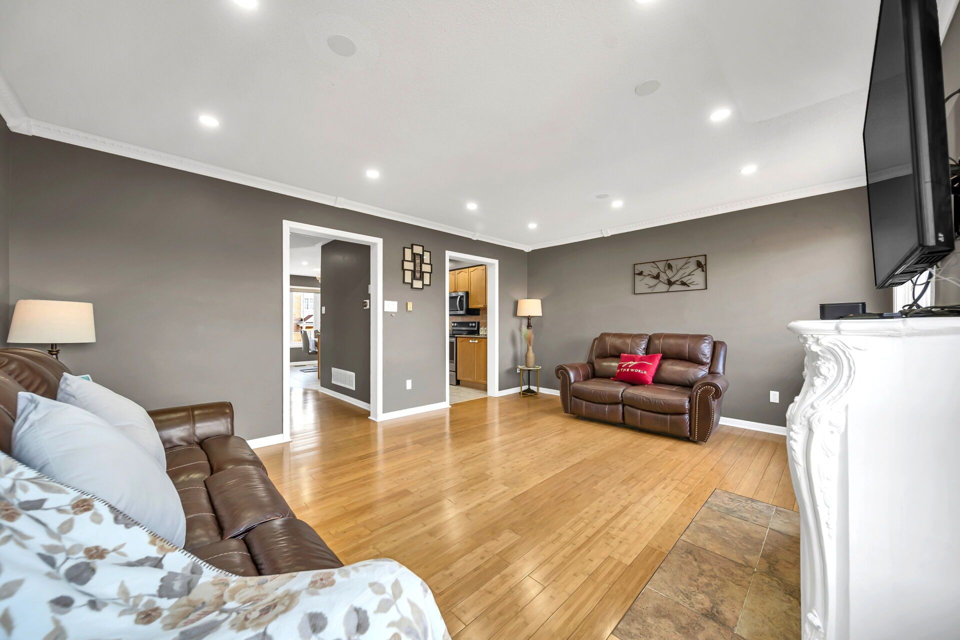 Welcome to this stunning 3-storey freehold townhome nestled in one of Brampton's most desirable and family-oriented communities. This beautifully designed residence offers the perfect blend of modern comfort, functionality, and style-ideal for first-time buyers or growing families. Featuring 3 spacious bedrooms and 3 bathrooms, this home boasts a bright and open-concept layout with large windows that fill the space with natural light. The second level showcases a modern kitchen with stainless steel appliances, ample cabinetry, and a generous dining area-perfect for entertaining or everyday living. The main level offers a versatile space that can be used as a family room, home office,or guest suite with convenient access to the backyard. The upper level features a primary bedroom retreat with Ensuite bath and walk-in closet, along with two additional well-sized bedrooms. Enjoy added convenience with an attached garage, located close to parks, shopping and transit, this home offers both comfort and connectivity. A fantastic opportunity to own a stylish and move-in ready home in a thriving community-don't miss out! Thousands spent on upgrades: Stainless Steel Refrigerator (2023), B/I Stainless Steel Dishwasher (2023), Stainless Steel Washer and Dryer (2022), Tankless Water Heater (Owned), Flooring Upgraded, Closet Organisers, Zebra Blinds, Pot Light throughout the house, EV Charger.