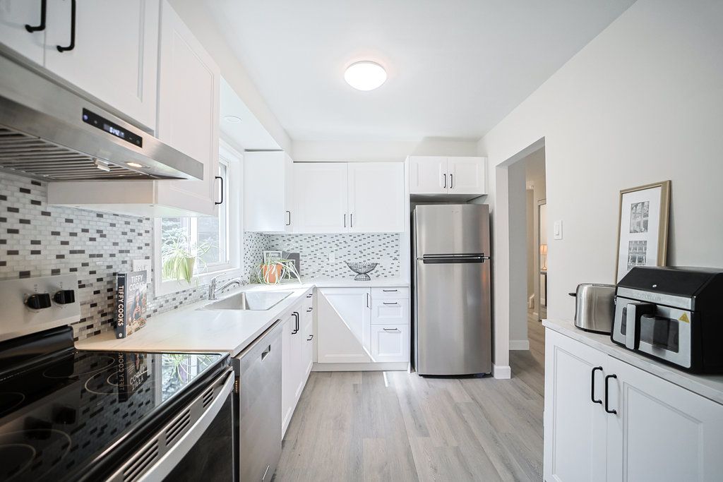 Welcome to this beautifully renovated, quiet end-unit townhouse in a highly sought-after community. Offering easy access to the QEW and Hwy 403, and just minutes to Burlington GO Station and public transit, this home is perfect for commuters and families alike. Thousands have been spent on brand-new, modern upgrades throughout. Enjoy new light fixtures and durable vinyl flooring on both the ground and second floors. The stylish new kitchen features white cabinetry, sleek countertops, ceramic backsplash, and brand-new stainless steel appliances, including fridge, stove, and exhaust fan with direct exterior venting. The home boasts a brand-new spa-inspired 4-piece bathroom with a luxury vanity and deep soaking tub, along with a new 2-piece powder room. Freshly neutral painted throughout, with direct access to the garage for added convenience. Cozy up by the updated wood-burning fireplace, and take advantage of the open-concept basement offering great future potential, complete with freshly painted floors, ideal for customization. Don't miss this fabulous opportunity to own a turnkey townhouse in an established, desirable neighborhood.
