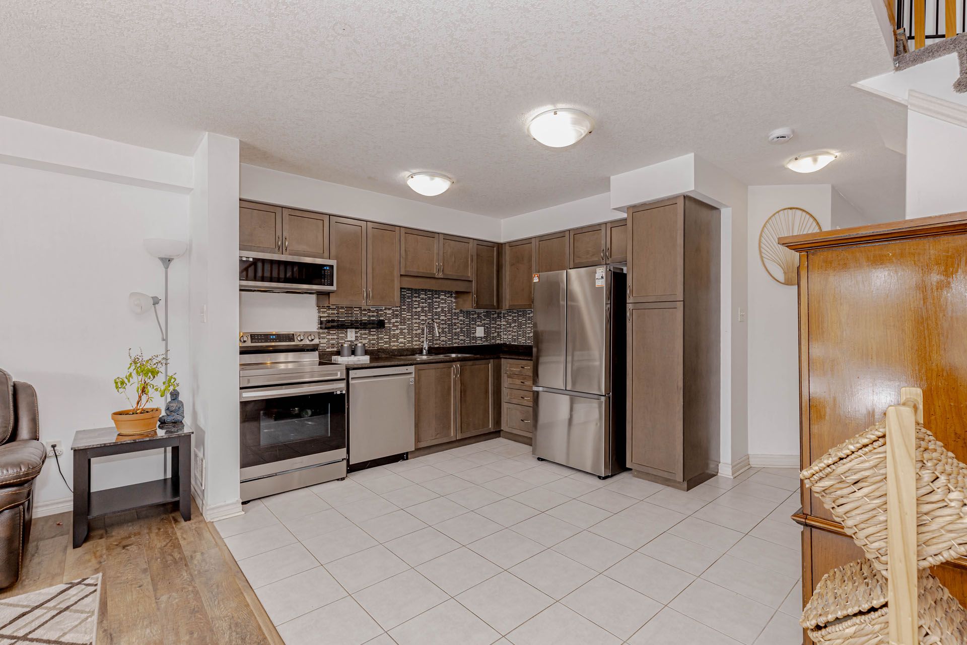 Welcome to a bright and well-maintained three-bedroom townhome in a convenient and family-friendly neighborhood >>The home backs onto a large green space, offering added privacy and a peaceful setting >>> The home features a bright, open-concept main floor with a seamless kitchen and living area >>The kitchen features stainless steel appliances with an elegant backsplash >>The main floor living area features durable laminate flooring, which continues throughout the second-floor bedrooms and hallway >>>>>The second level offers a spacious primary bedroom, two well-sized secondary bedrooms, and a four-piece full bathroom >> Direct garage access from the home and second-floor laundry adds everyday convenience >>> The fully finished basement includes an open-concept space suitable for a variety of uses, along with an additional three-piece bathroom >> Conveniently located close to parks, trails, local schools, and transit, and just minutes from all south-end amenities with quick access to Highway 401 and Highway 6 !!!!!!
