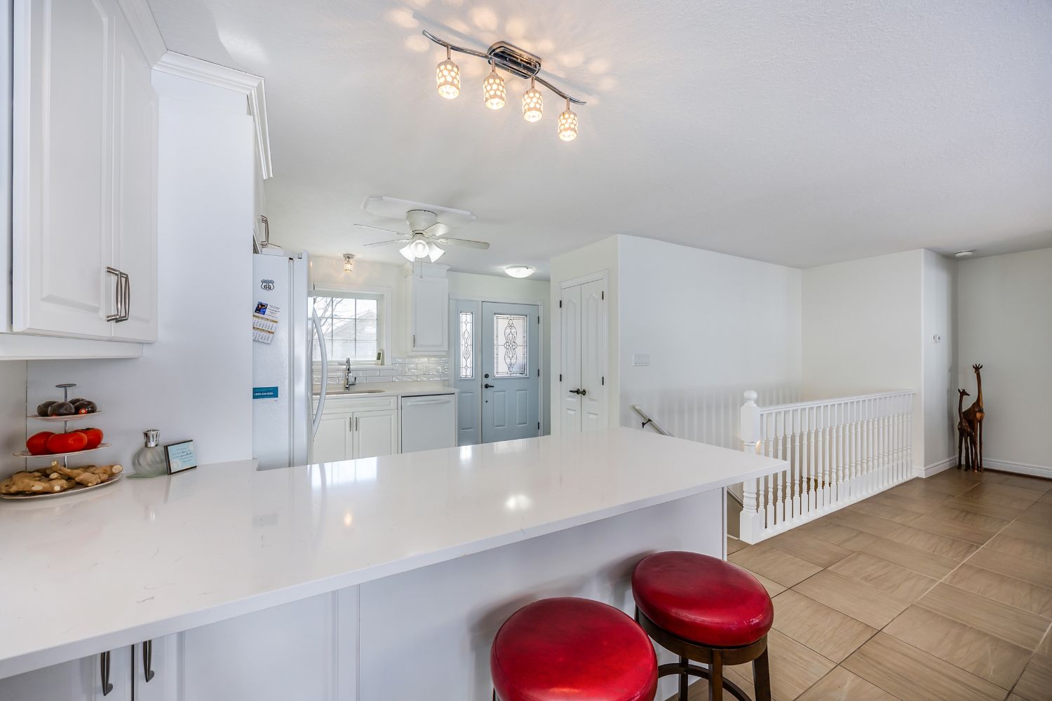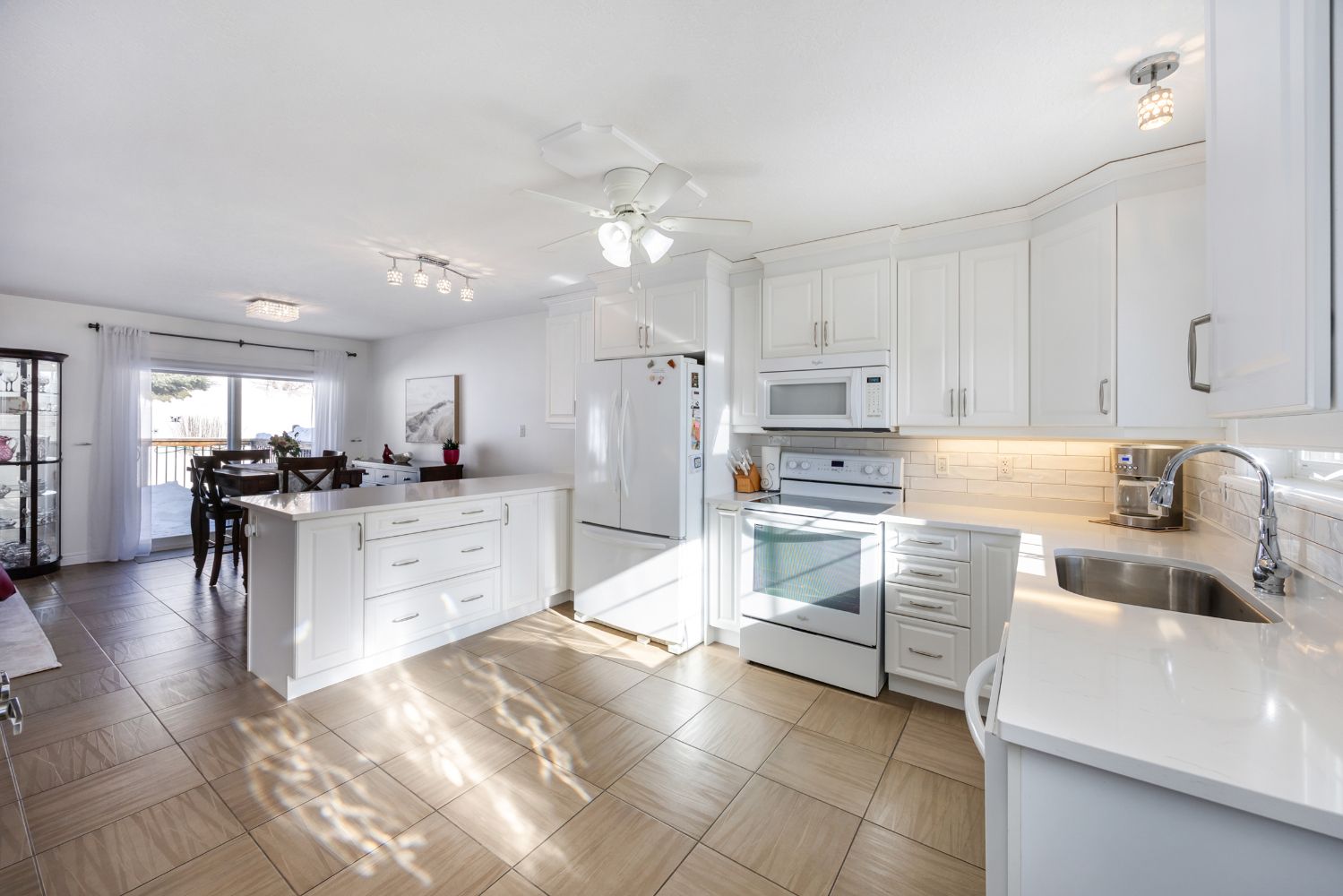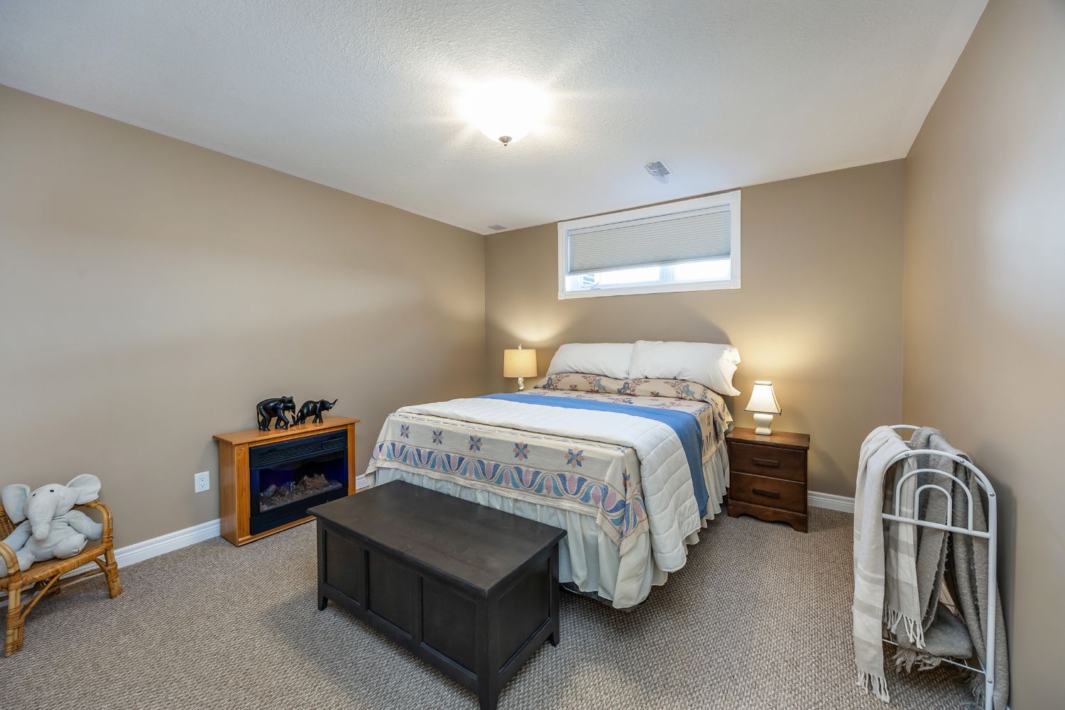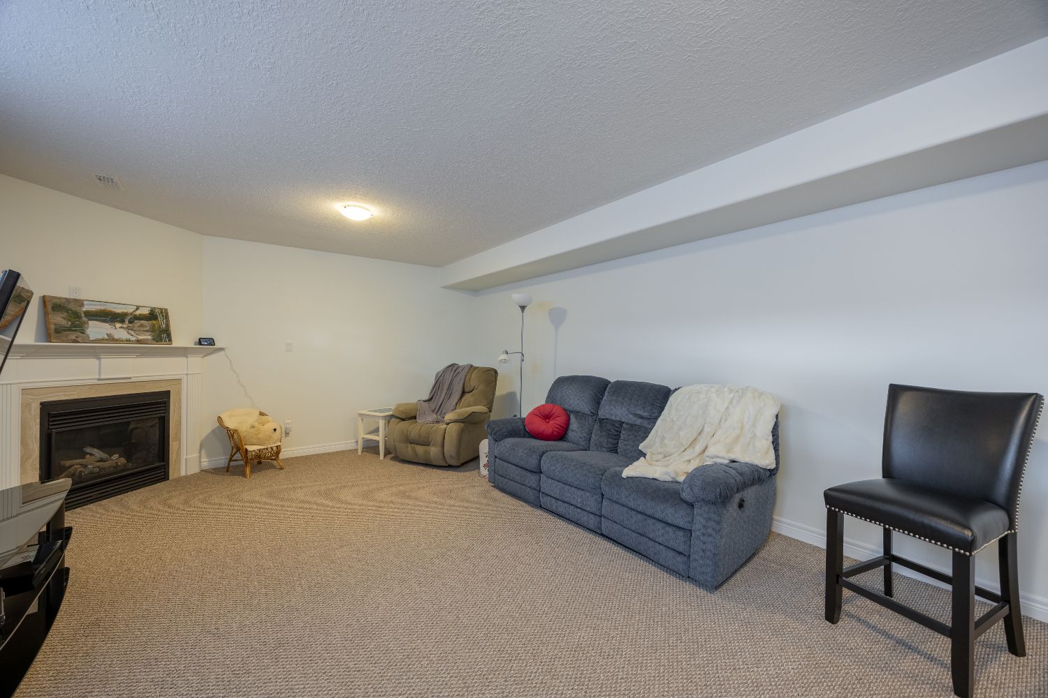 ALL BRICK, ENERGY EFFICIENT home in the sought after Ferghana condominium complex, where the grass and snow are looked after for you! Live in a PARK LIKE SETTING with mature trees and beautiful perennial flower gardens in a great community! This prime north-end location offers the perfect blend of elegance and convenience. Direct entry to your home from a 2 CAR GARAGE, with a powder room close by. Step inside to a BRIGHT AND AIRY, open-concept living, kitchen and dining area, with maintenance free HIGH END VINYL TILE FLOORING. Featuring a STUNNING, MODERN KITCHEN with white cupboards, GORGEOUS QUARTZ COUNTER and tons of peninsula counter space with bar stools and a cupboard designed for easy access to the dining area. This kitchen is a CHEF'S DELIGHT with a spice rack drawer and a baking sheet cupboard, huge STAINLESS SINK with sparkling tile backsplash, and an outlet in the peninsula for ease of access. Patio doors bring in lots of light and open to an EXTENDED DECK area where you can retreat with coffee in hand for peace and quiet, enjoying the sounds of nature. The main floor primary bedroom suite is spacious with lots of closet space, and a well designed ENSUITE BATHROOM, and MAIN FLOOR LAUNDRY with full size washer & dryer. A wide staircase leads to the FULLY FINISHED BASEMENT which boasts high ceilings. There is an additional bedroom with a large closet, and a 4 piece washroom to provide your guests with a private getaway, and a large family room and GAS FIREPLACE to keep you warm, even if the power goes out. A large office/storage area provides your home with function and style that is easy to maintain, so that you can enjoy life and relax in style. LOW UTILITY COSTS, where the neighbouring units provide insulation and efficiency. Fresh wall PAINT IN 2026, all you need to do is move in!
