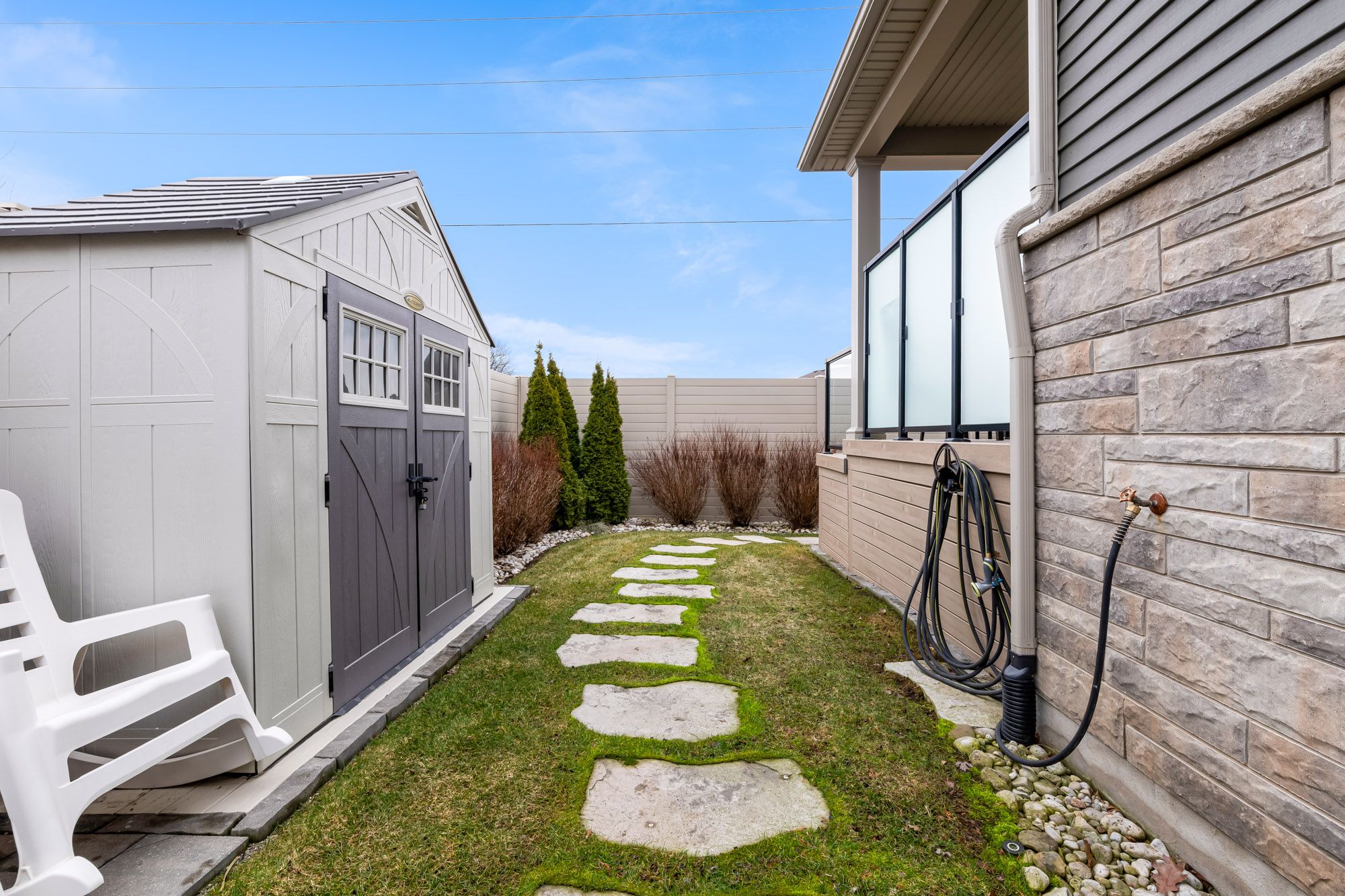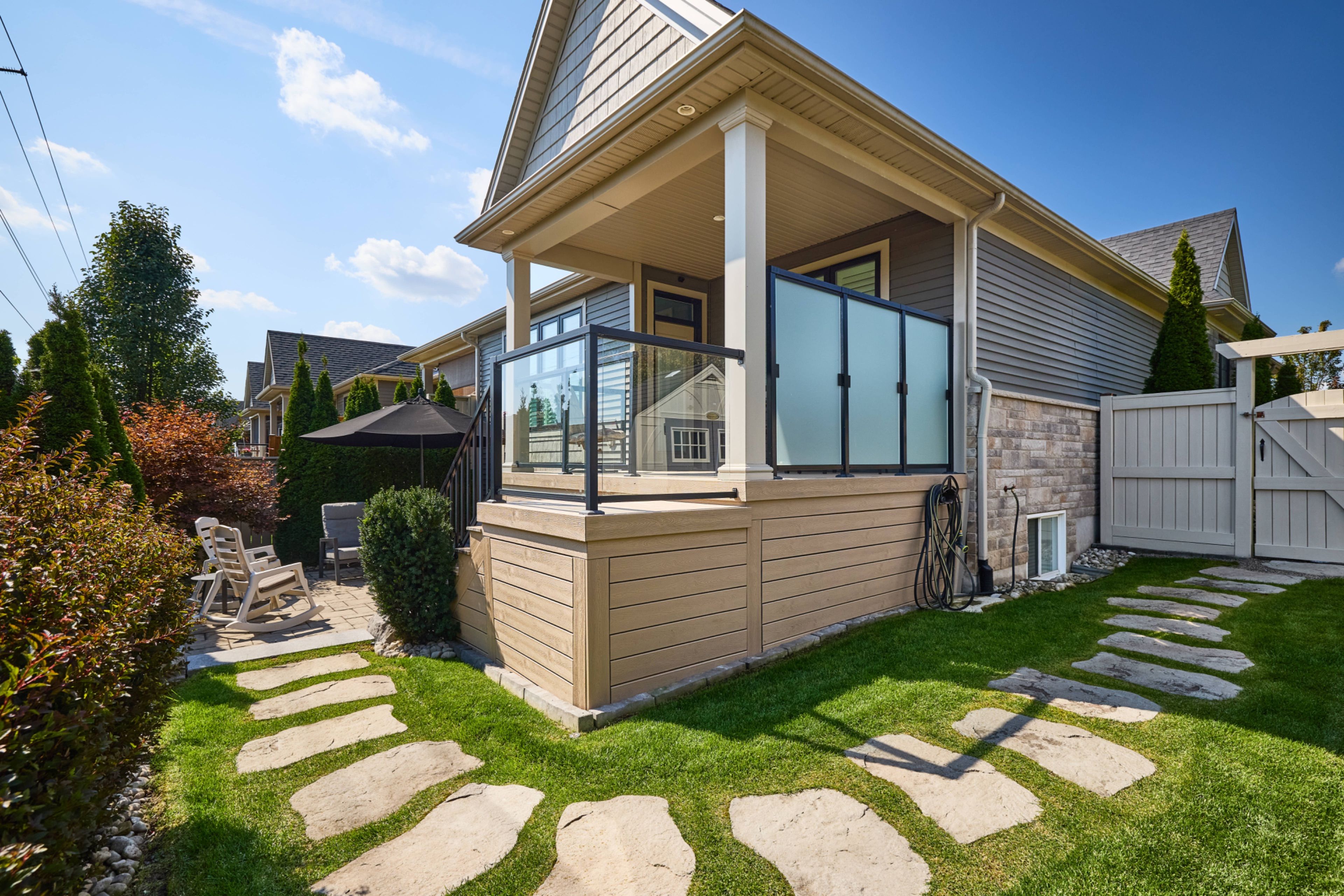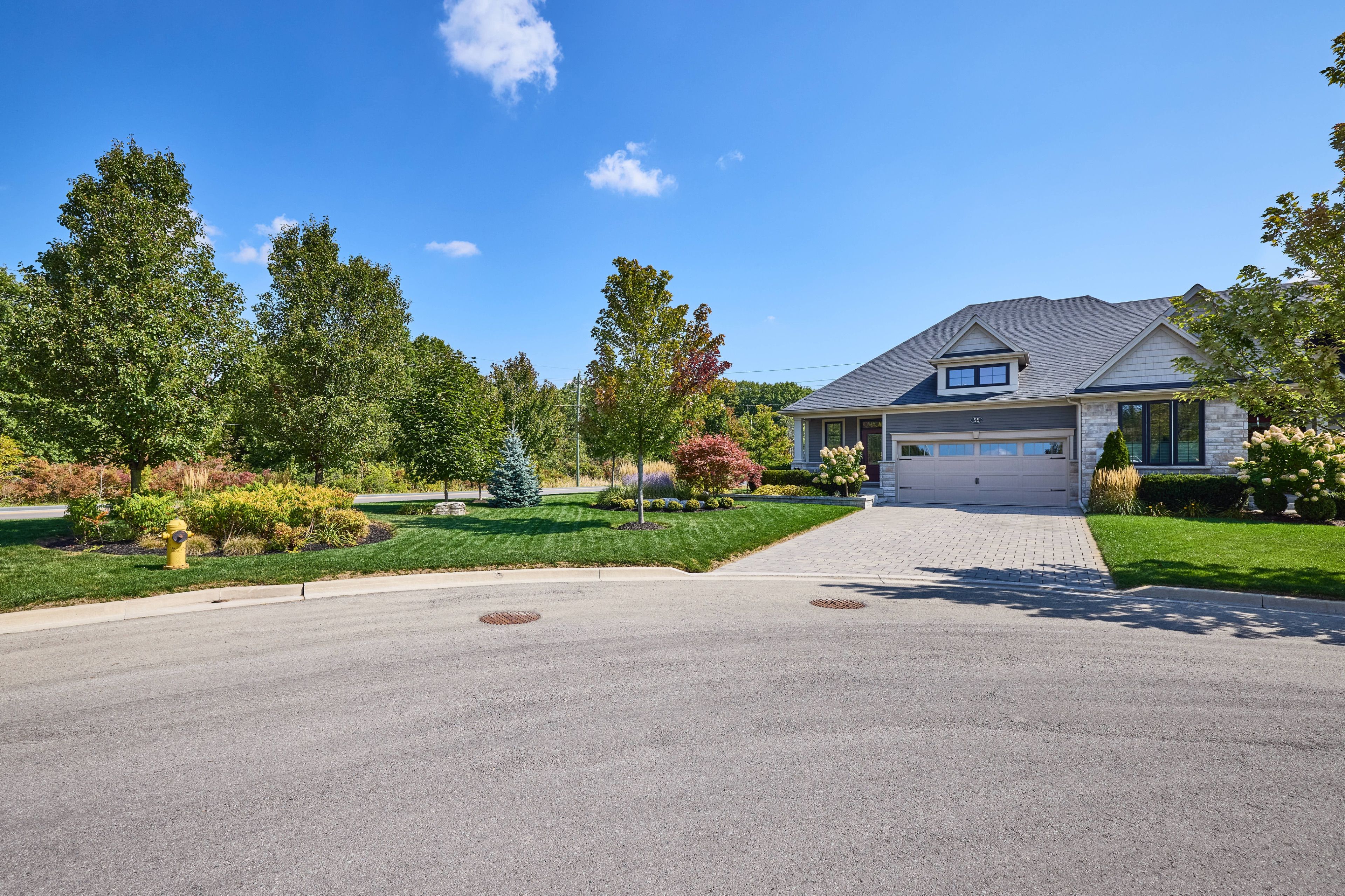 Welcome to 55 Andrew Lane - No immediate rear neighbours! The freehold bungalow townhouse you have been waiting for has arrived! Built by the incredible team at Rinaldi Homes, this 2+2 bedroom townhouse offers 1456 sq ft(+ 1200 finished sq ft in the basement) of pristine living space and certainly stands out from the crowd. From the moment you arrive you will be impressed by the breathtaking professional landscaping (with in ground sprinkley system) and interlocking stone driveway. Inside the home you will find gleaming hardwood and tile floors, 9' ceilings on the main floor, gorgeous lighting fixtures and perfectly placed pot lighting, 2 large bedrooms (primary bedroom complete with walk-in closet & private 4 piece ensuite), another 4 piece bathroom, main floor laundry (currently used as a walk-in closet), a stunning chef's kitchen with stainless steel appliances and a walk in pantry. Enjoy great conversation and a bbq on the home's large covered deck while the kids/grandkids play on the lush green lawn surrounded by beautiful trees in the fenced backyard. The finished basement offers a massive rec room with a large bright lookout grade window, 2 large bedrooms (one currently set up as a laundry room), a full 3 piece bathroom and a nice sized storage/utility room. Easy access to highway 406, shopping, restaurants and so much more. This home is in immaculate move in ready condition. Easily one of the most beautiful townhomes in the sought after Merritt Meadows community. Absolutely turn-key and move-in ready!
