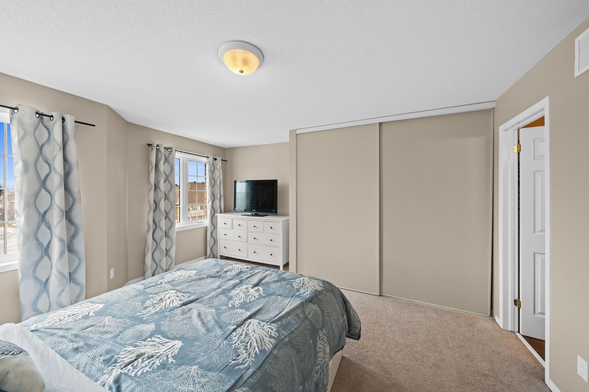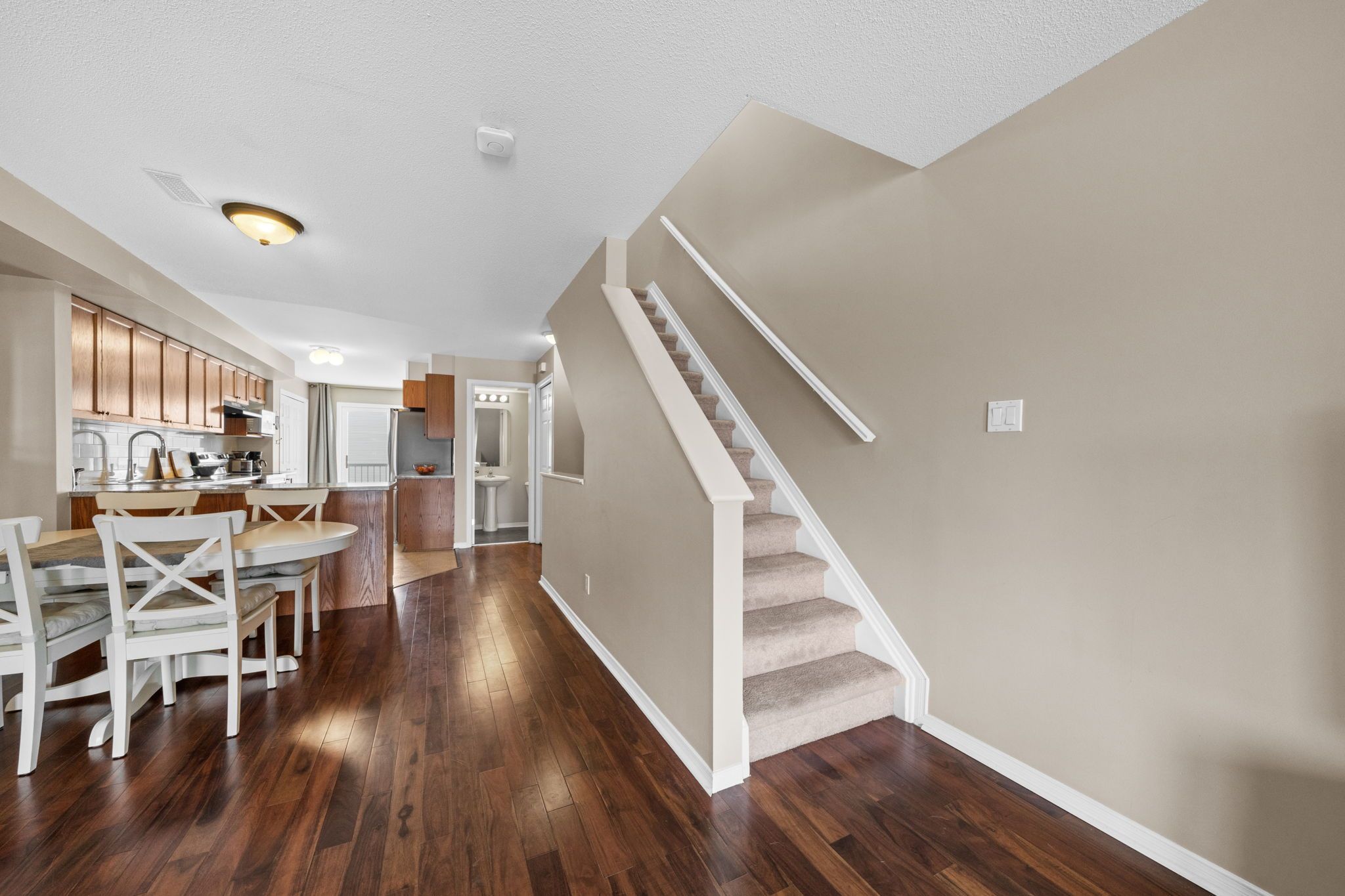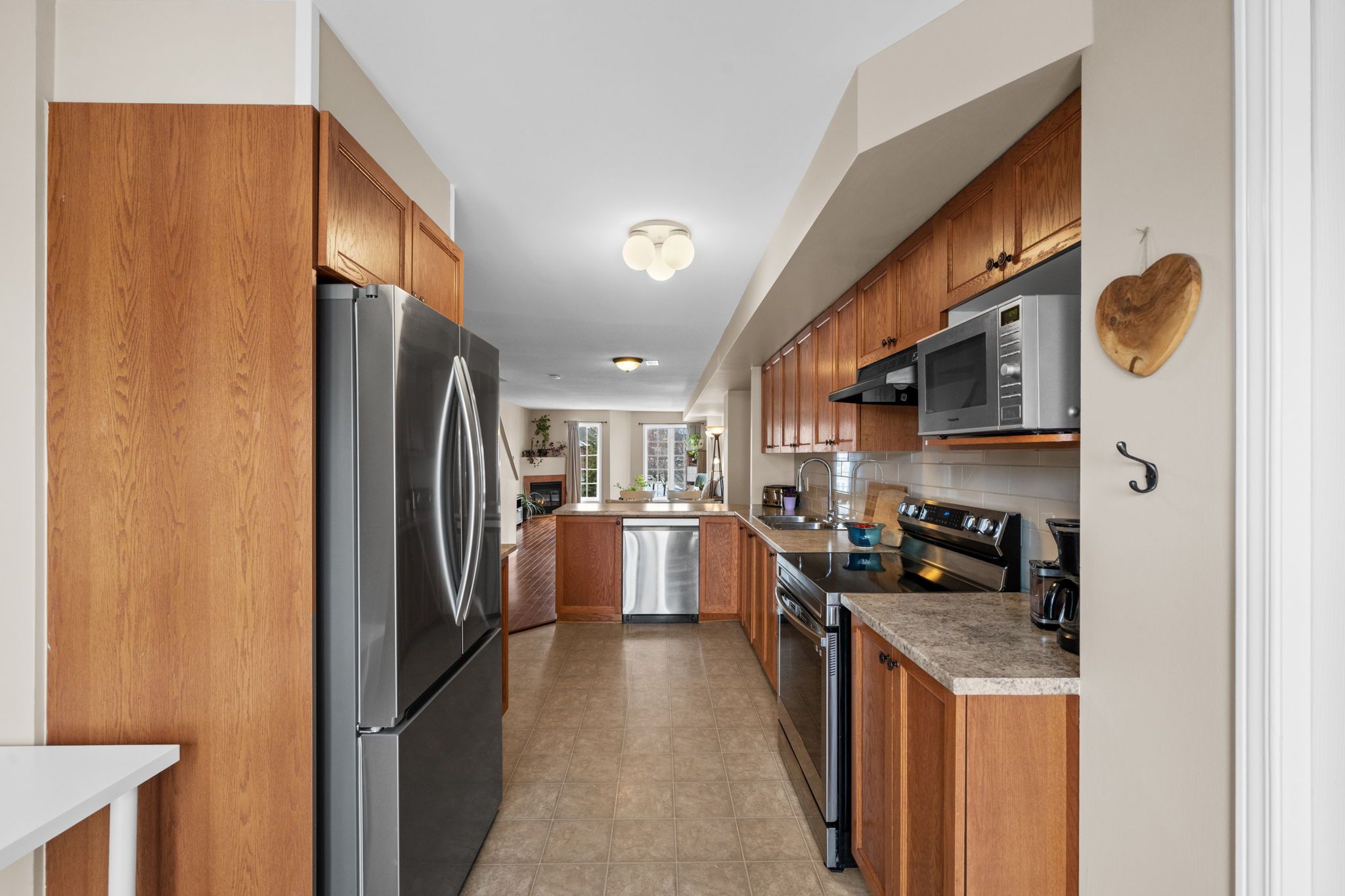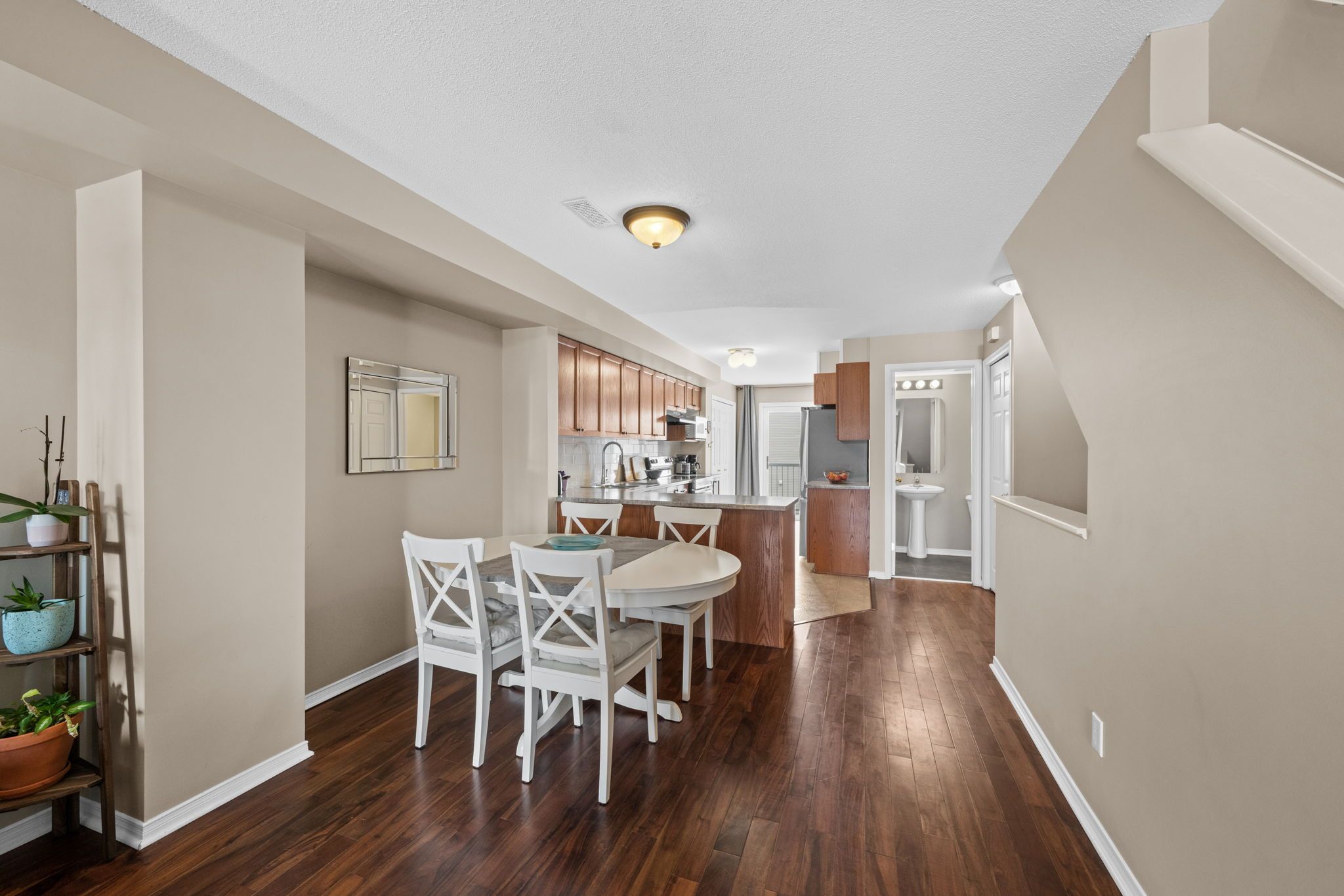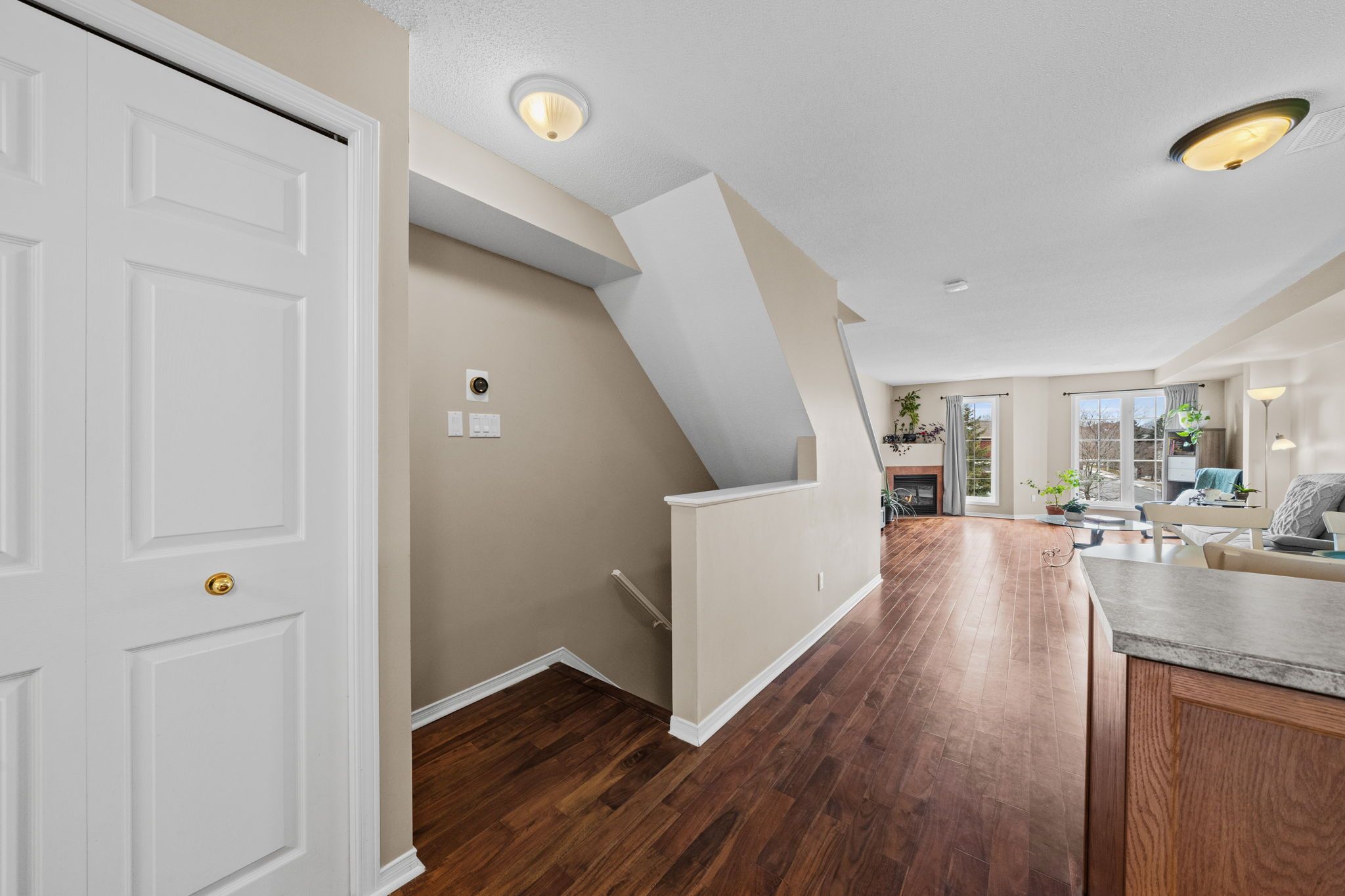 Well-maintained 2-bedroom, 3-bathroom two-level condo in Barrhaven offering approximately 1,358 sq ft of bright and functional living space. The main level features a spacious open-concept living and dining area with laminate flooring, large windows, and a gas fireplace, creating a comfortable and inviting space. The kitchen offers ample cabinetry, laminate countertops, a double sink, and a convenient eat-in area that can also function as a home office, with direct access to a private balcony. A 2-piece powder room and additional storage complete this level. The upper level provides excellent separation with two generously sized bedrooms, each featuring its own 3-piece ensuite. The primary bedroom includes two windows and access to a second private balcony, while the second bedroom offers a large closet and bright natural light. In-unit laundry is conveniently located on this level. Includes one parking space (#29). Ideally located close to schools, parks, transit, and everyday amenities in a well-established Barrhaven community.
